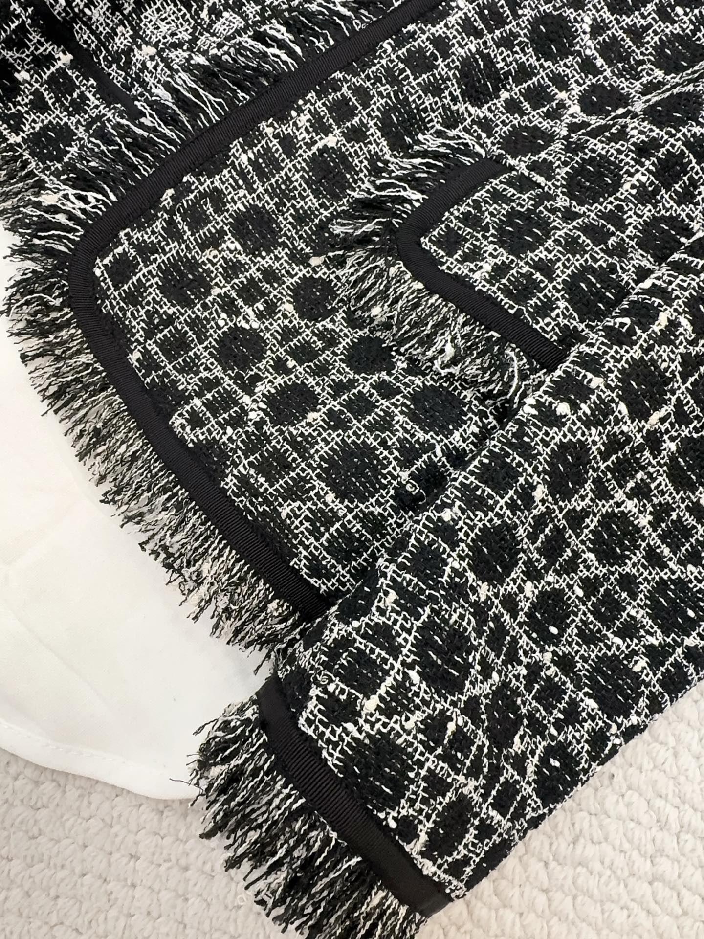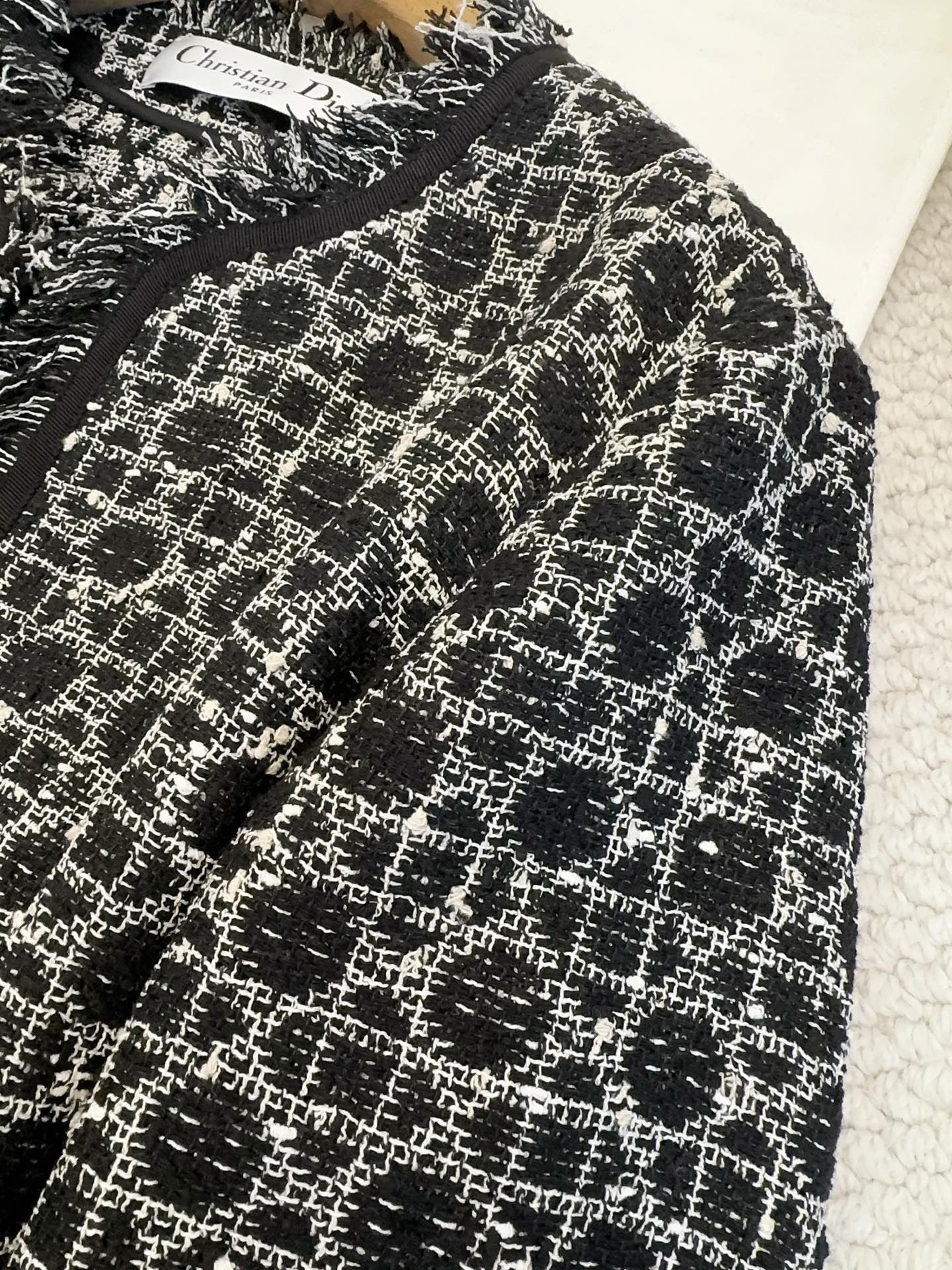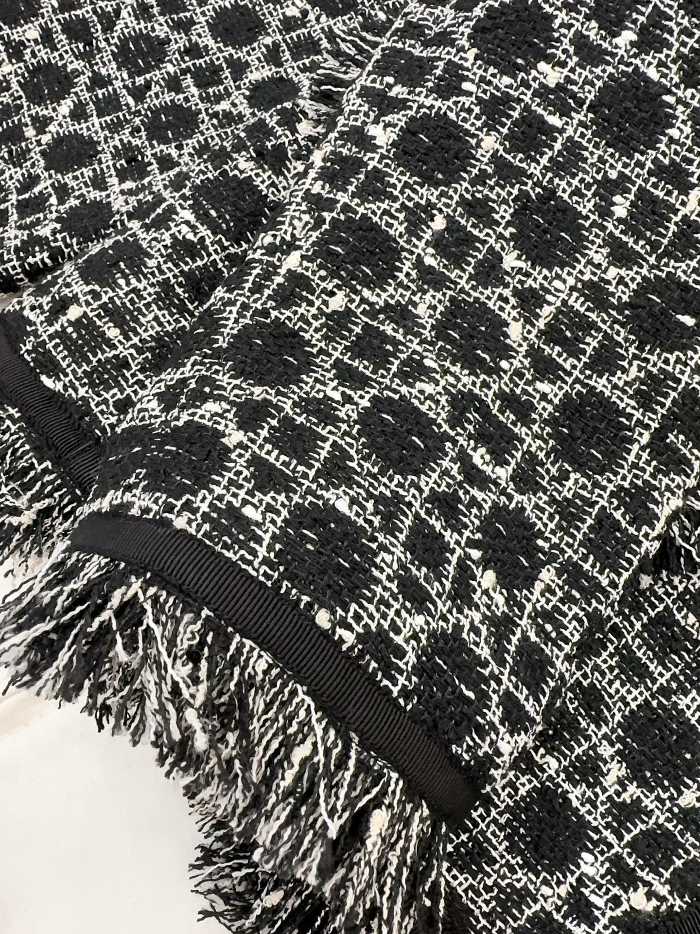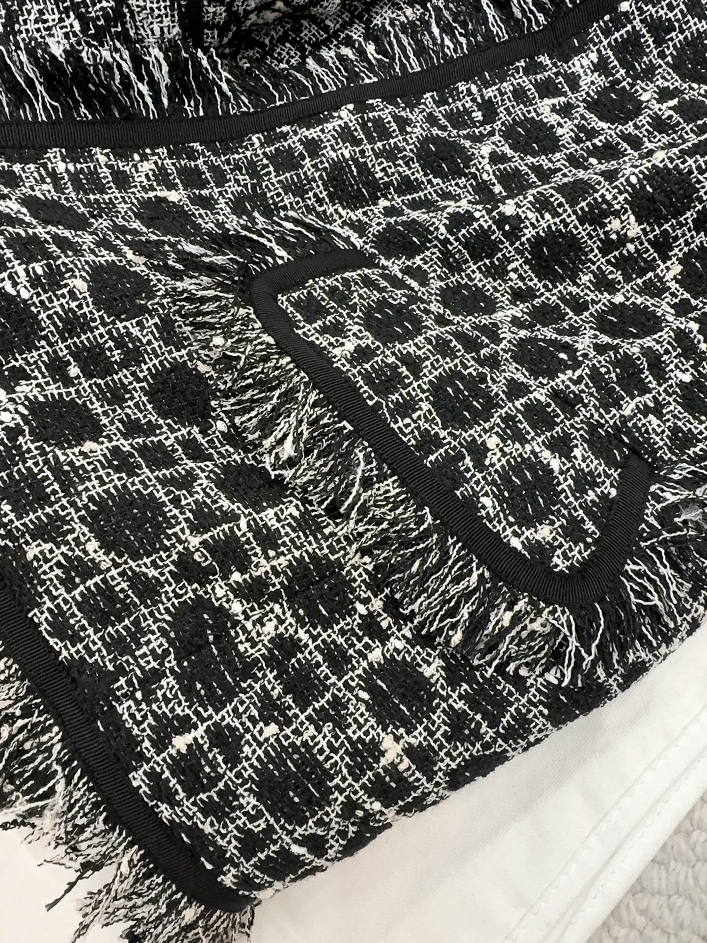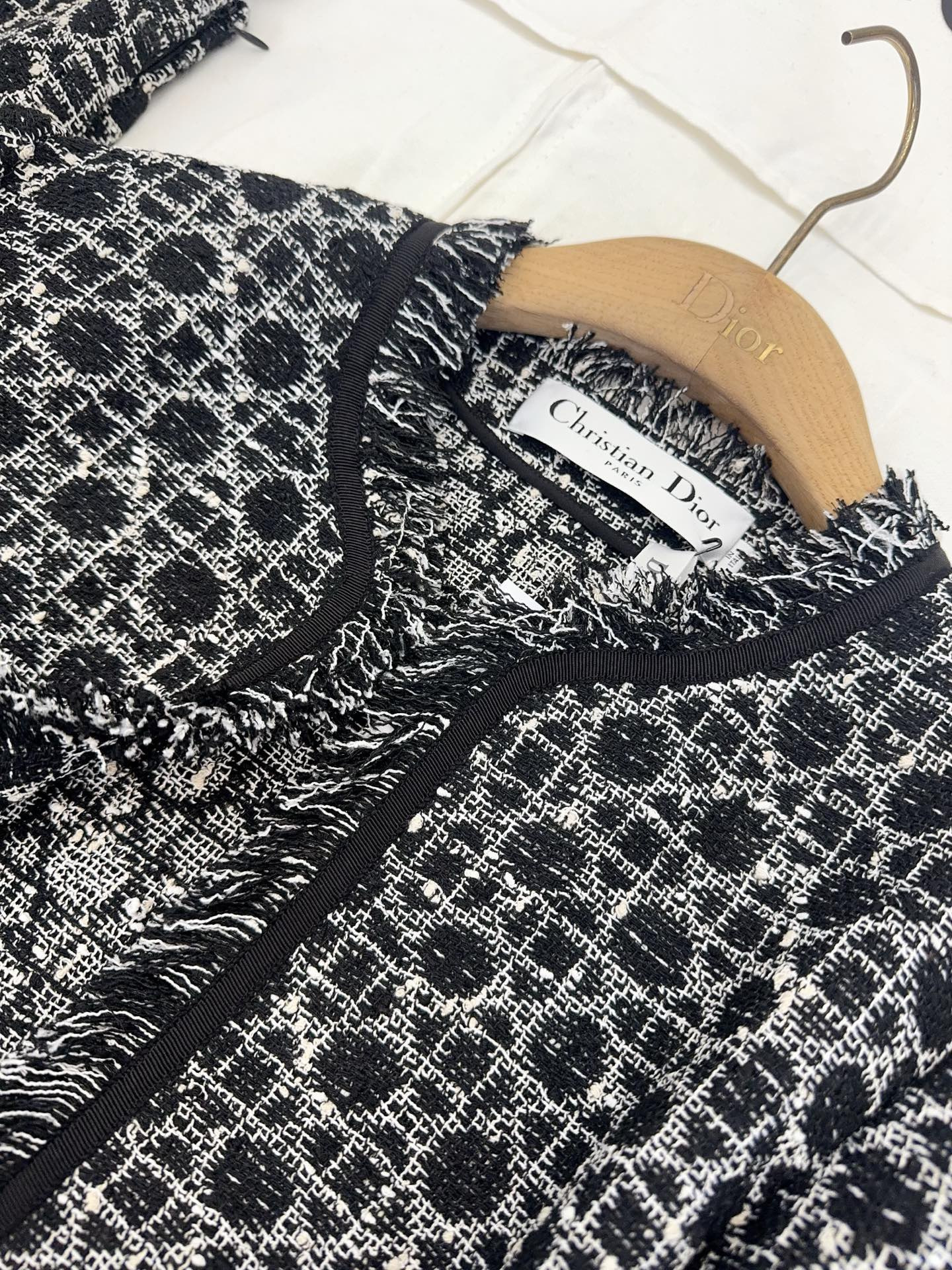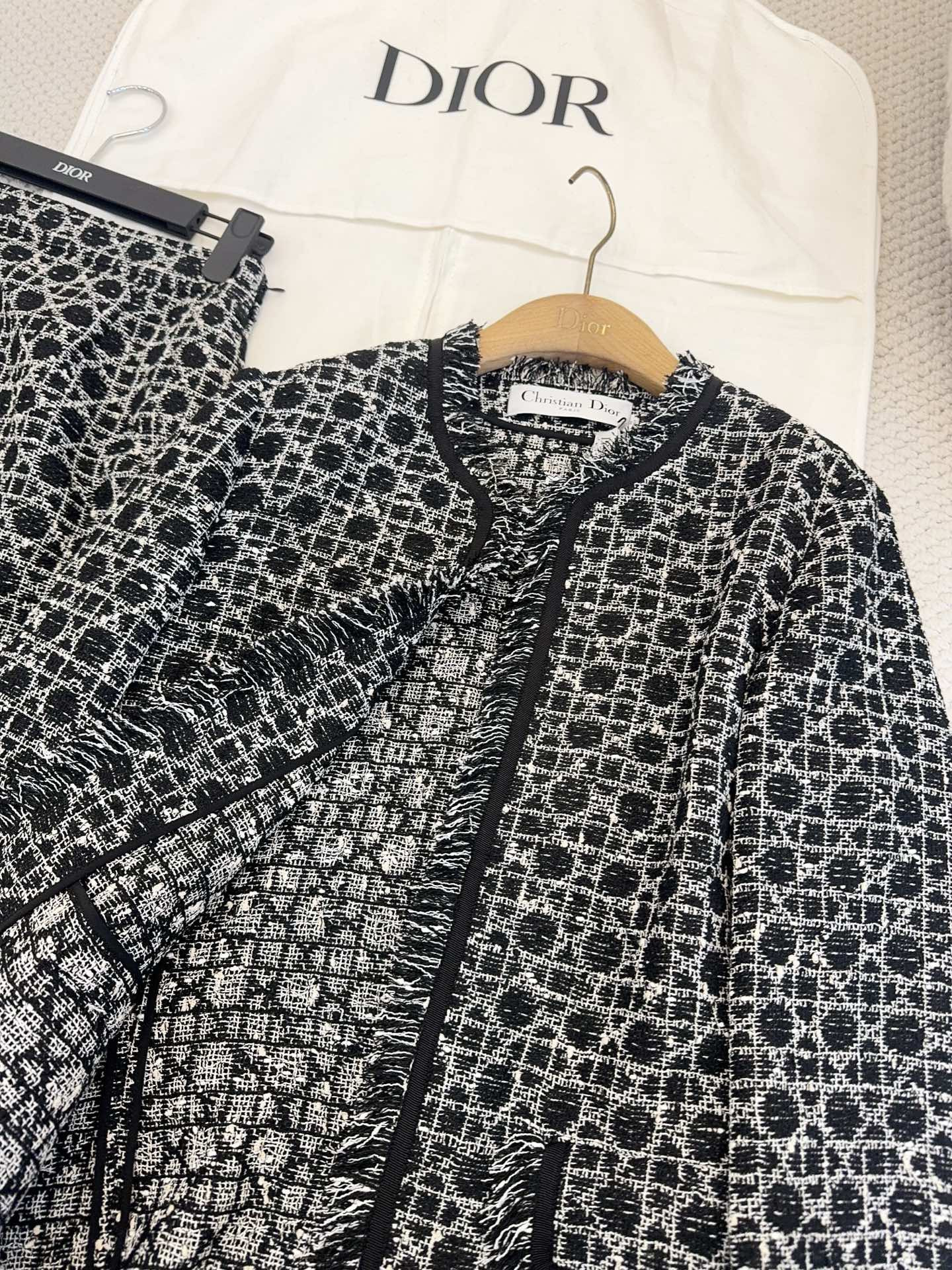 NIGO DIOR Macrocannage Regular Fit Jacket Mid-Length Macrocannage Flared Skirt Black White Cotton-Blend Tweed Knit #nigo334340