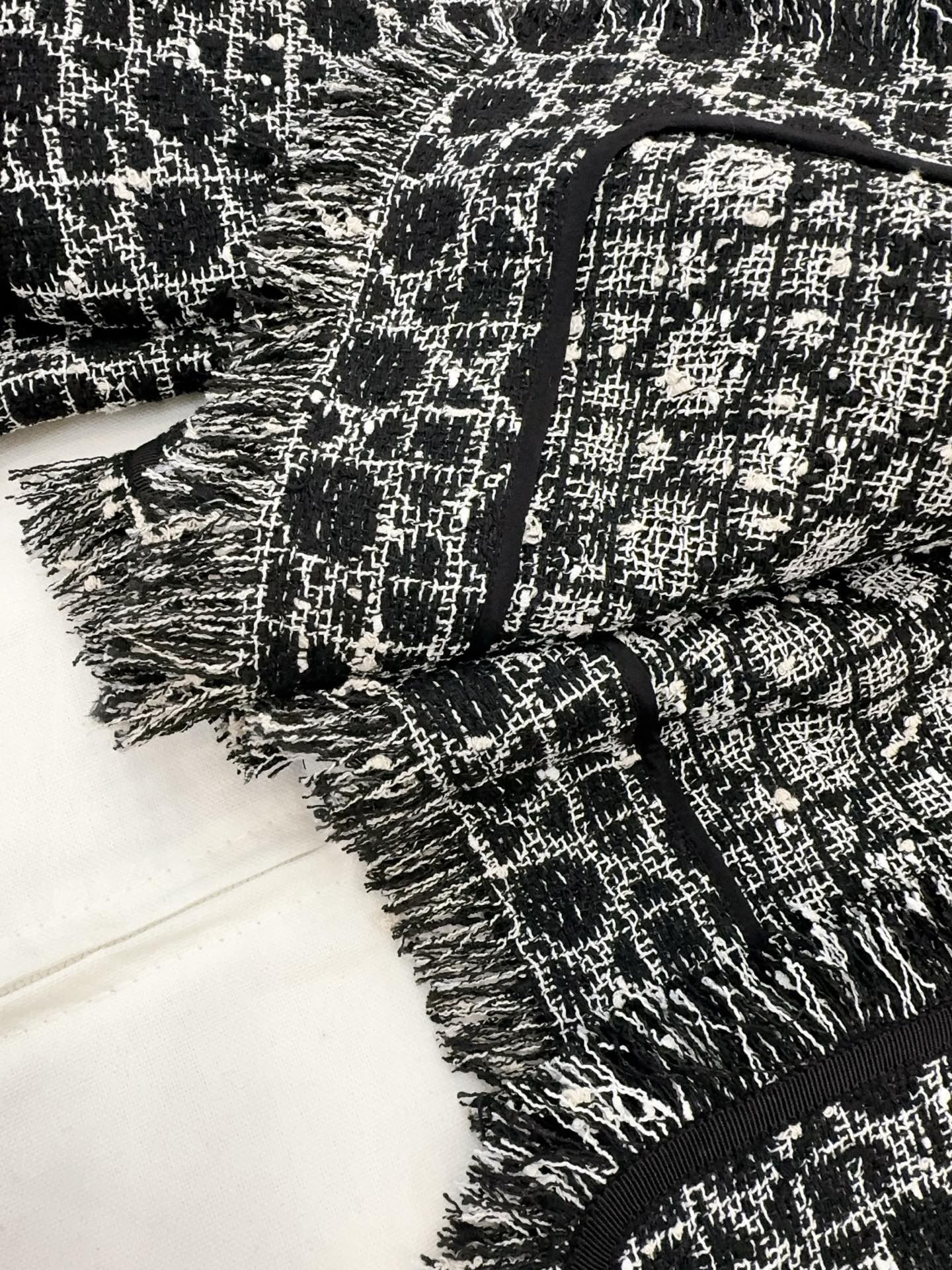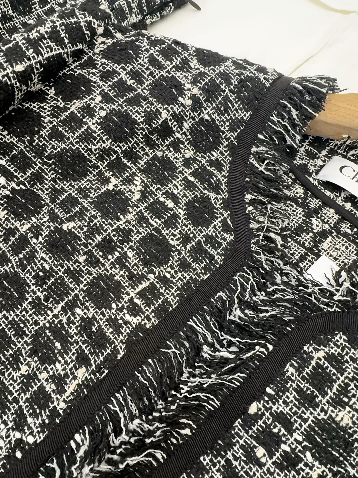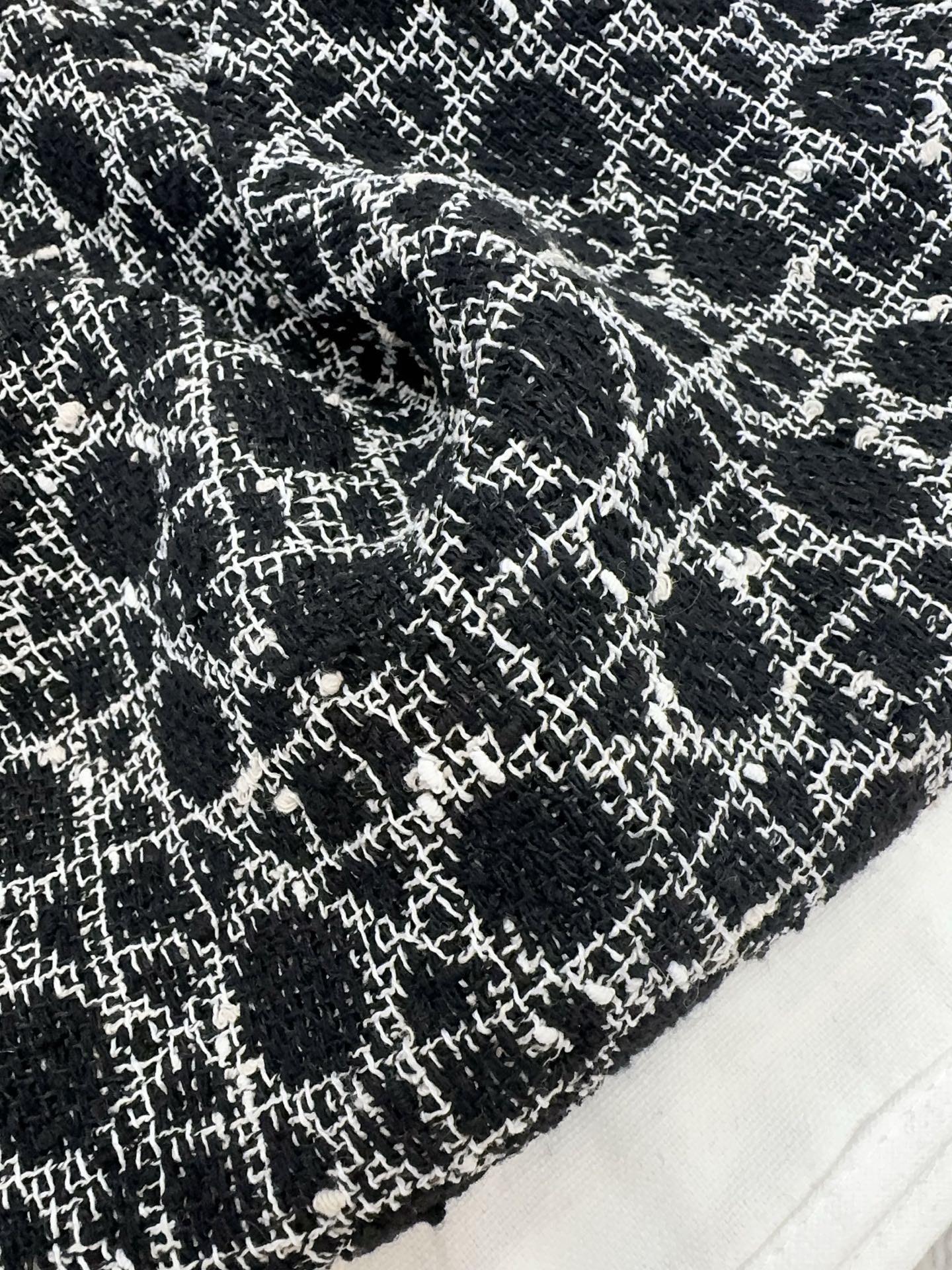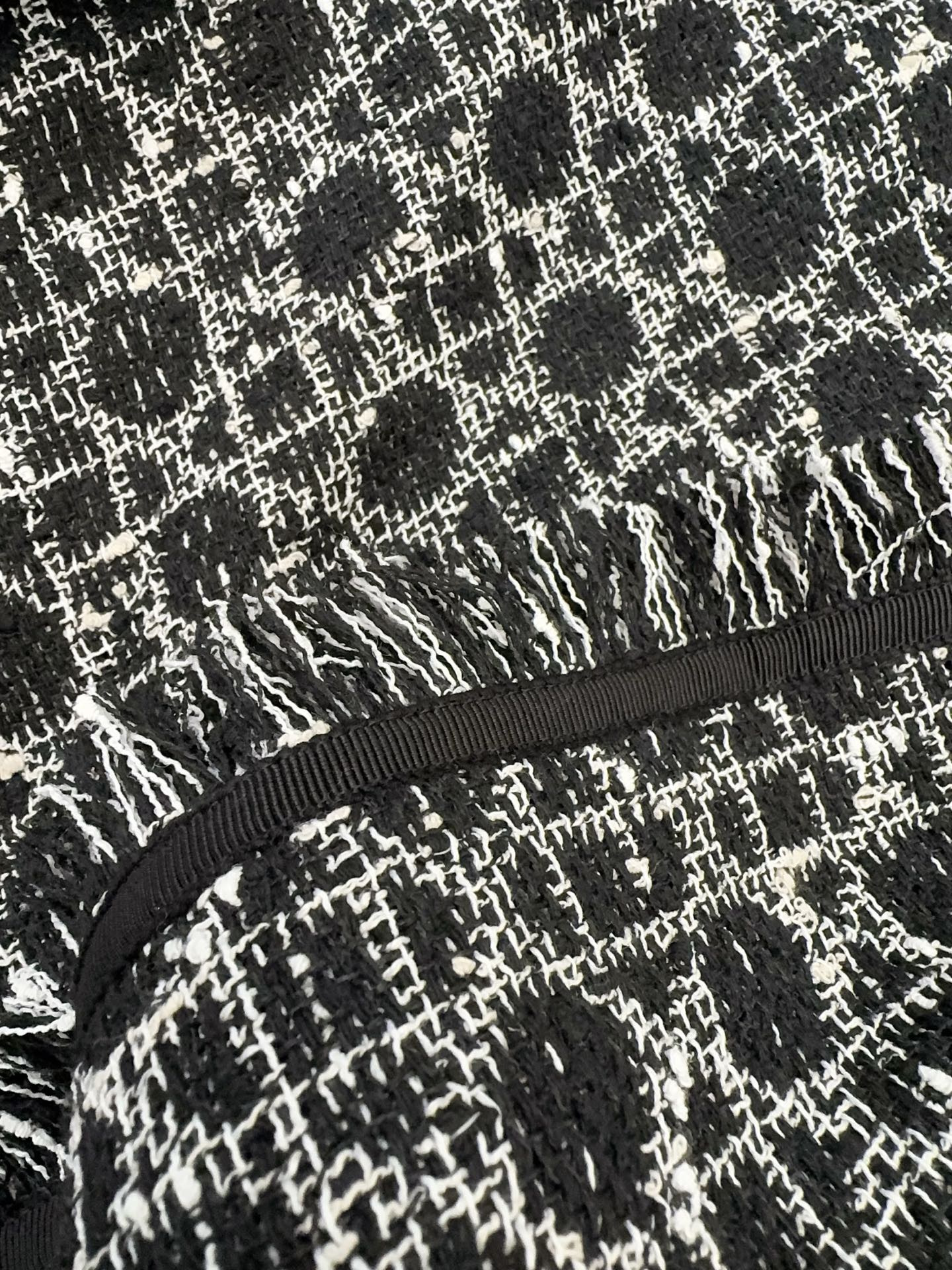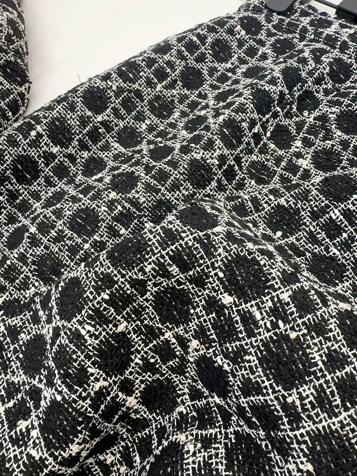 NIGO DIOR Macrocannage Regular Fit Jacket Mid-Length Macrocannage Flared Skirt Black White Cotton-Blend Tweed Knit #nigo334340