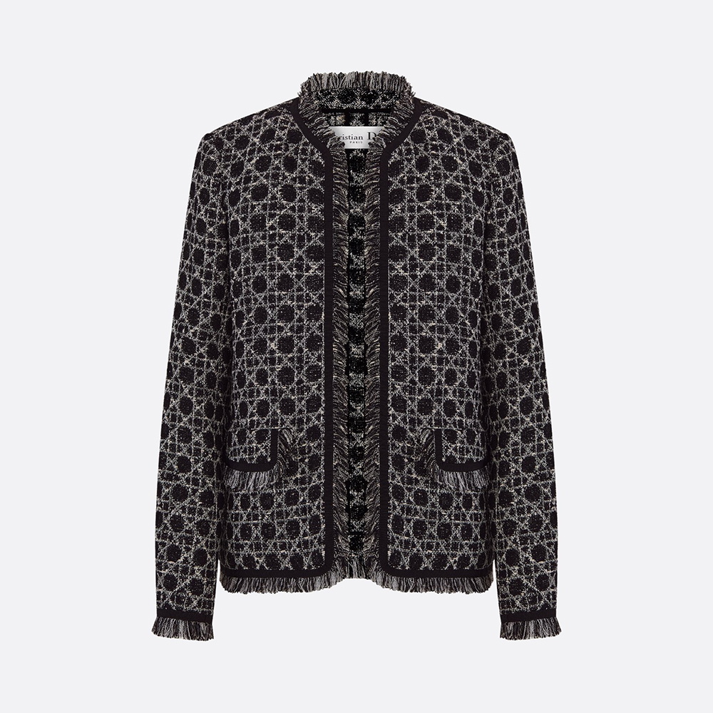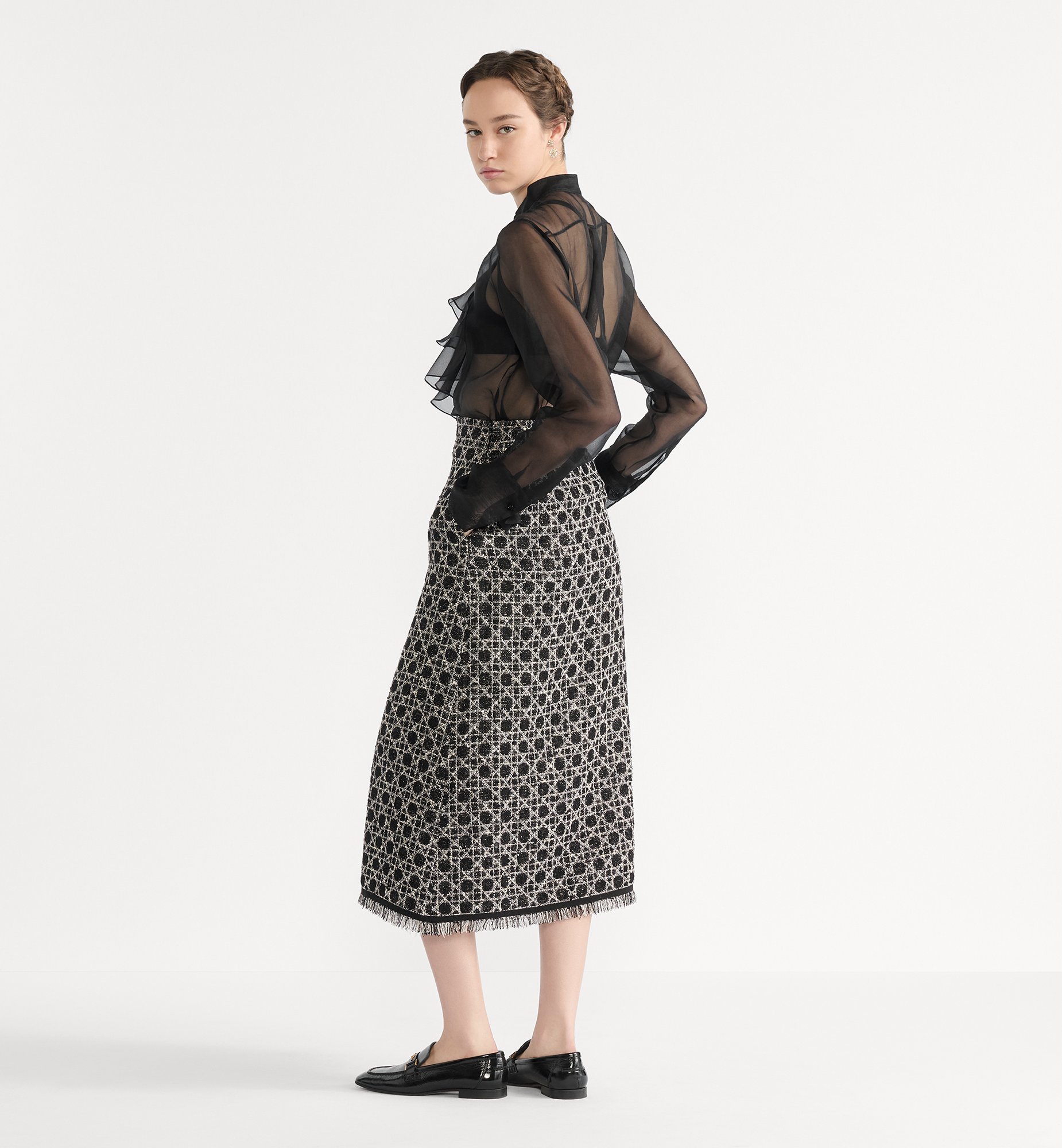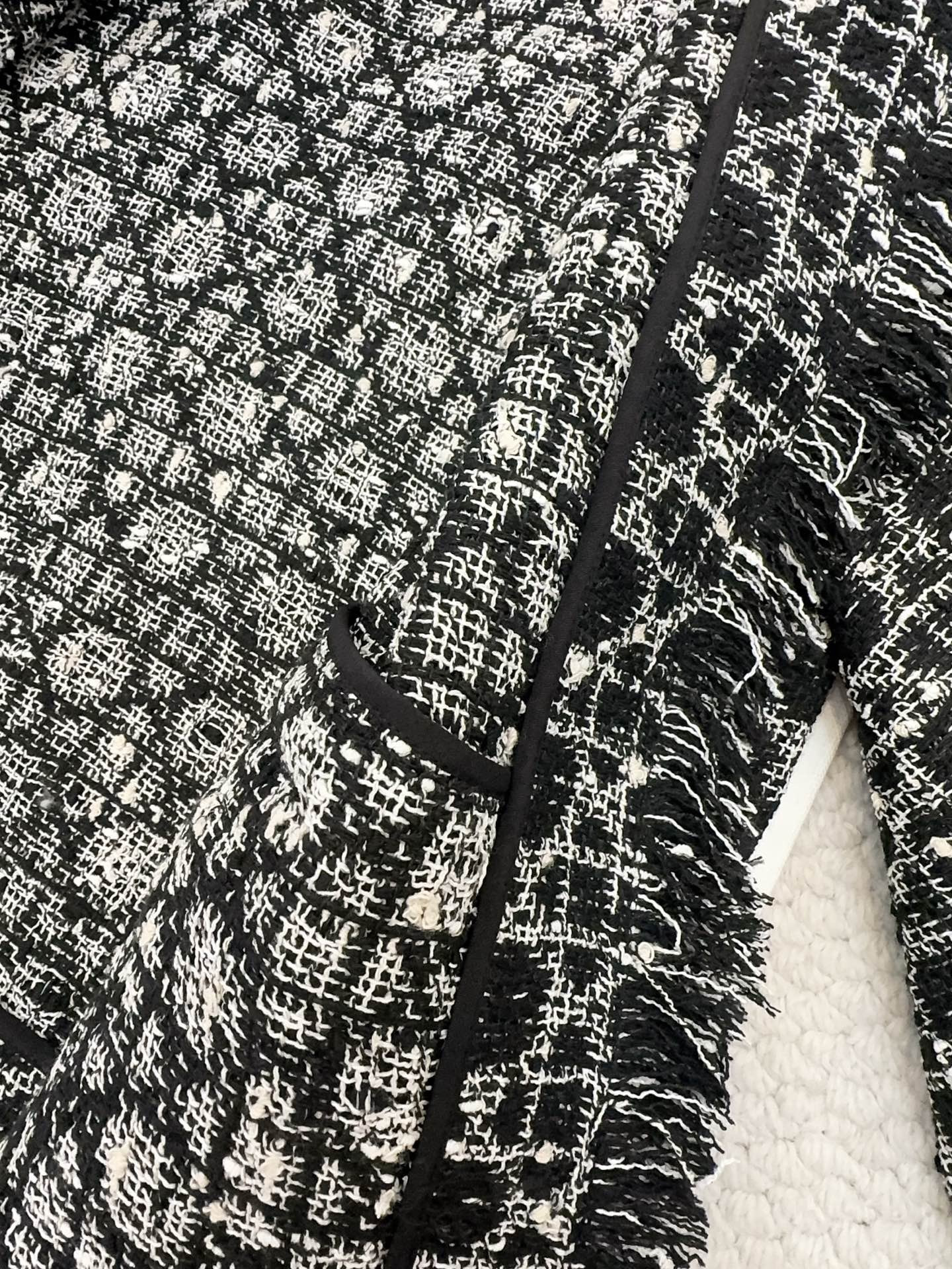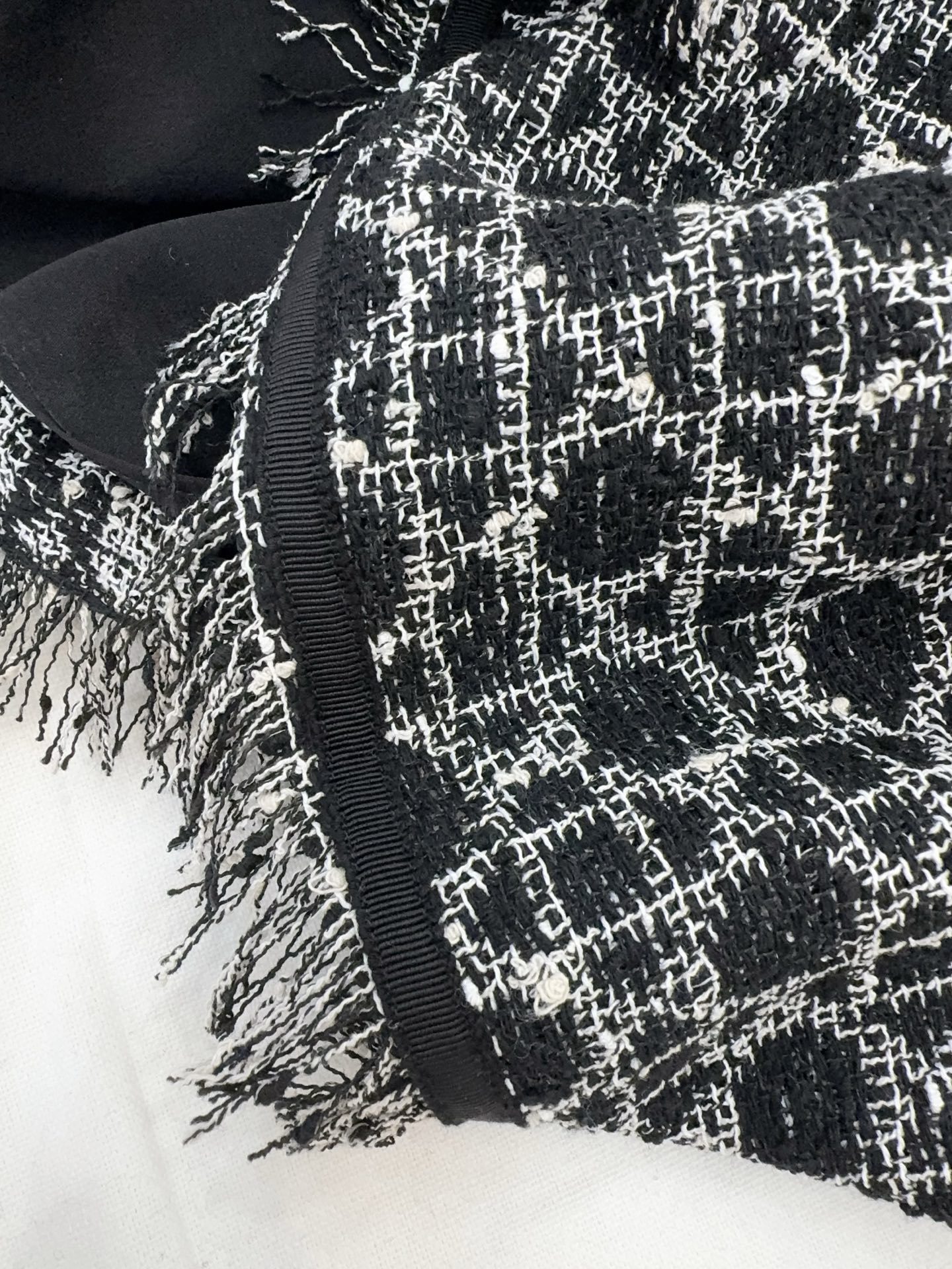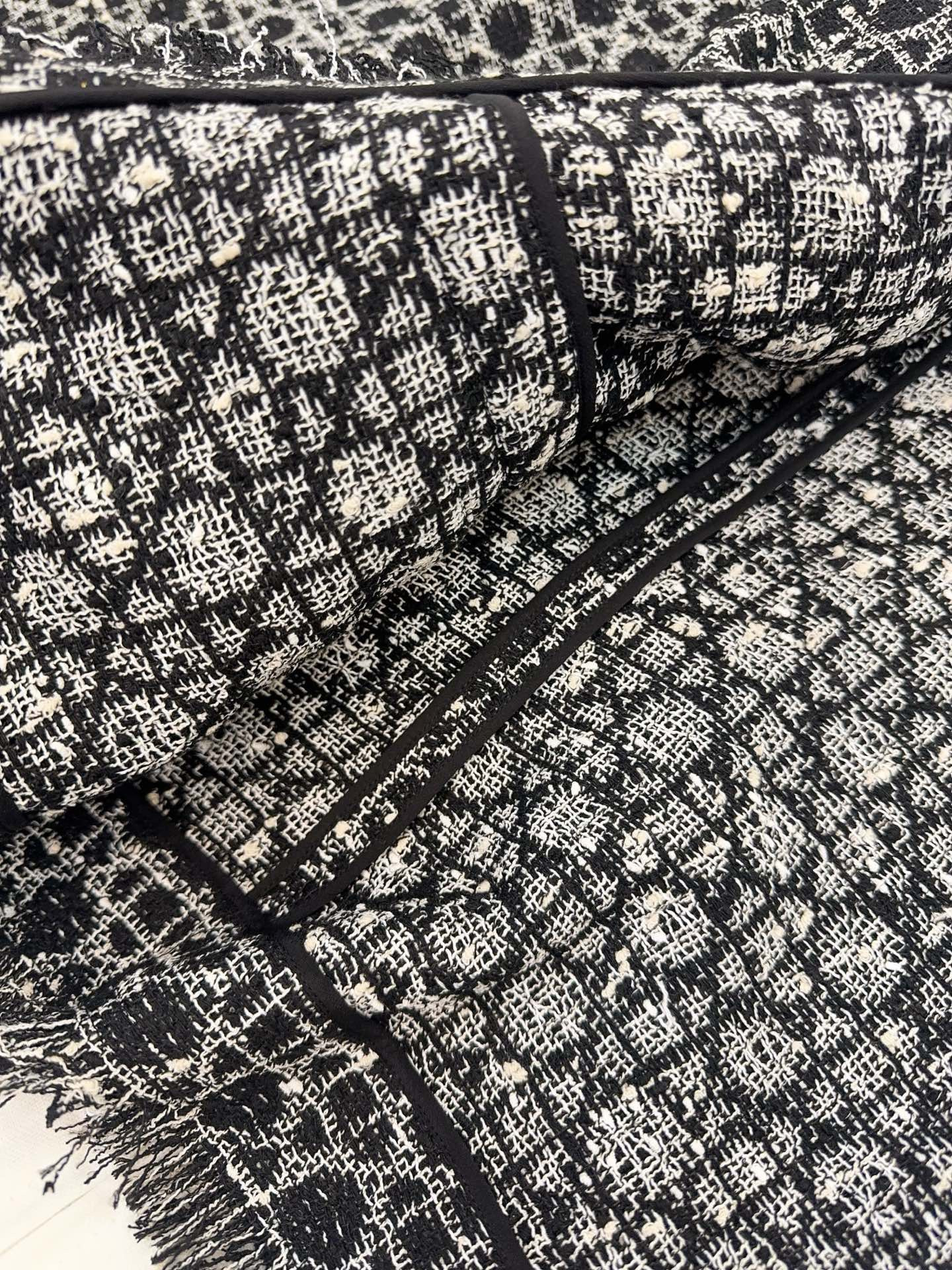 NIGO DIOR Macrocannage Regular Fit Jacket Mid-Length Macrocannage Flared Skirt Black White Cotton-Blend Tweed Knit #nigo334340