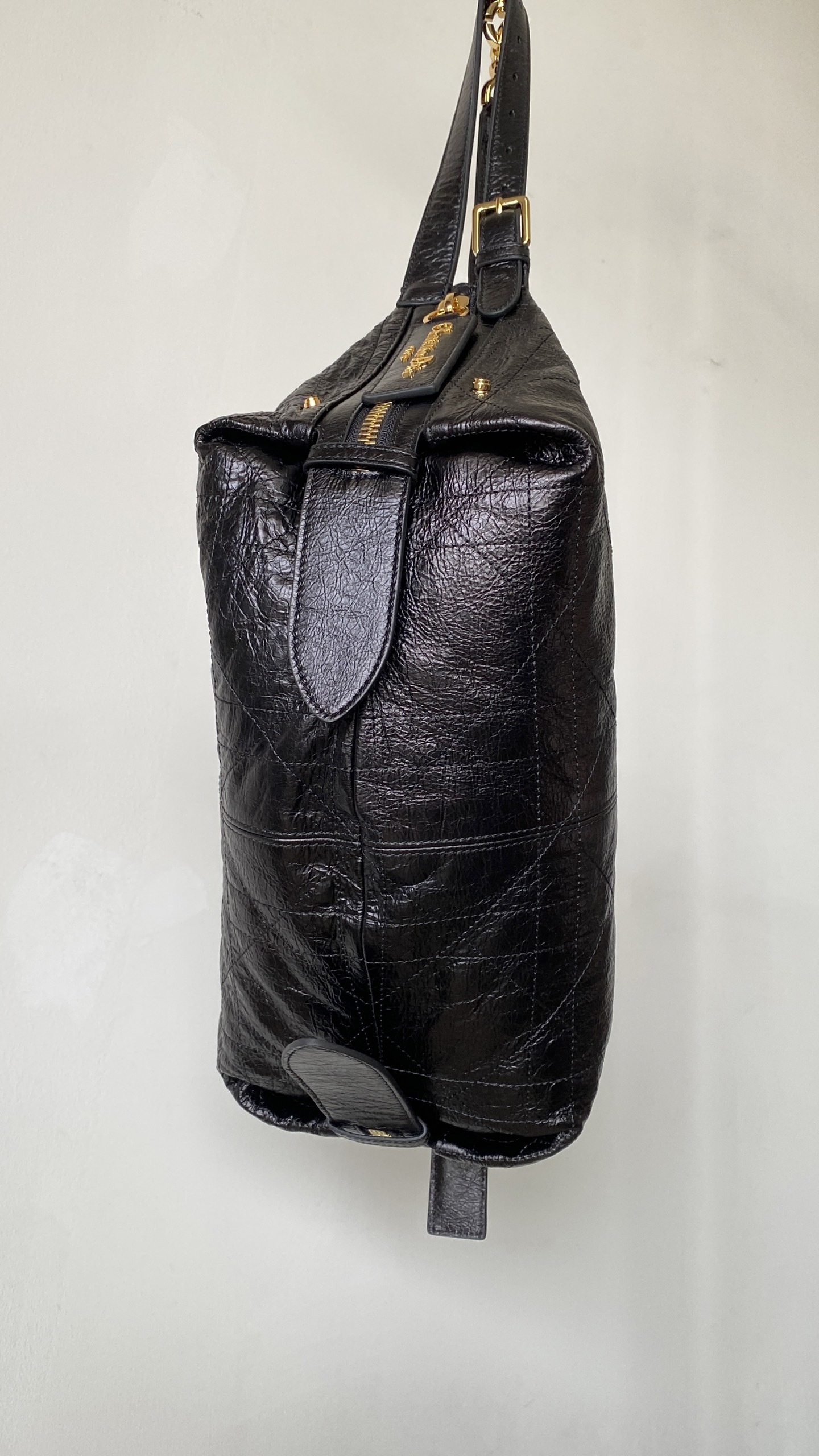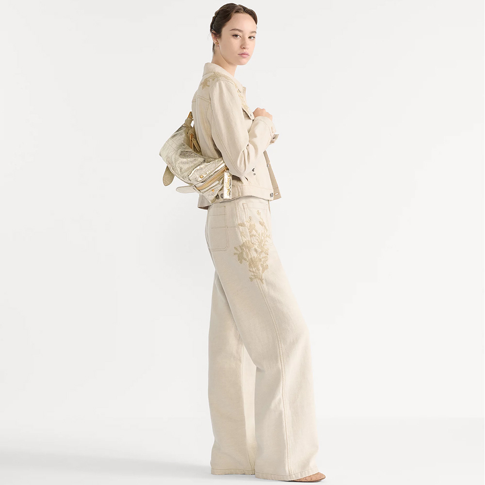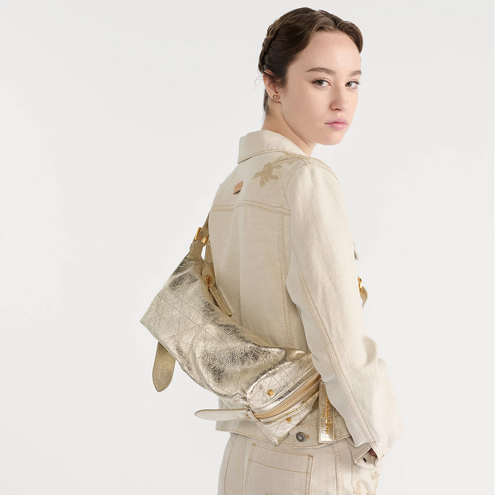 NIGO DIOR Medium_D-Journey Bag in Crinkled Calfskin Metallic Gold-Tone Flat Macrocannage #nigo335779