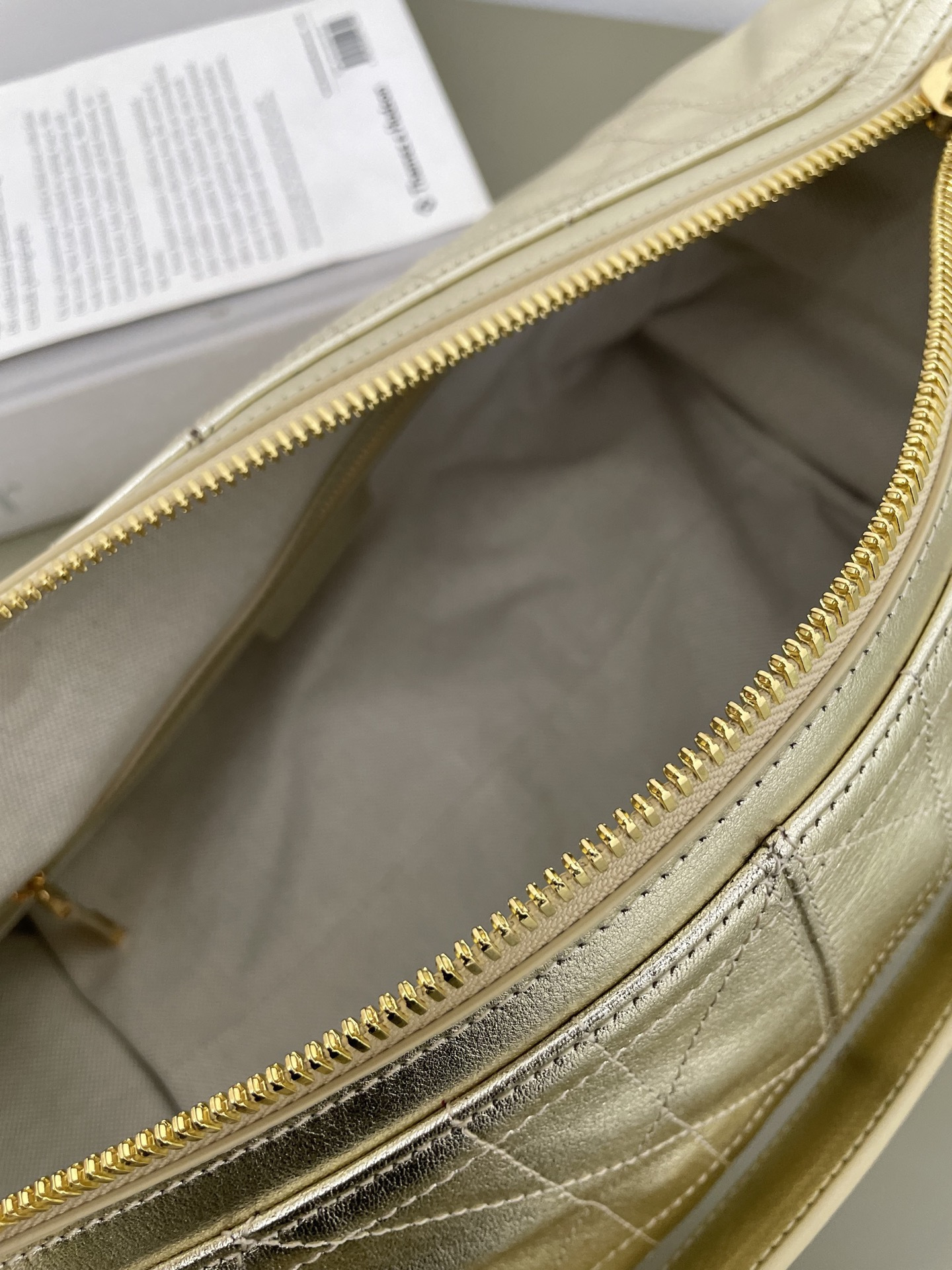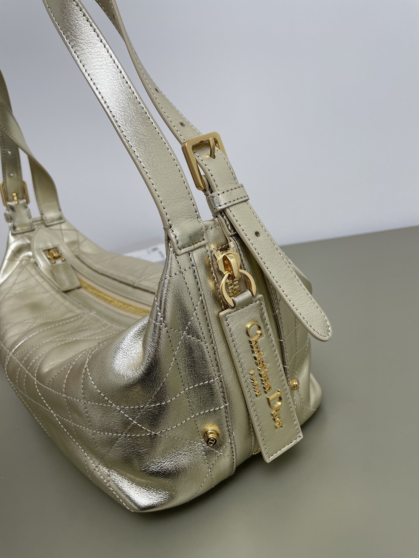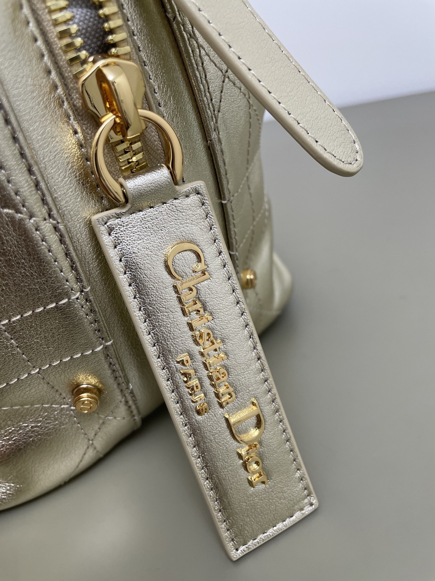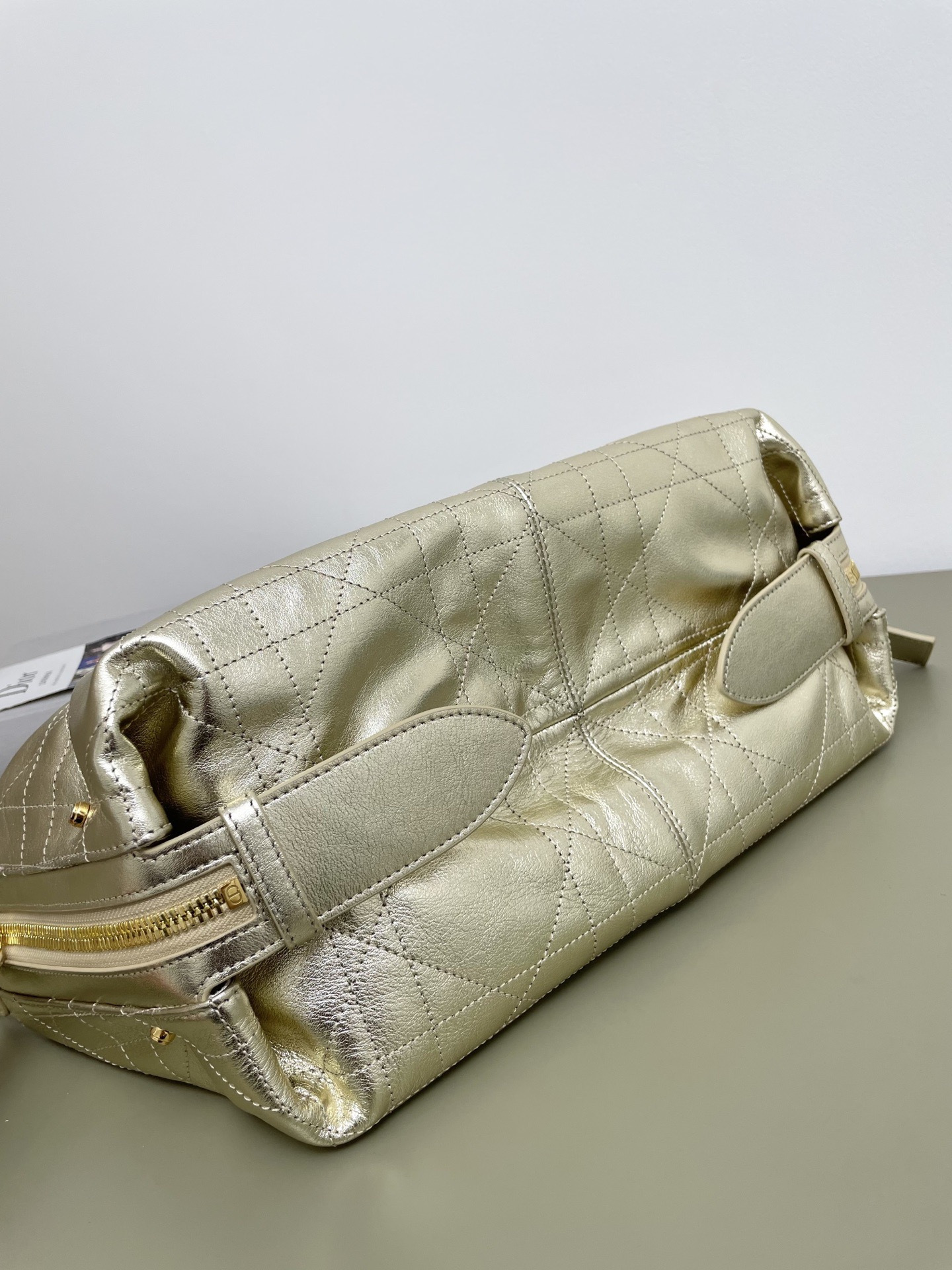This Dior handbag showcases the brand's exceptional craftsmanship and attention to detail. Crafted from premium calfskin, metallic, gold, in a stunning gold colorway, this piece combines timeless luxury with modern style.