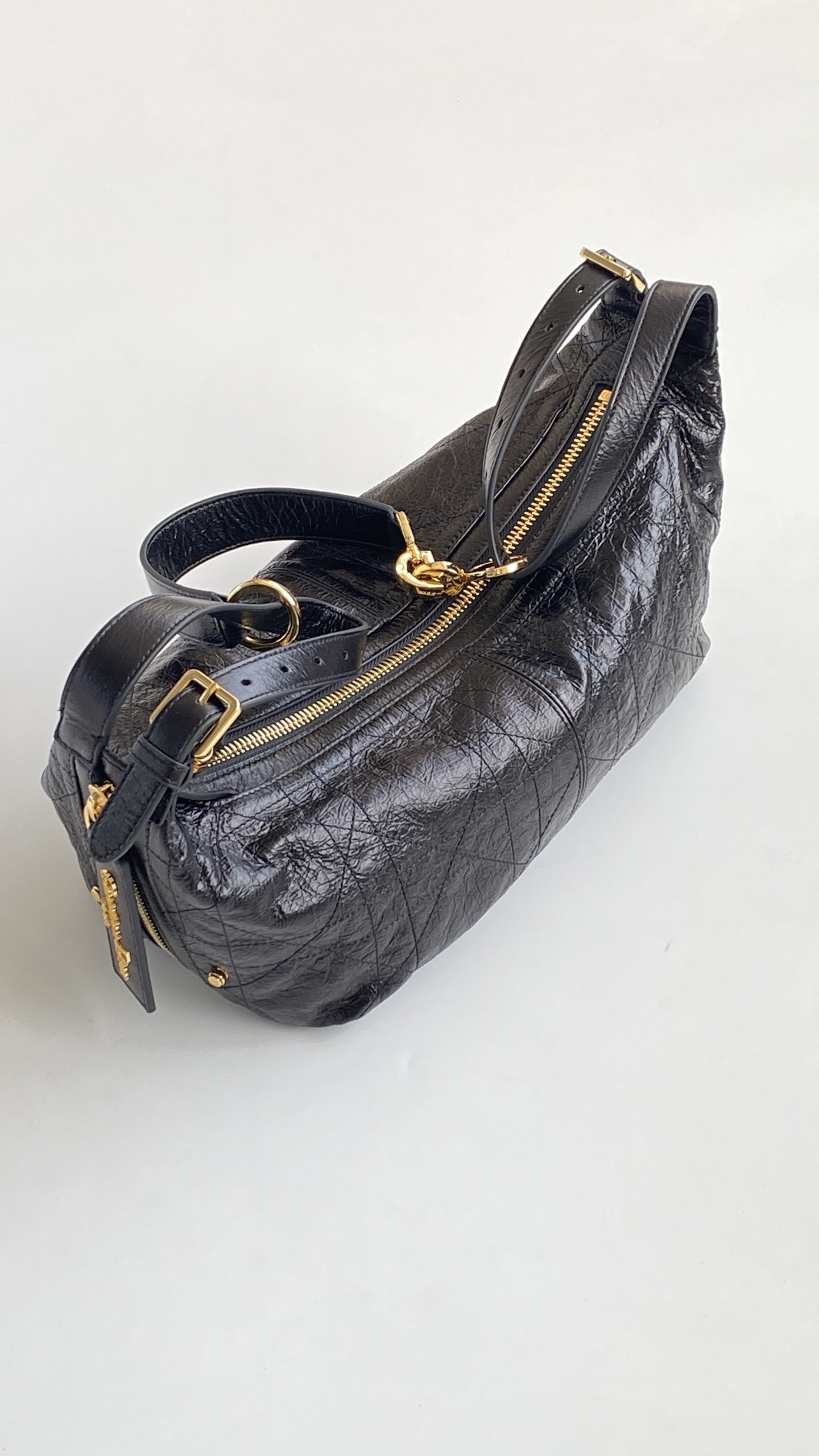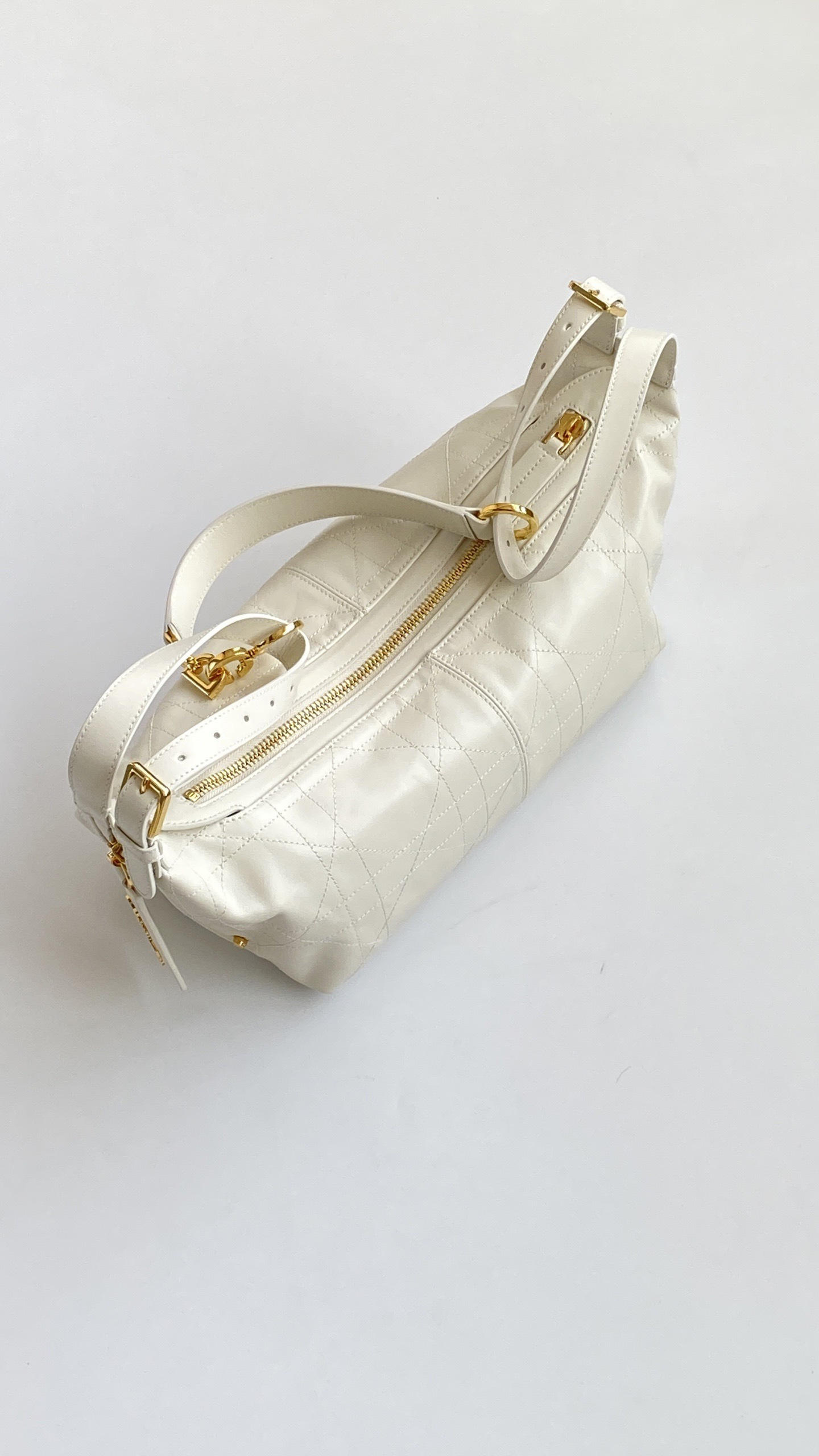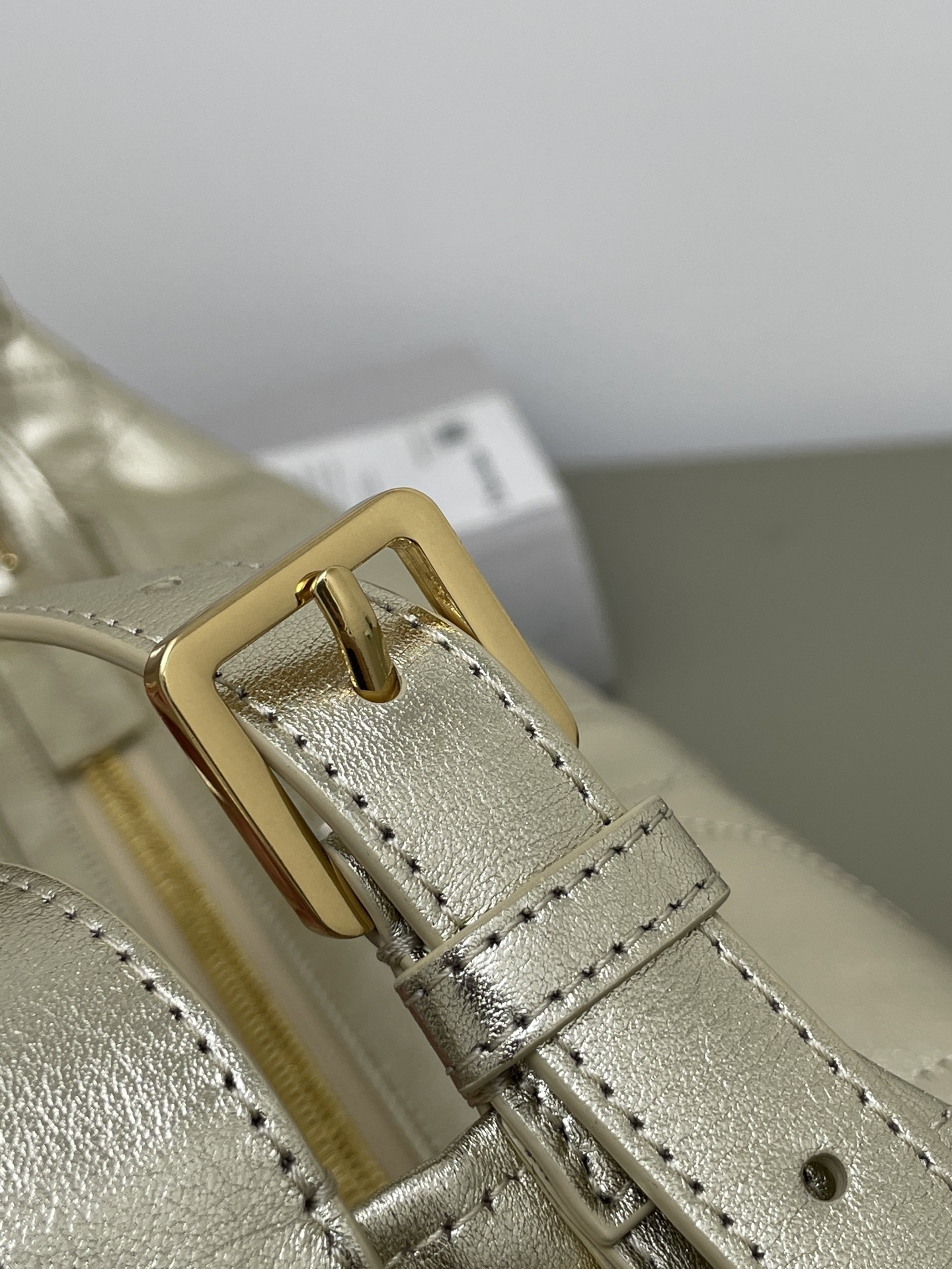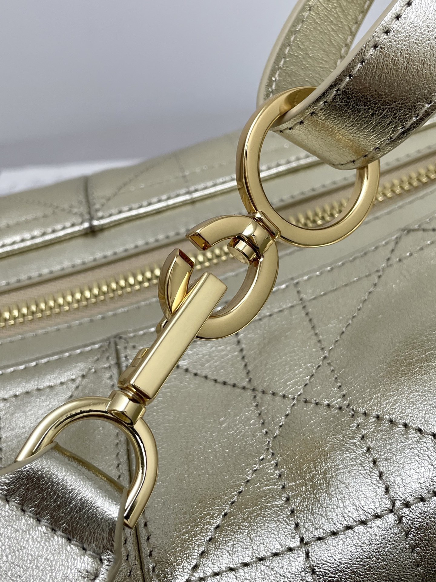 This Dior handbag showcases the brand's exceptional craftsmanship and attention to detail. Crafted from premium calfskin, metallic, gold, in a stunning gold colorway, this piece combines timeless luxury with modern style.