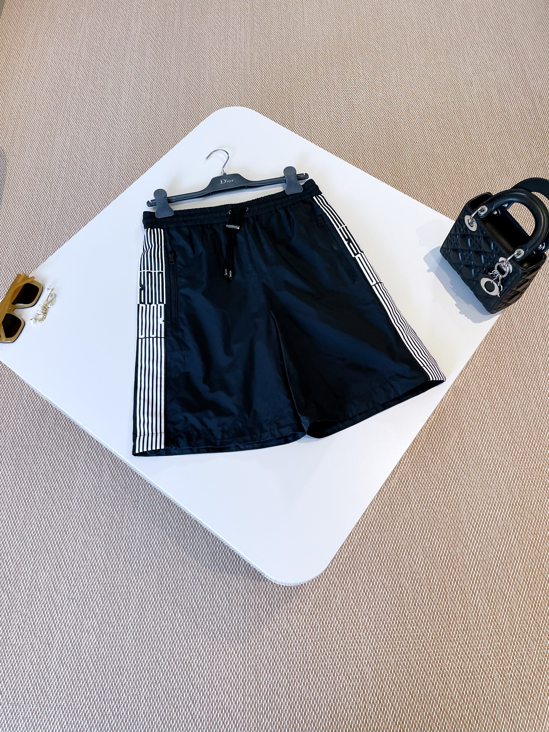 NIGO Dior Men's And Women's Summer Solid Color Casual Mid Waist Tie Loose Shorts #nigo76144