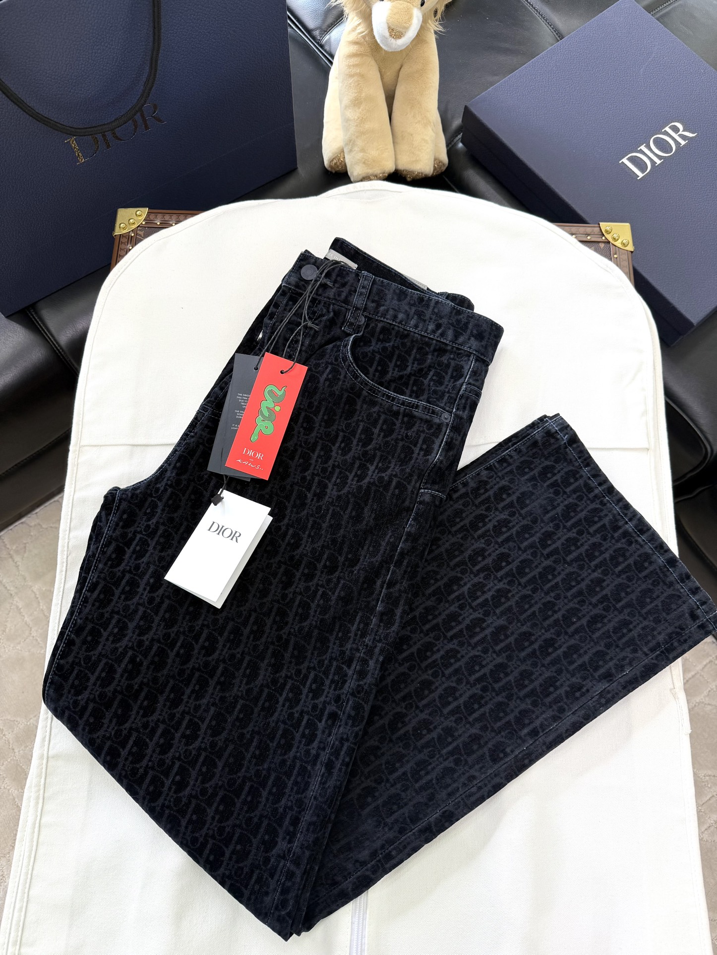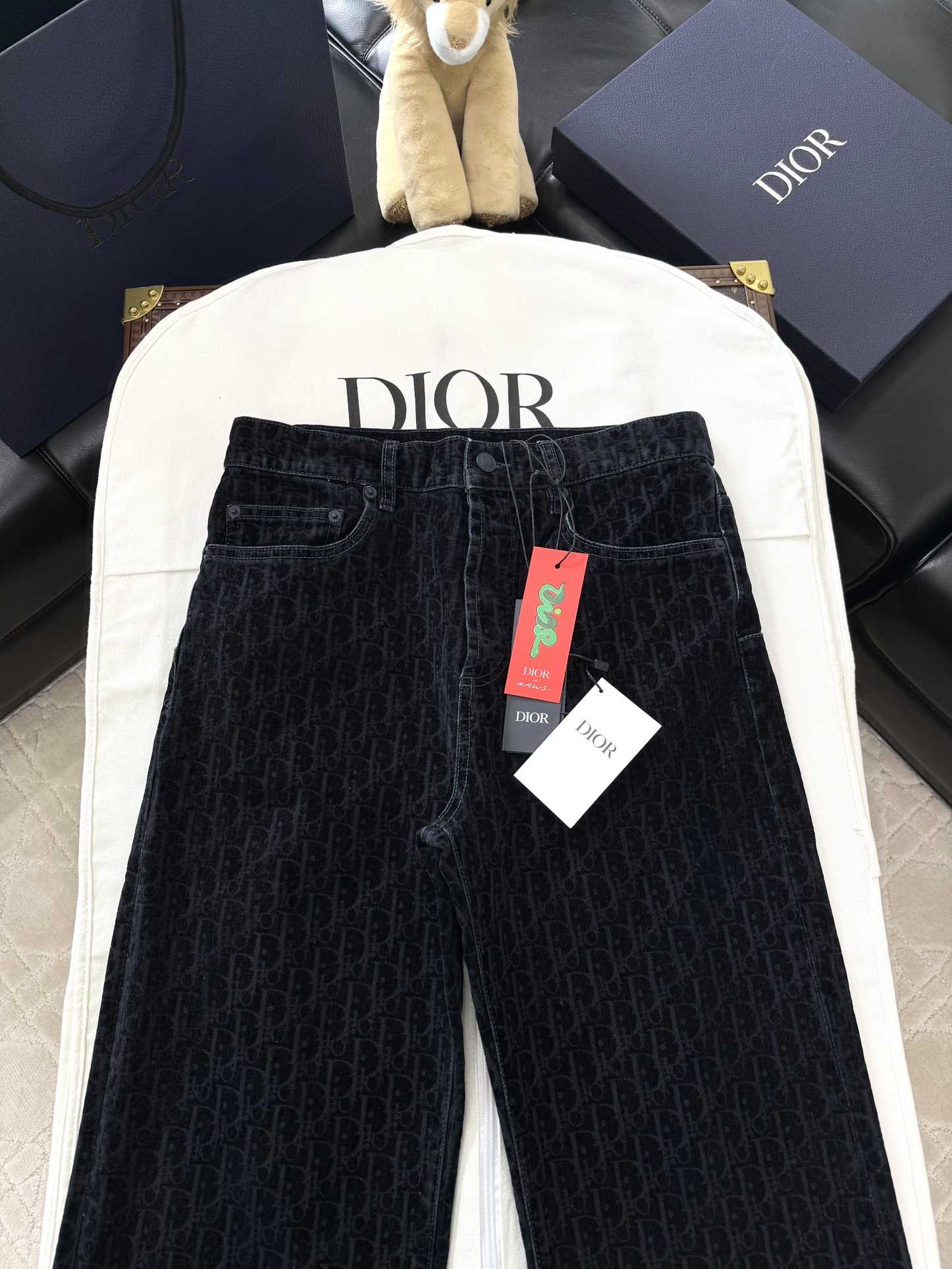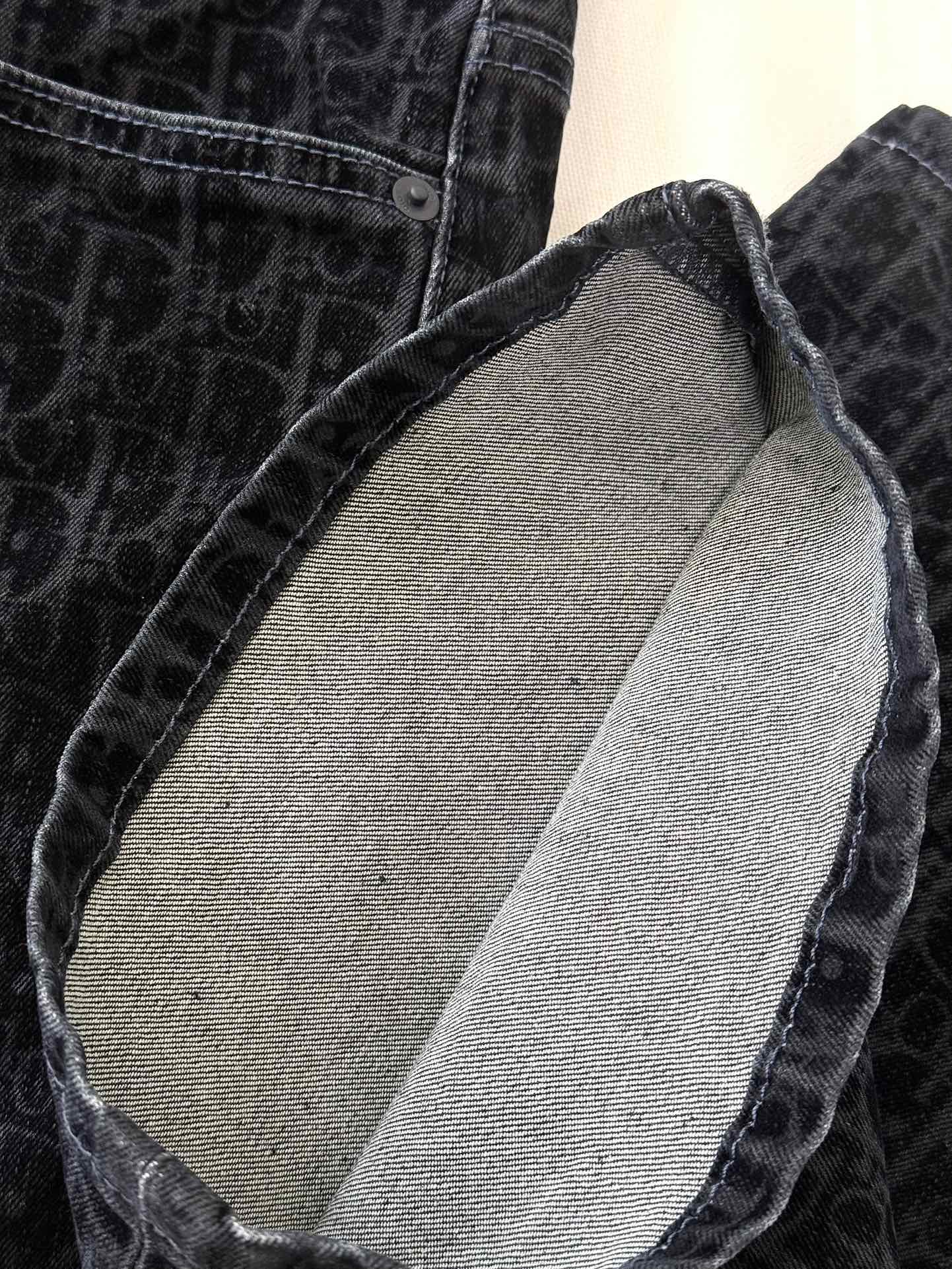 NIGO Dior Men's Dior And Kaws Collection Four-Season Cotton-Blend Solid-Color Button-Fly Flocked Denim Pants #nigo81751