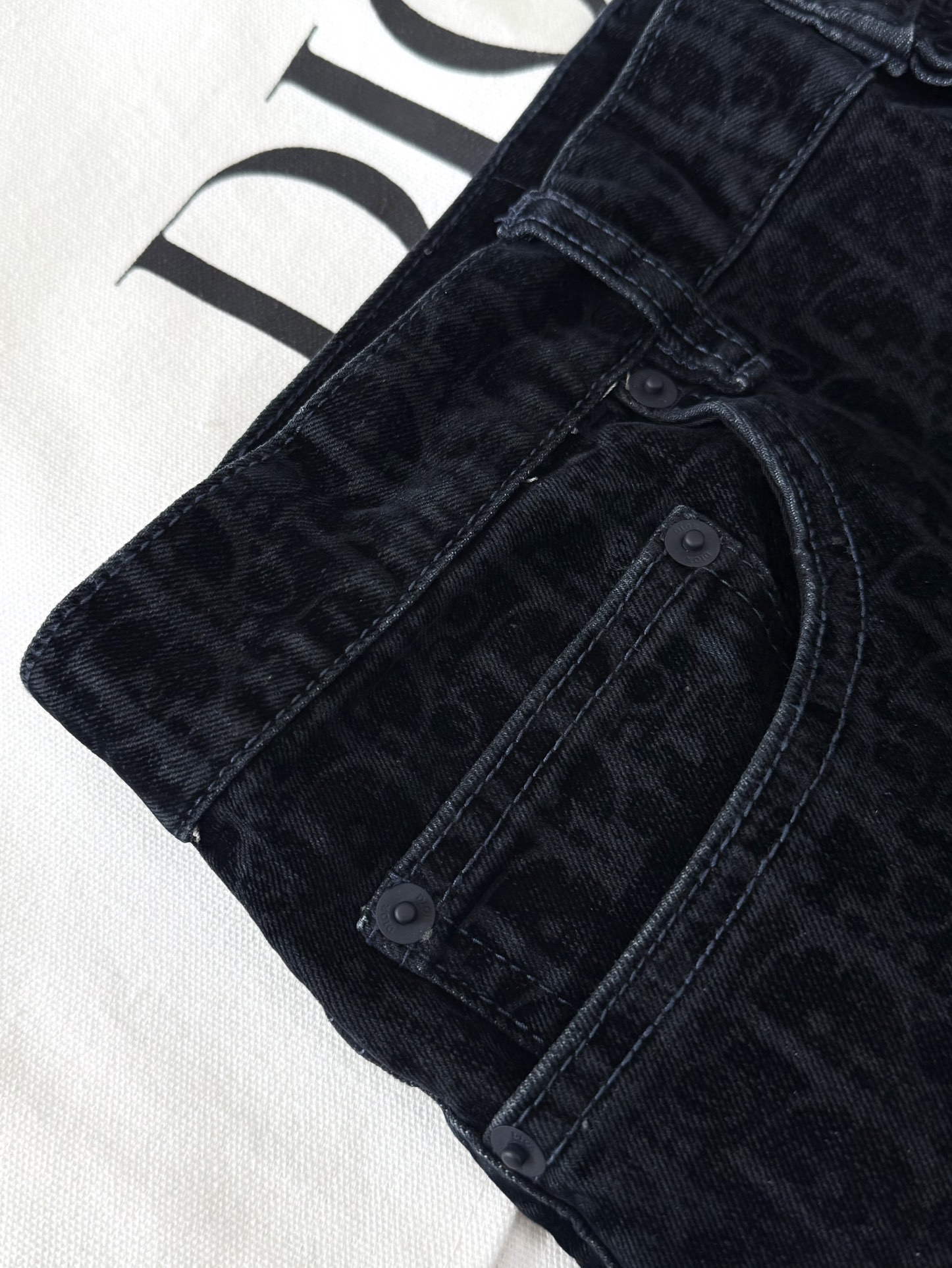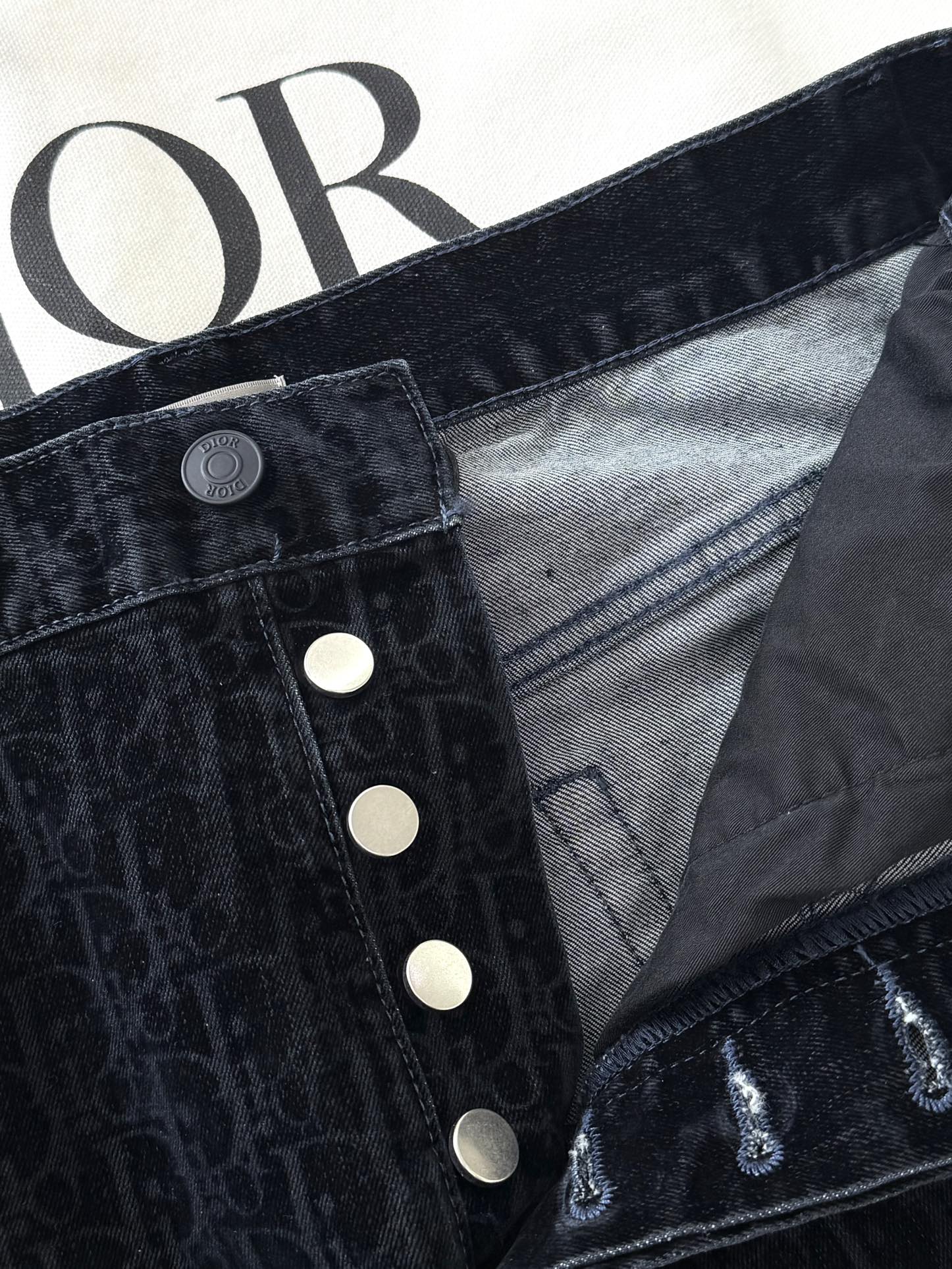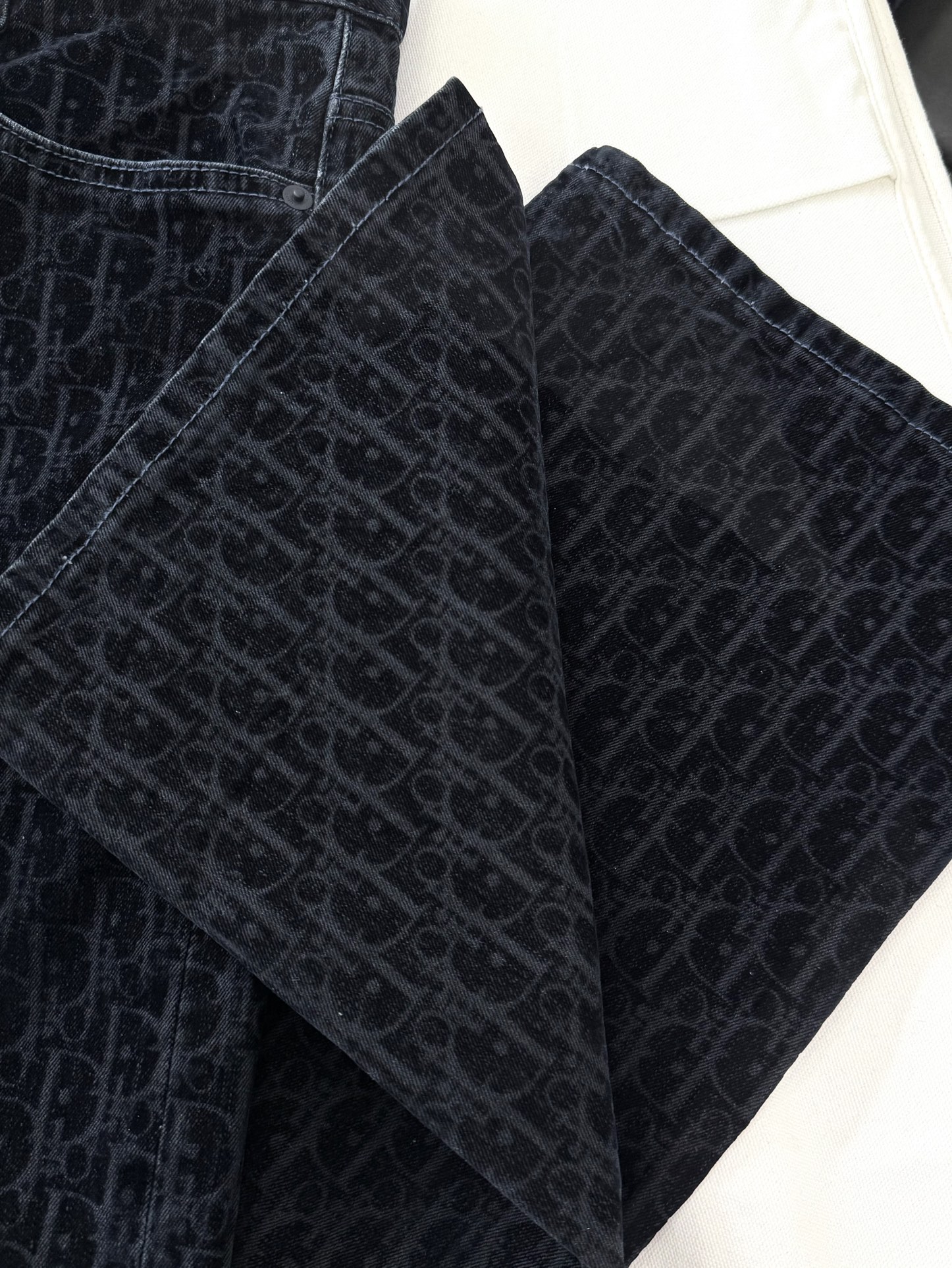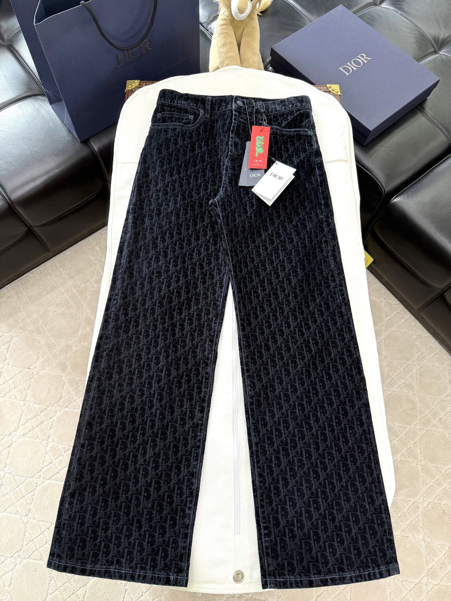 NIGO Dior Men's Dior And Kaws Collection Four-Season Cotton-Blend Solid-Color Button-Fly Flocked Denim Pants #nigo81751