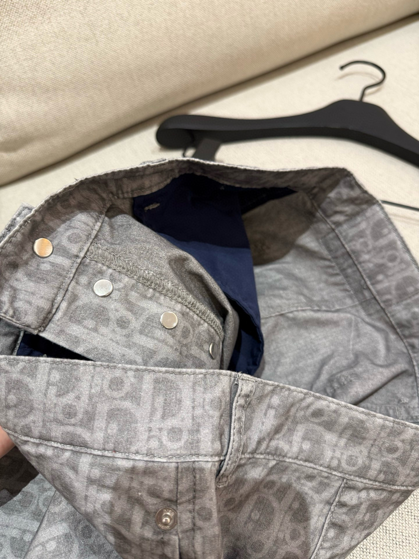 NIGO DIOR Men's Grey Cotton Denim Oblique Printed Shirt Blouse Spring Autumn Lapel Single Breasted Fashion Casual Jacket Shirt #nigo71845