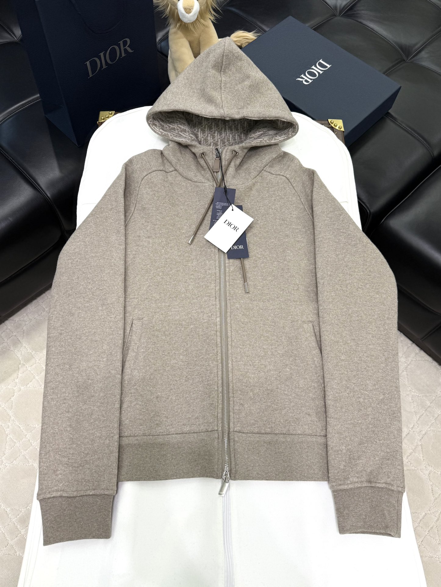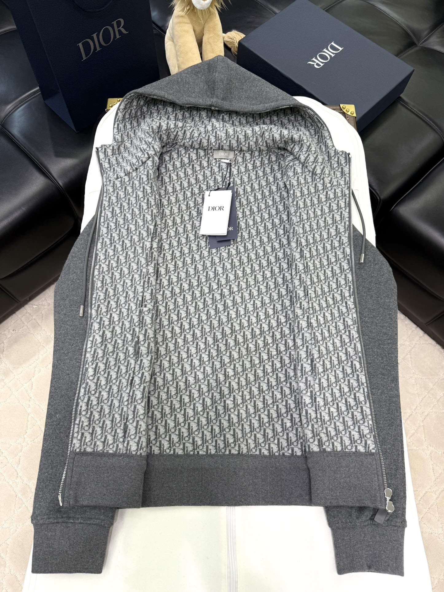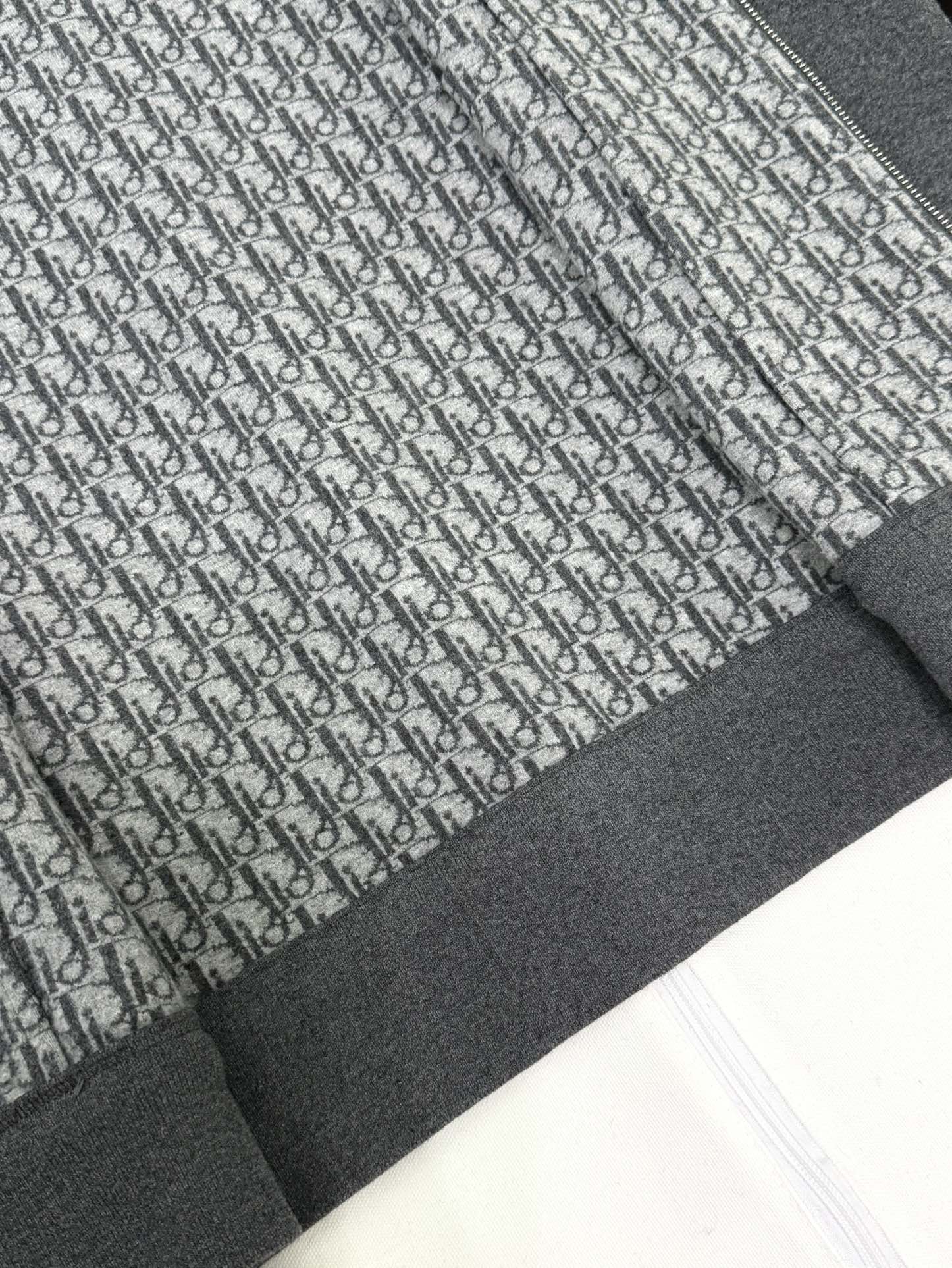 NIGO Dior Men's Spring and Autumn Solid Color Jacquard Cashmere Hooded Zipper Long Sleeve Jacket Drawstring Lace-Up Leisure Pants Suit Set #nigo74477