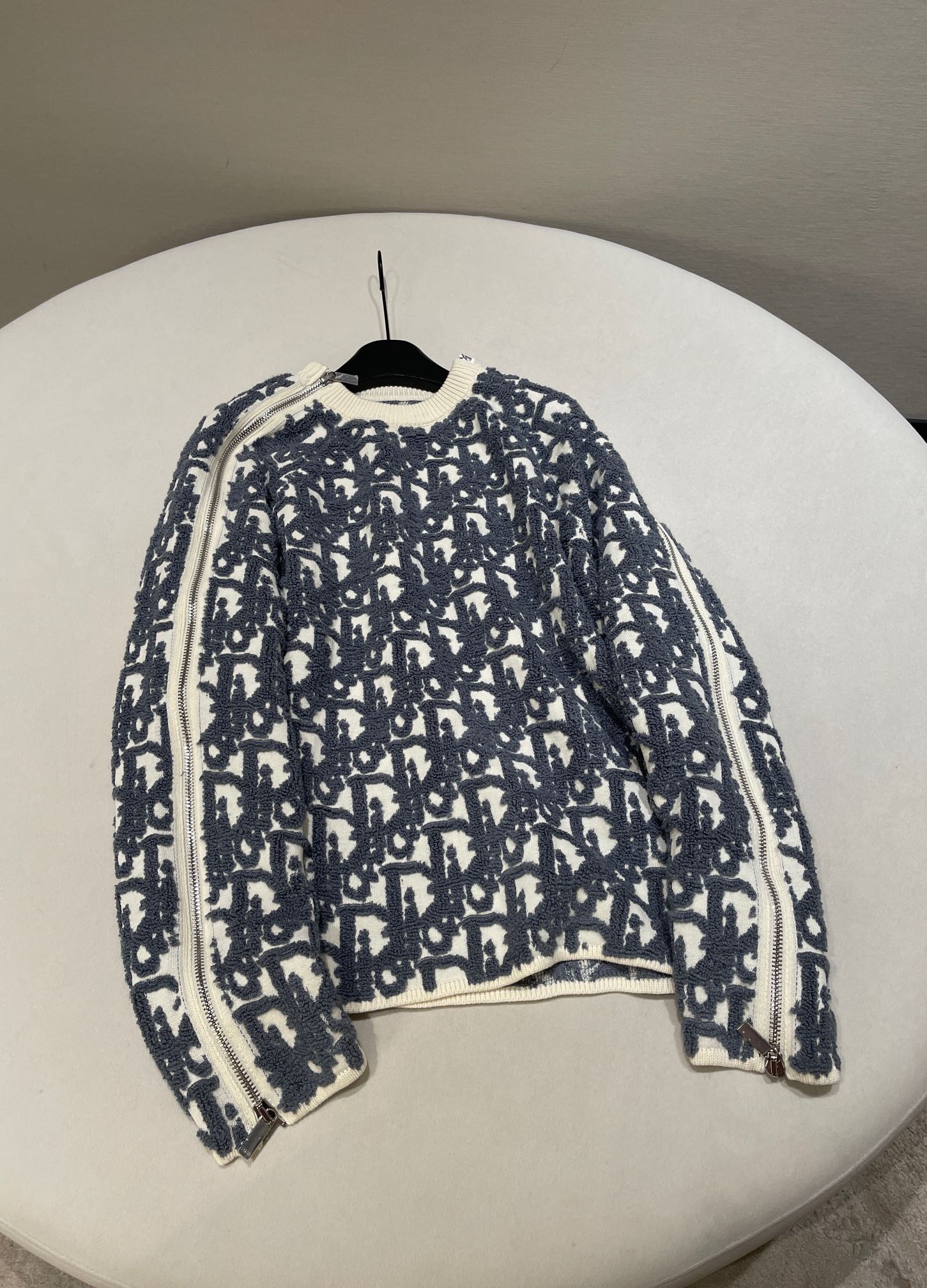 NIGO Dior Men's Spring, Autumn and Winter Oblique Printed Round Neck Long Sleeve Solid Color Fitted Sweater #nigo72184