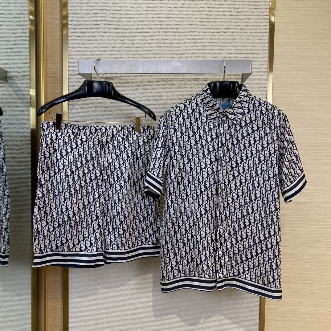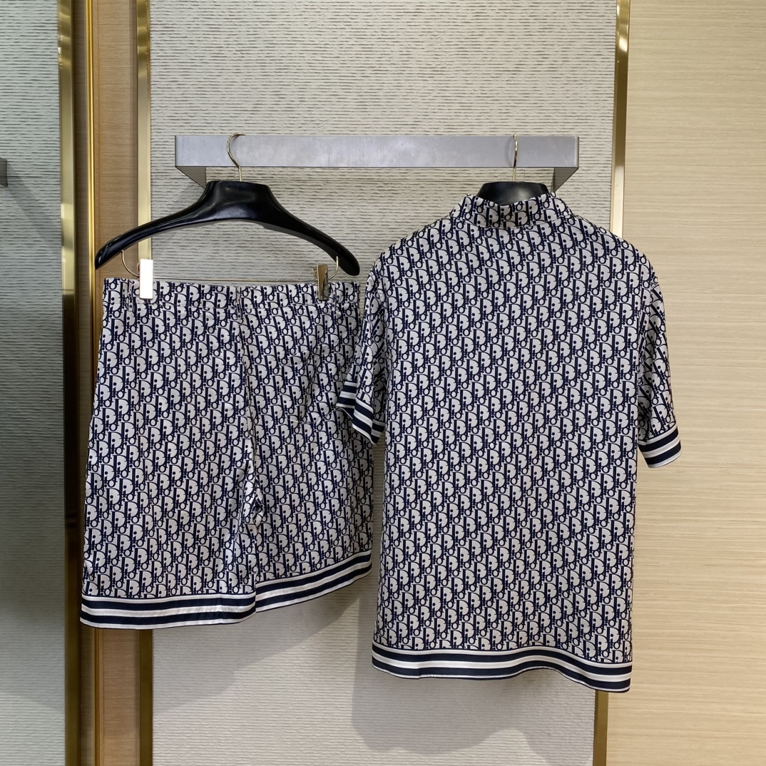 NIGO Dior Men's Summer Oblique Print Logo Pattern Short Sleeve Shirt Straight Shorts Set Comfortable Popular Wear Versatile Set Suit #nigo81231