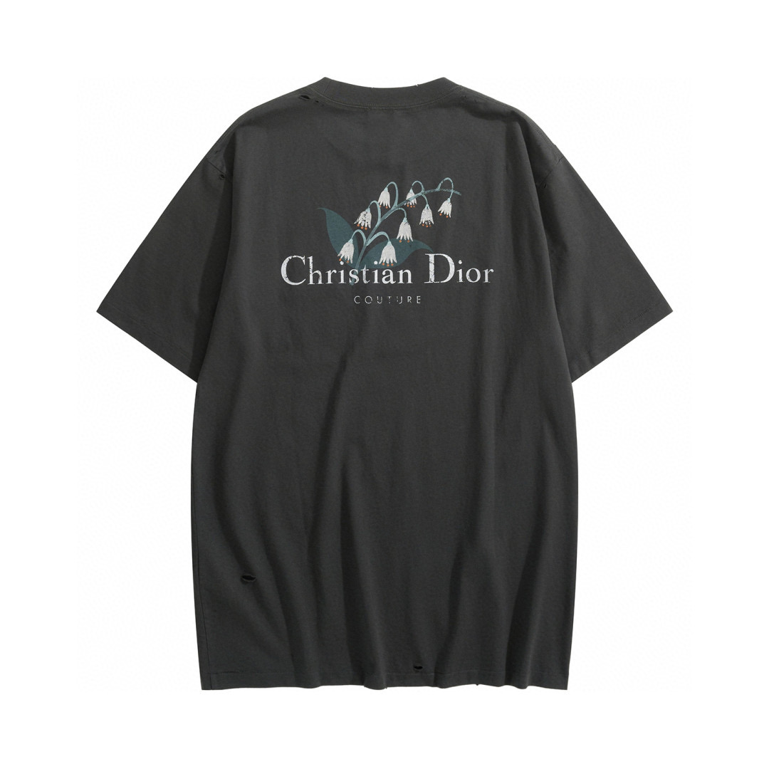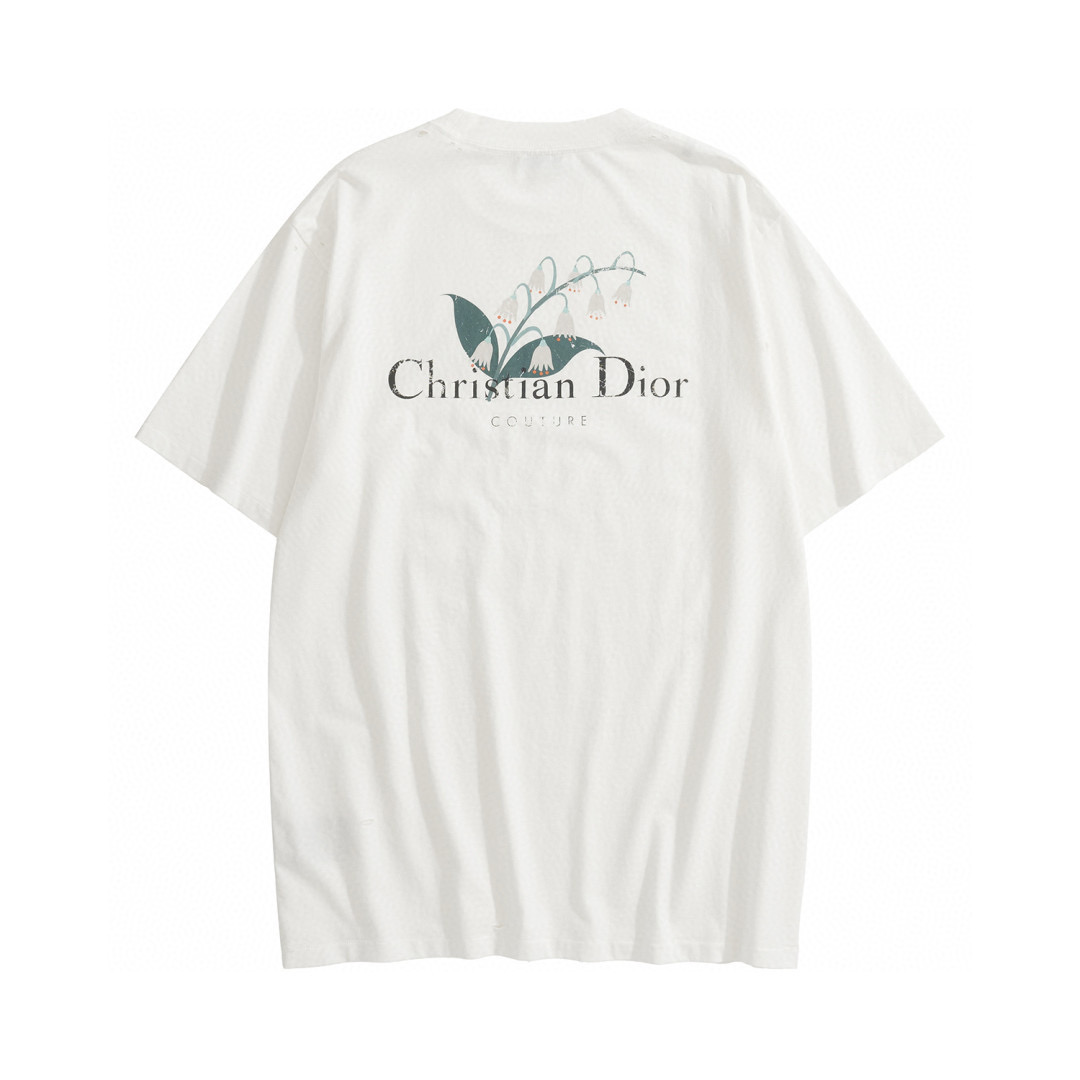 NIGO Dior Men's Summer Solid Color Floral Pattern Letter Print Round Neck Cotton Short Sleeve T-Shirt #nigo76577