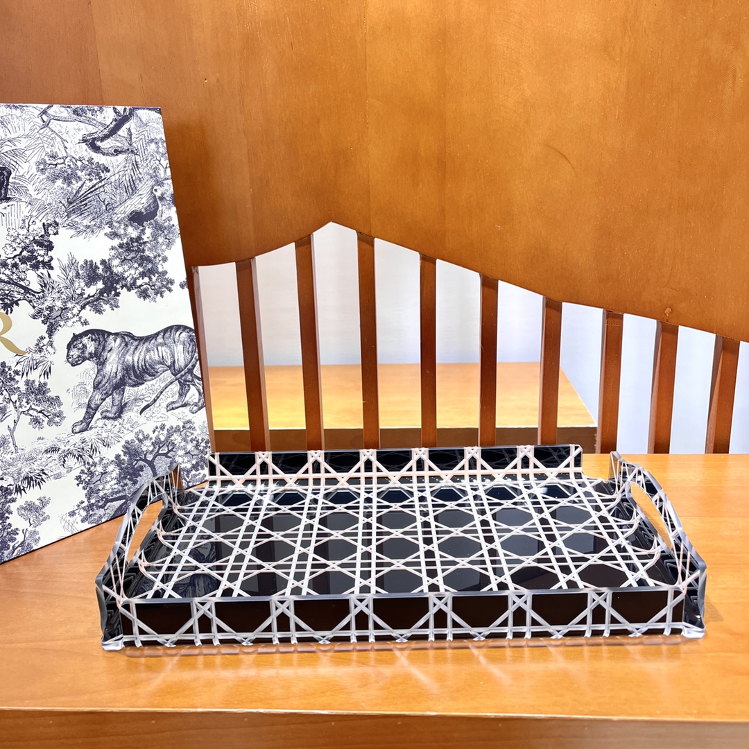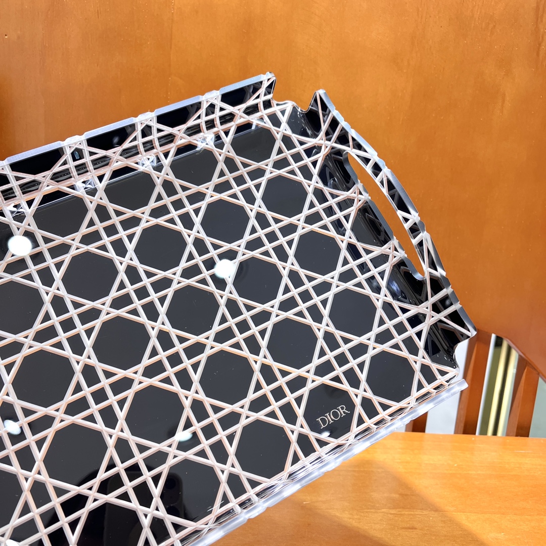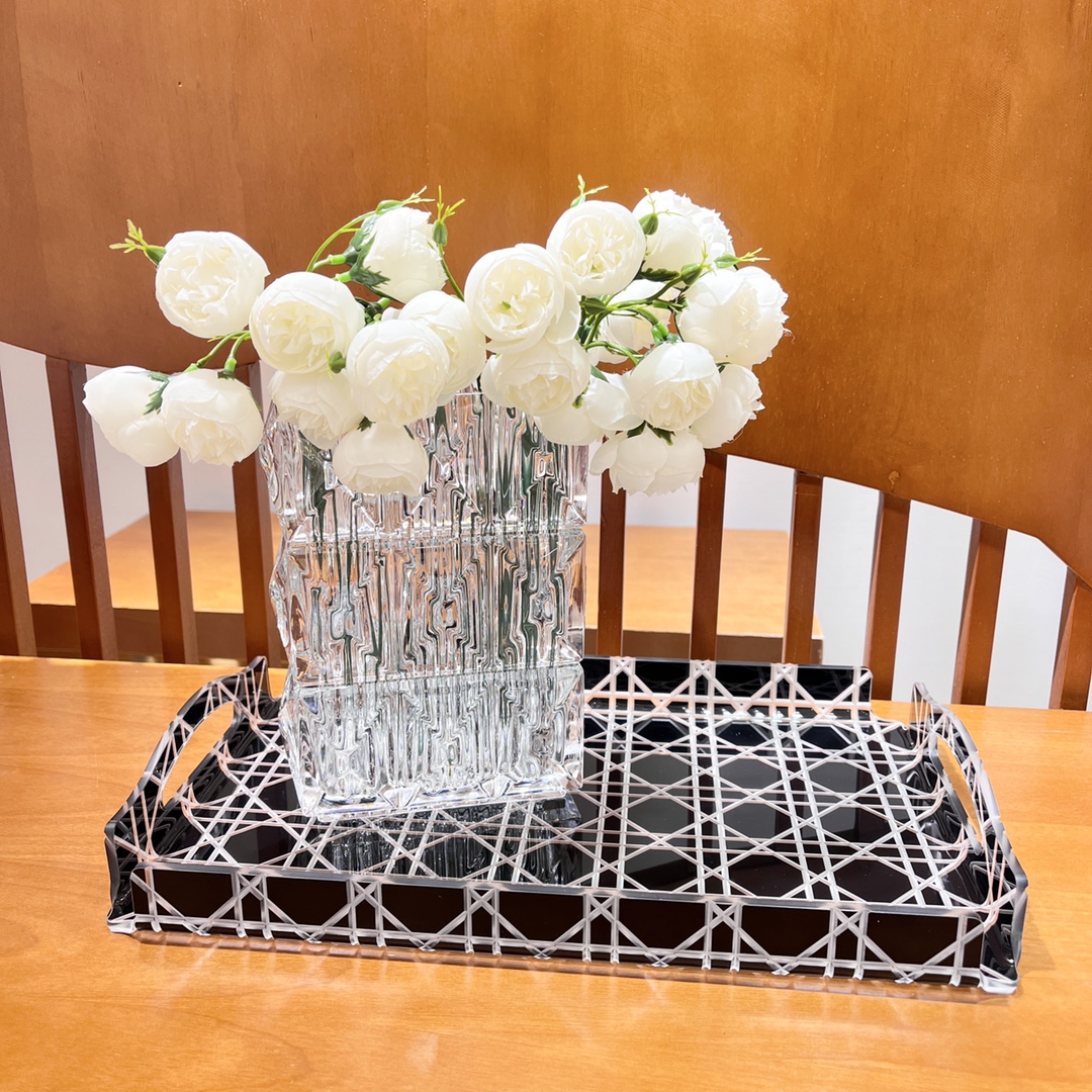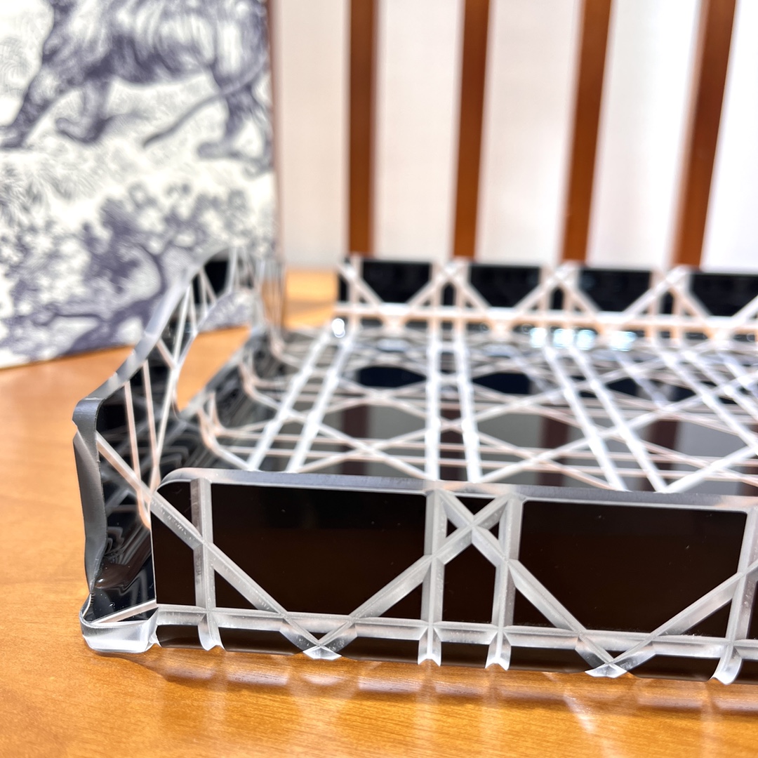 NIGO Dior Rattan Grid Acrylic Resin Tray Storage Sundries Classic Black Transparent Color Shelves Cup Holder Home Use Accessories #nigo71567