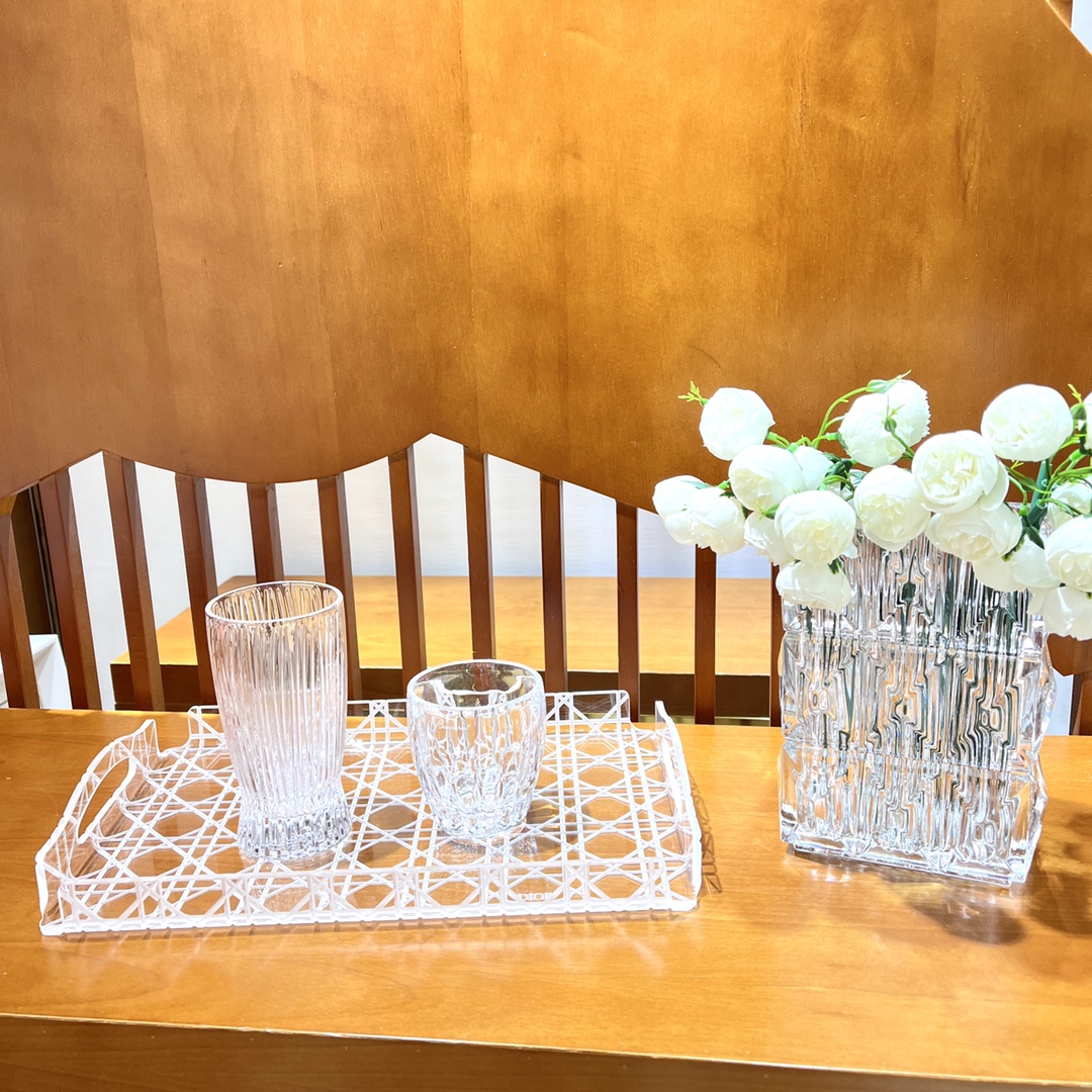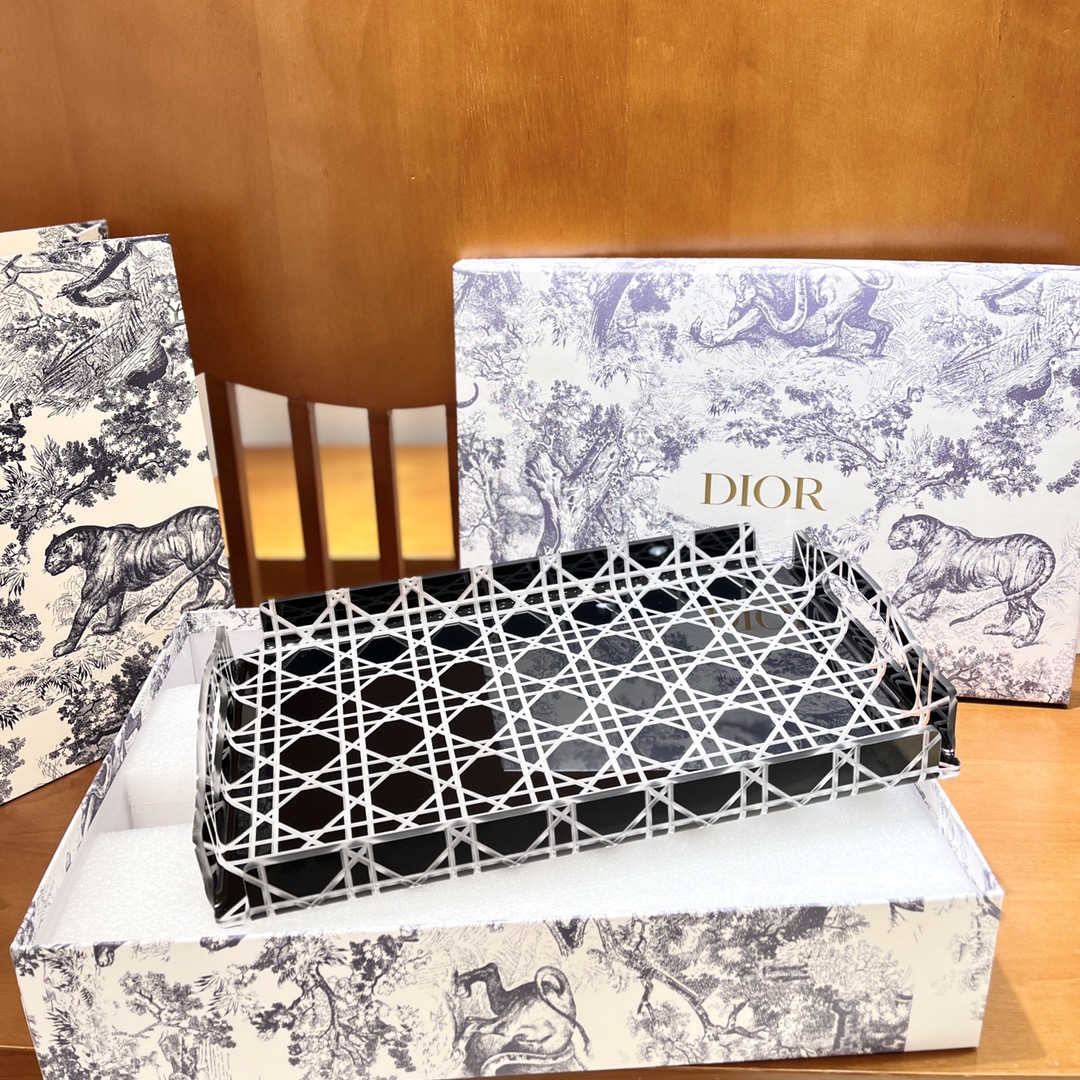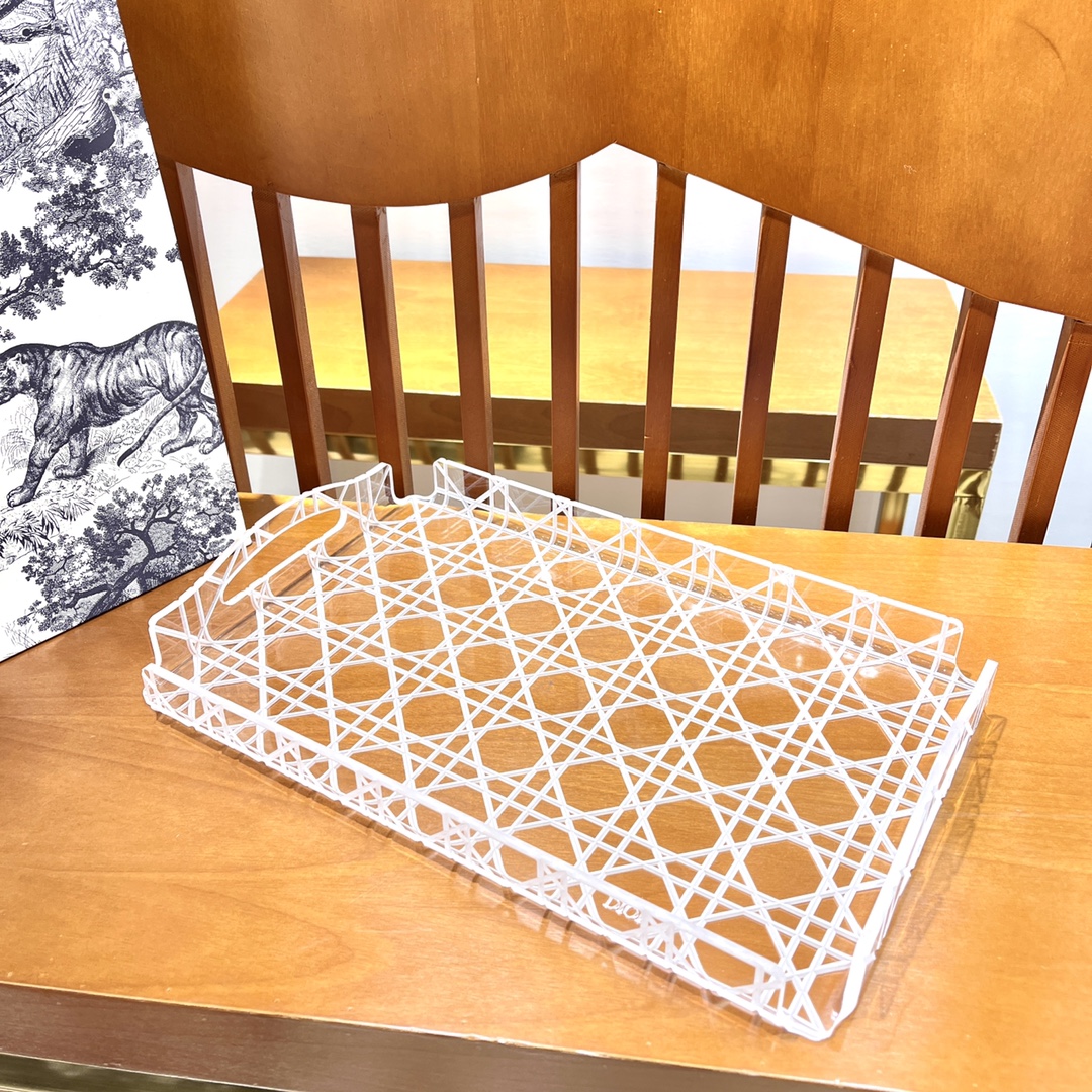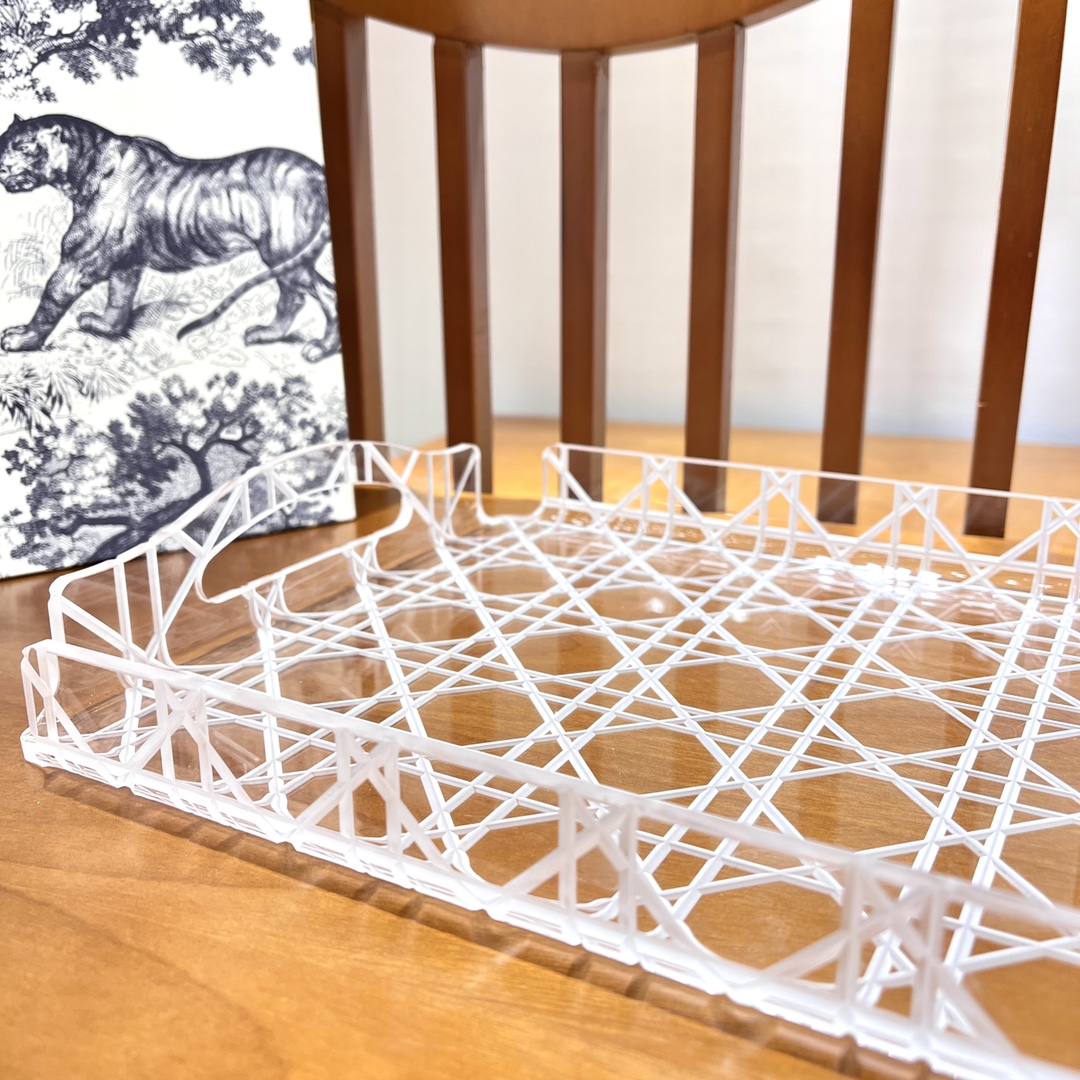 NIGO Dior Rattan Grid Acrylic Resin Tray Storage Sundries Classic Black Transparent Color Shelves Cup Holder Home Use Accessories #nigo71567