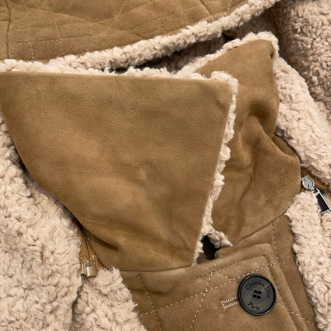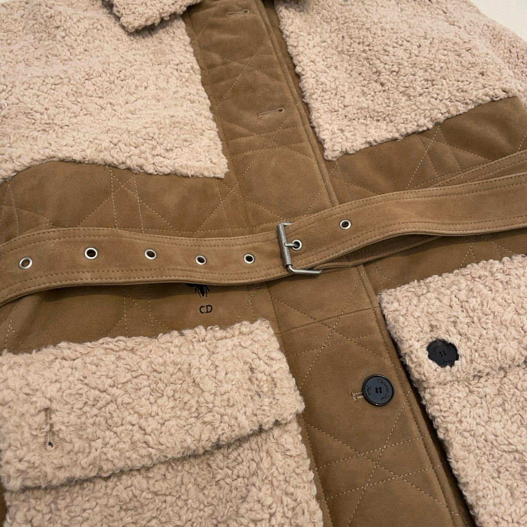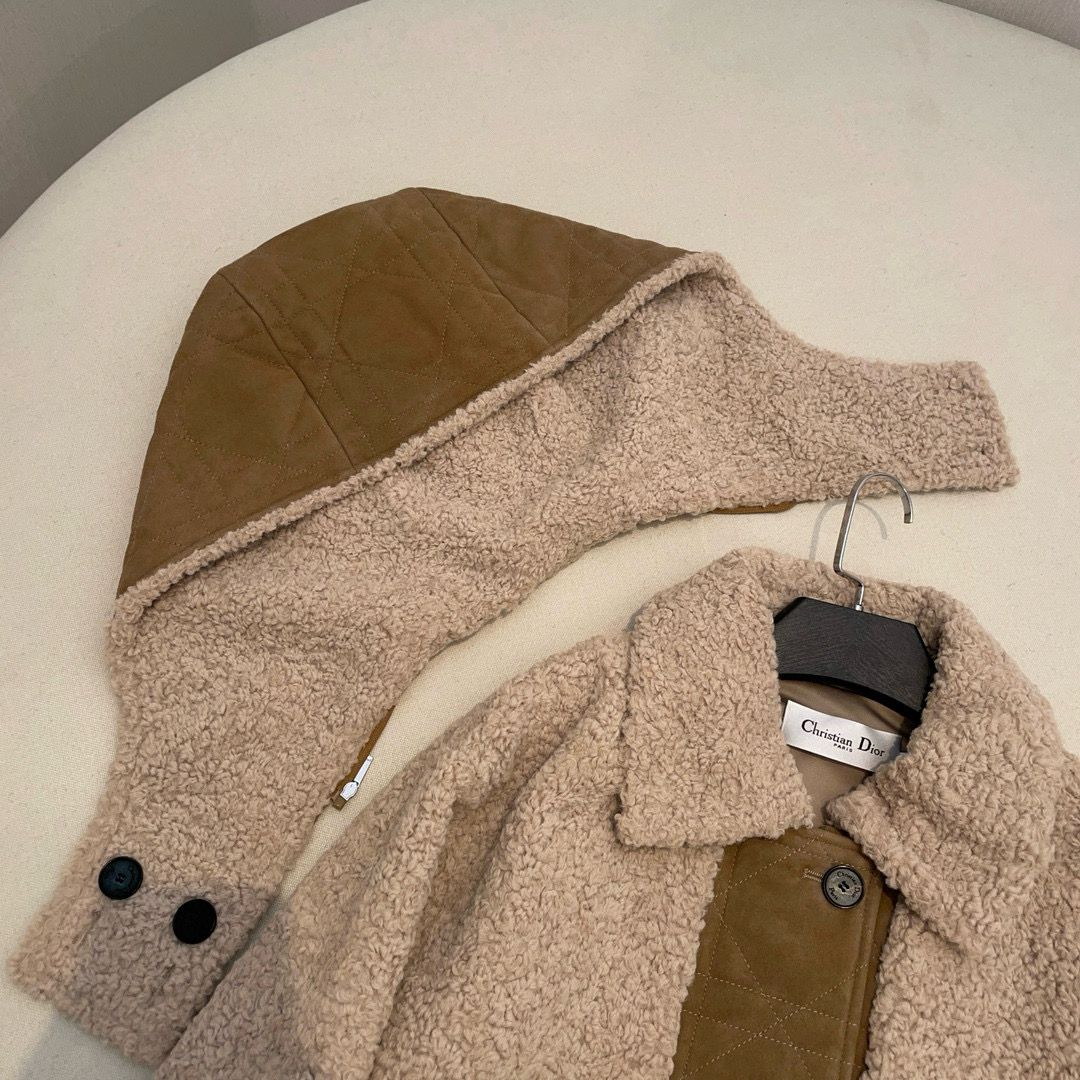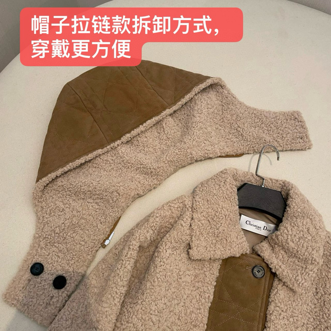 NIGO Dior Women's Autumn and Winter Colorblocking Lamb's Wool Patchwork Suede Long Drawstring Single-Breasted Hooded Coat Jacket #nigo74847