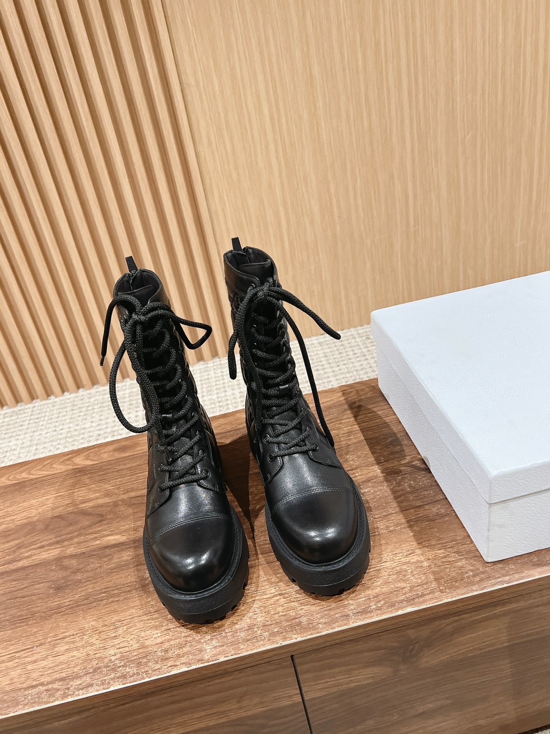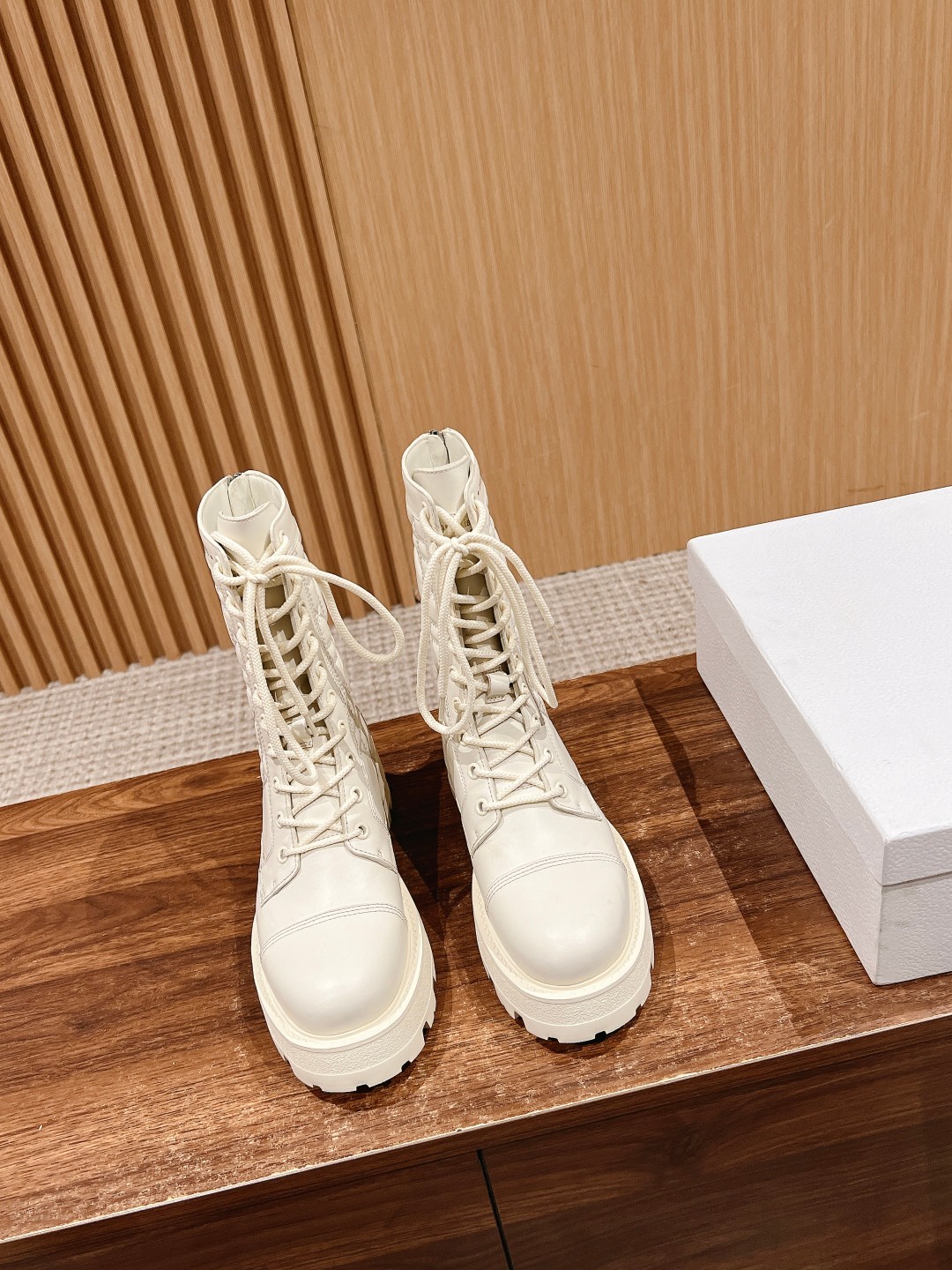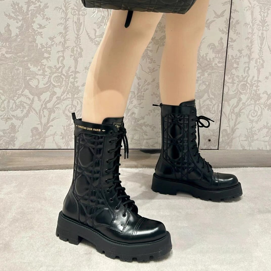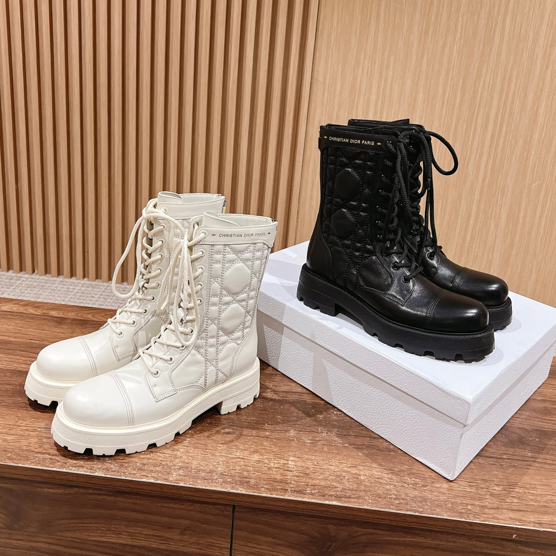 NIGO Dior Women's Autumn And Winter Solid Color Leather D-Unit Ankle Boots Round Toe Lace Up Thick Bottom Casual Short Boots Martin Boots Ngvp #nigo9199