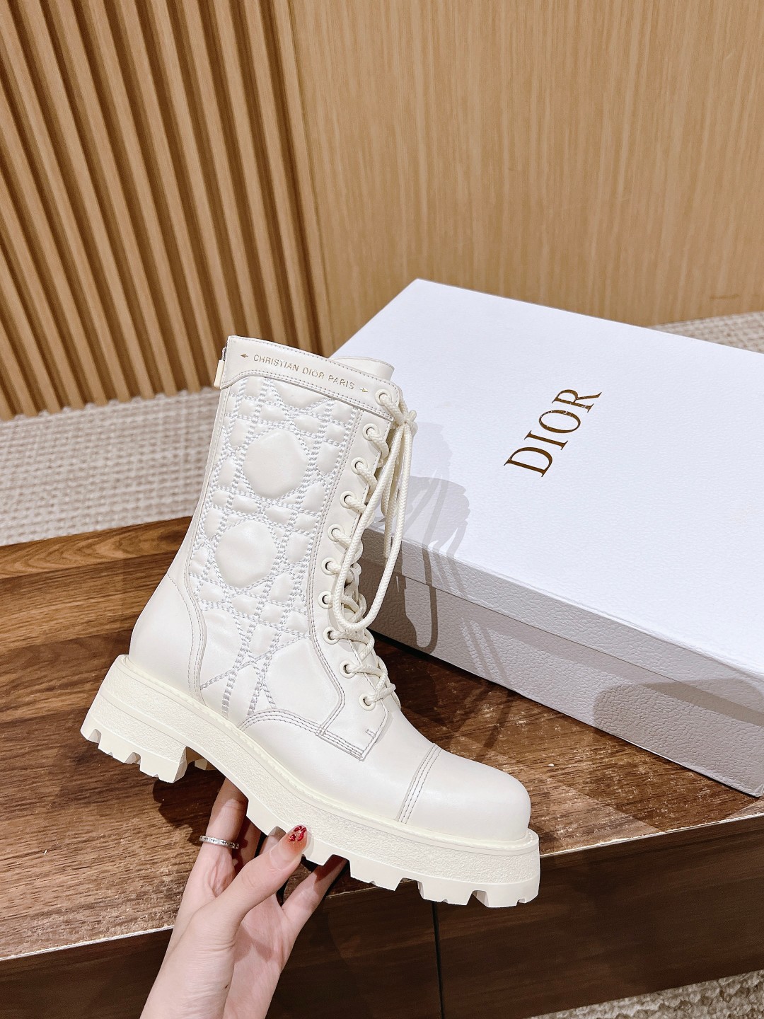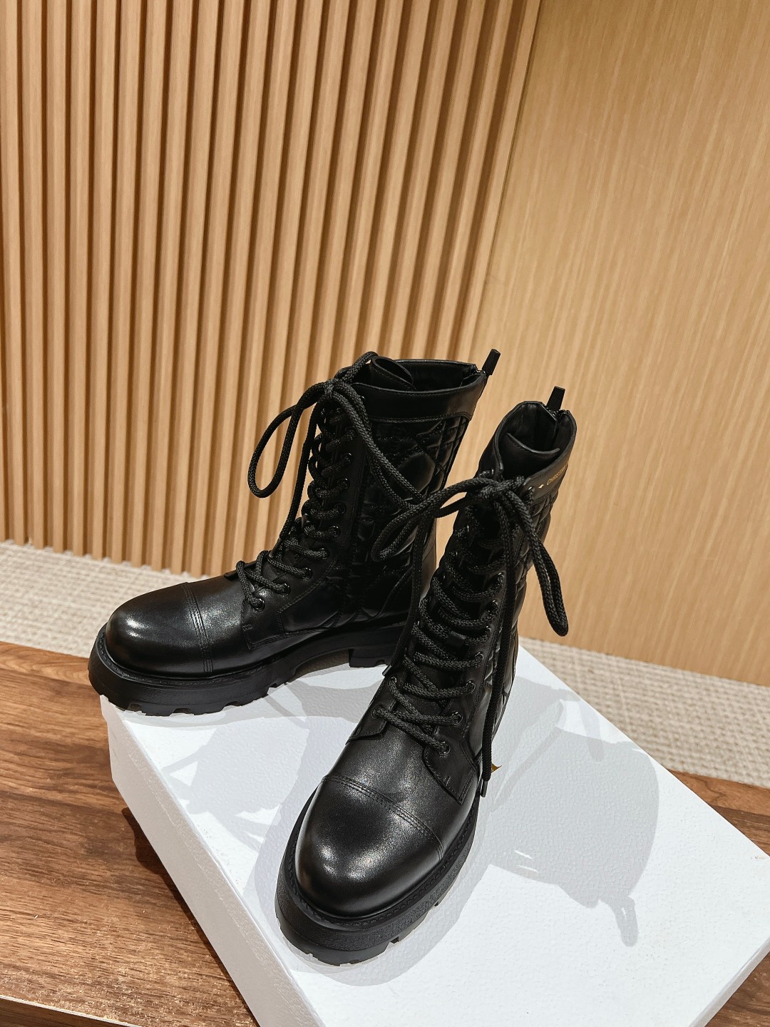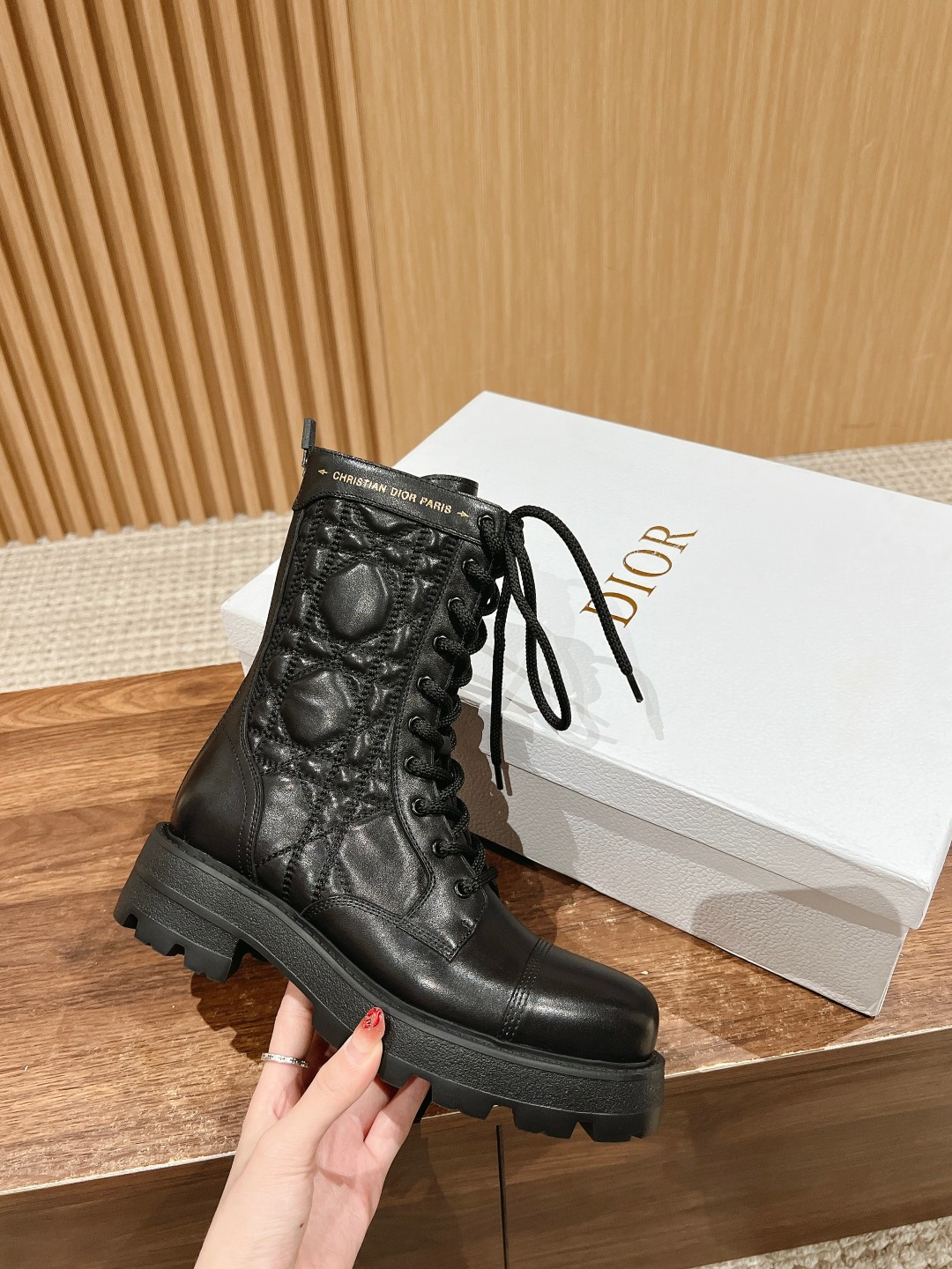NIGO Dior Women's Autumn And Winter Solid Color Leather D-Unit Ankle Boots Round Toe Lace Up Thick Bottom Casual Short Boots Martin Boots Ngvp #nigo9199