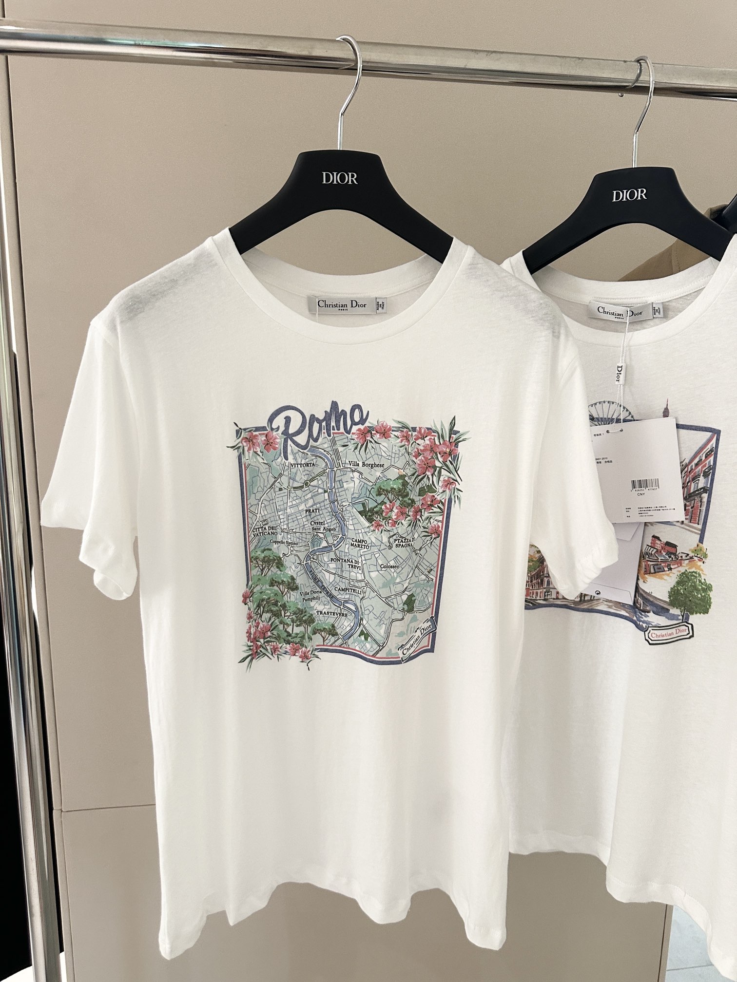 NIGO Dior Women's Dior Souvenir T-shirt Summer City Logo Printed Round Neck Cotton Linen Blend Solid Color Straight Short Sleeve T-Shirt Ngvp #nigo1934