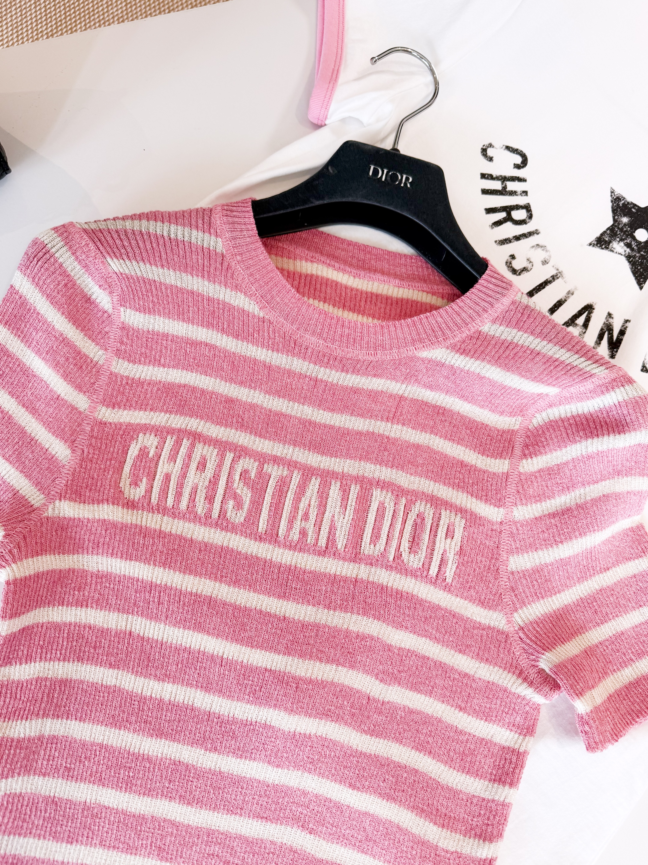 NIGO Dior Women's Dioriviera Spring & Autumn Colorblocked Stripe Silk Linen Blend Short Sleeve Knit Stretch Sweater #nigo81294