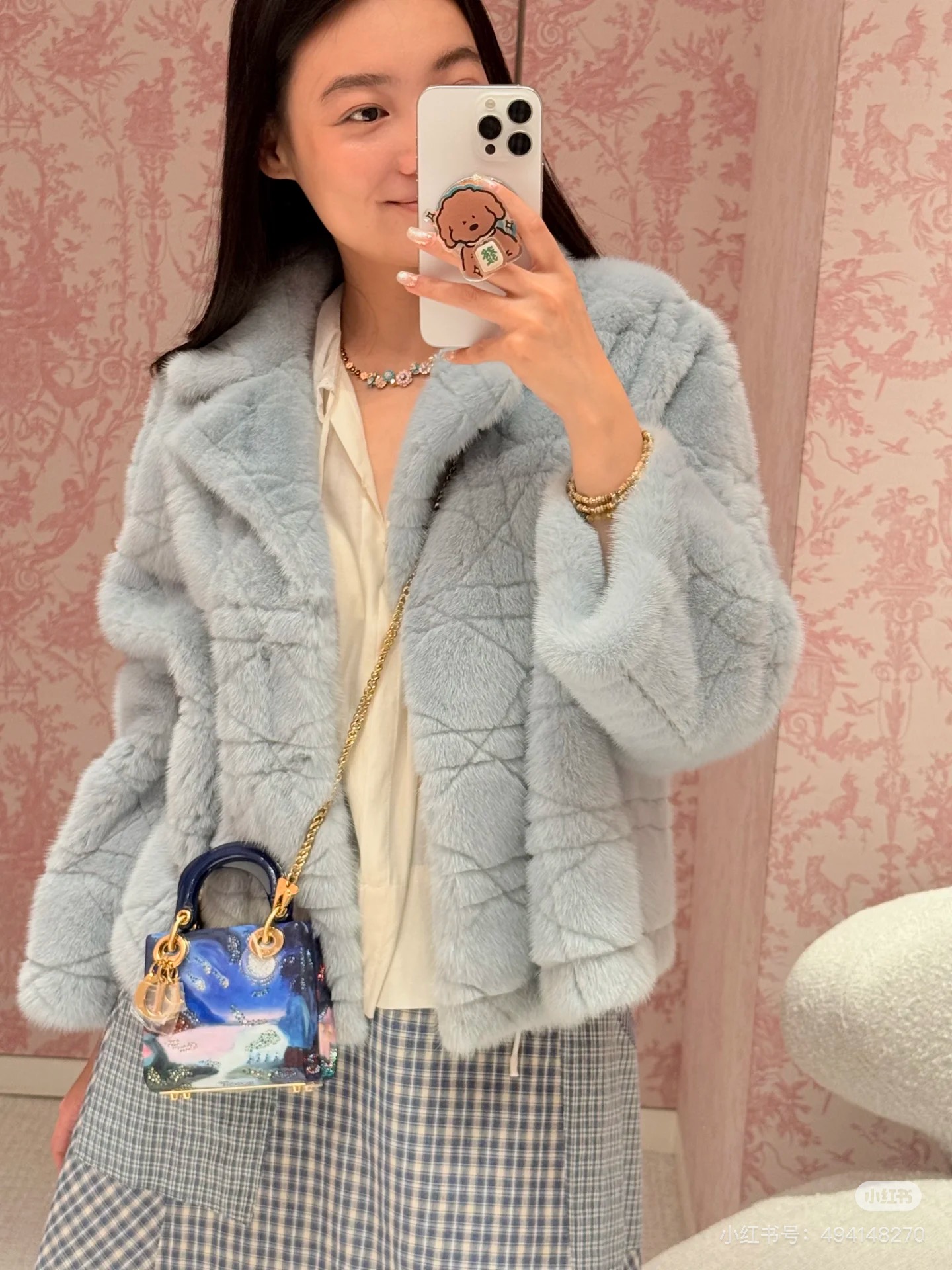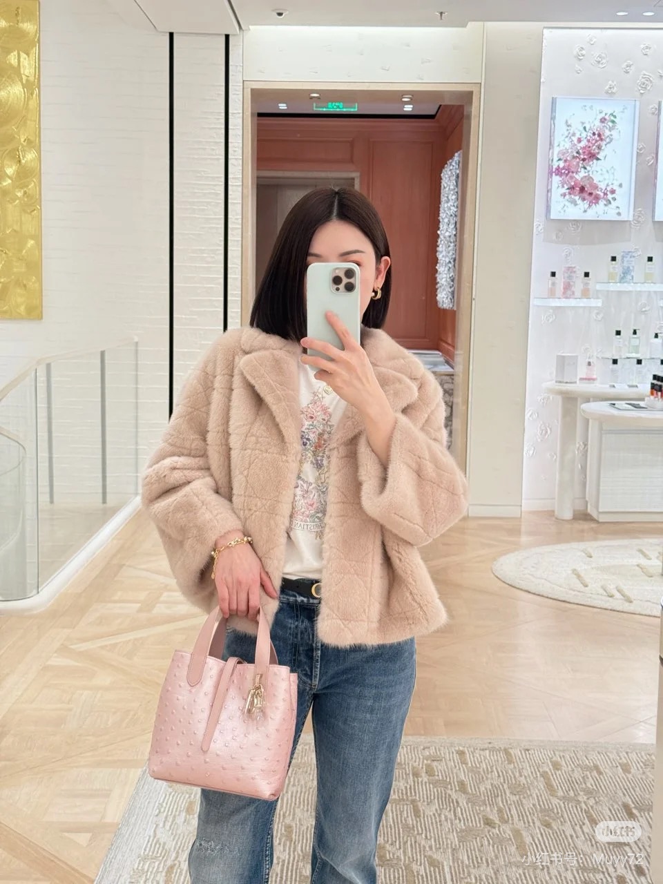 NIGO Dior Women's Fall And Winter Classic Rattan Check Mink Fur Coat 100% Kopcnhagen Velvet Mink Temperament Elegant Solid Color Plush Jacket #nigo81647
