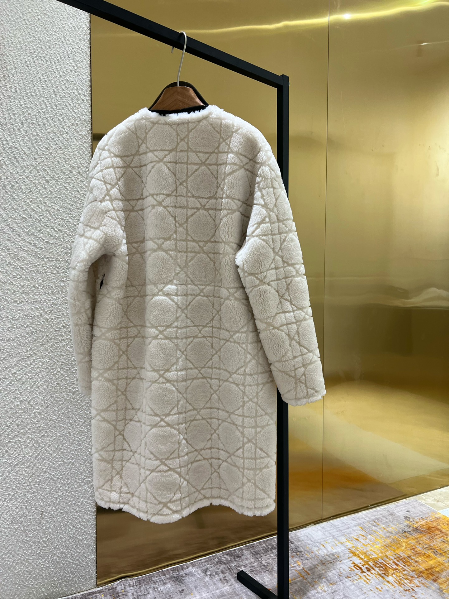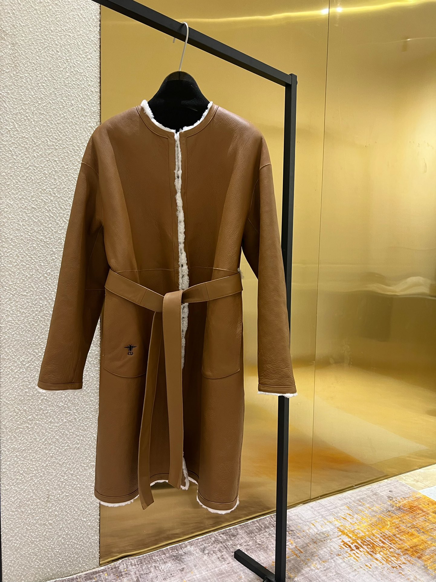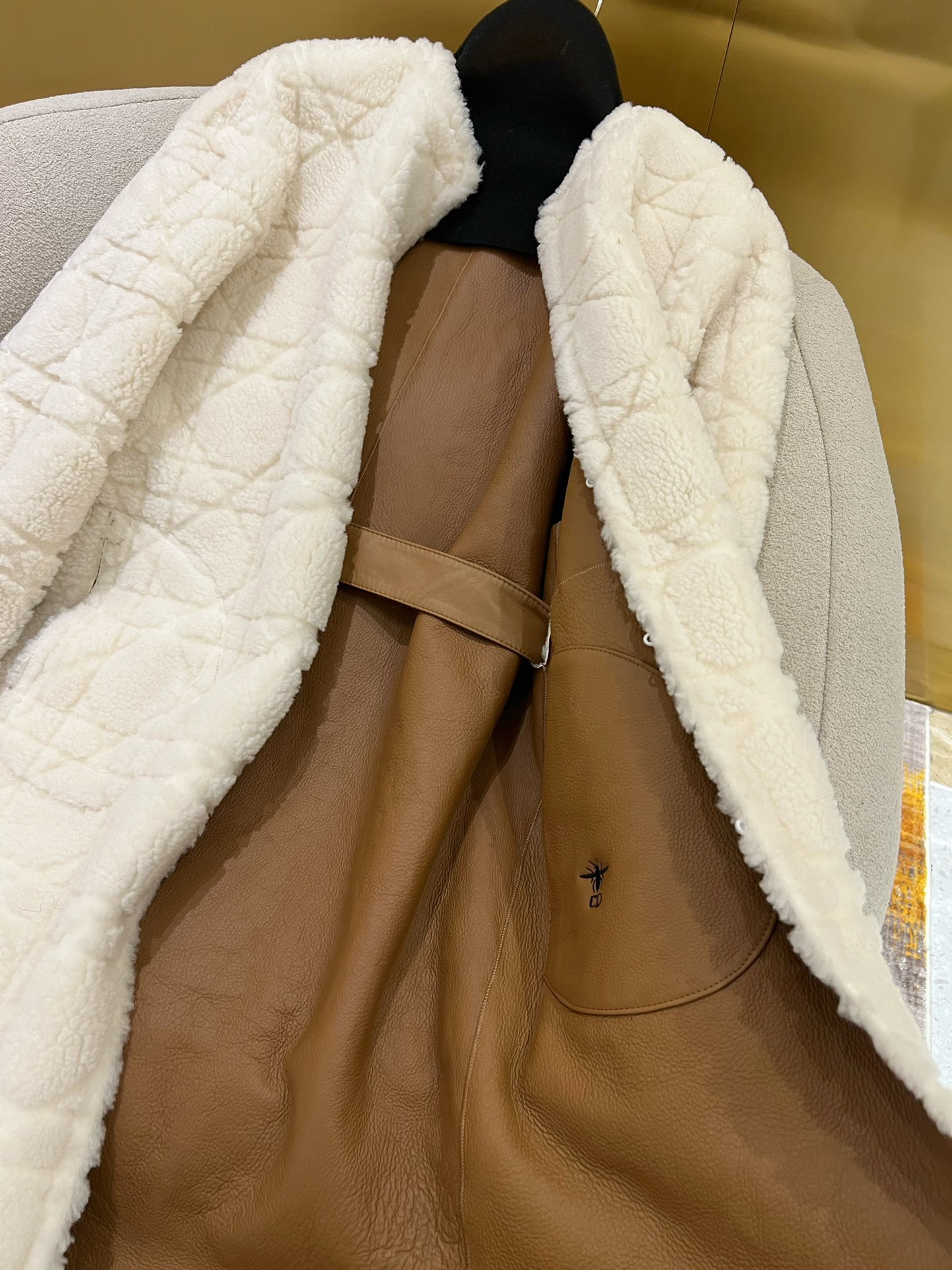 NIGO Dior Women's Fashion Fur Coat Solid Color Diamond Check Pattern Bee Embroidery Lace-Up Long Loose Double-Sided Wear Coat Ngvp #nigo9314