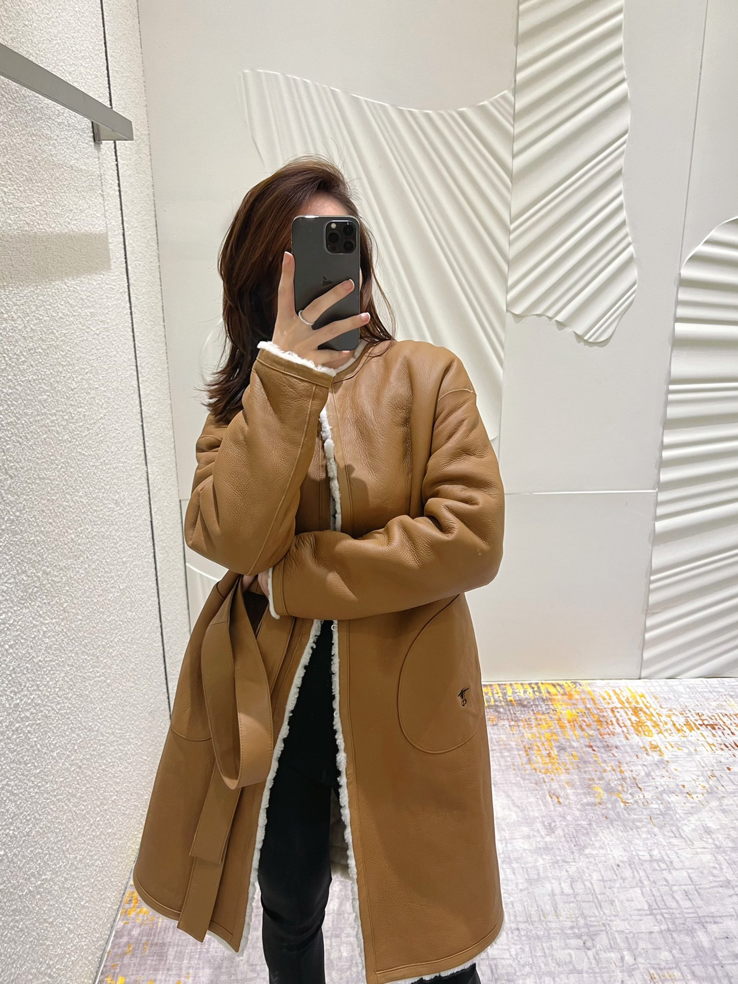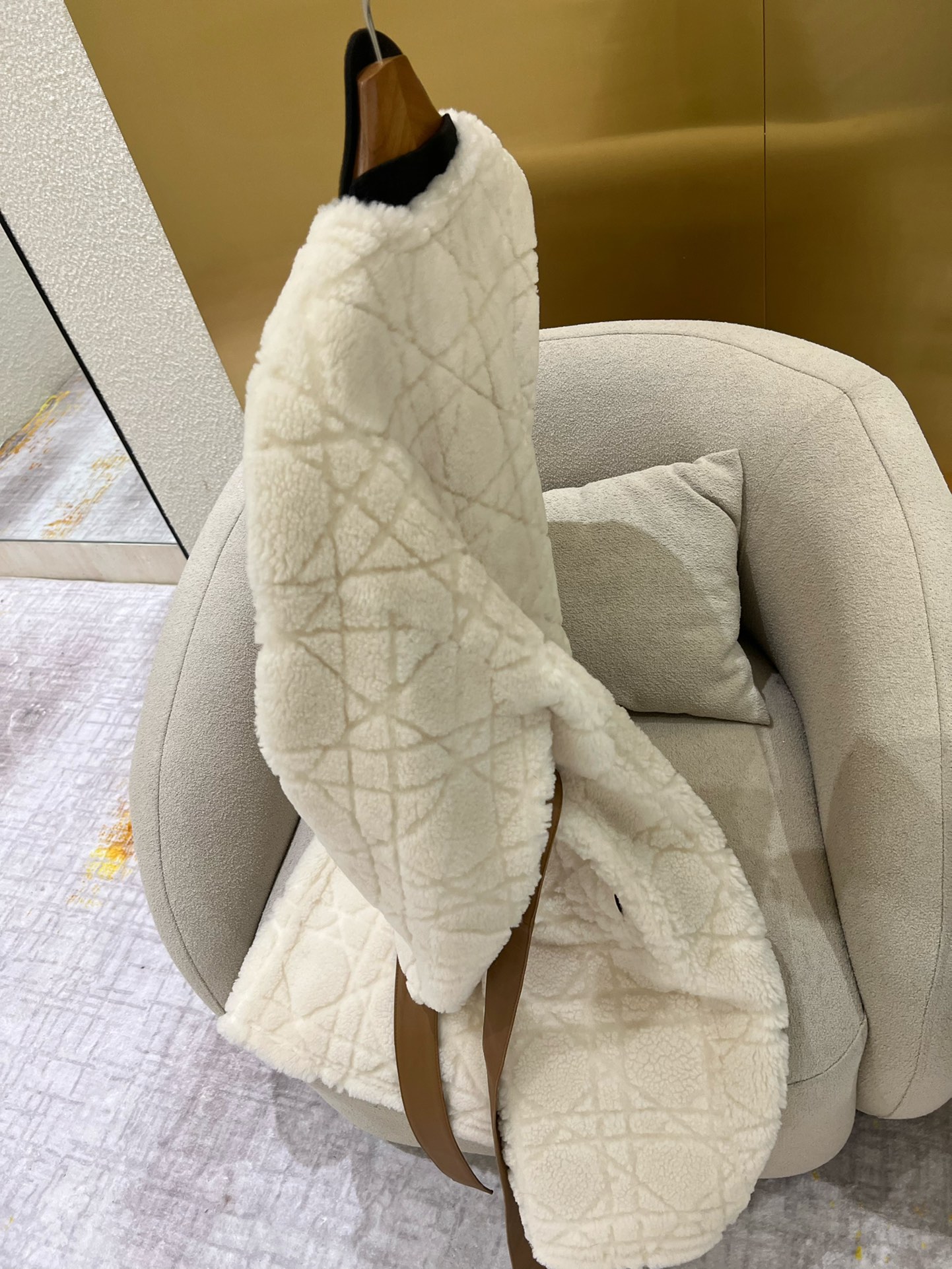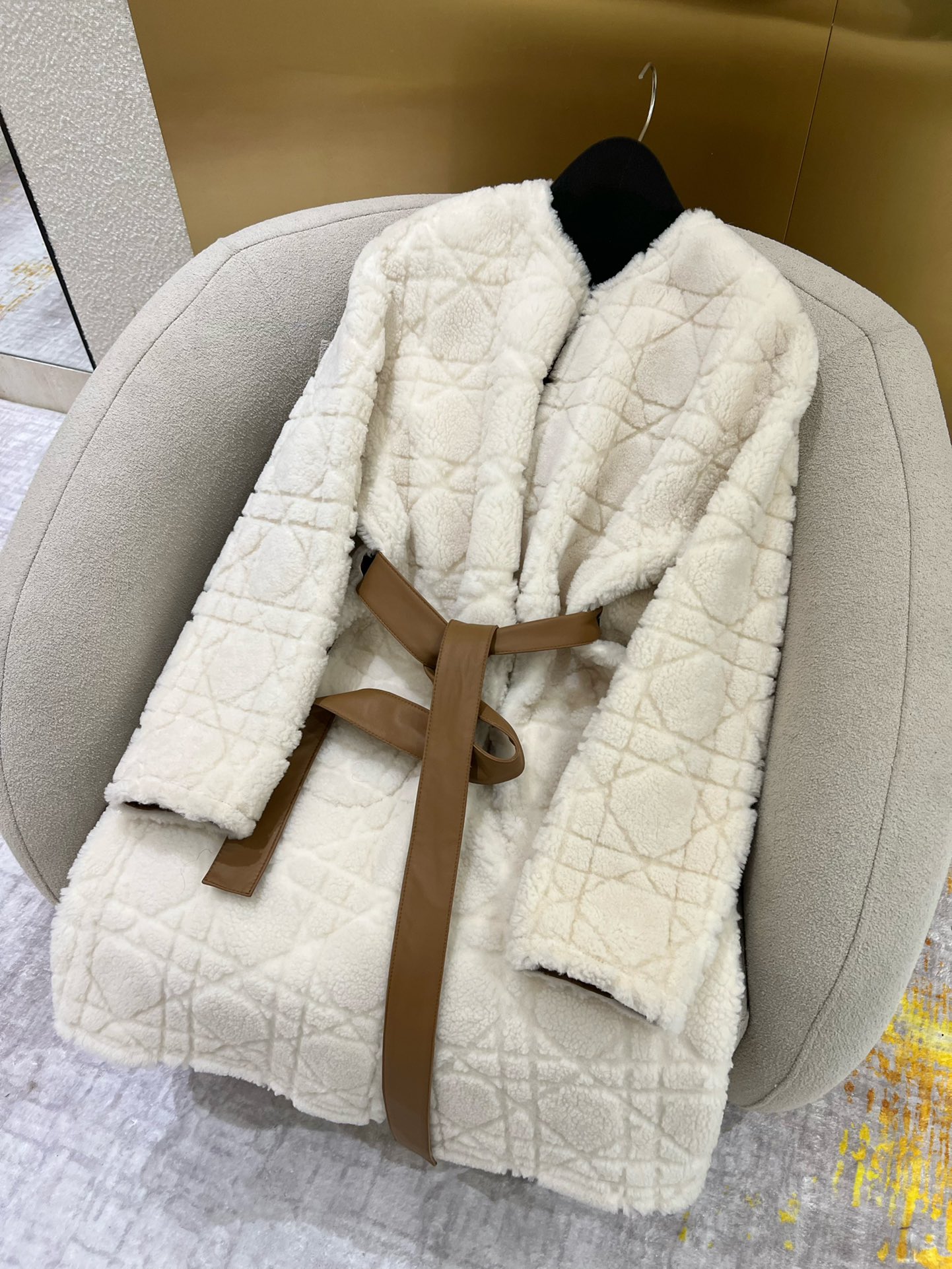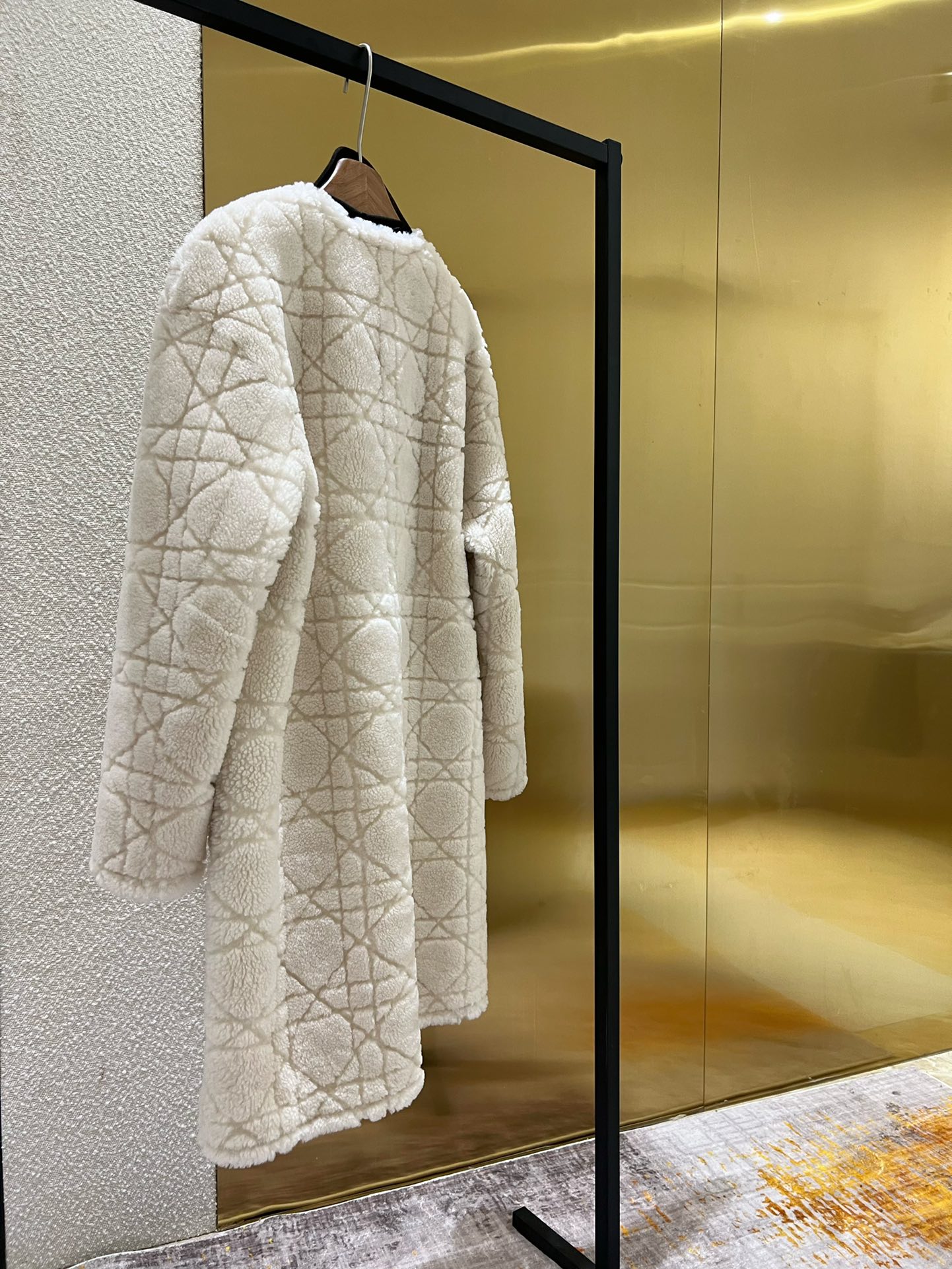 NIGO Dior Women's Fashion Fur Coat Solid Color Diamond Check Pattern Bee Embroidery Lace-Up Long Loose Double-Sided Wear Coat Ngvp #nigo9314