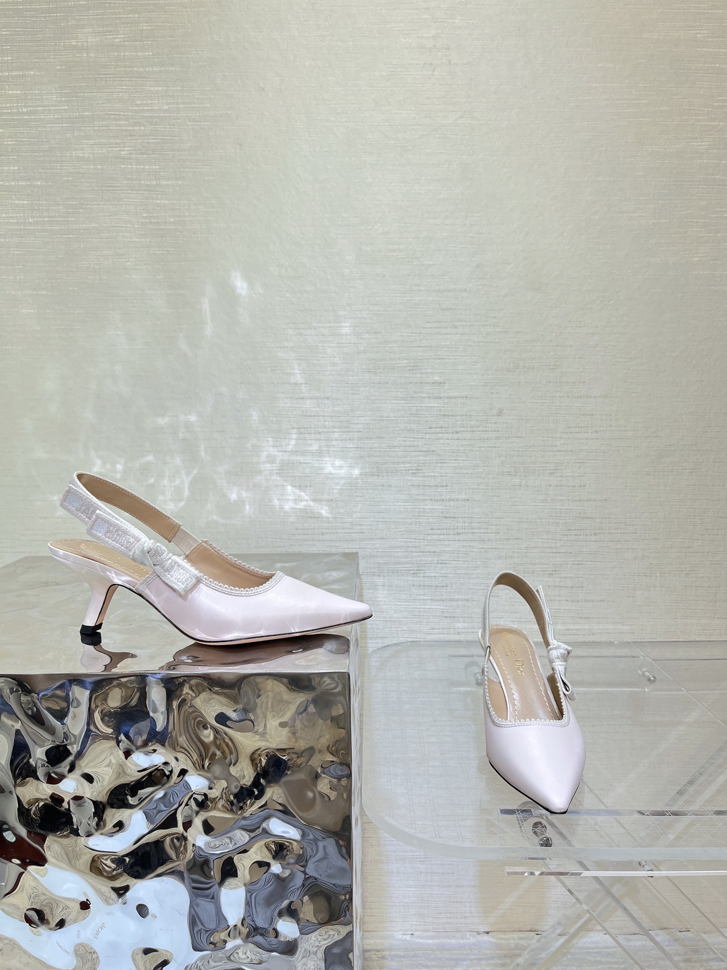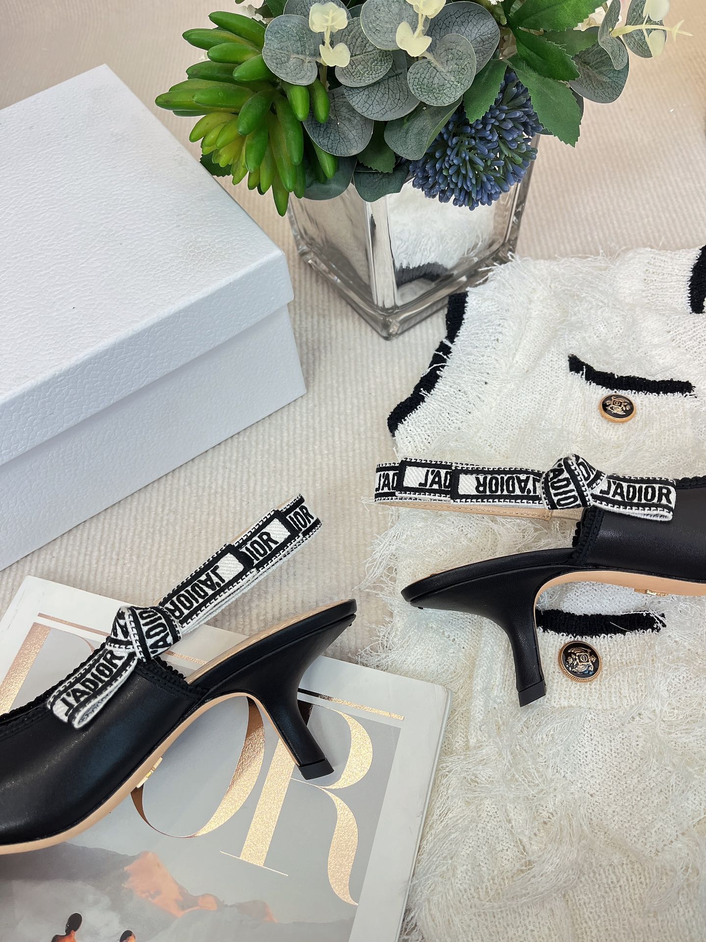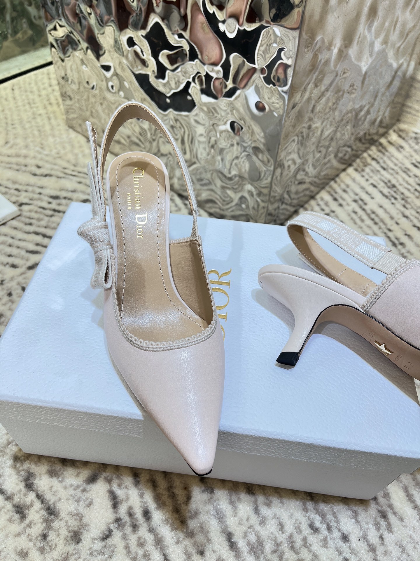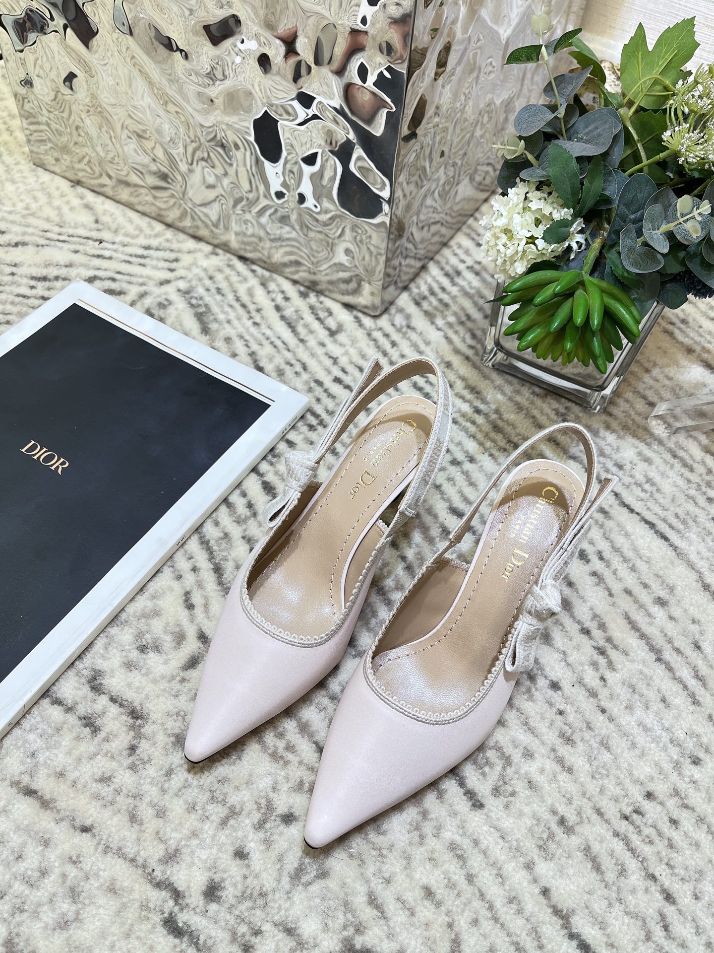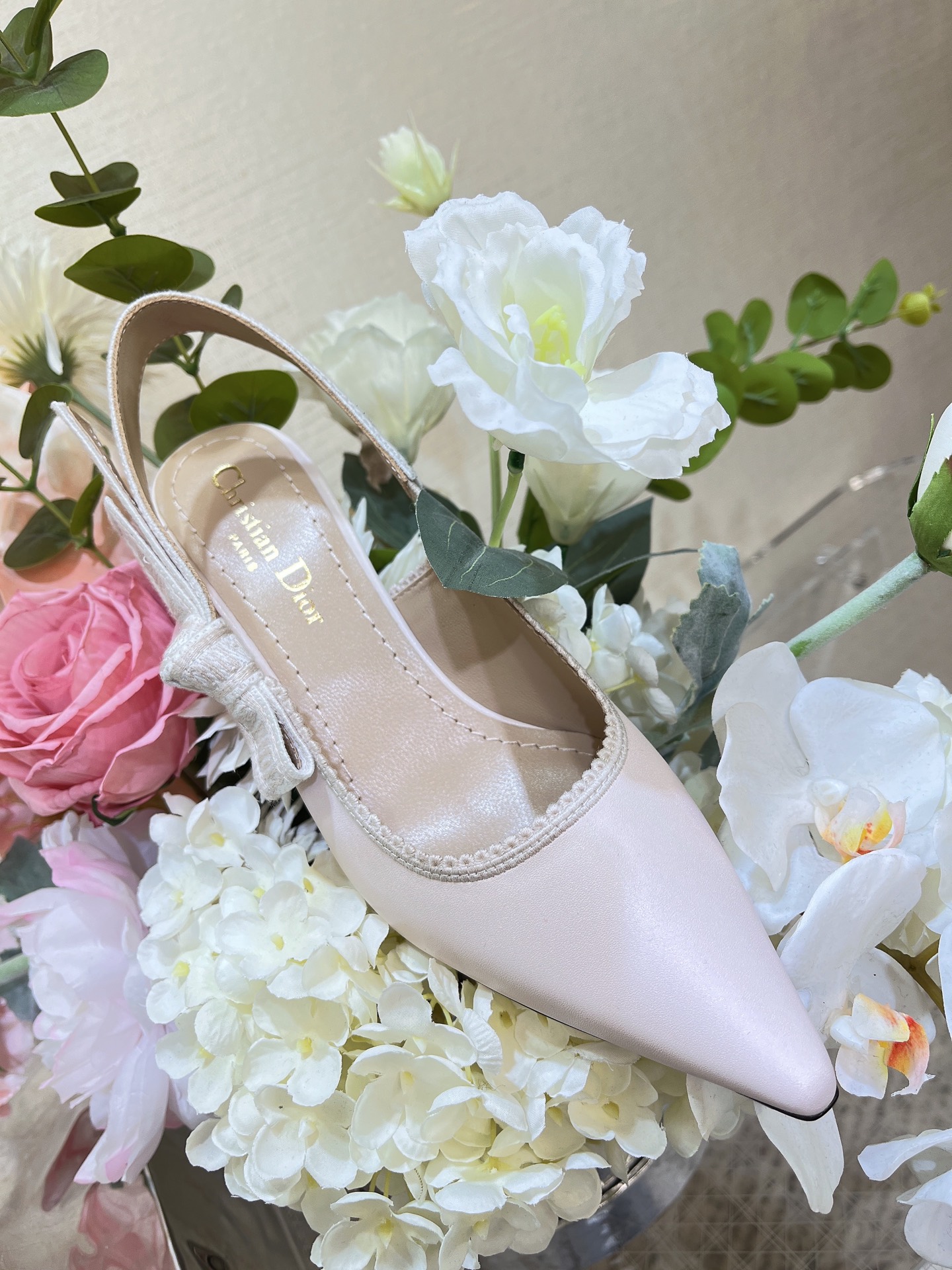 NIGO Dior Women's J'Adior Slingback Pump Embroidered Bow Leather Solid Color High-Heel Shoes Spring, Summer, and Fall Pointed-Toe Stiletto Casual Shoes Heel Height: 6.5 cm #nigo81471