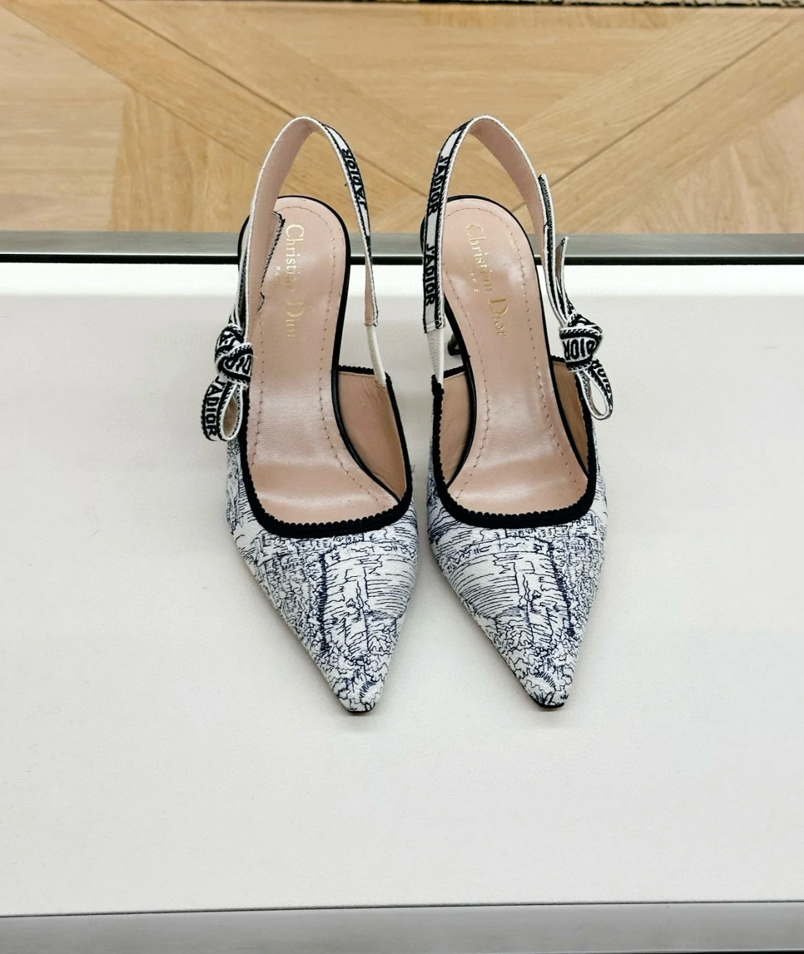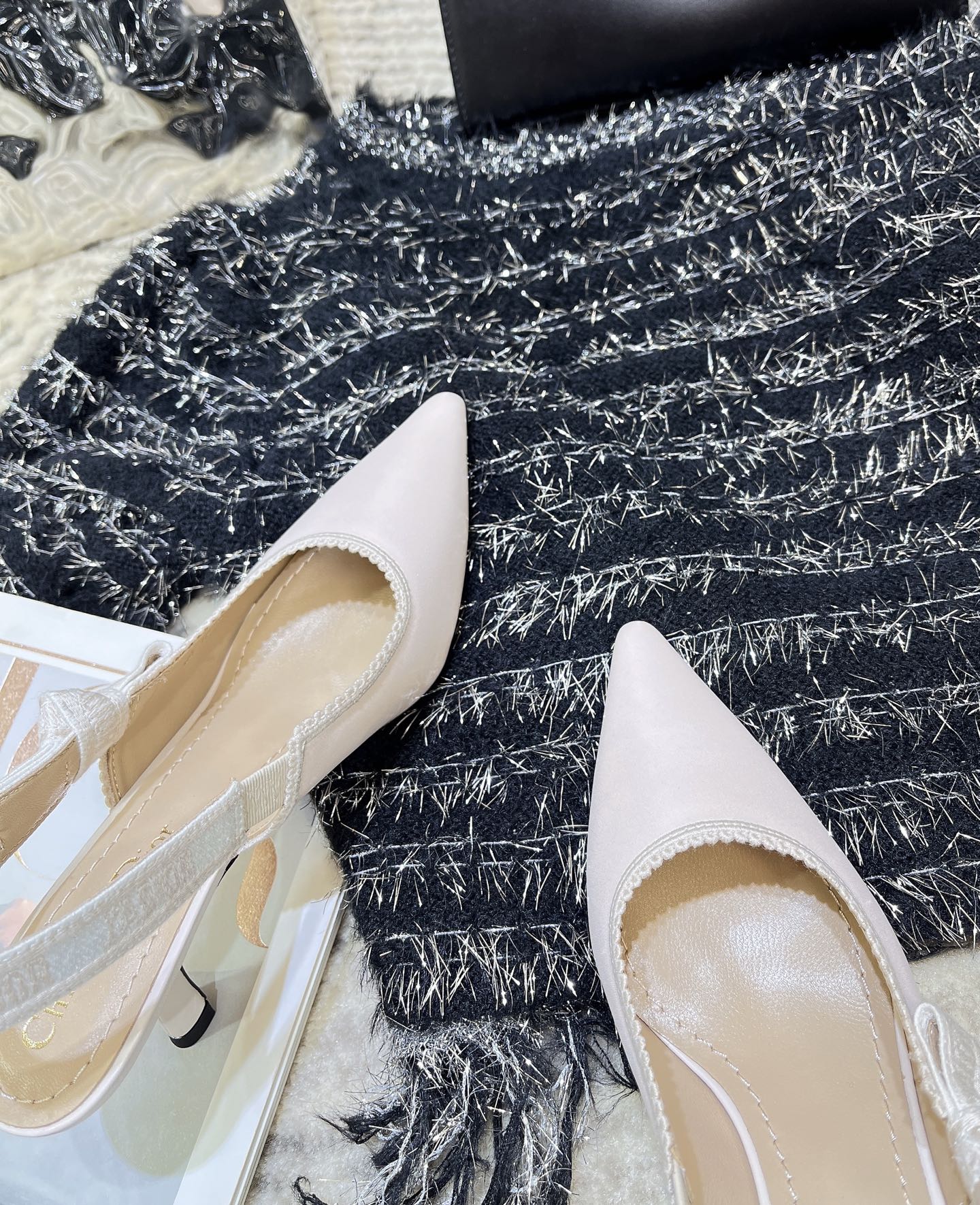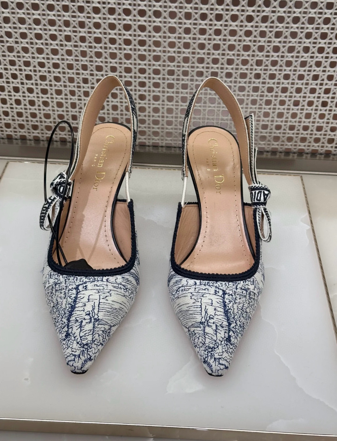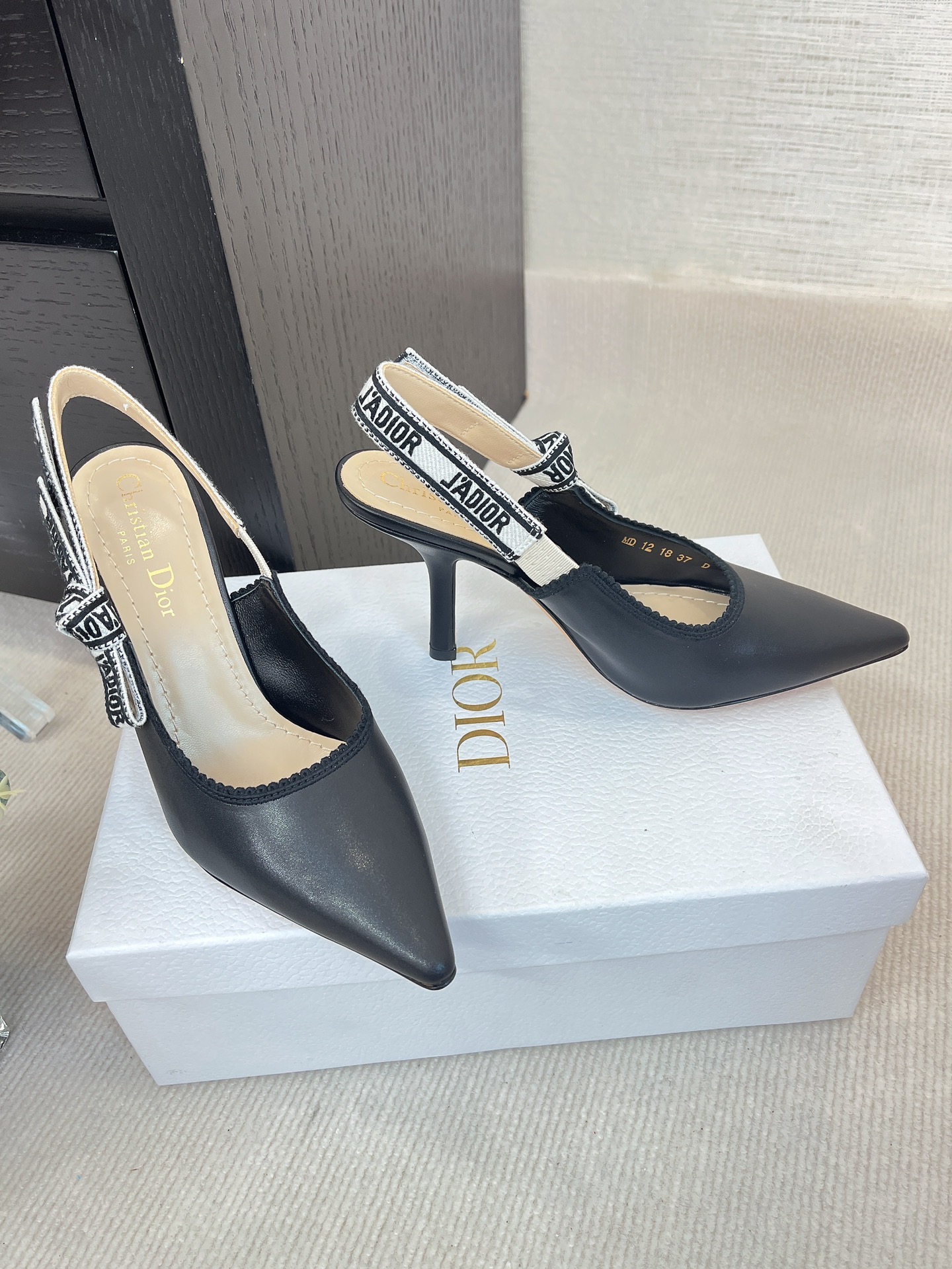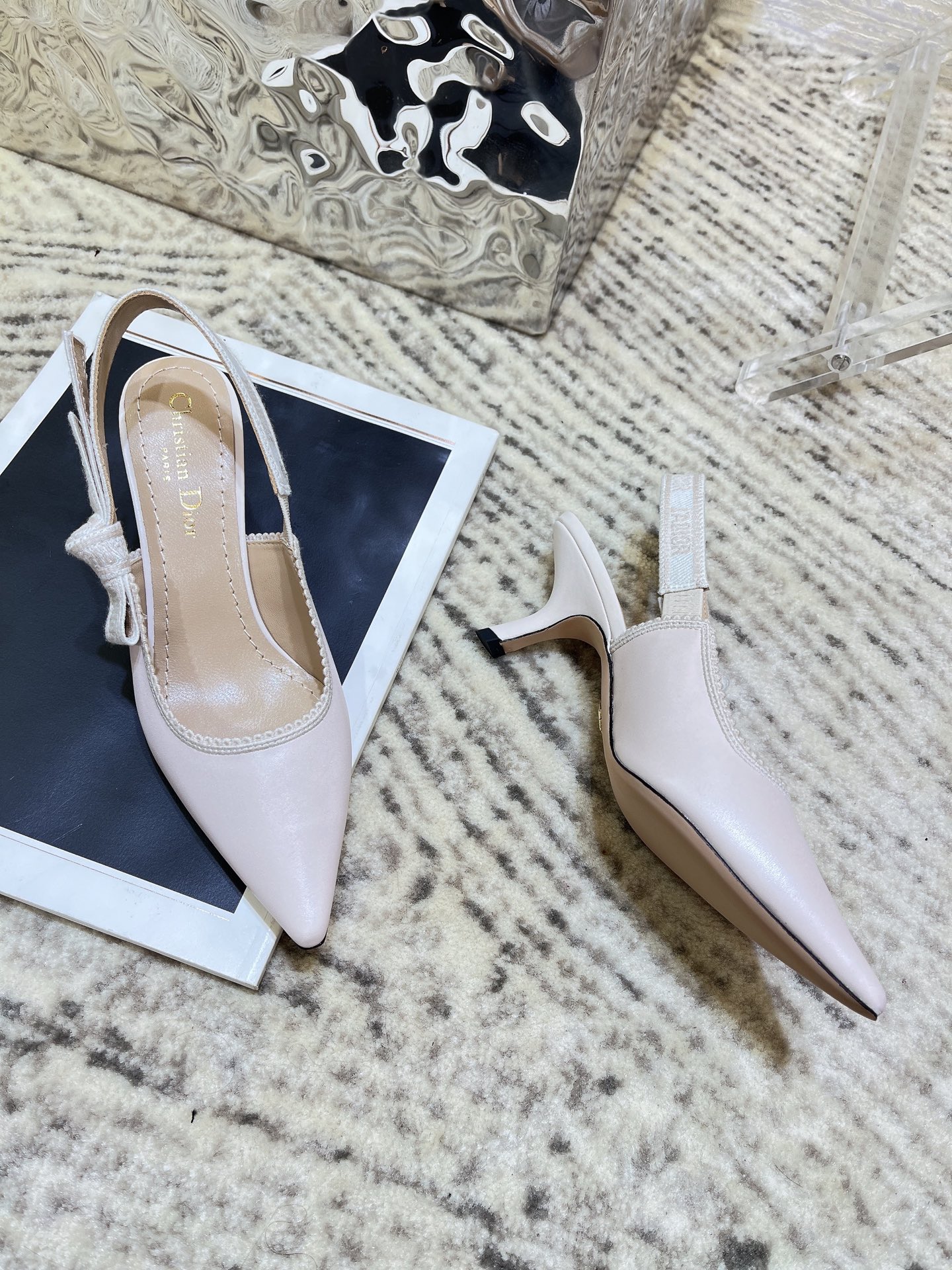 NIGO Dior Women's J'Adior Slingback Pump Embroidered Bow Leather Solid Color High-Heel Shoes Spring, Summer, and Fall Pointed-Toe Stiletto Casual Shoes Heel Height: 6.5 cm #nigo81471