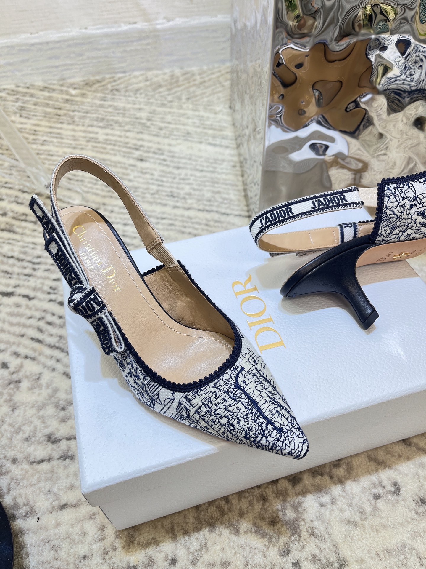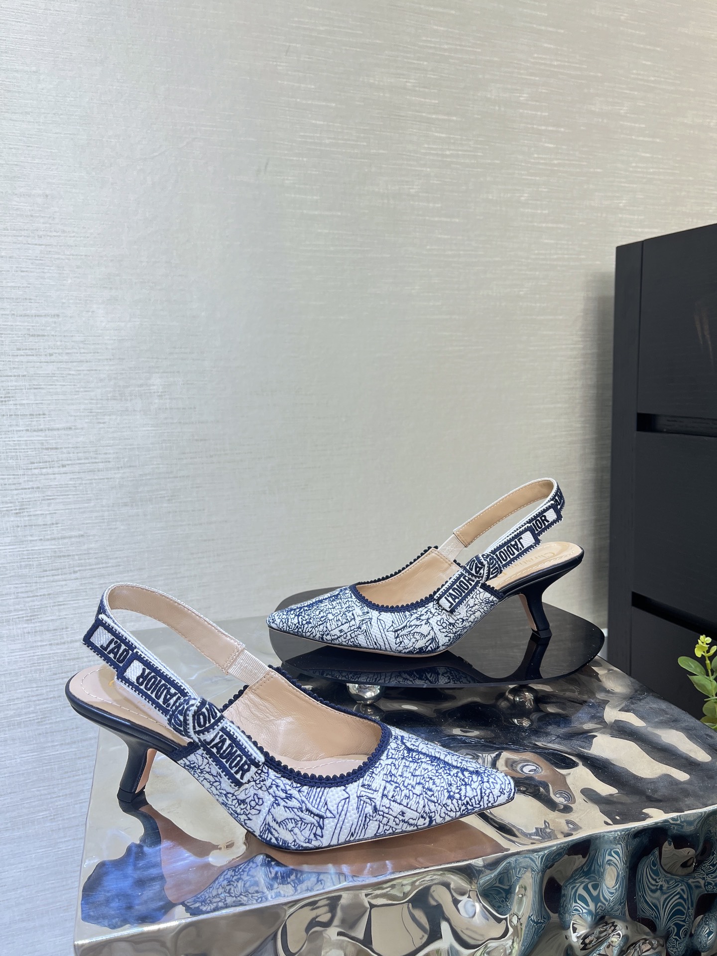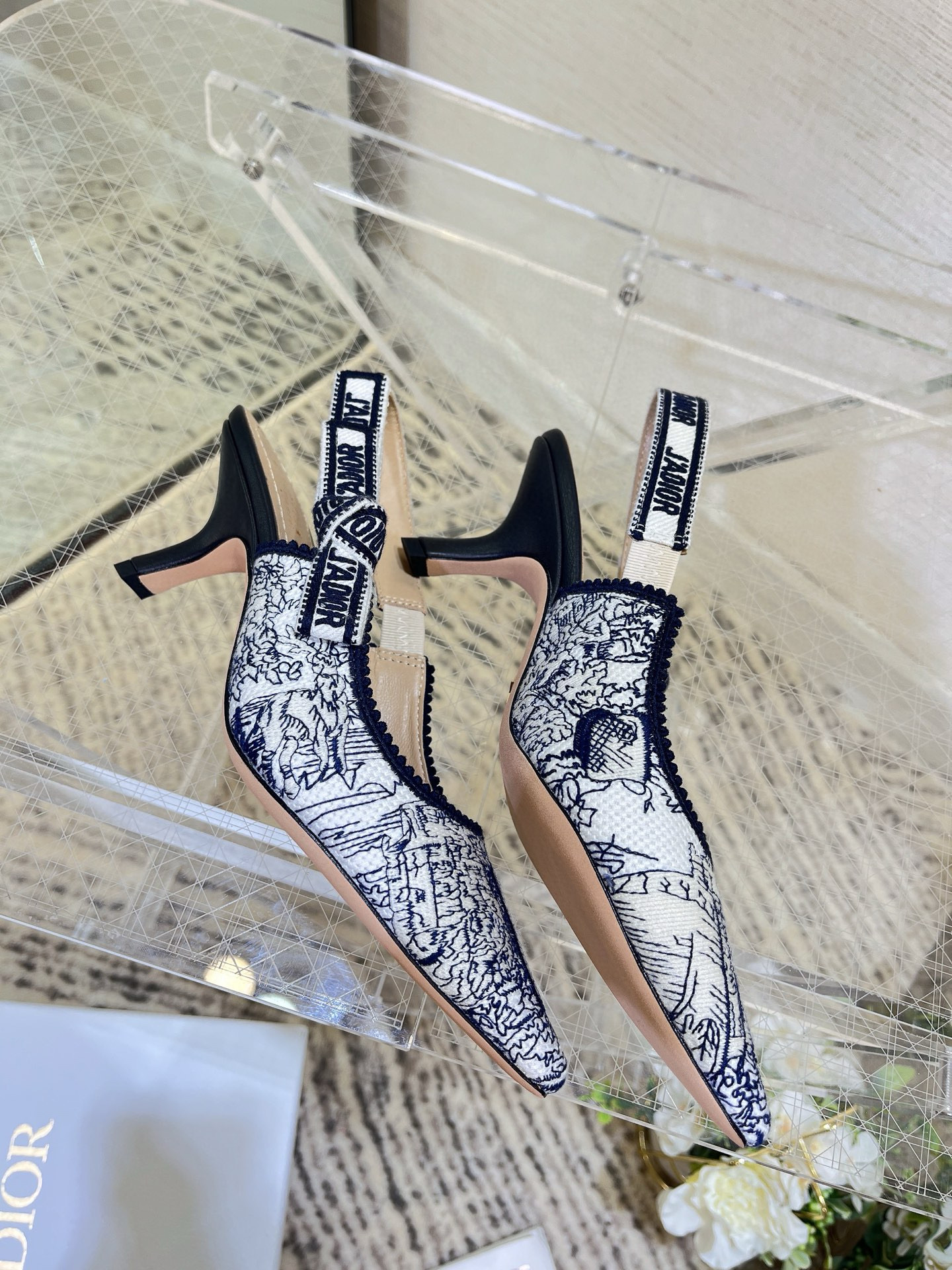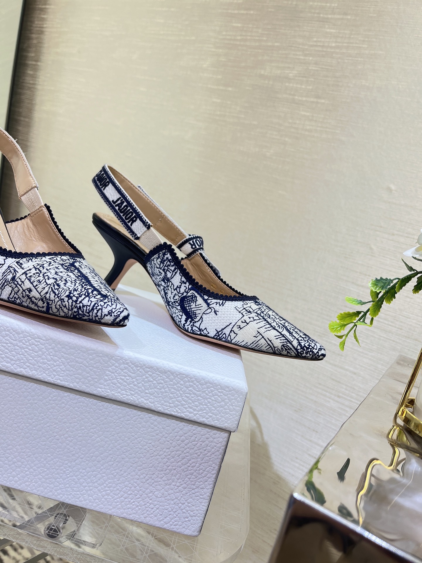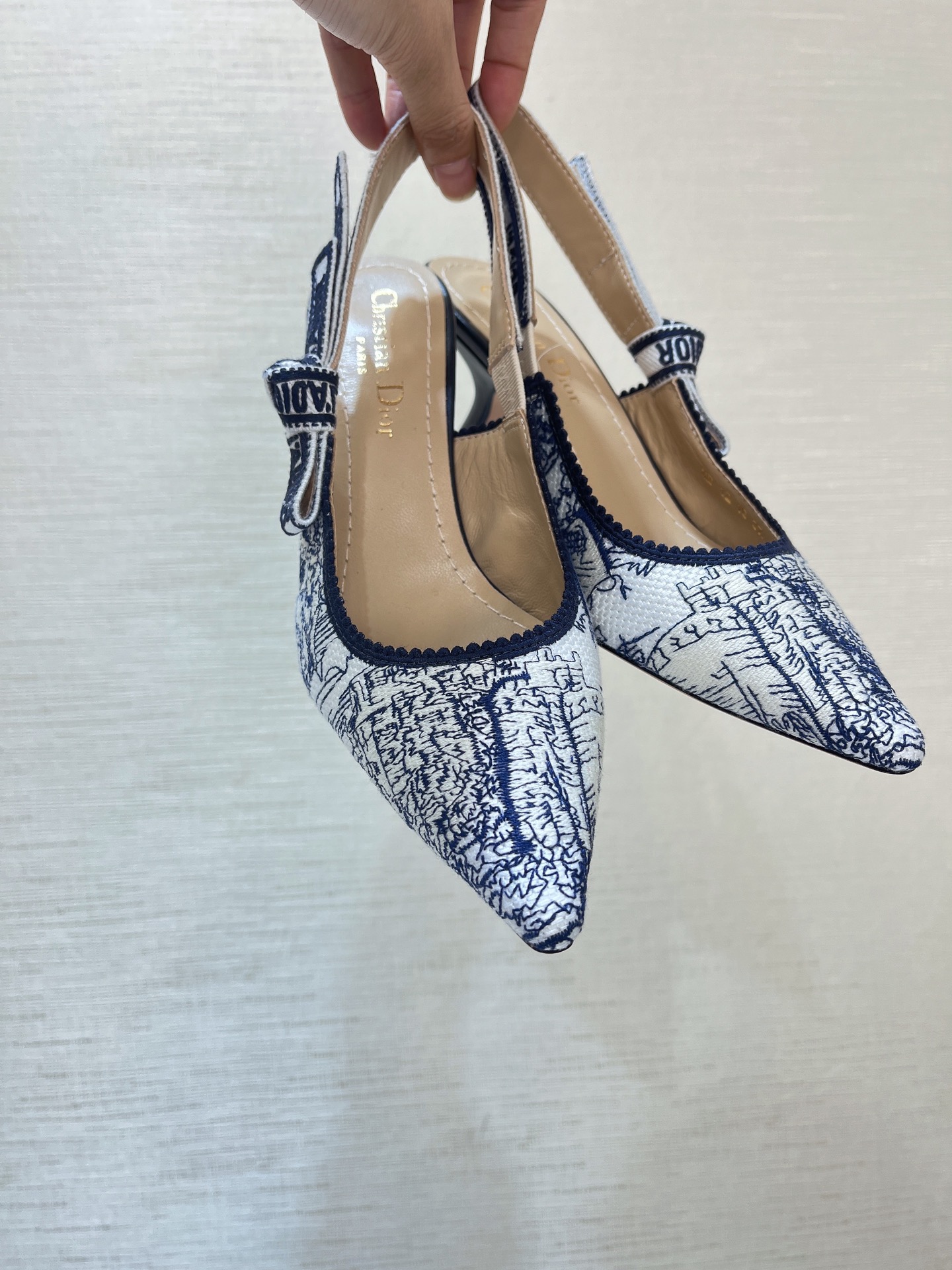 NIGO Dior Women's J'Adior Slingback Pump Embroidered Bow Leather Solid Color High-Heel Shoes Spring, Summer, and Fall Pointed-Toe Stiletto Casual Shoes Heel Height: 6.5 cm #nigo81471