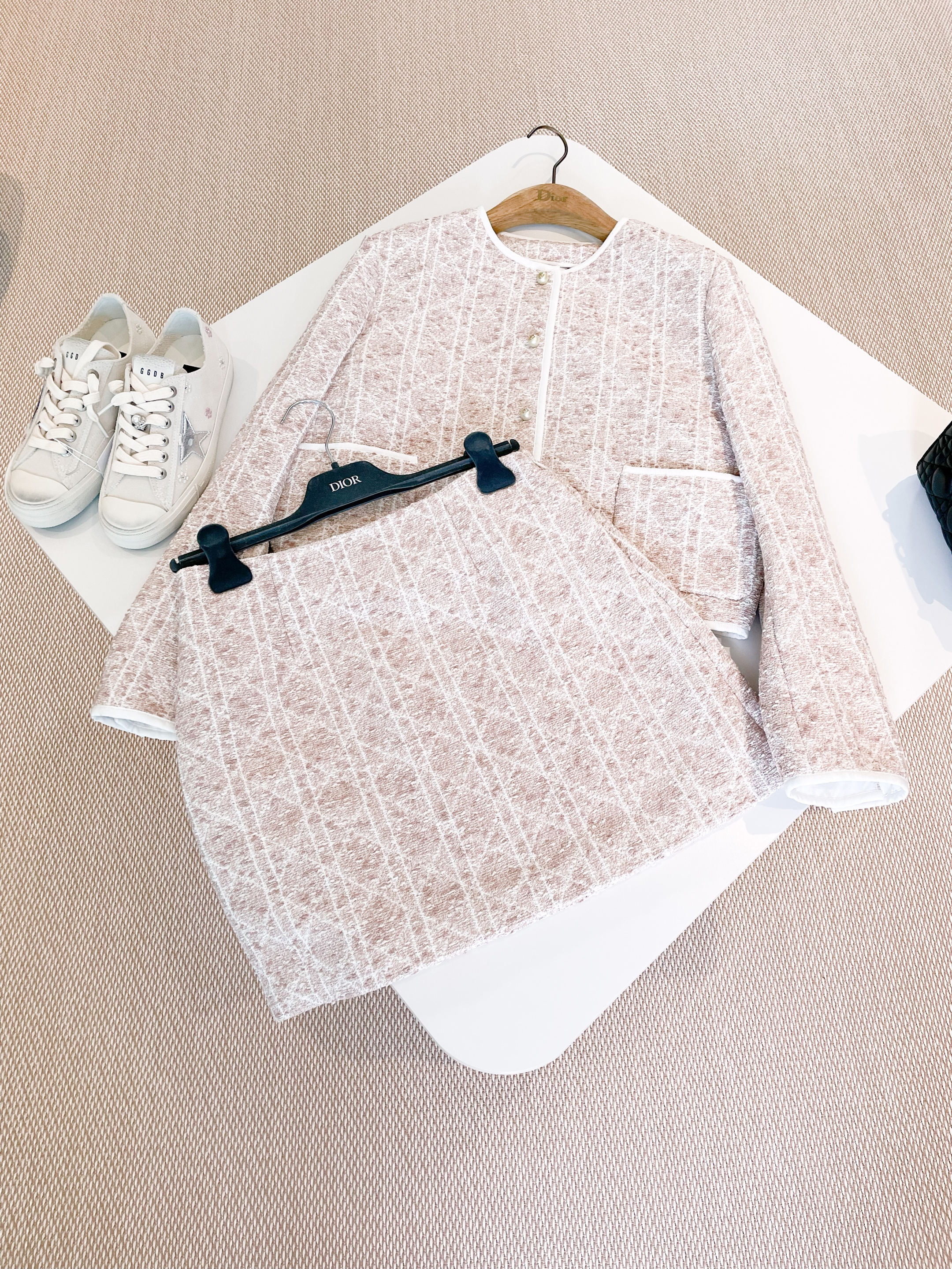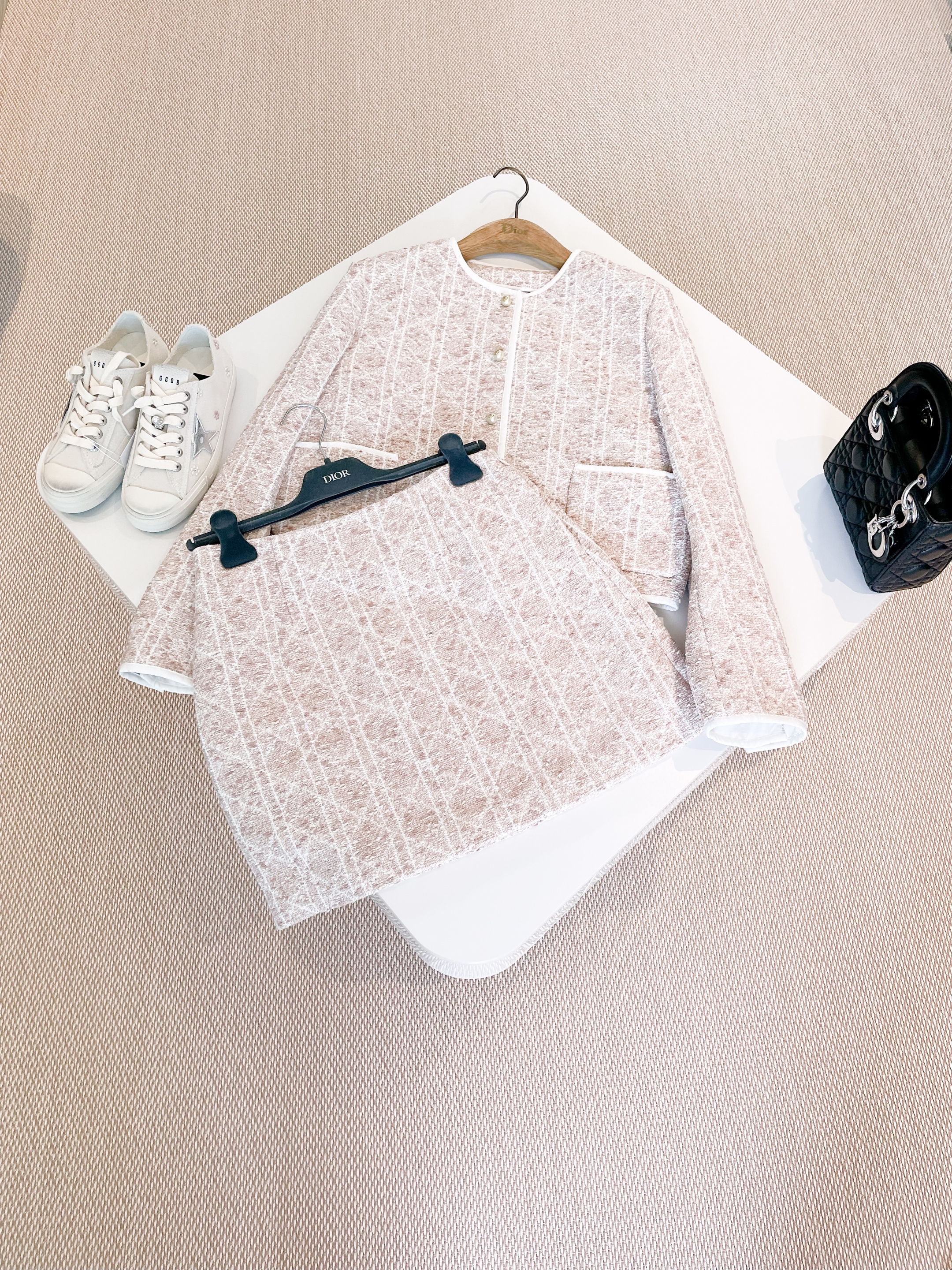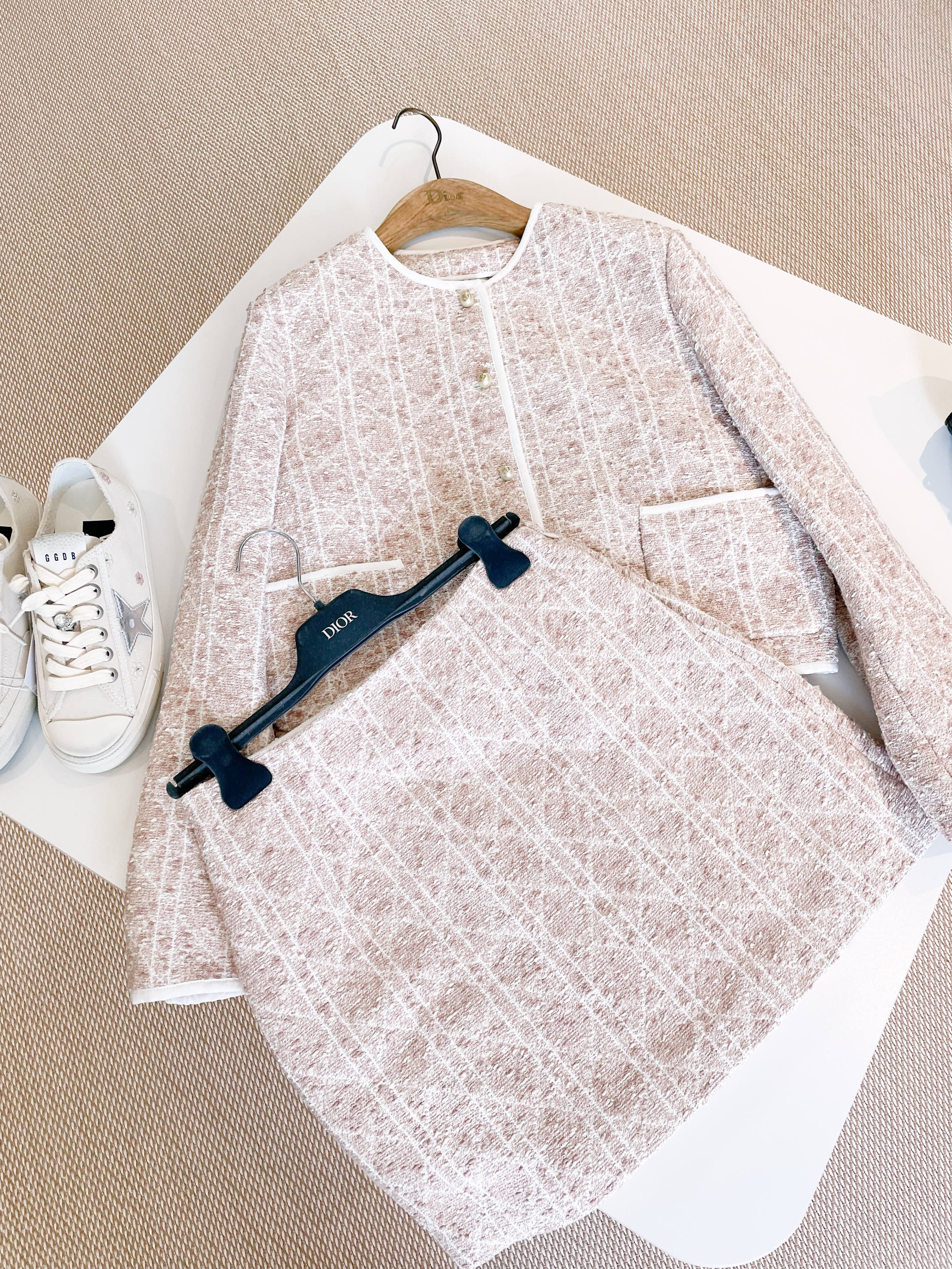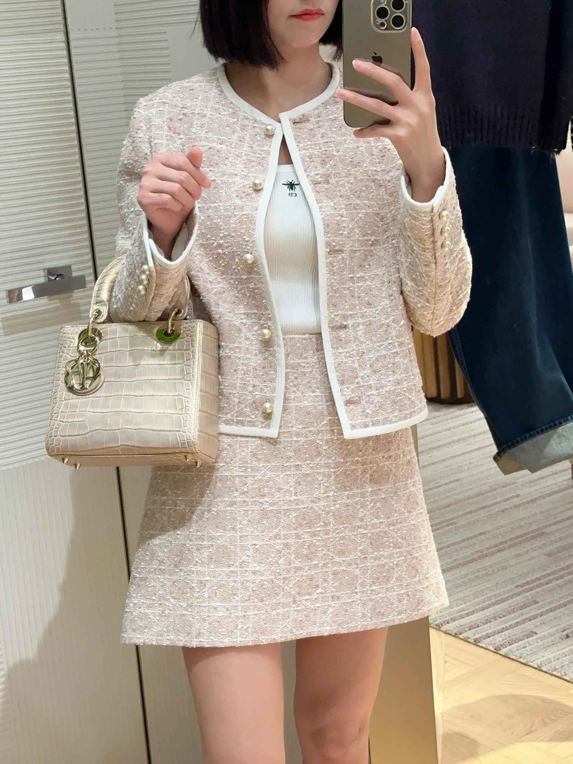 NIGO Dior Women's Spring and Autumn Solid Color Vine Check Tweed Single Breasted Long Sleeve Jacket Casual Half Skirt Suit Set #nigo76422