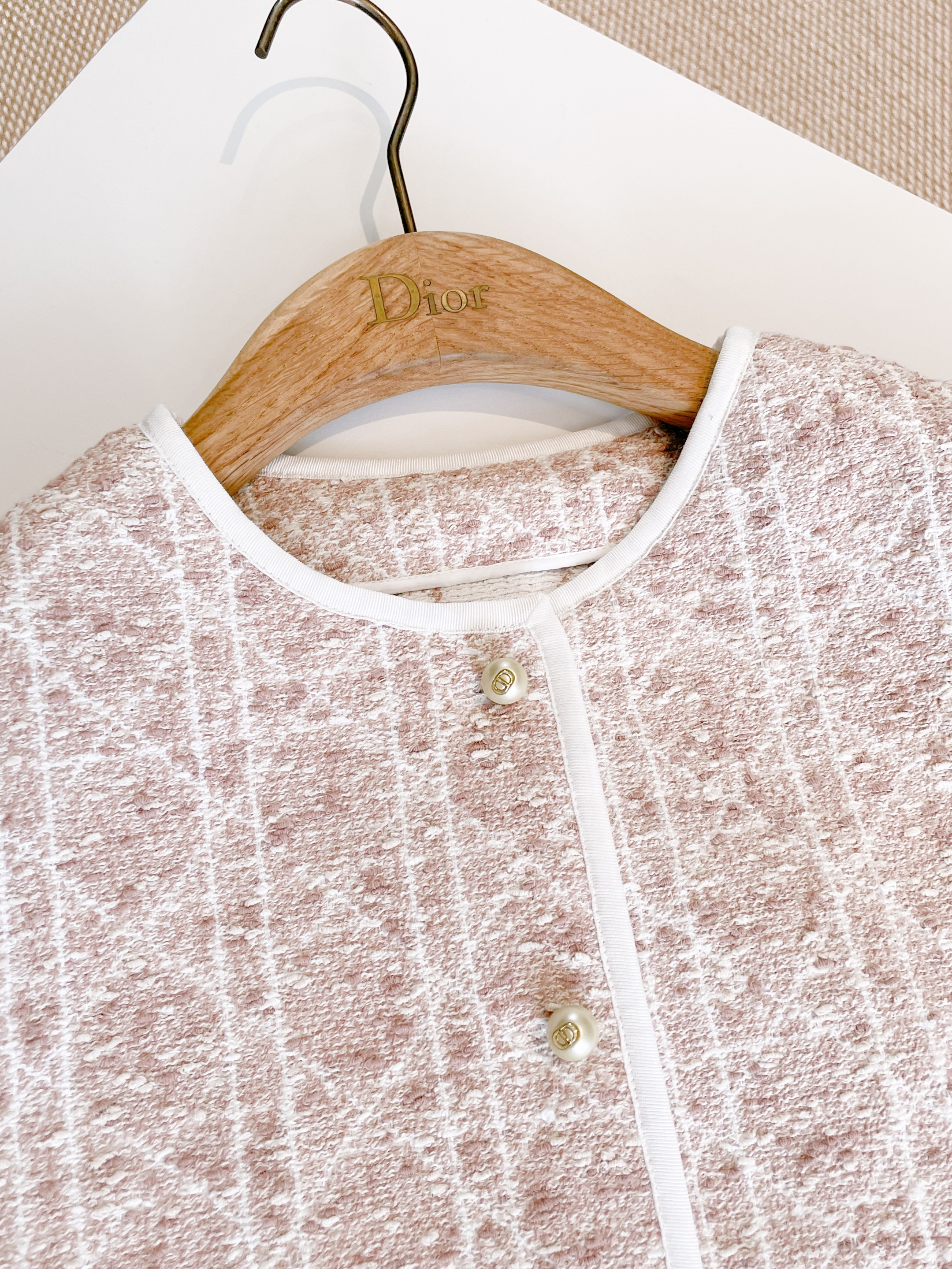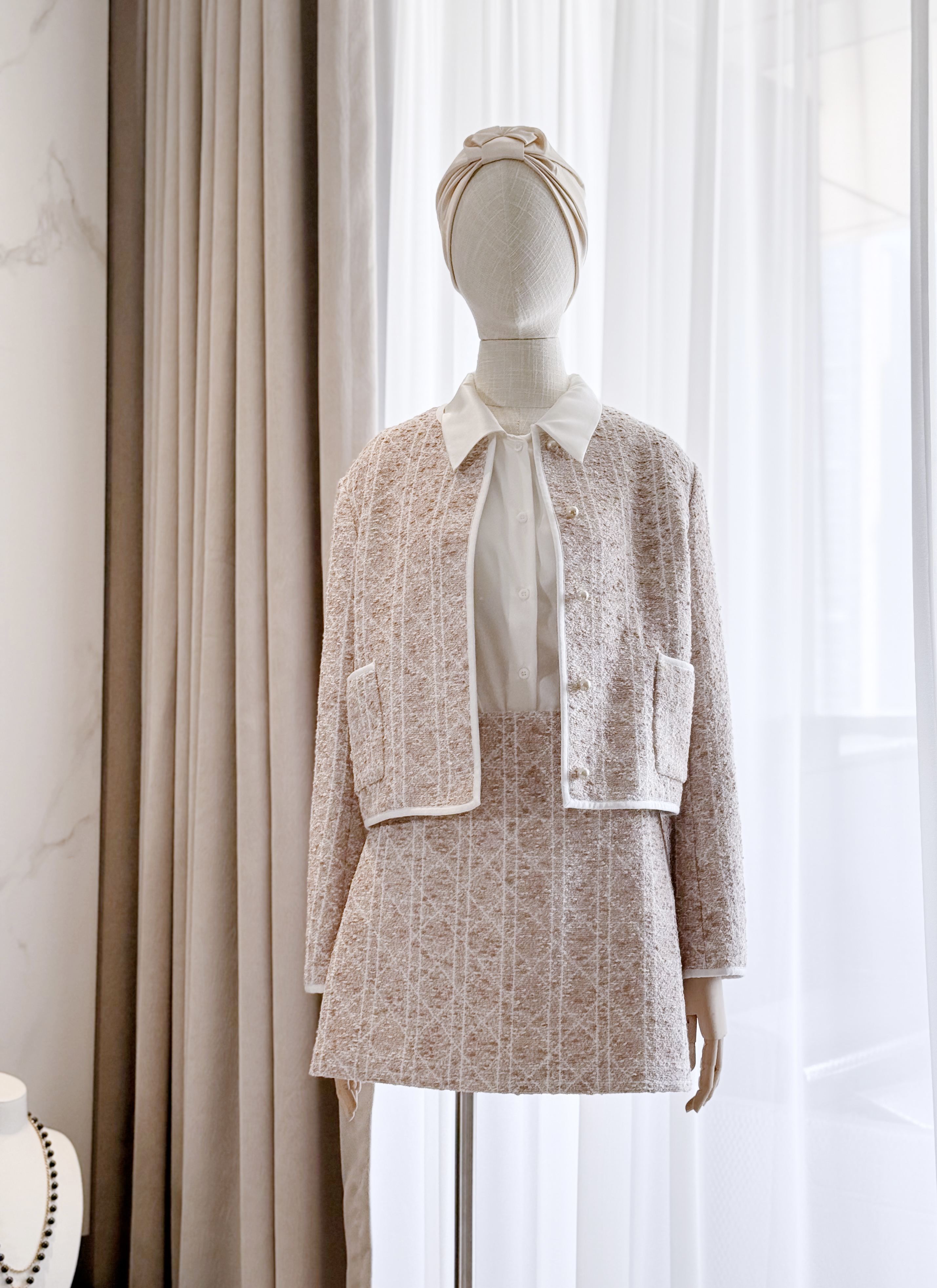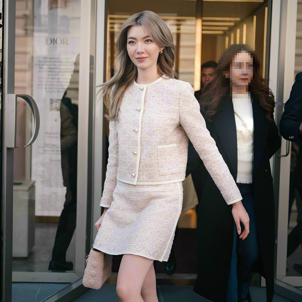 NIGO Dior Women's Spring and Autumn Solid Color Vine Check Tweed Single Breasted Long Sleeve Jacket Casual Half Skirt Suit Set #nigo76422