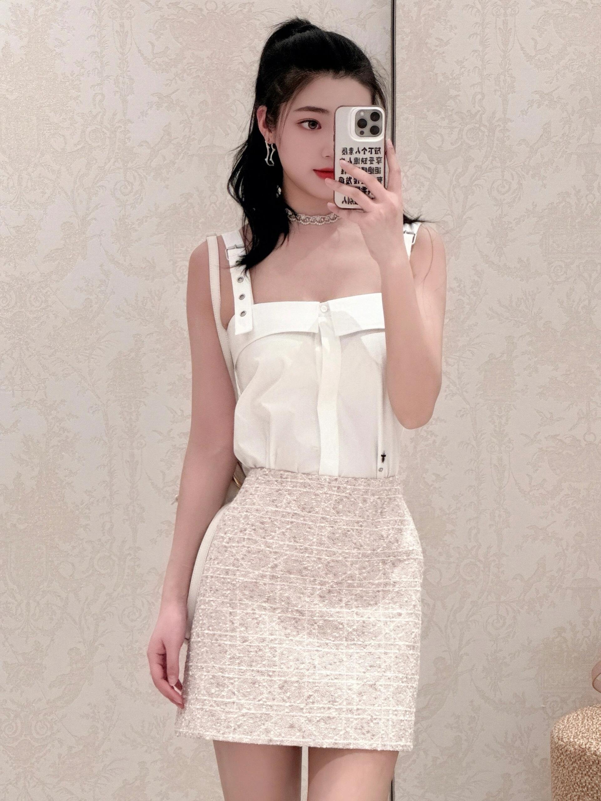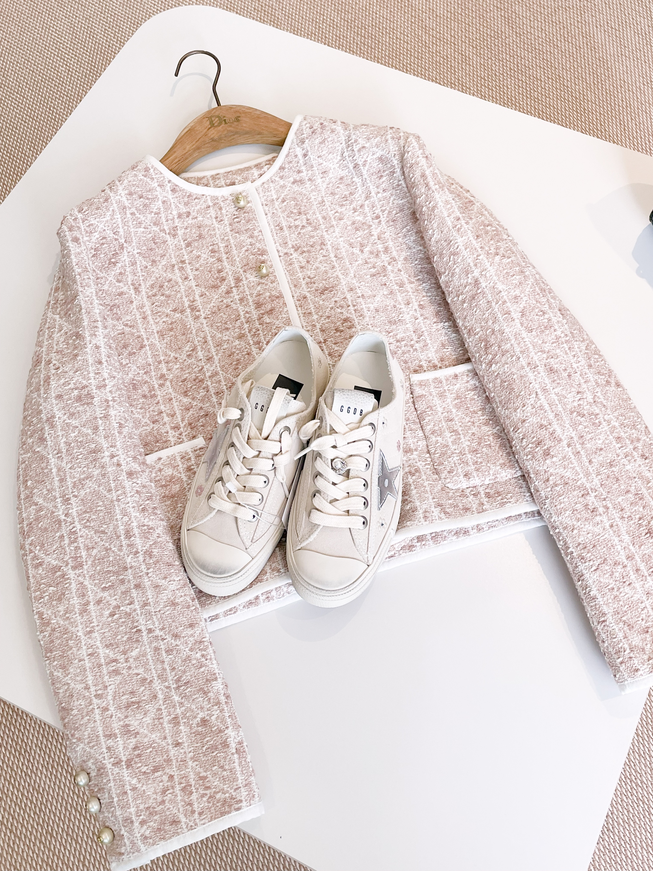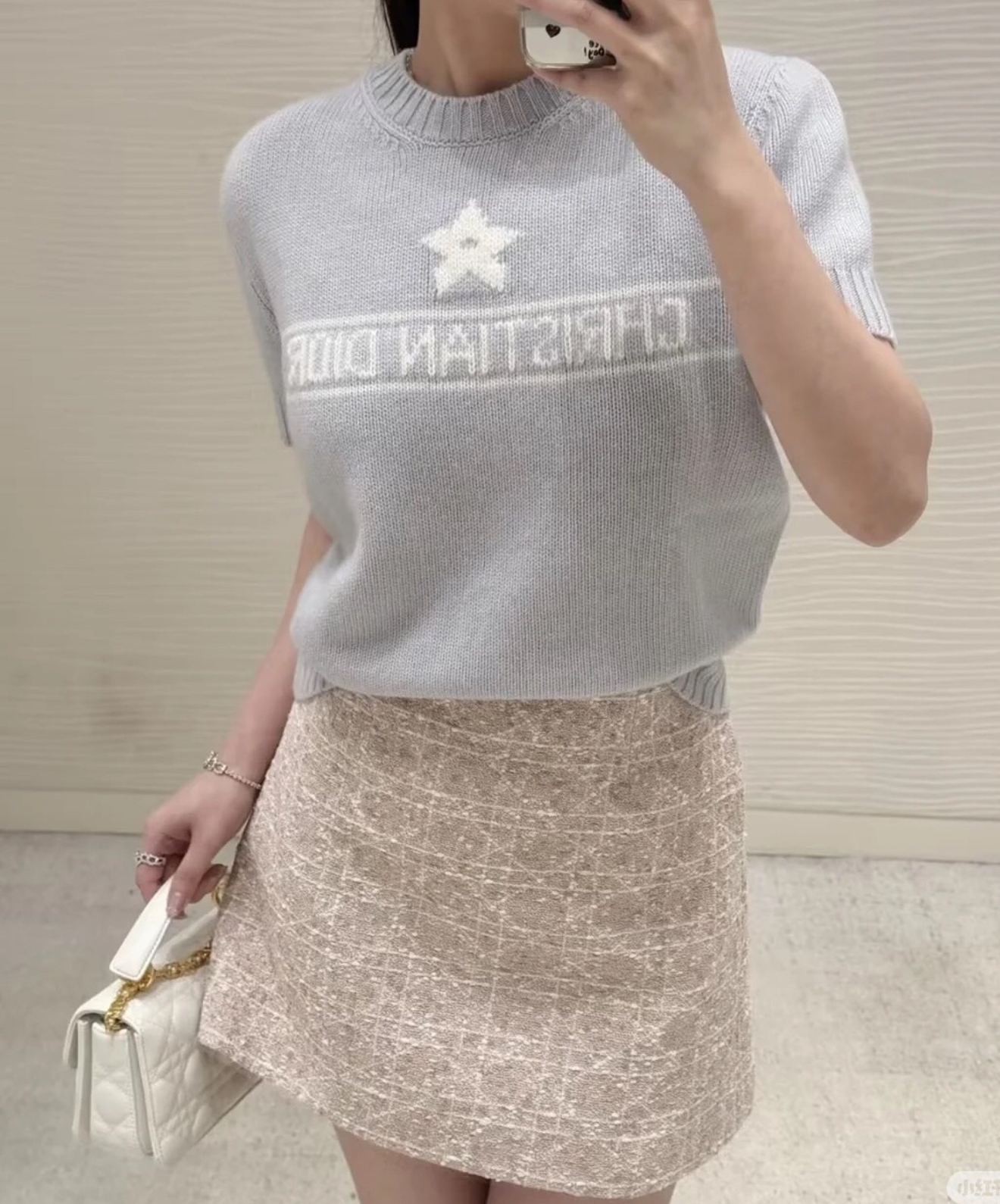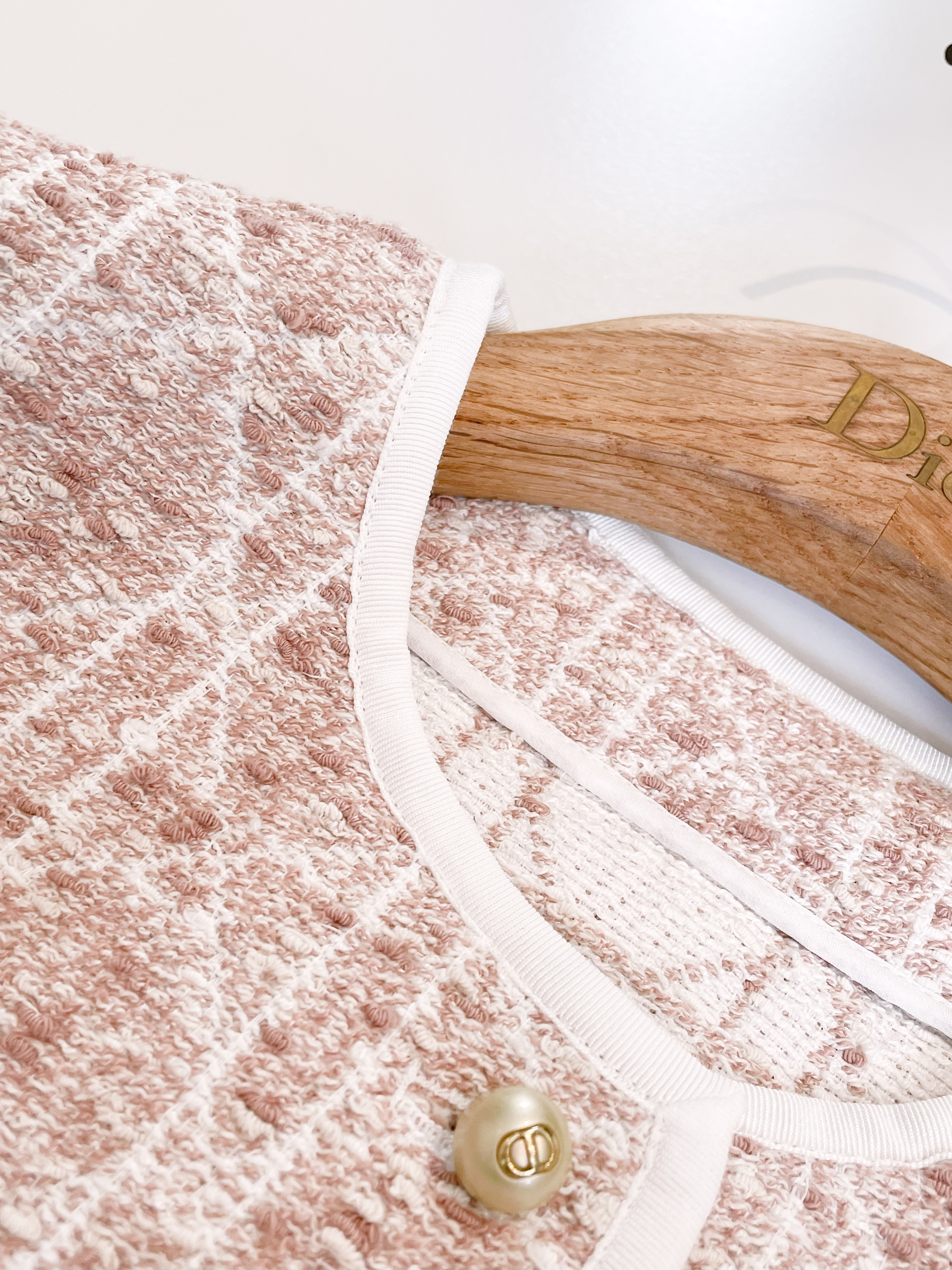 NIGO Dior Women's Spring and Autumn Solid Color Vine Check Tweed Single Breasted Long Sleeve Jacket Casual Half Skirt Suit Set #nigo76422