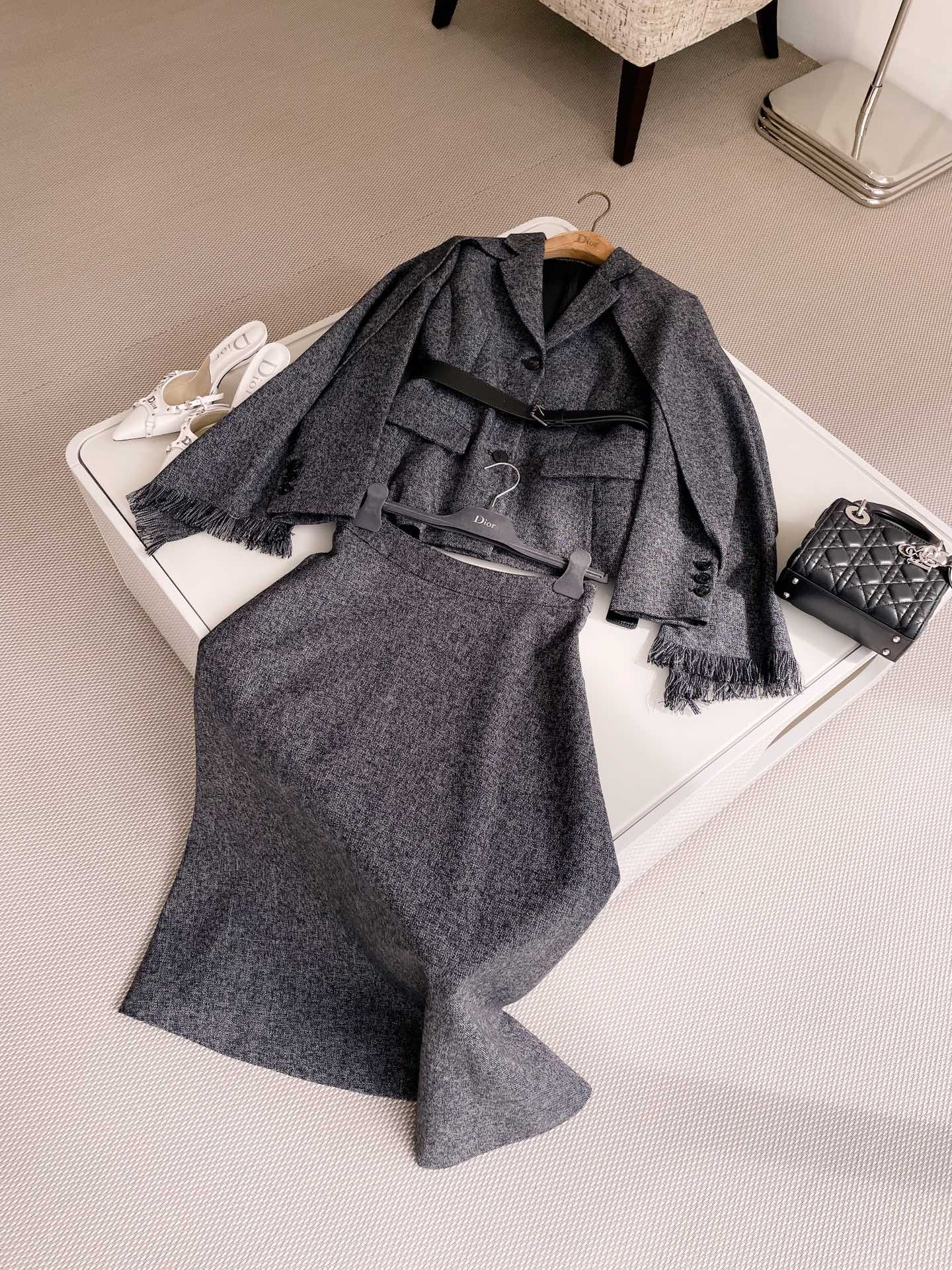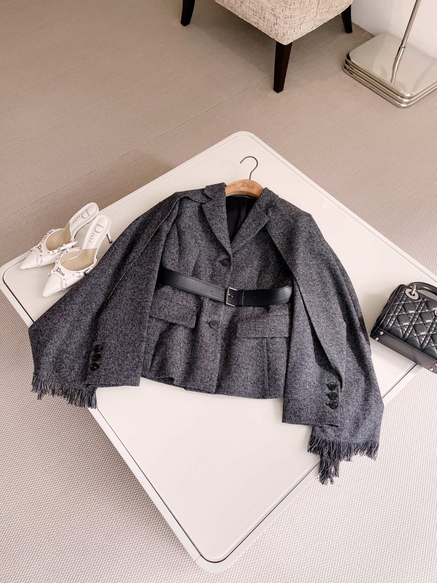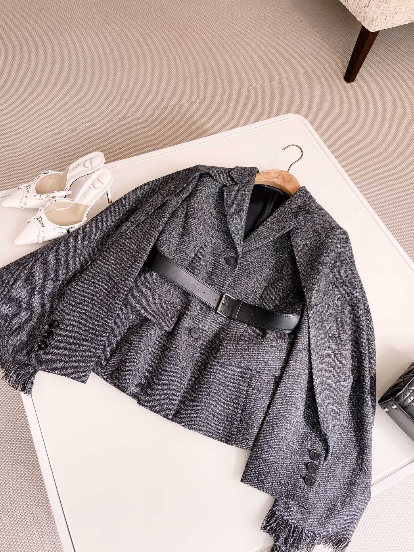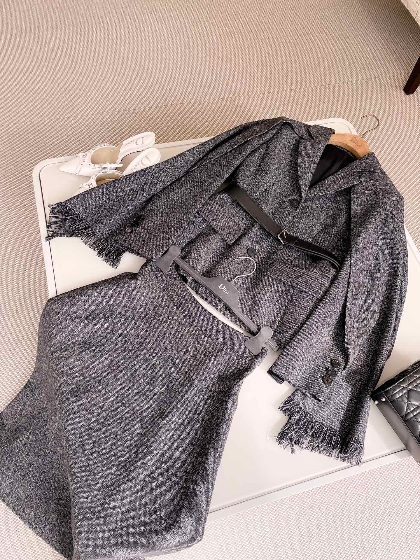 NIGO Dior Women's Spring And Autumn V-neck With Removable Scarf Belt Solid Color Wool Single Breasted Long Sleeve Blazer Jacket Ngvp #nigo9614