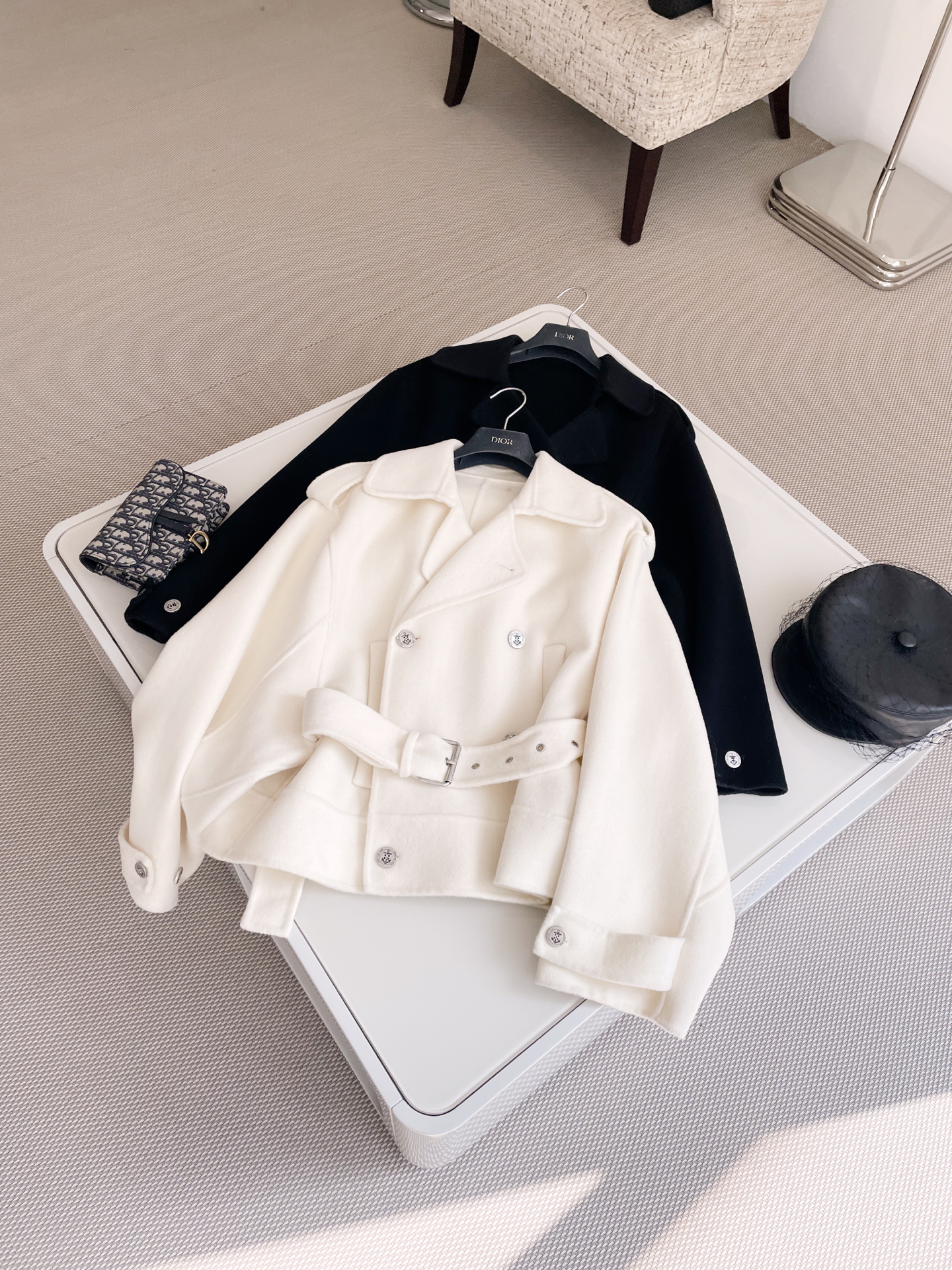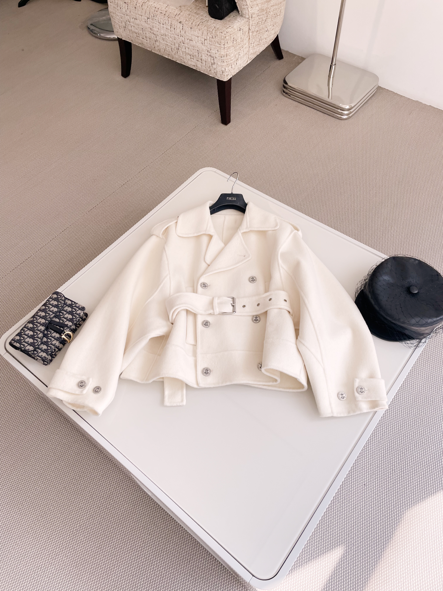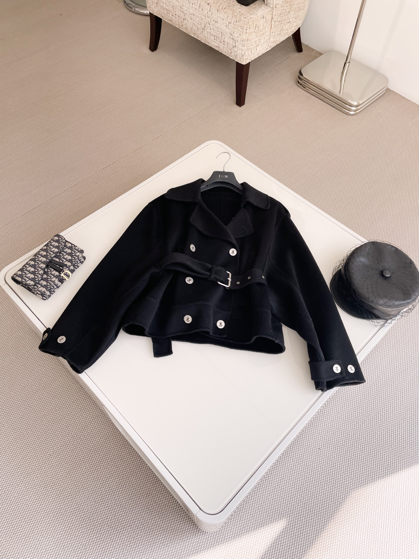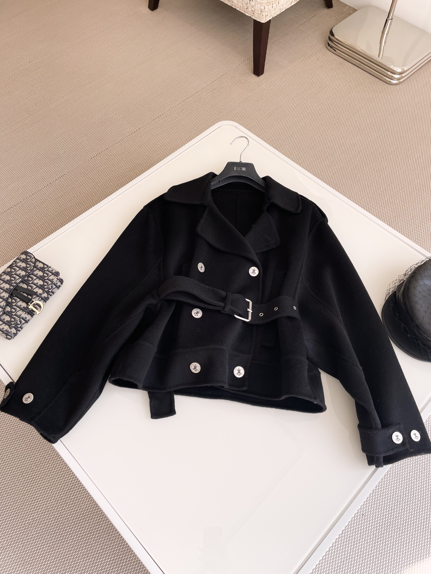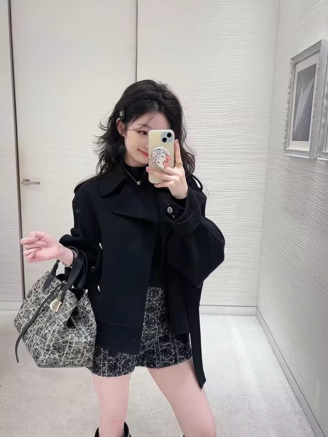 NIGO Dior Women's Spring, Autumn And Winter Wool Blend Solid Color Lapel Double-Breasted Belt Long Sleeve Short Coat Jacket Ngvp #nigo9925