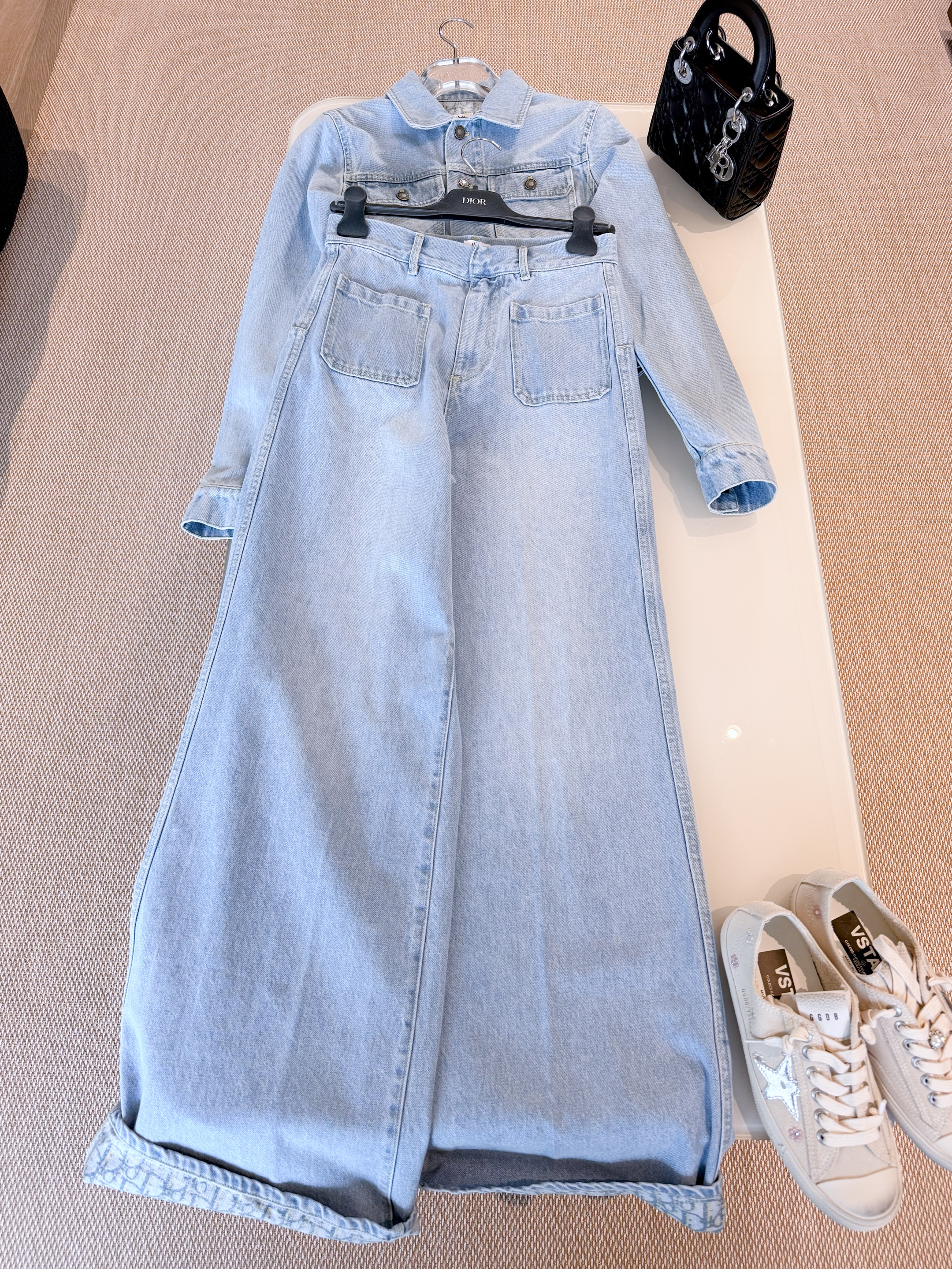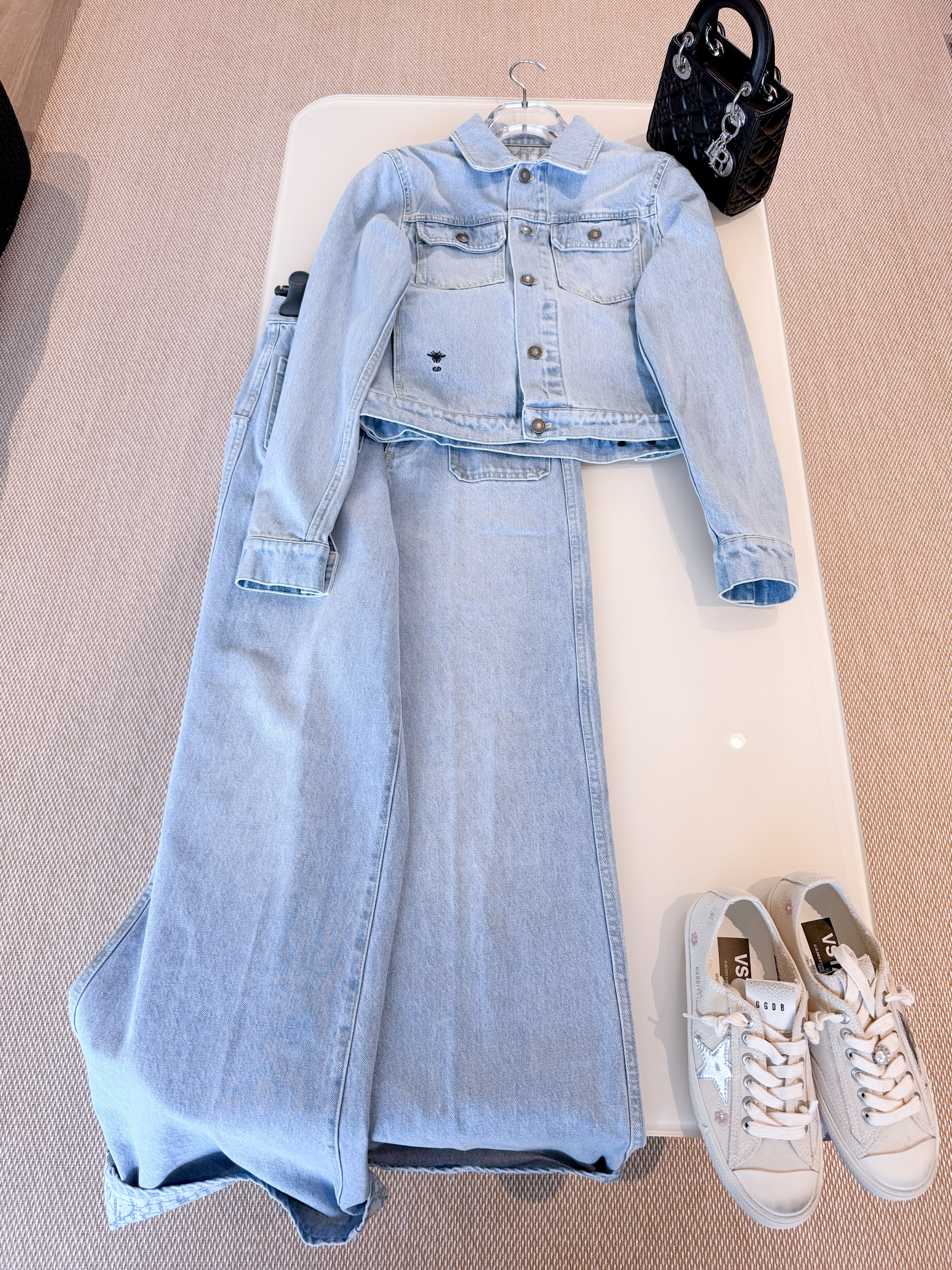 NIGO Dior Women's Spring/Autumn Solid Color Embroidered Bee Single-Breasted Long-Sleeved Denim Jacket and Flared Denim Pants Set Suit #nigo77672