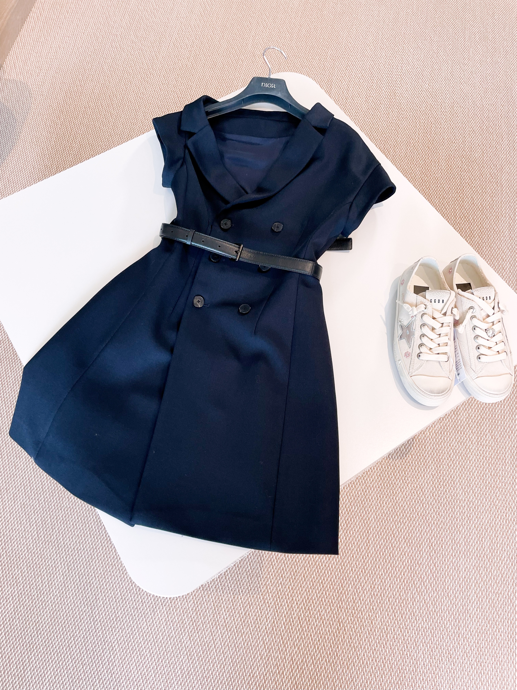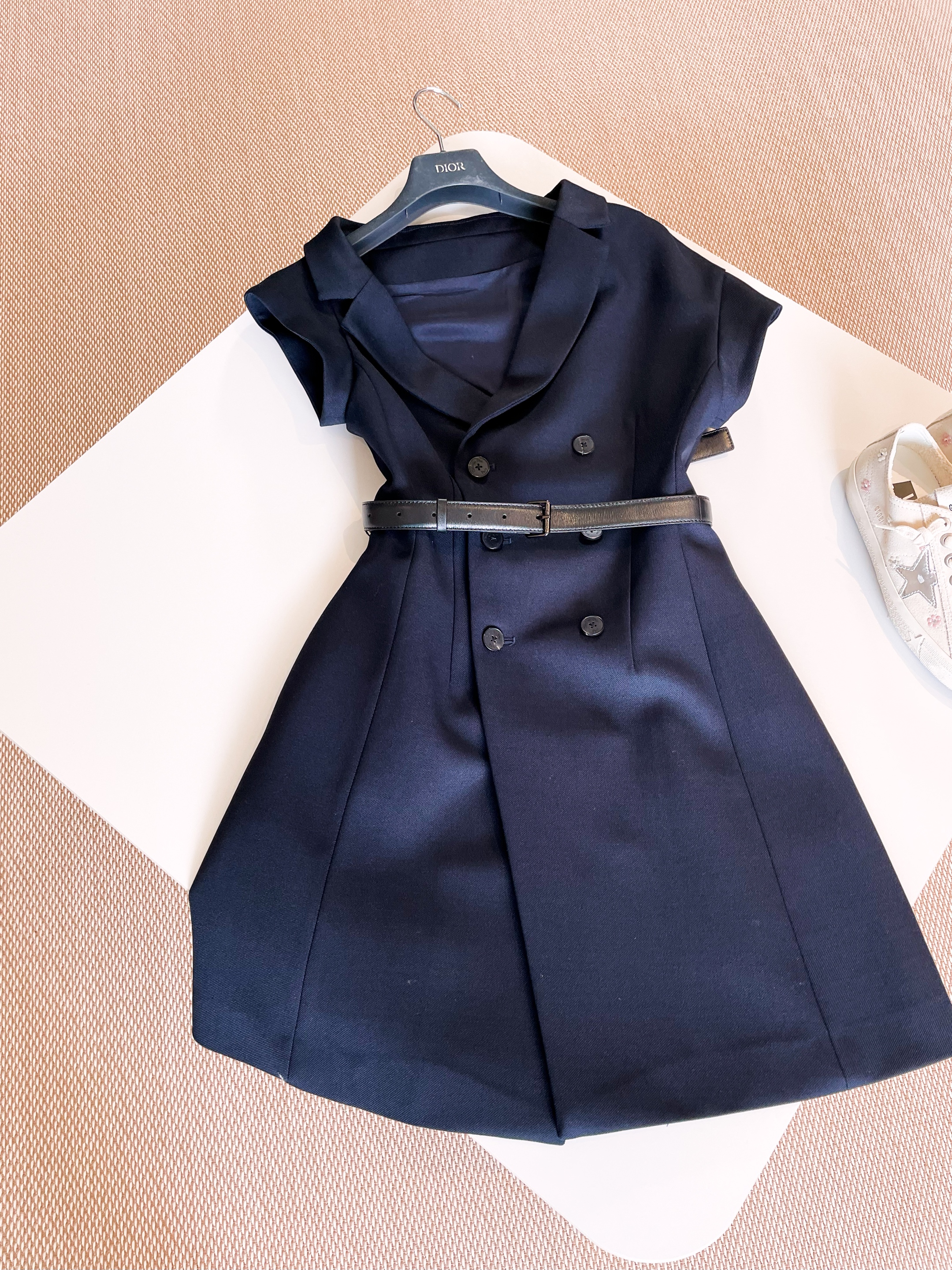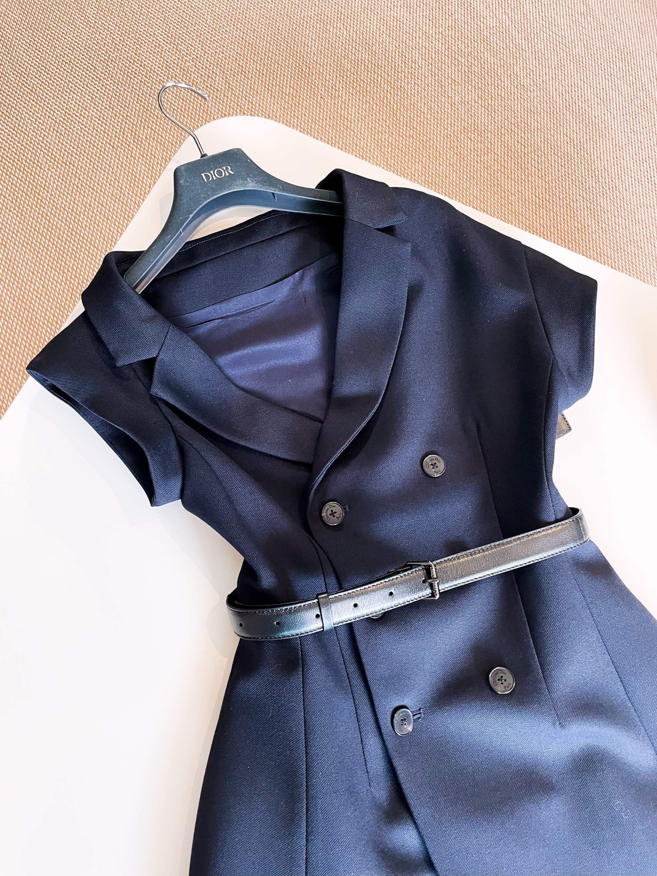 NIGO Dior Women's Summer Asymmetric Slant Shoulder Wool And Silk Belt Solid Color Double Breasted Short Dresses Ngvp #nigo1519