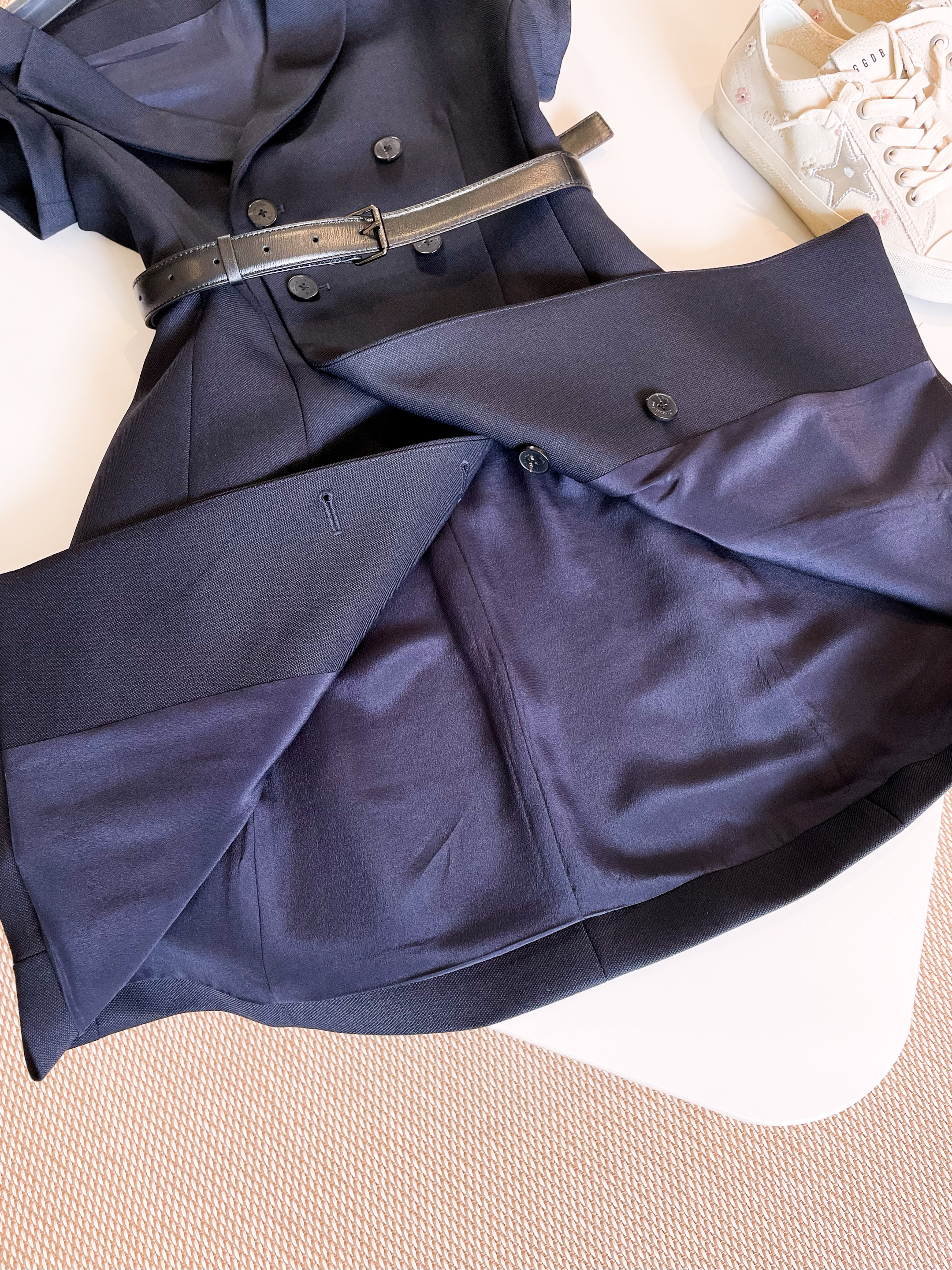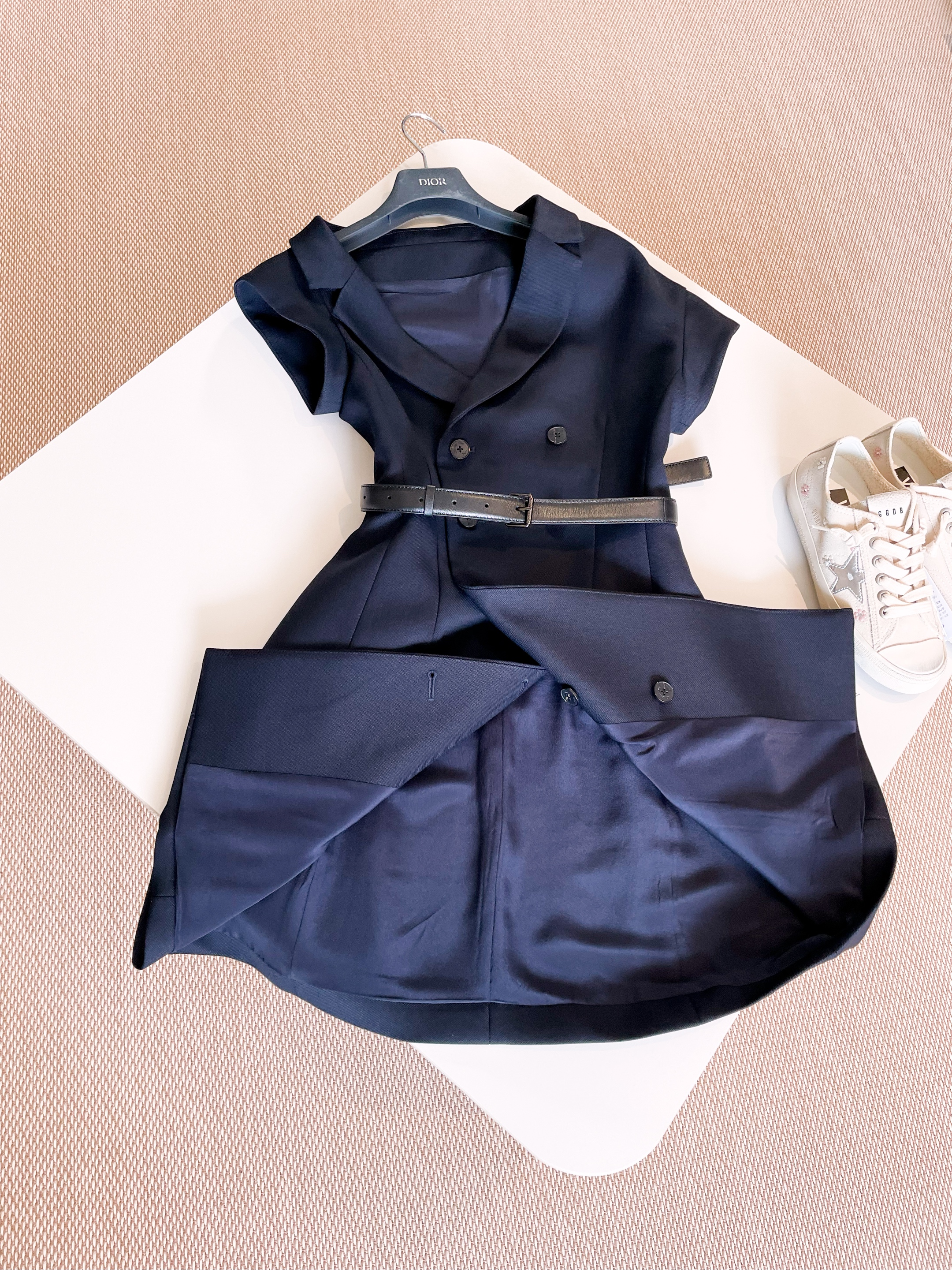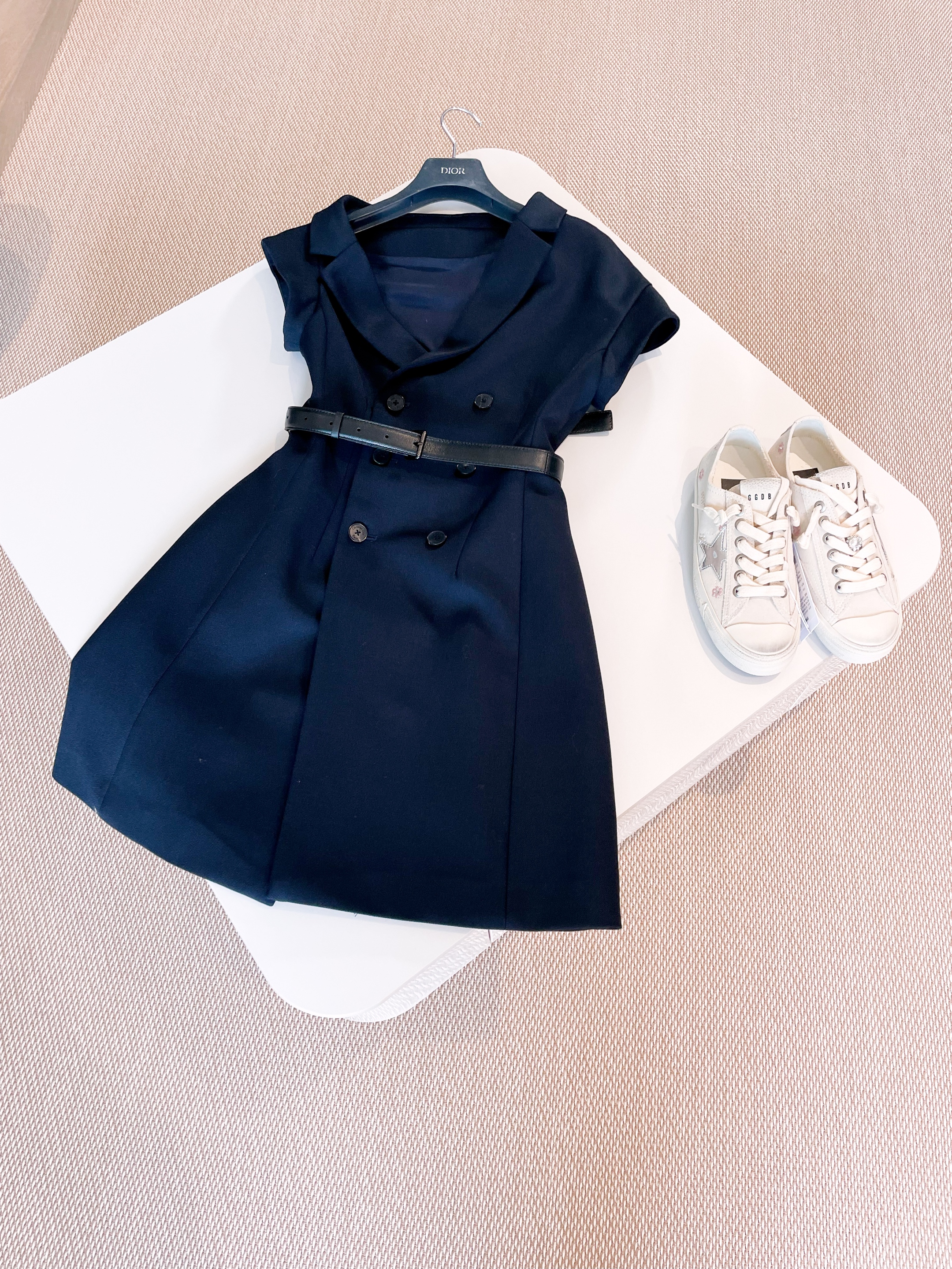 NIGO Dior Women's Summer Asymmetric Slant Shoulder Wool And Silk Belt Solid Color Double Breasted Short Dresses Ngvp #nigo1519