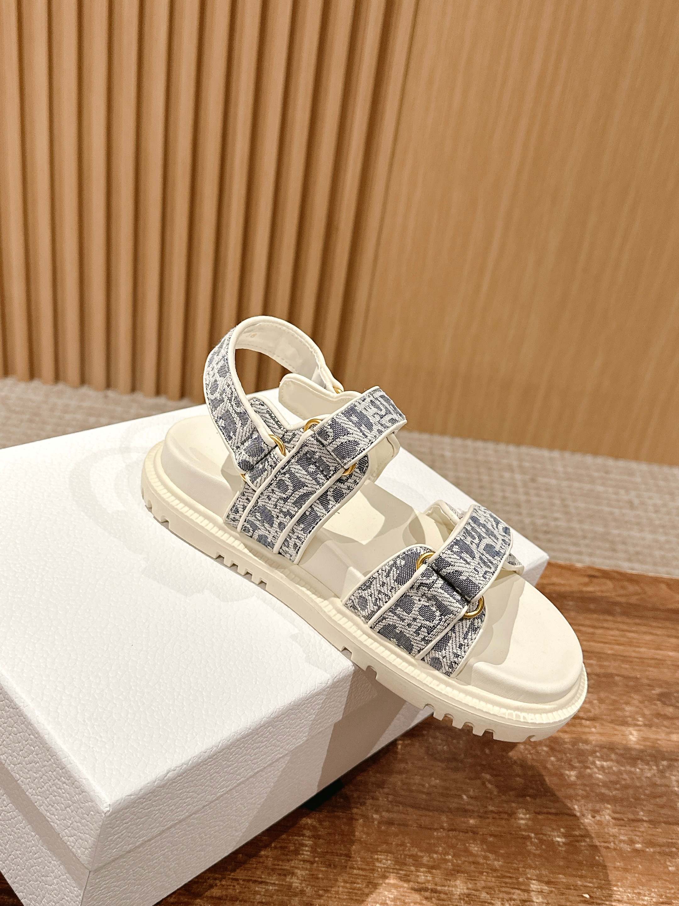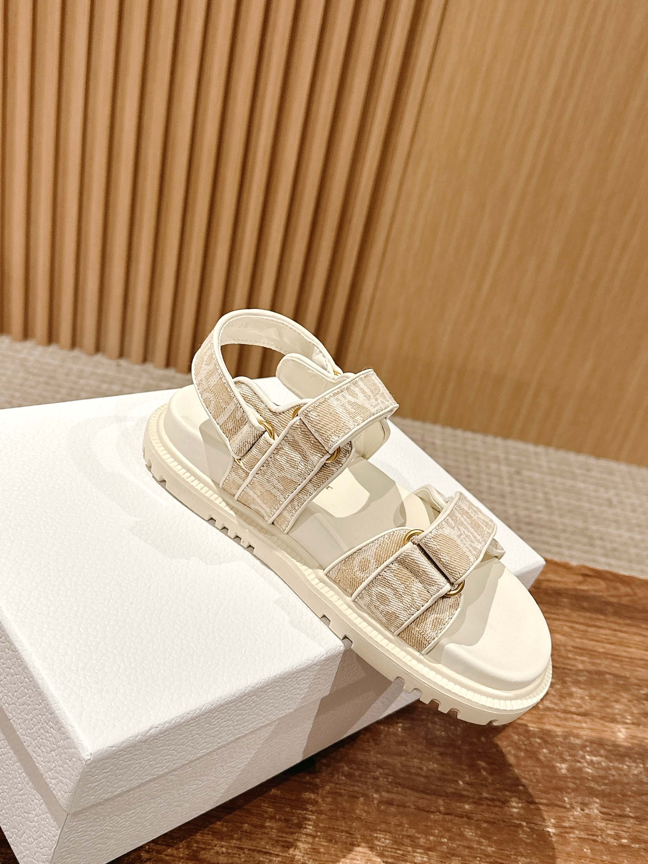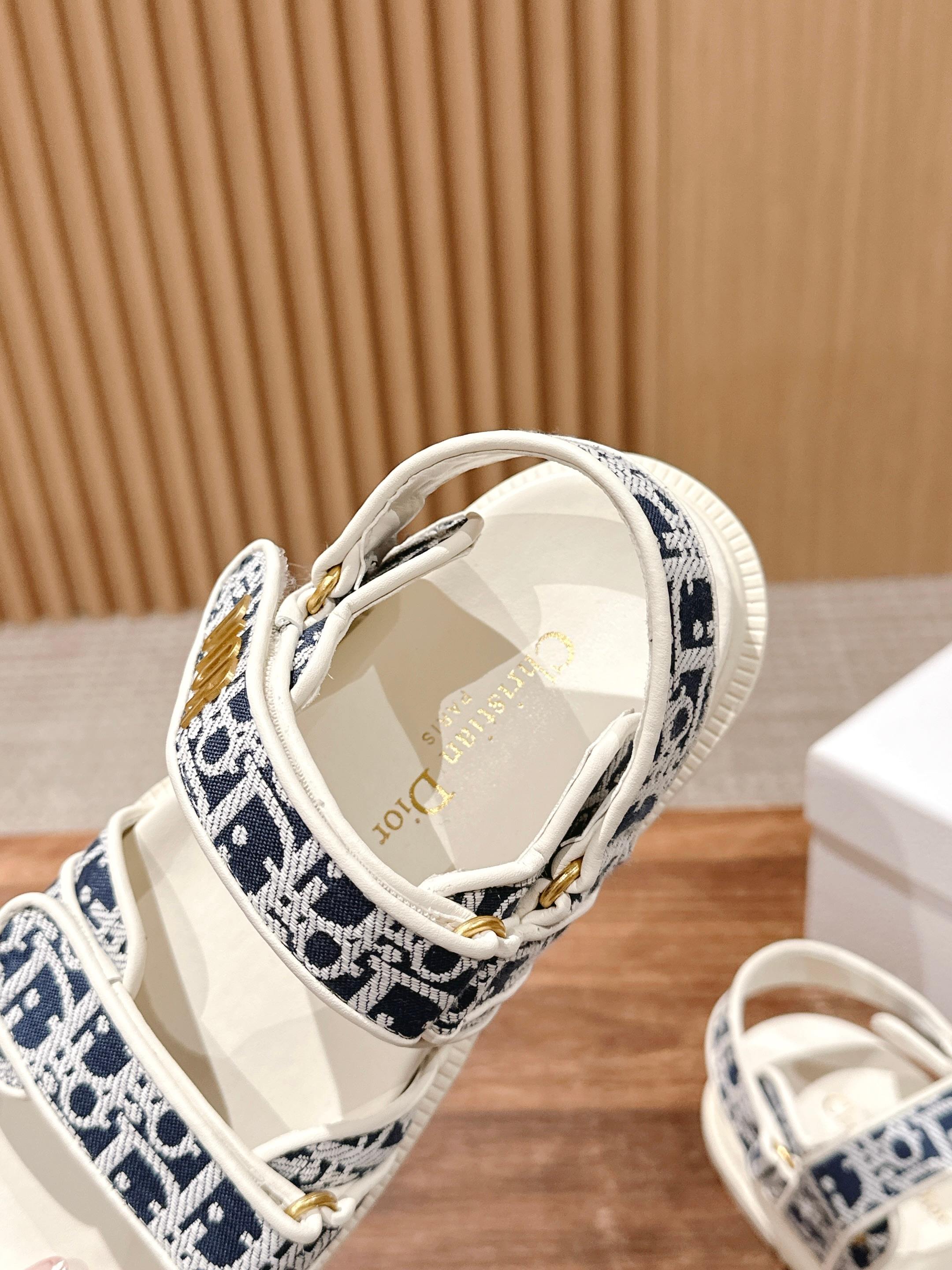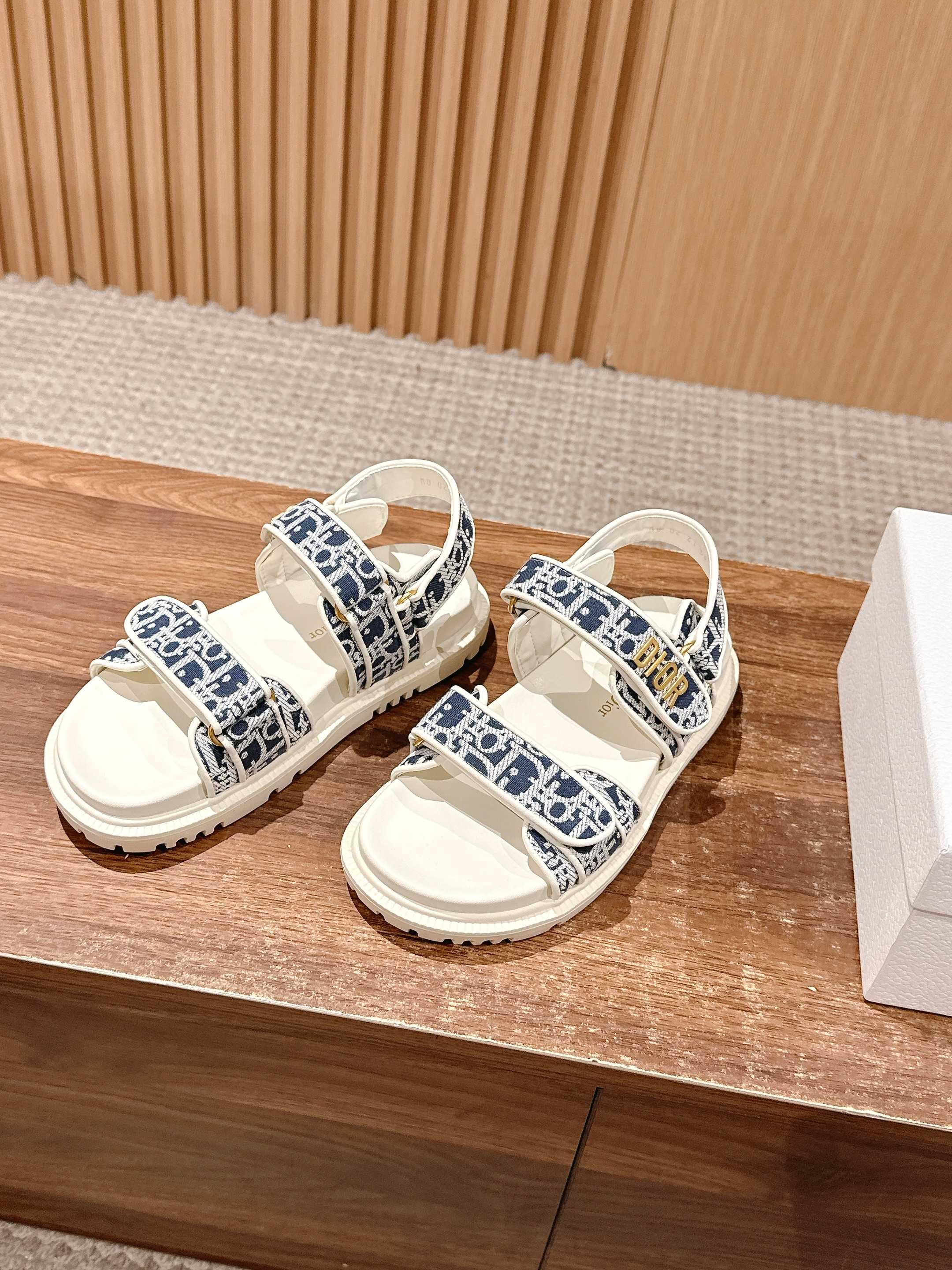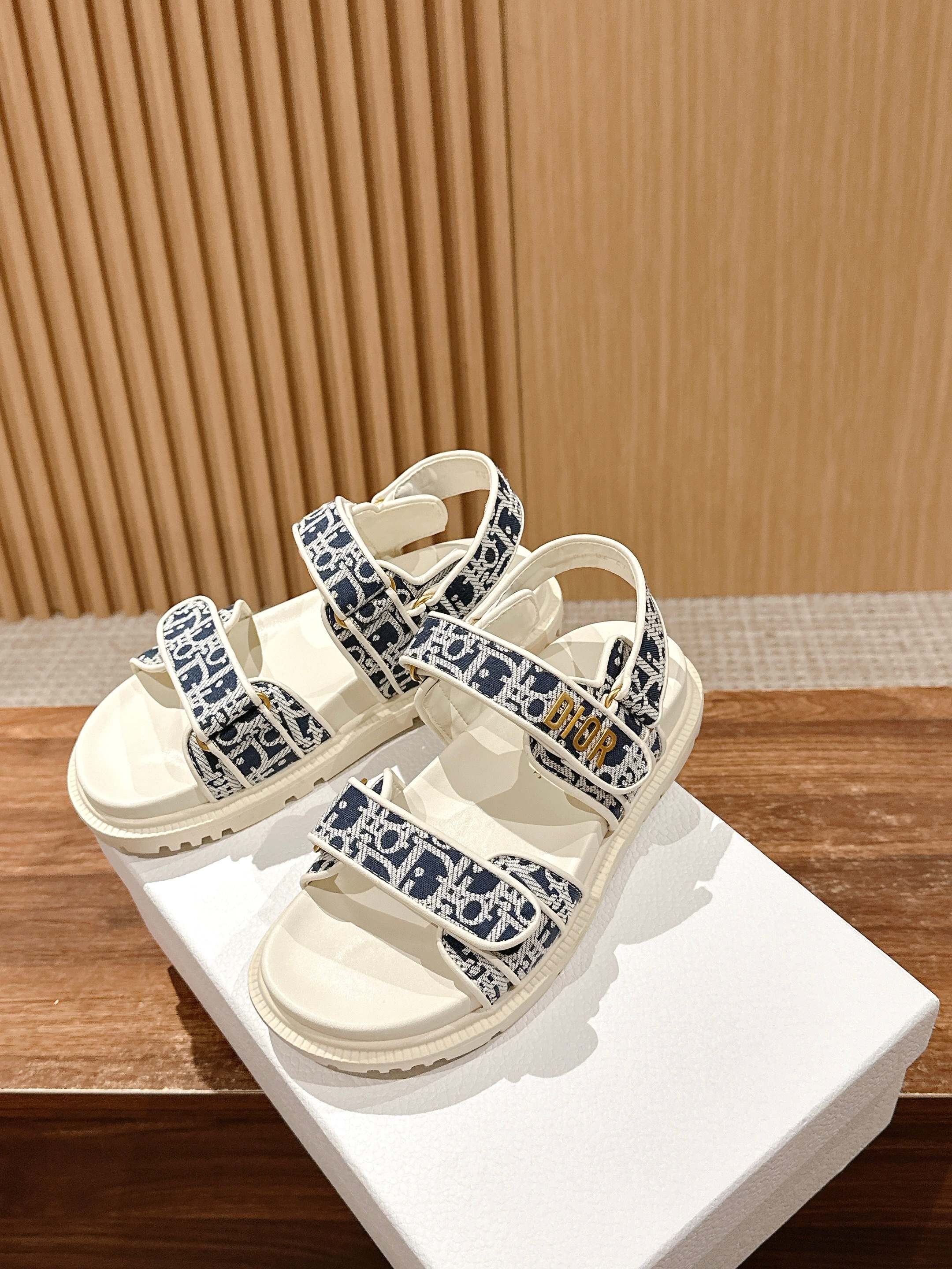 NIGO Dior Women's Summer Dioract Checkered Fabric Jacquard Round Head Velcro Solid Color Beach Sandals Casual Shoes #nigo81261