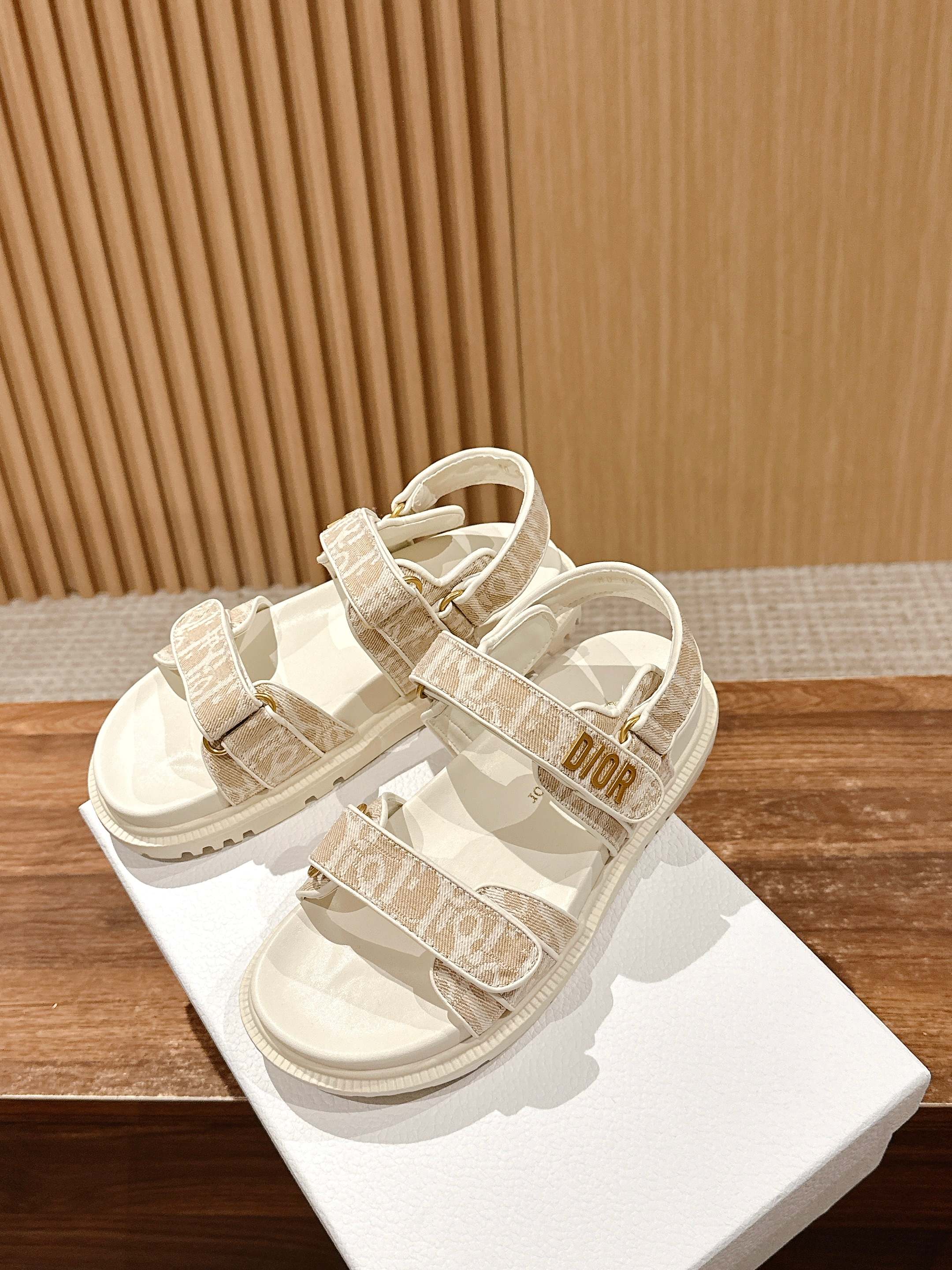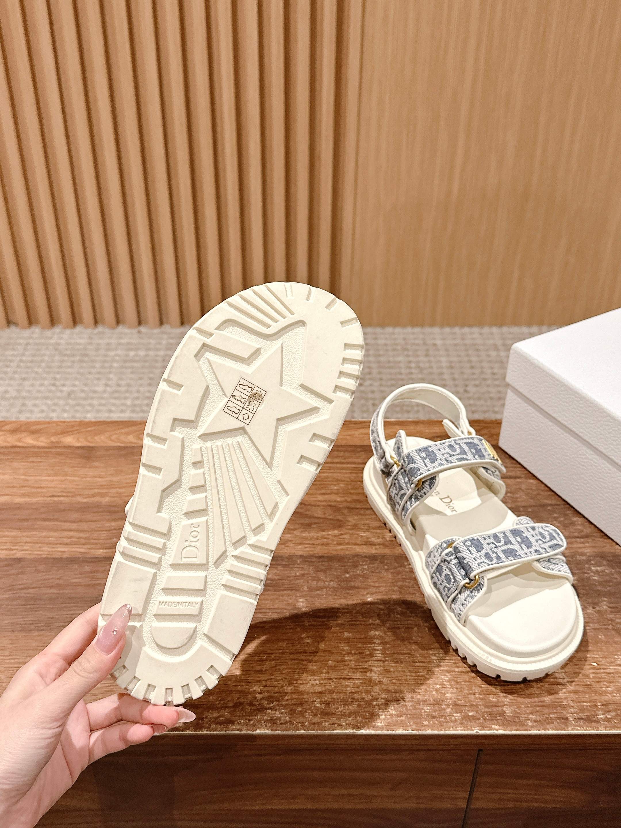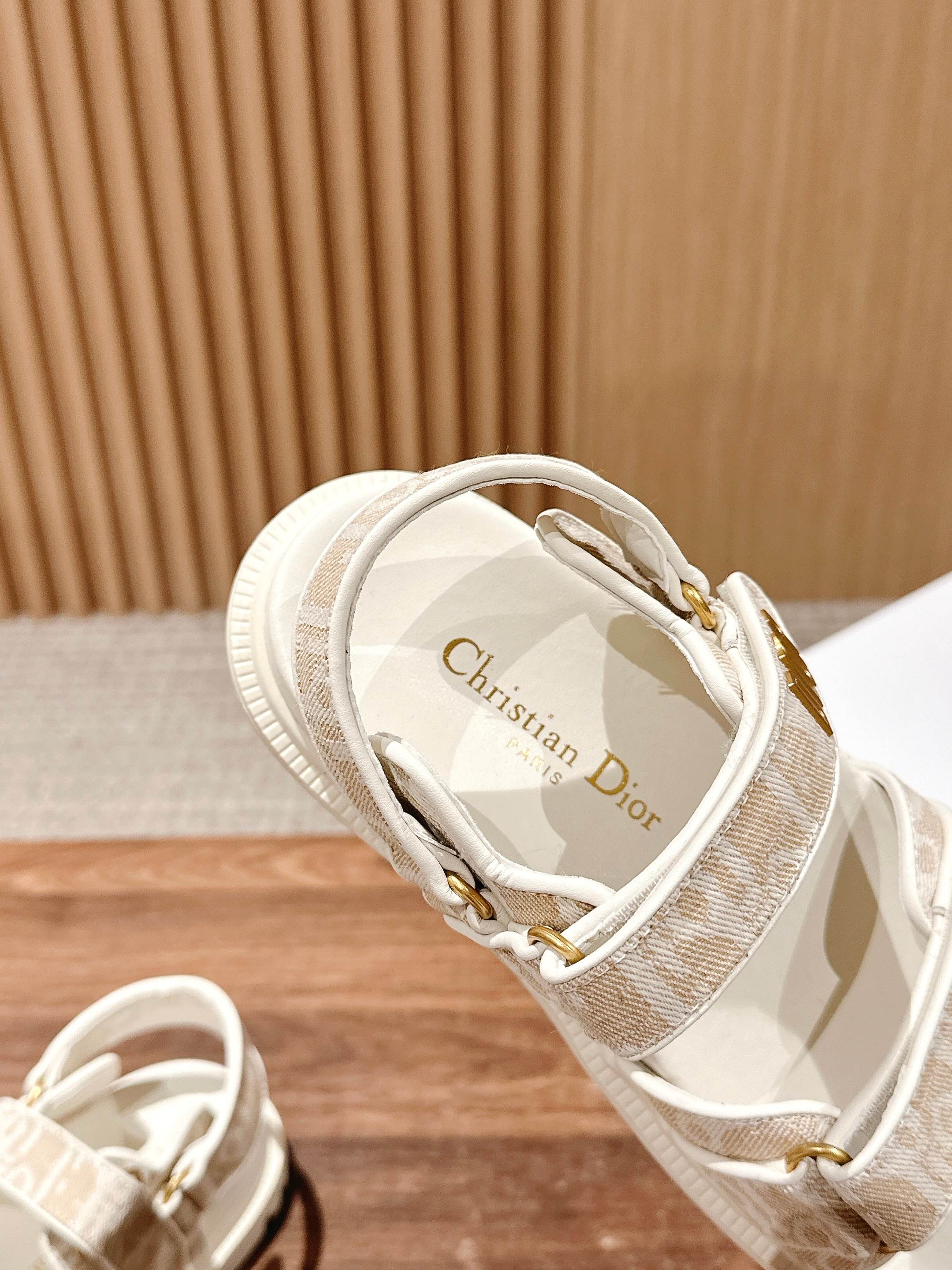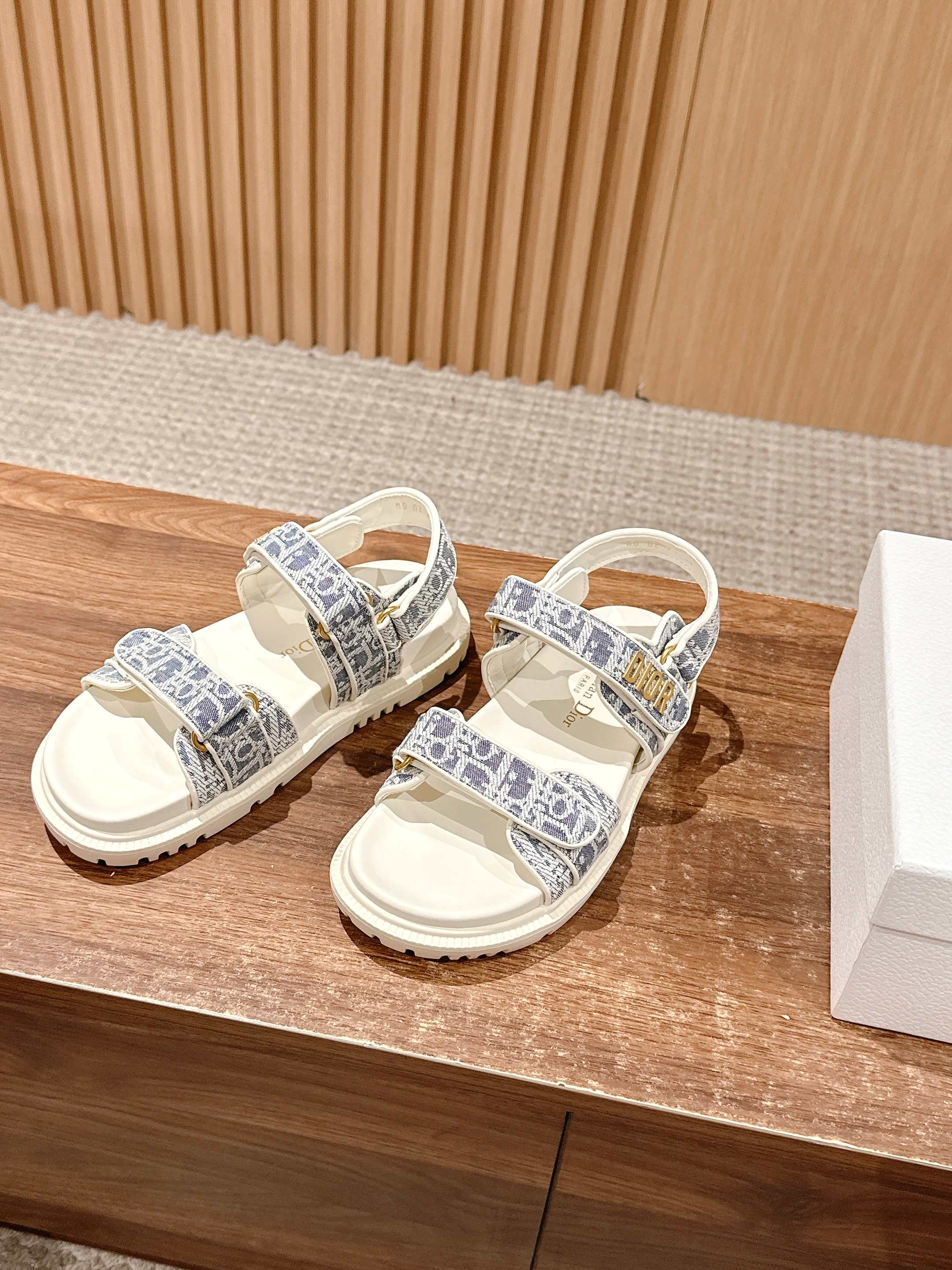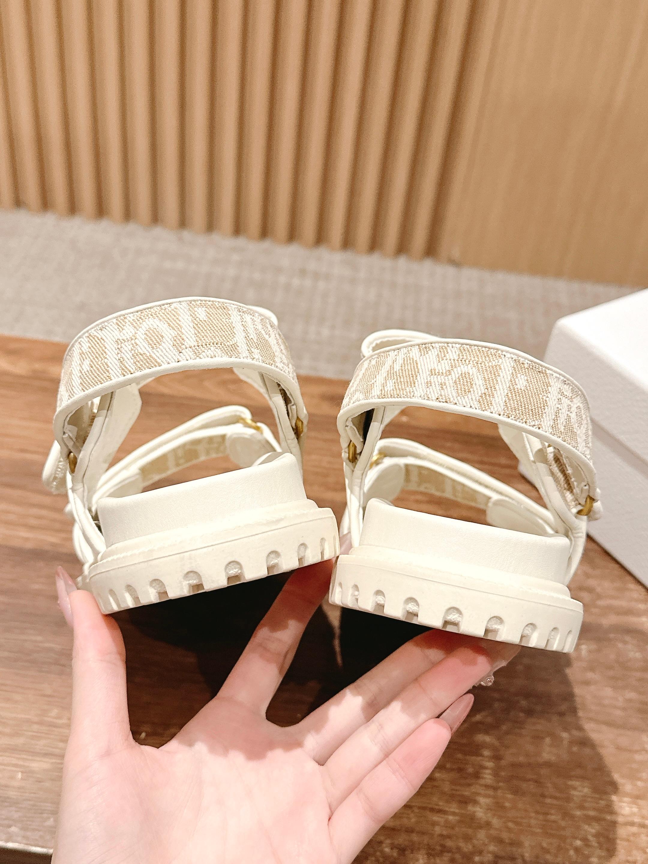 NIGO Dior Women's Summer Dioract Checkered Fabric Jacquard Round Head Velcro Solid Color Beach Sandals Casual Shoes #nigo81261