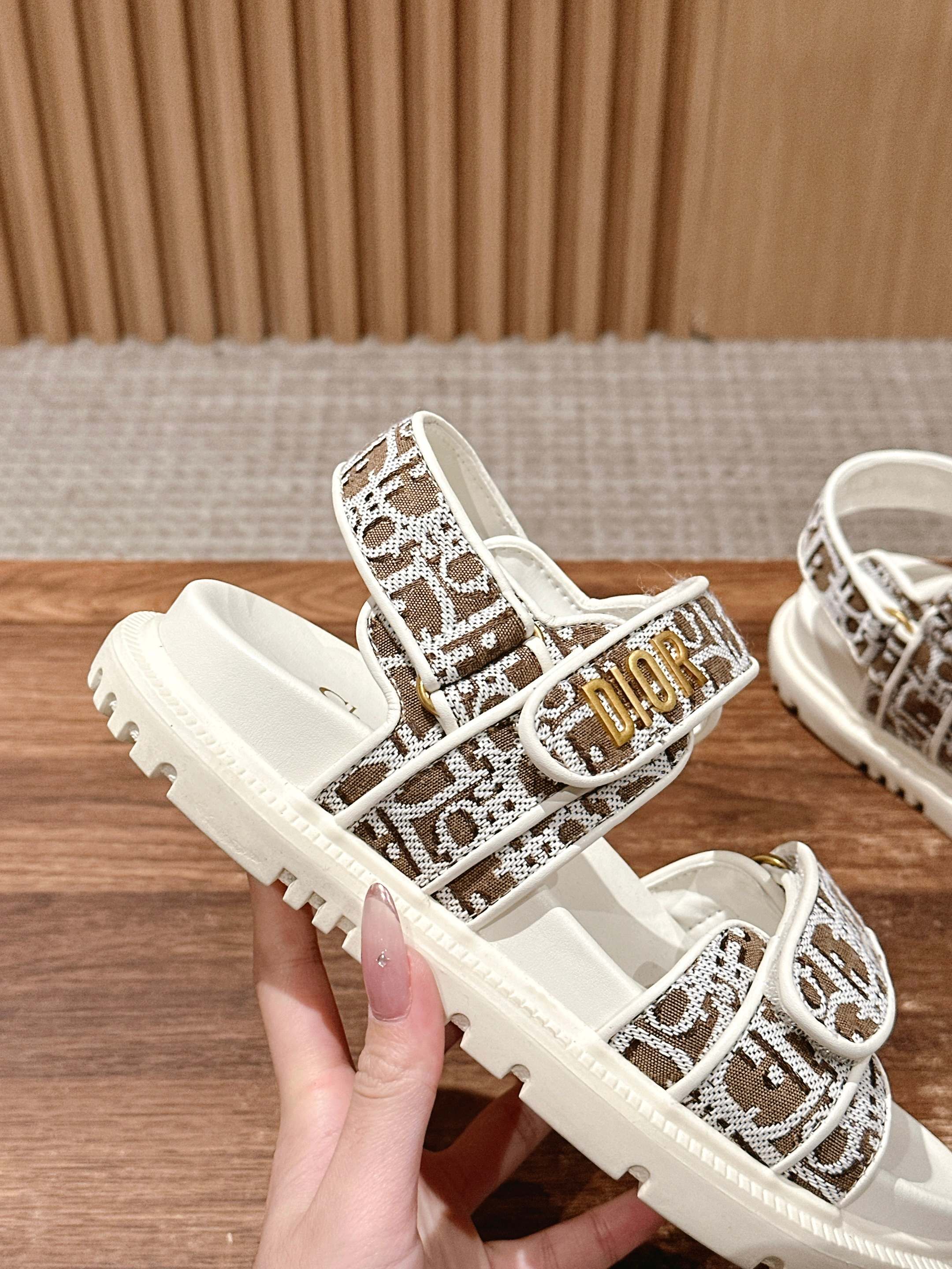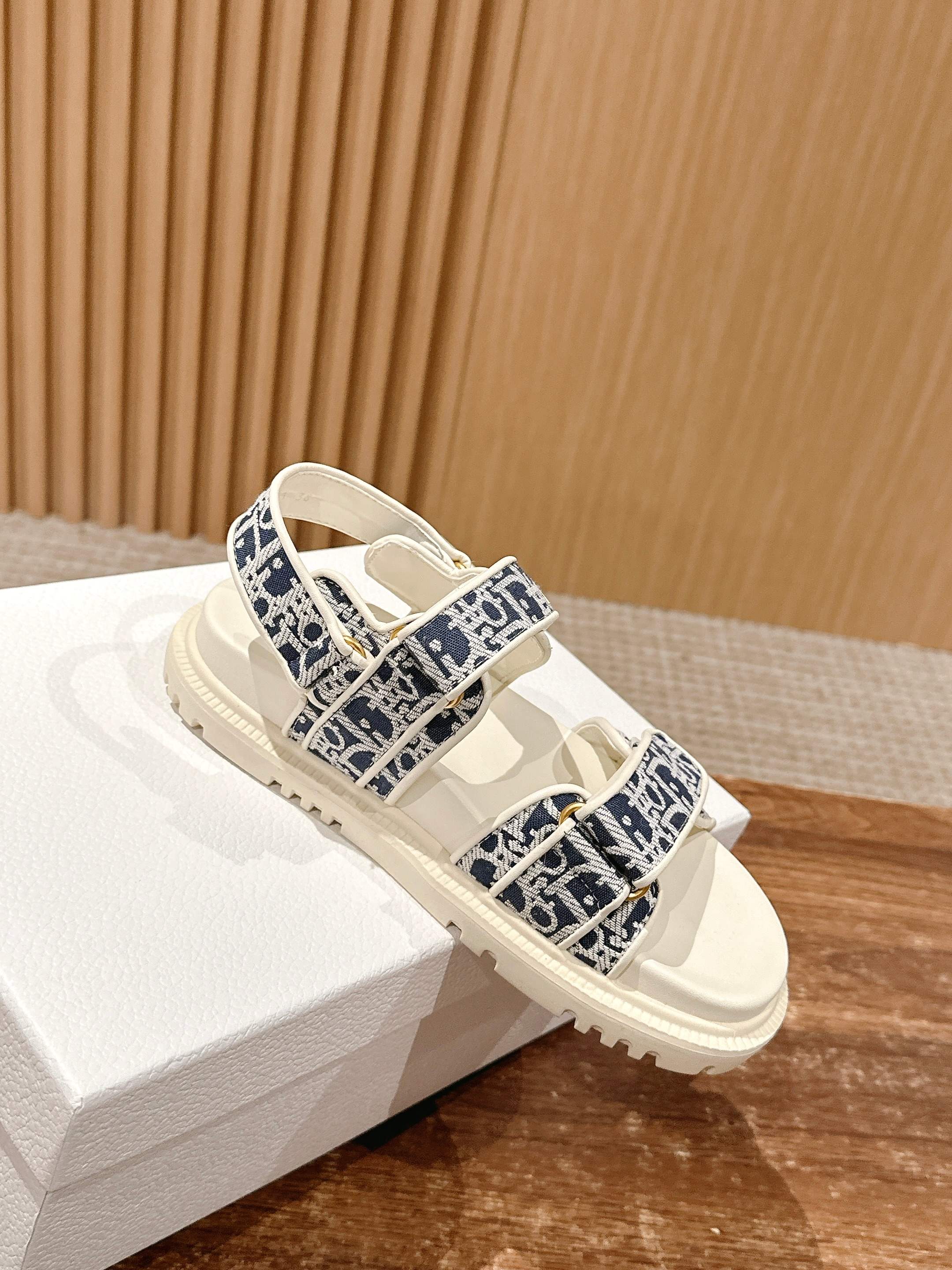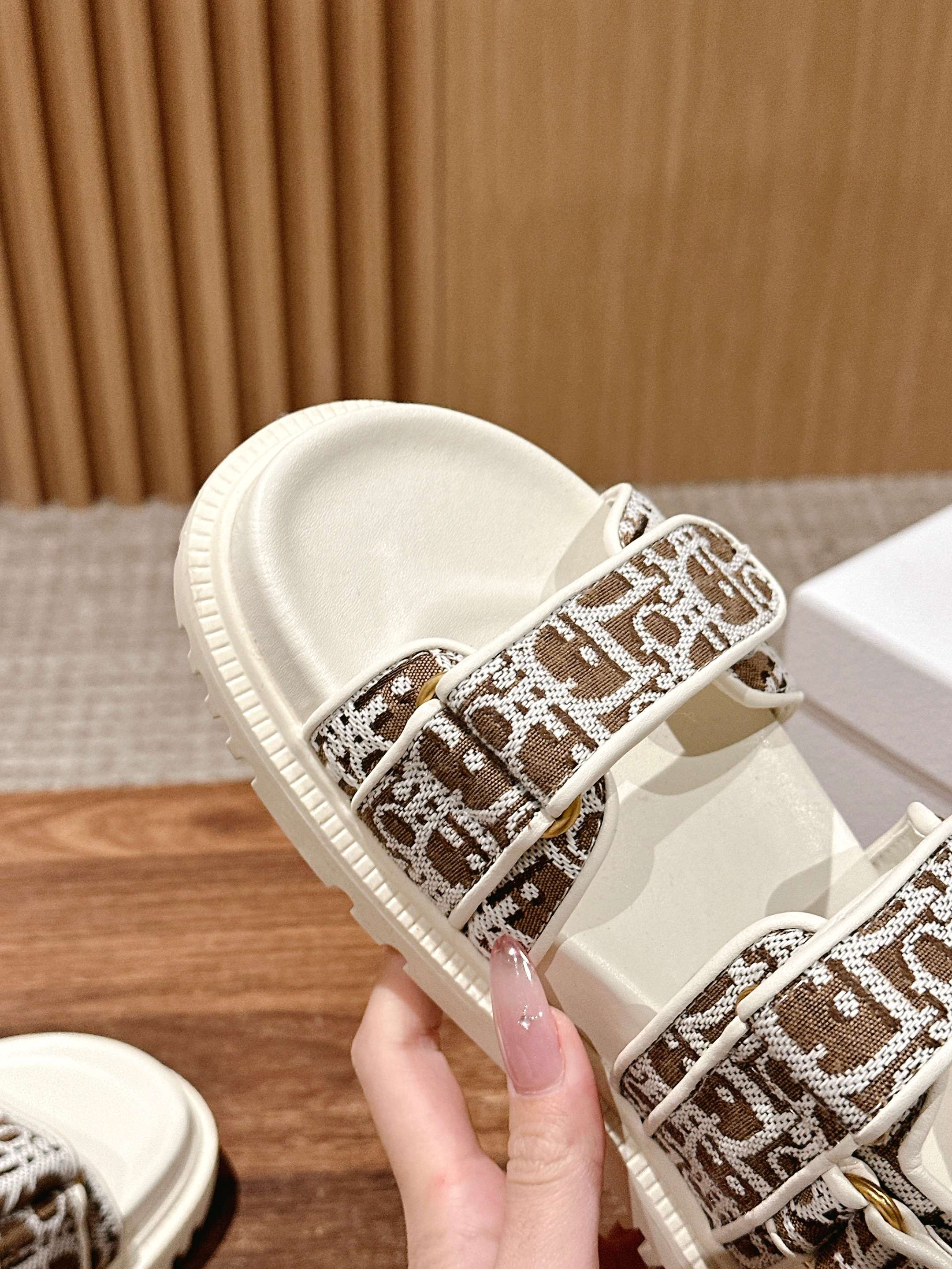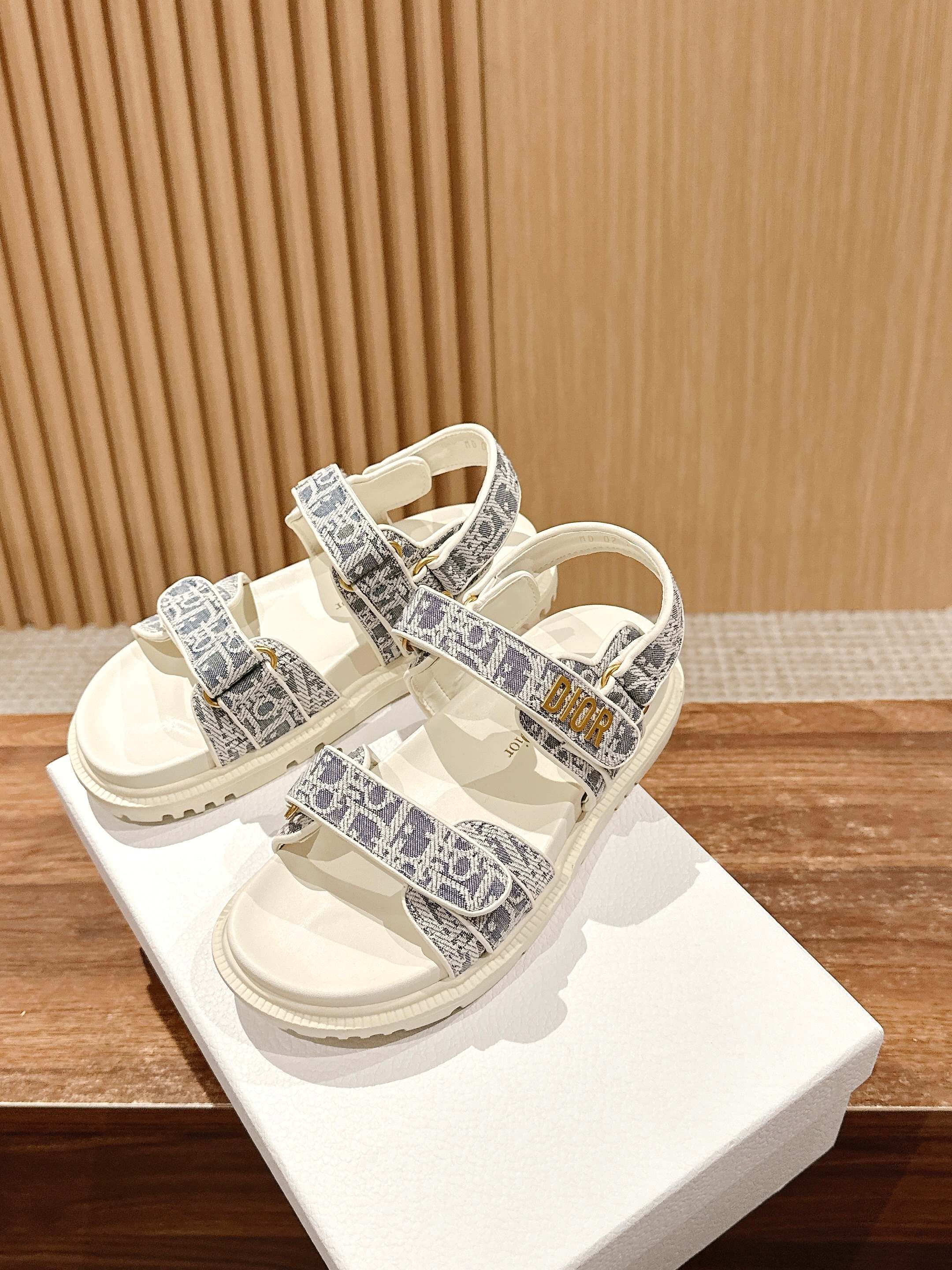 NIGO Dior Women's Summer Dioract Checkered Fabric Jacquard Round Head Velcro Solid Color Beach Sandals Casual Shoes #nigo81261