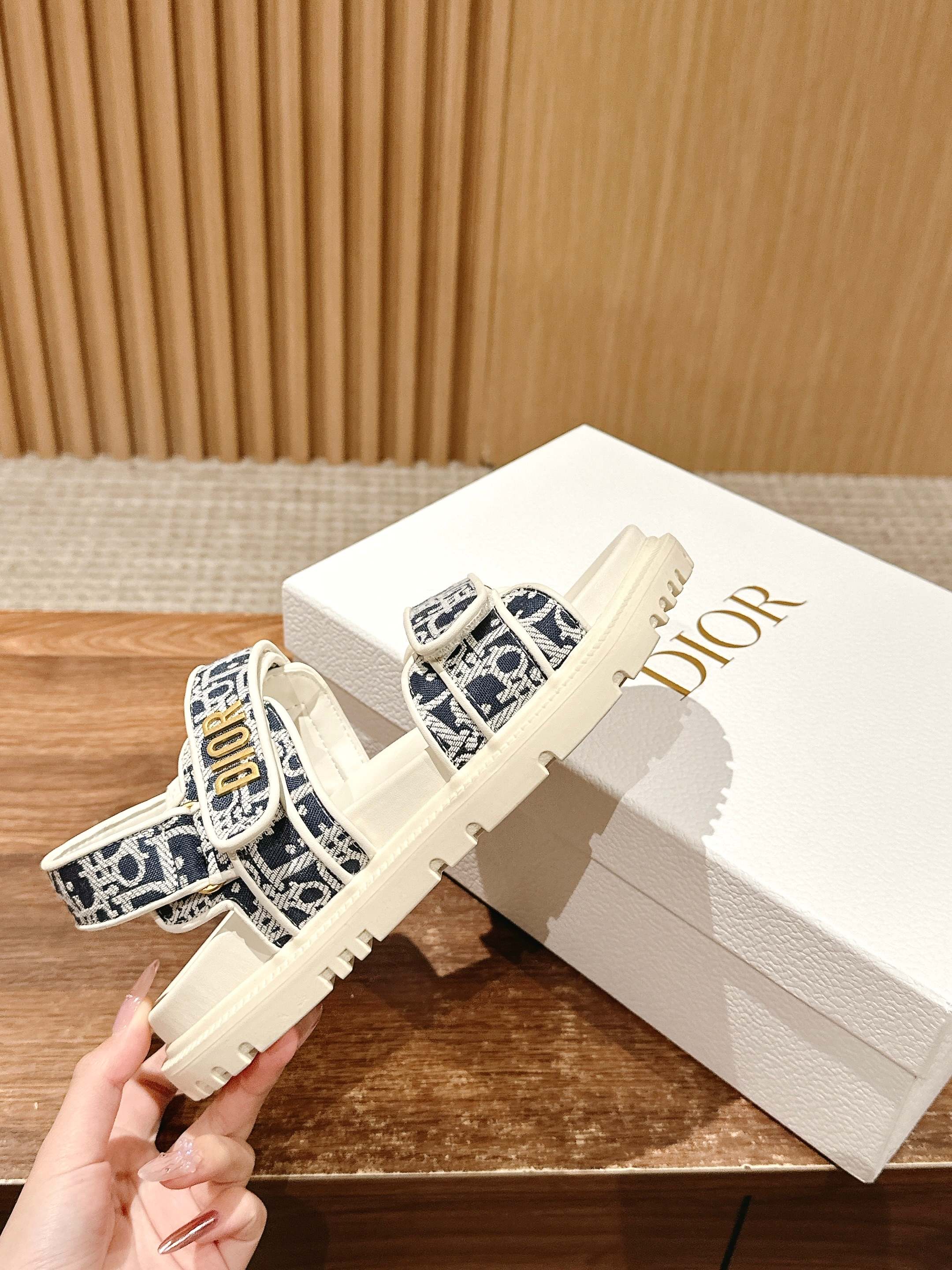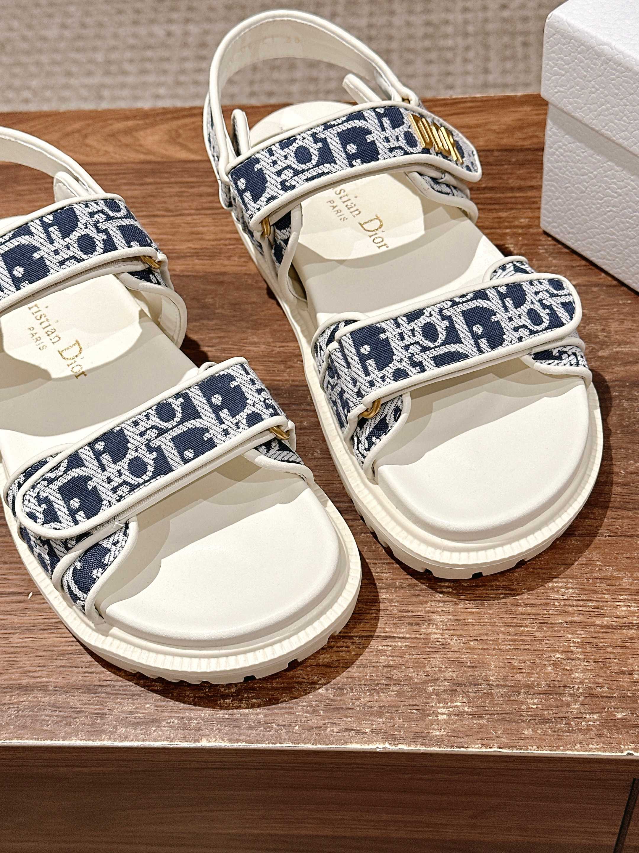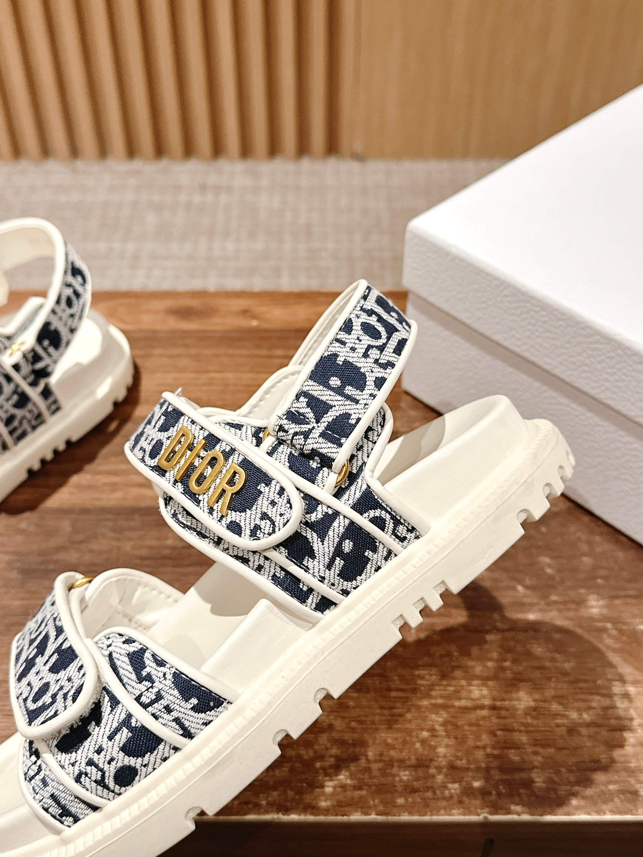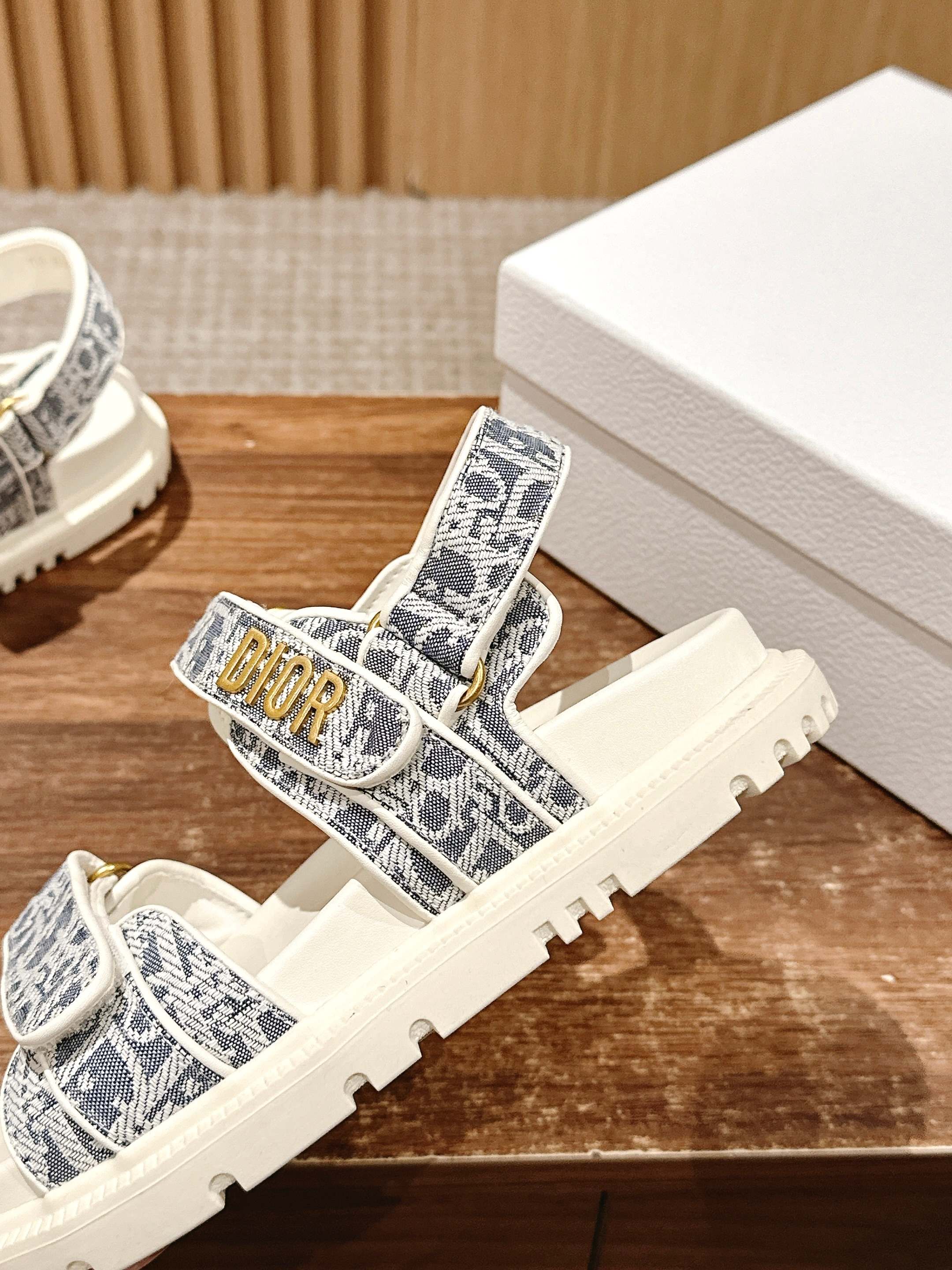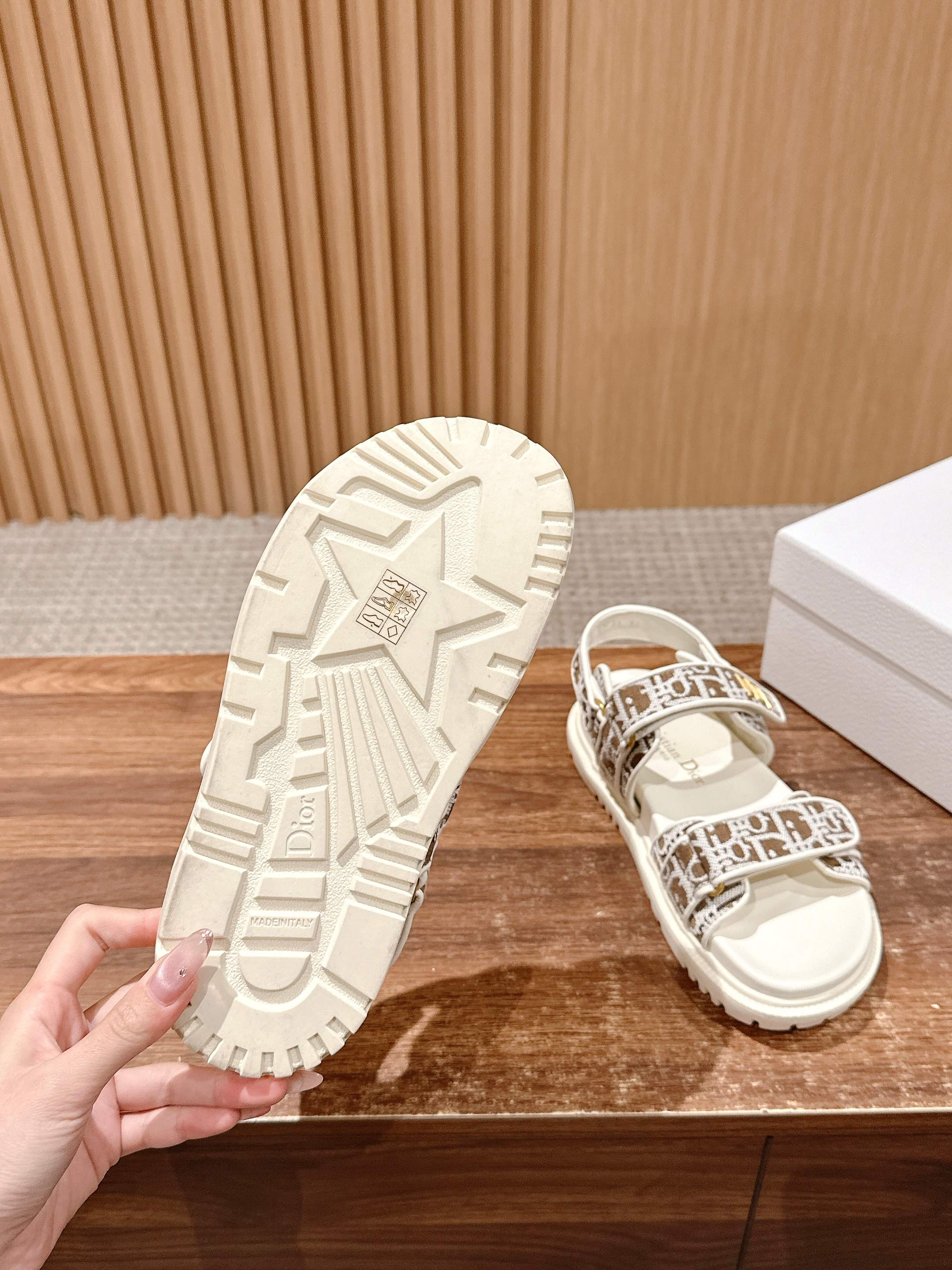 NIGO Dior Women's Summer Dioract Checkered Fabric Jacquard Round Head Velcro Solid Color Beach Sandals Casual Shoes #nigo81261