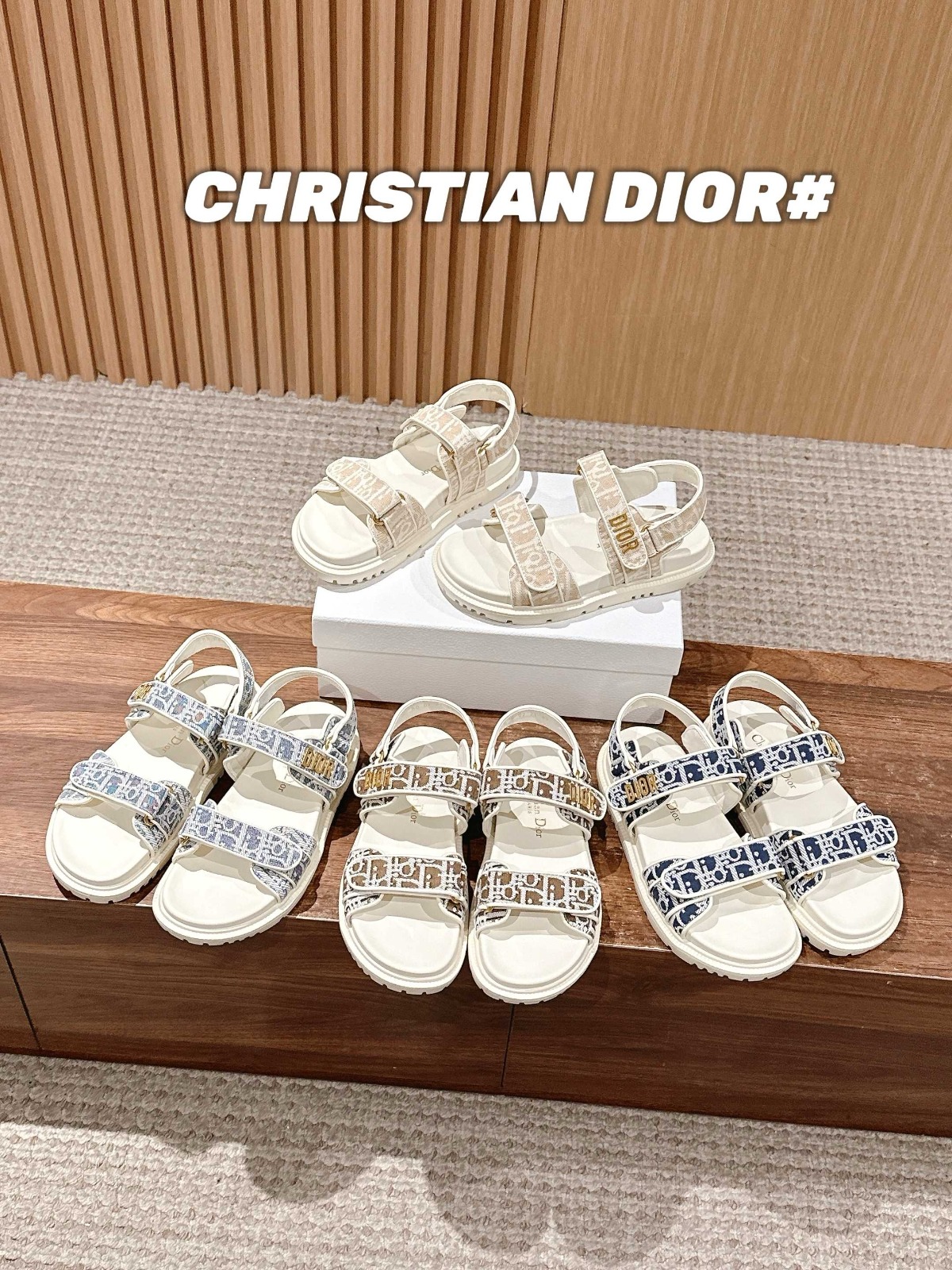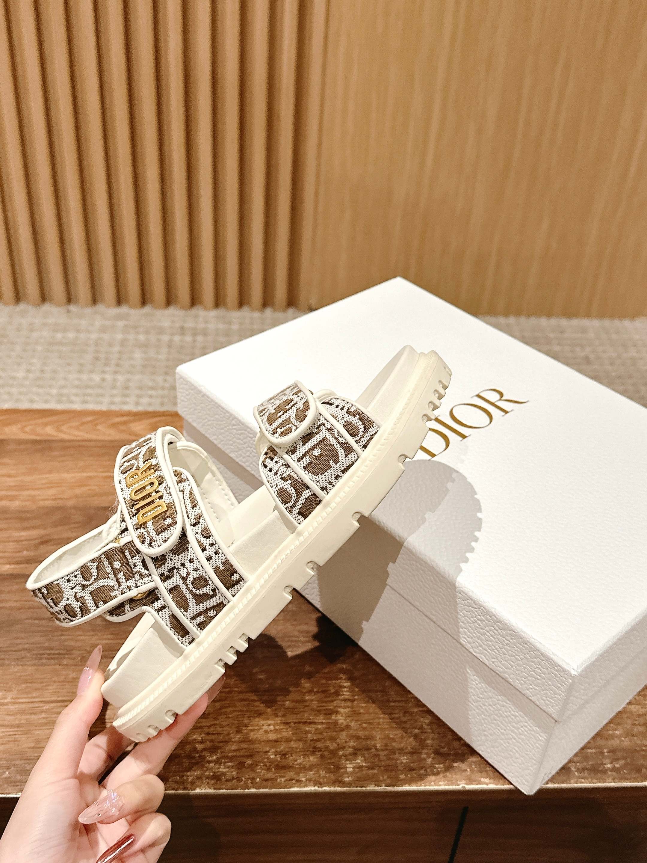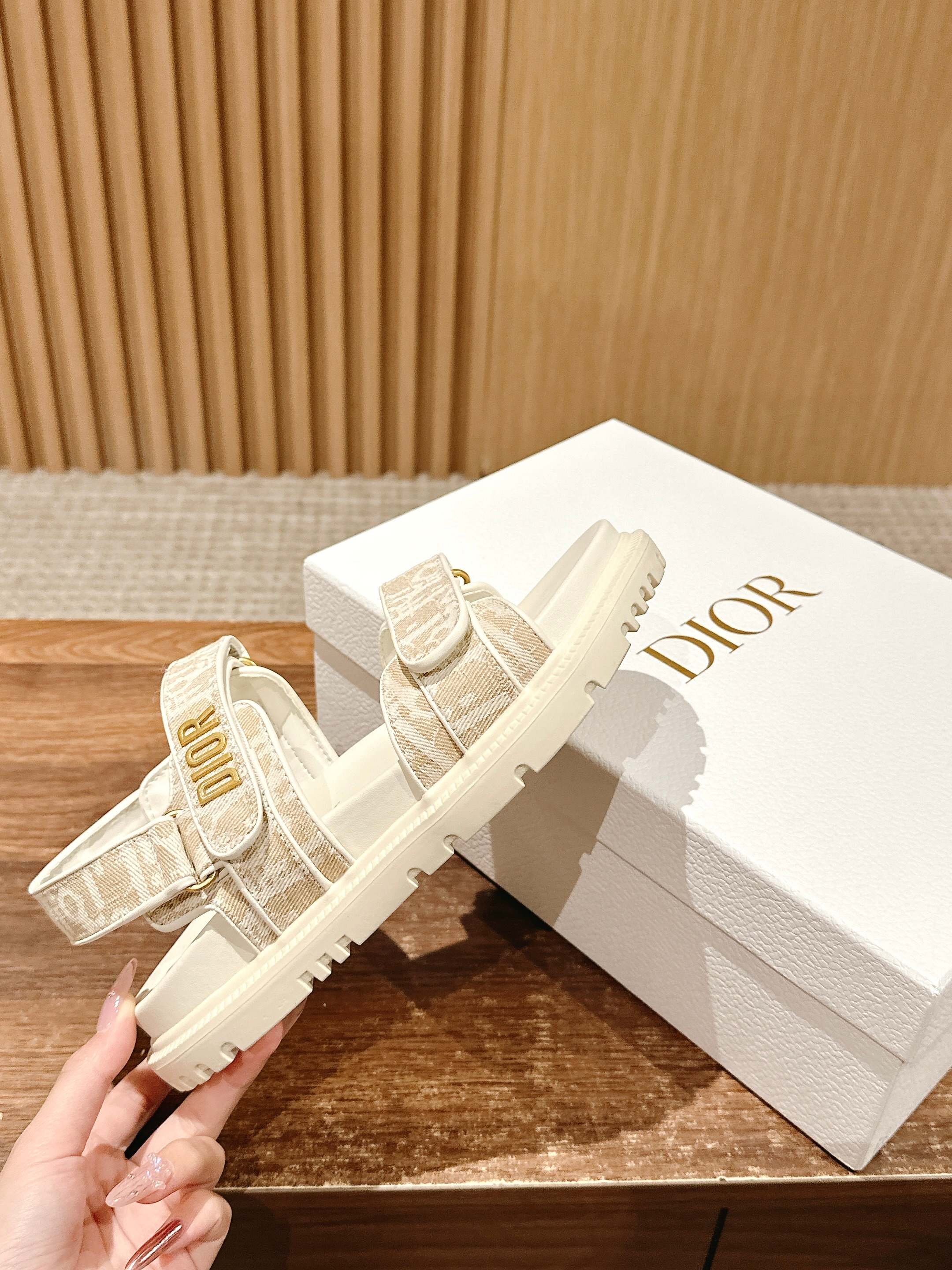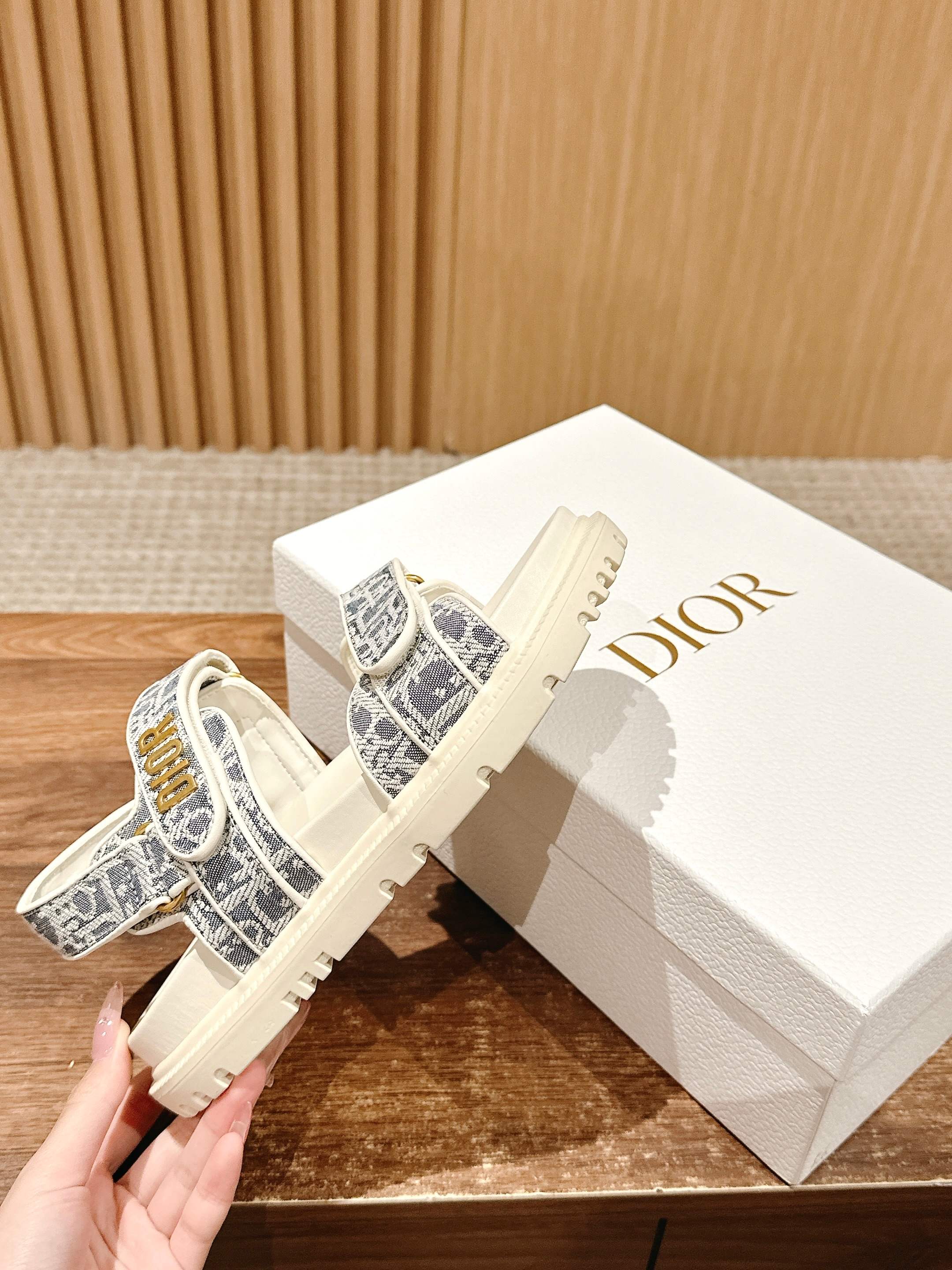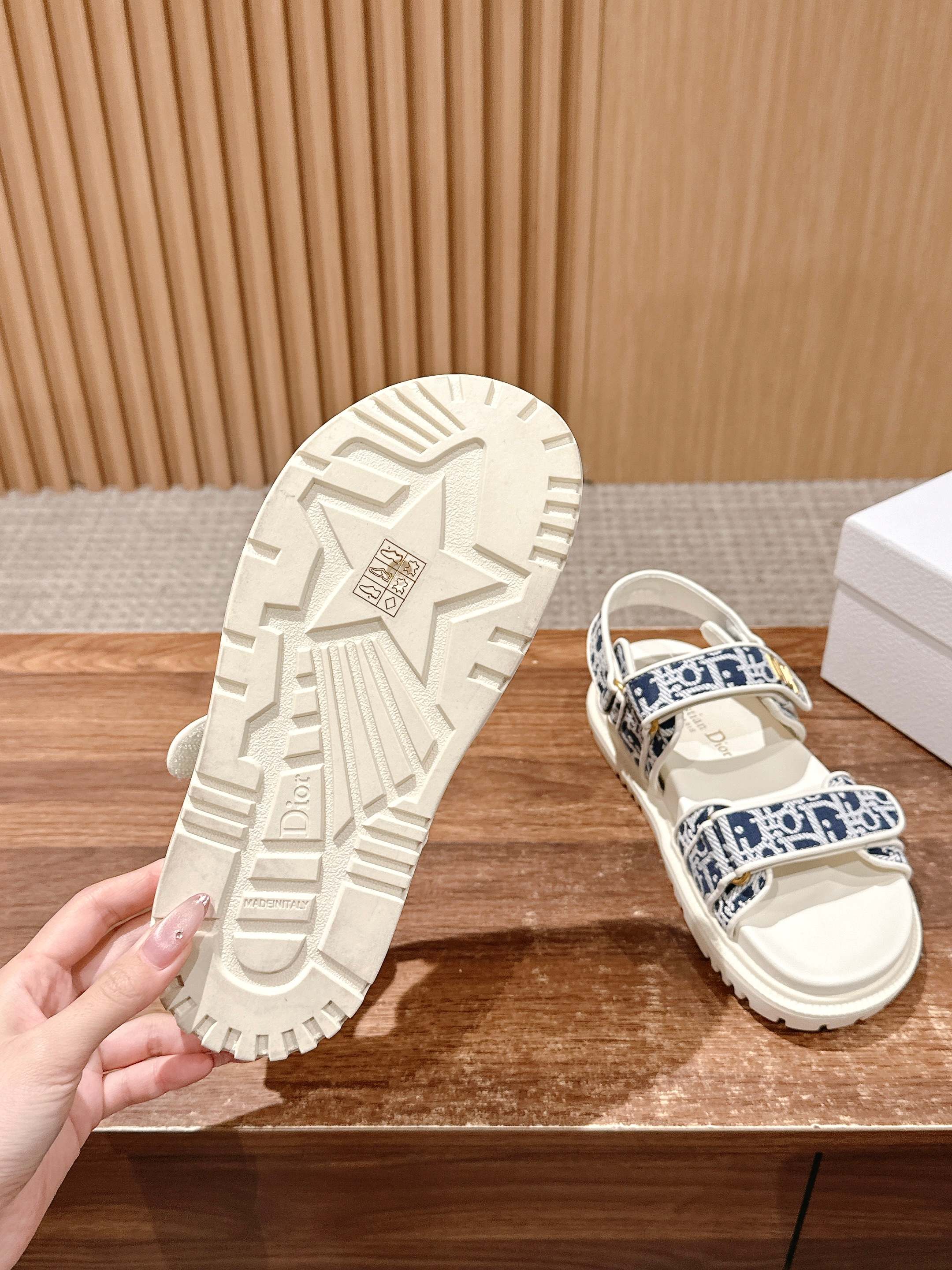 NIGO Dior Women's Summer Dioract Checkered Fabric Jacquard Round Head Velcro Solid Color Beach Sandals Casual Shoes #nigo81261