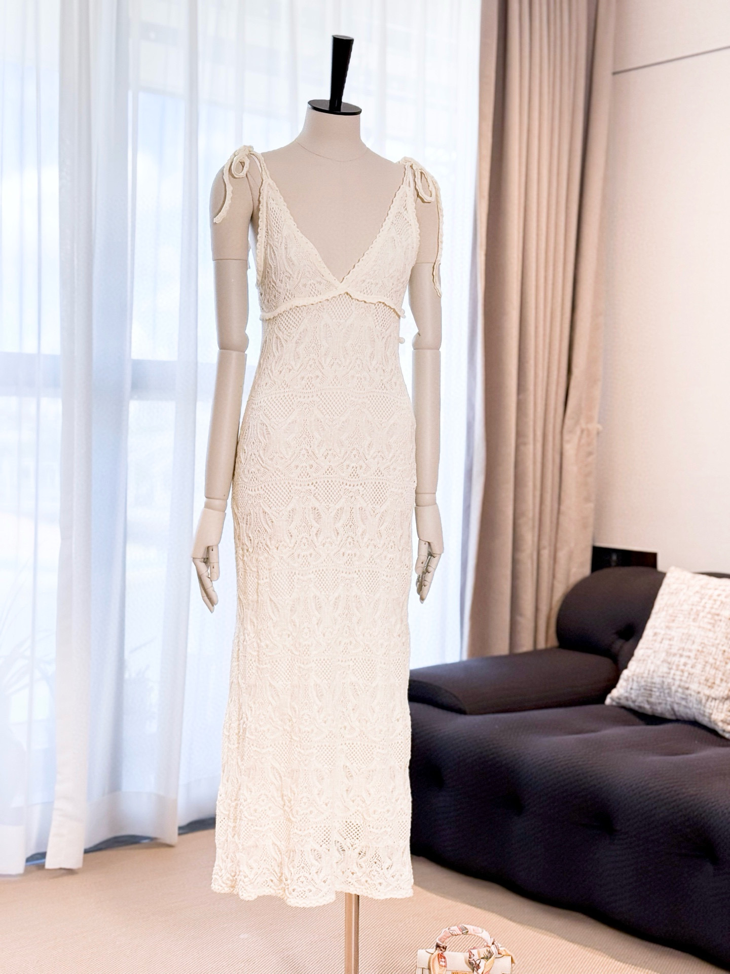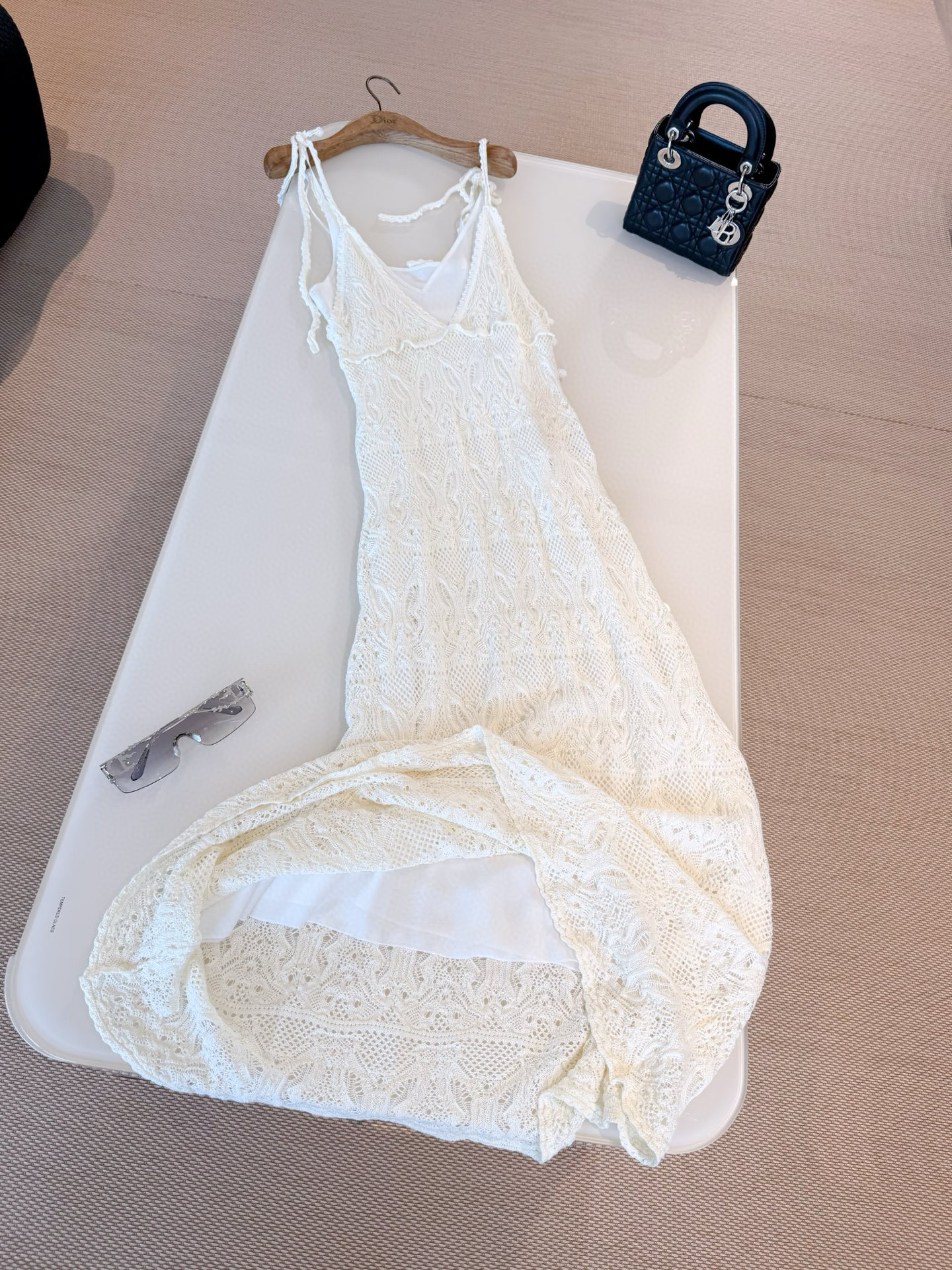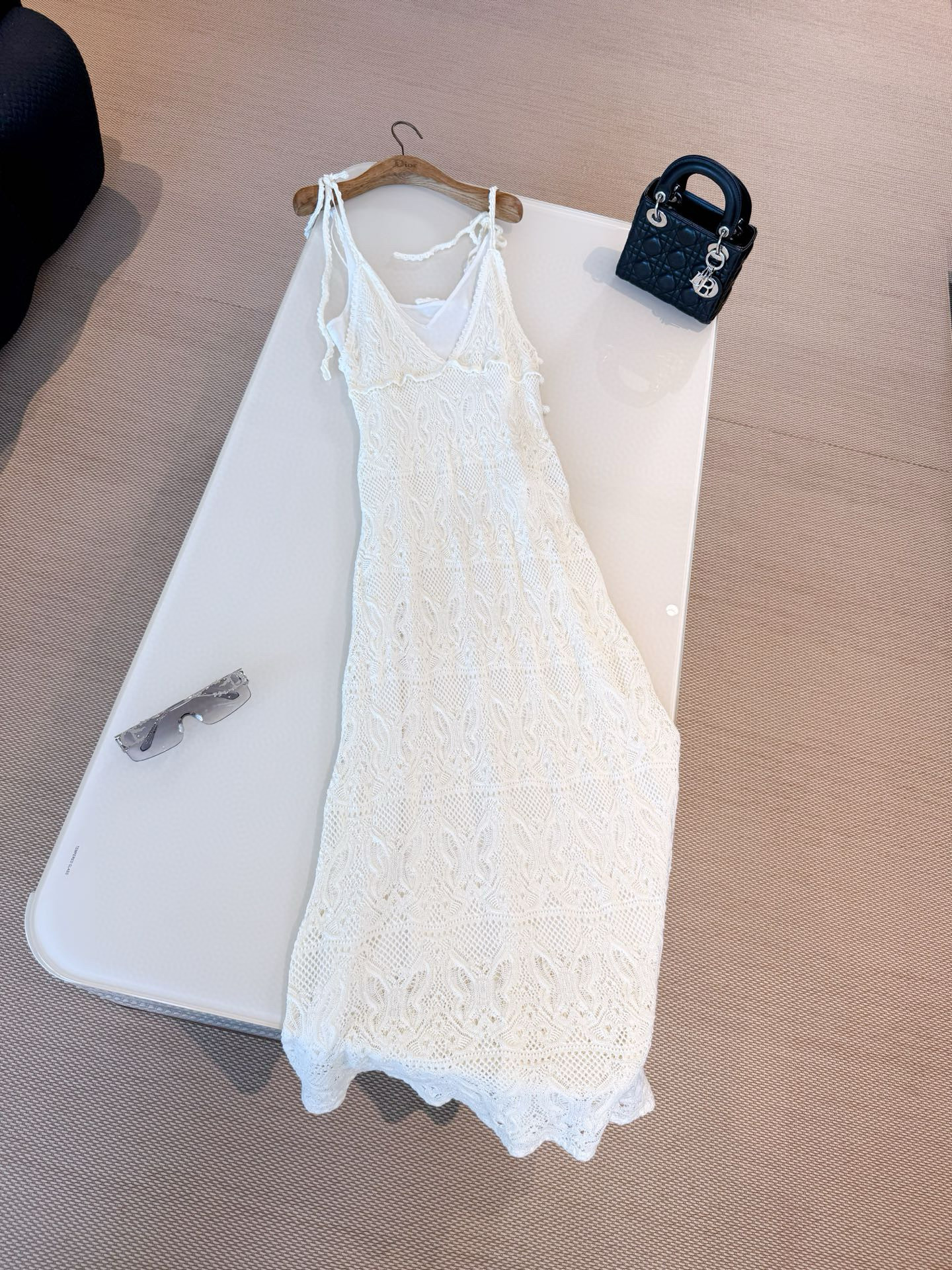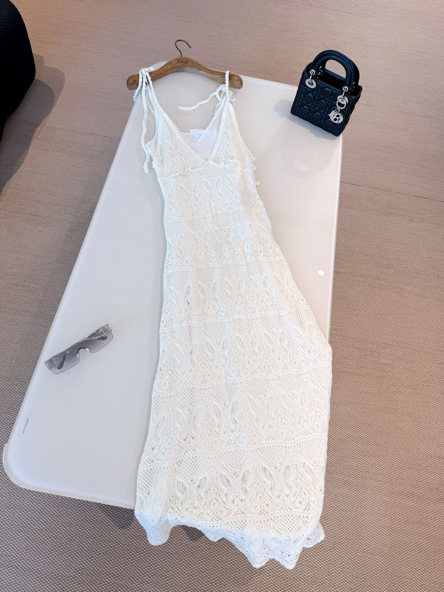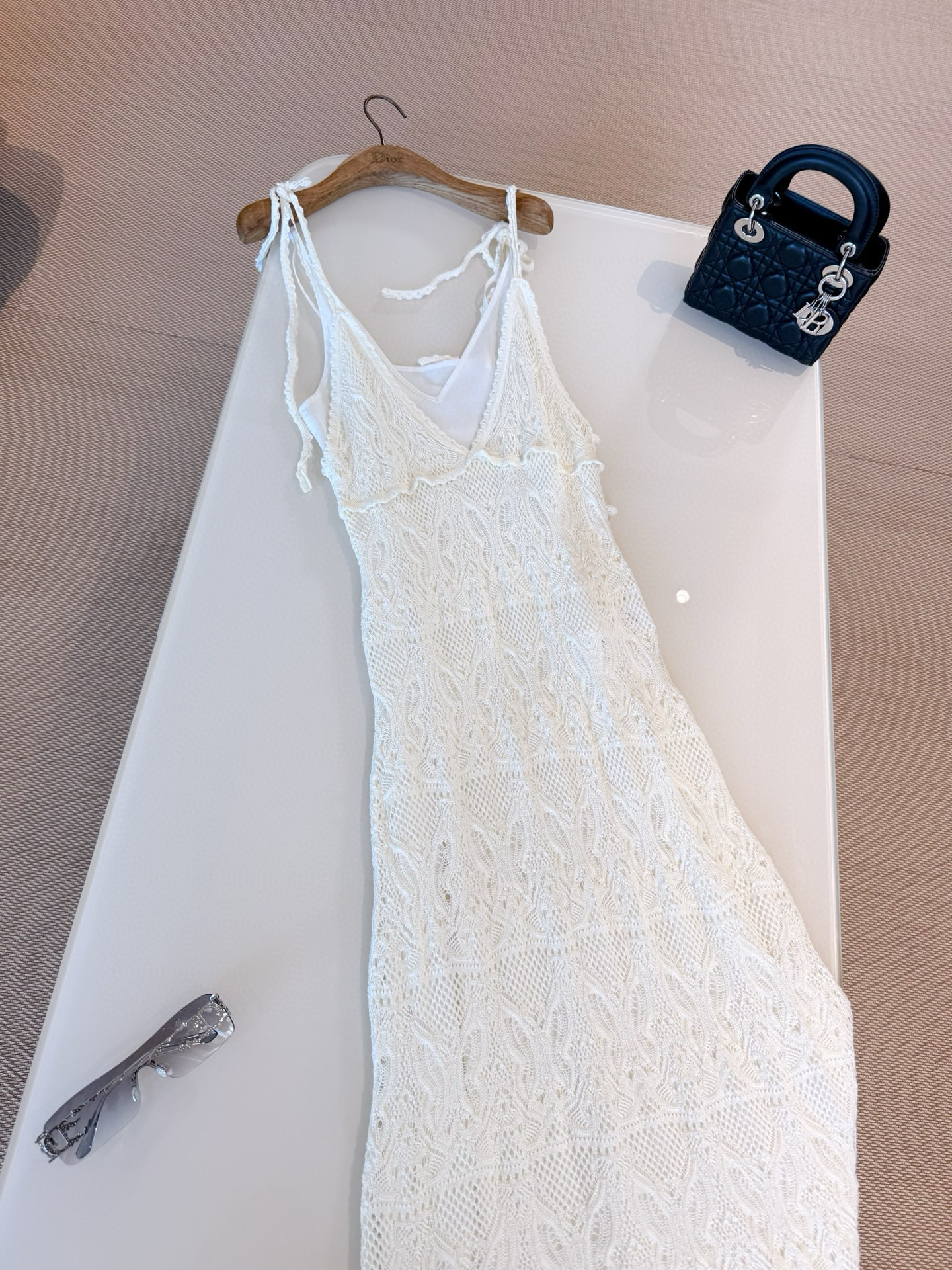 NIGO Dior Women's Summer Dioriviera Hollow-Lined Two-Piece Cotton Solid-Color High-Street Long Sleeveless Halter Flared Dress Dresses Ngvp #nigo2331