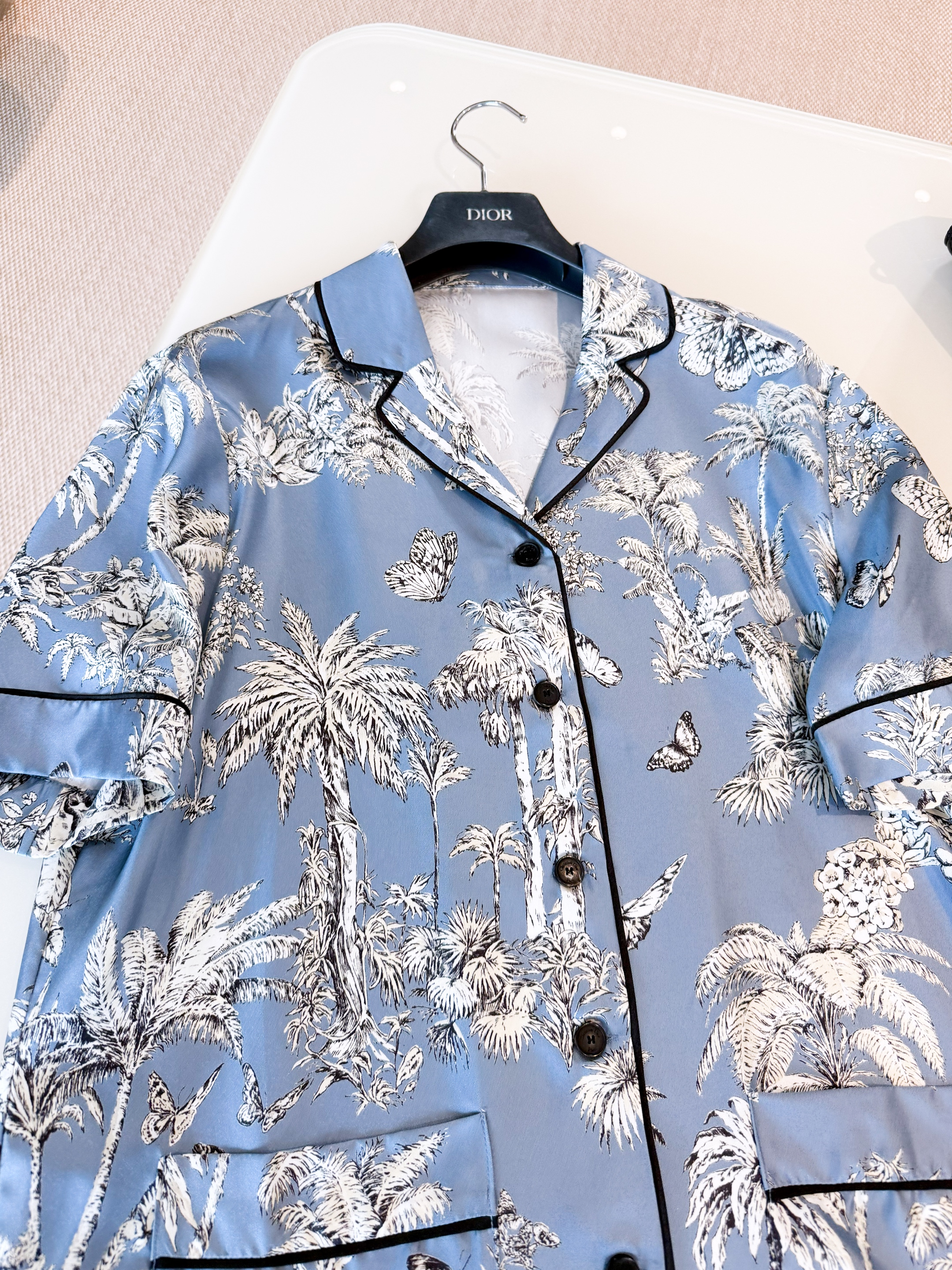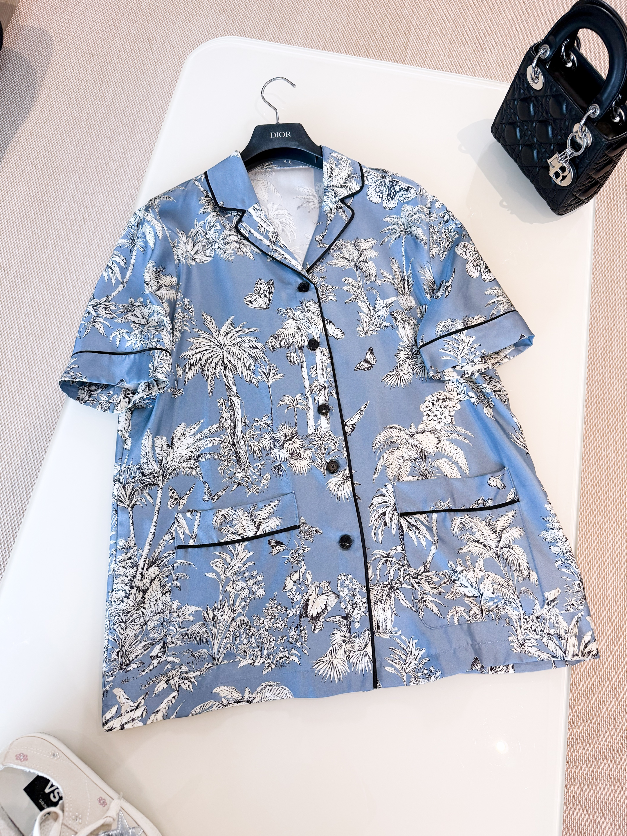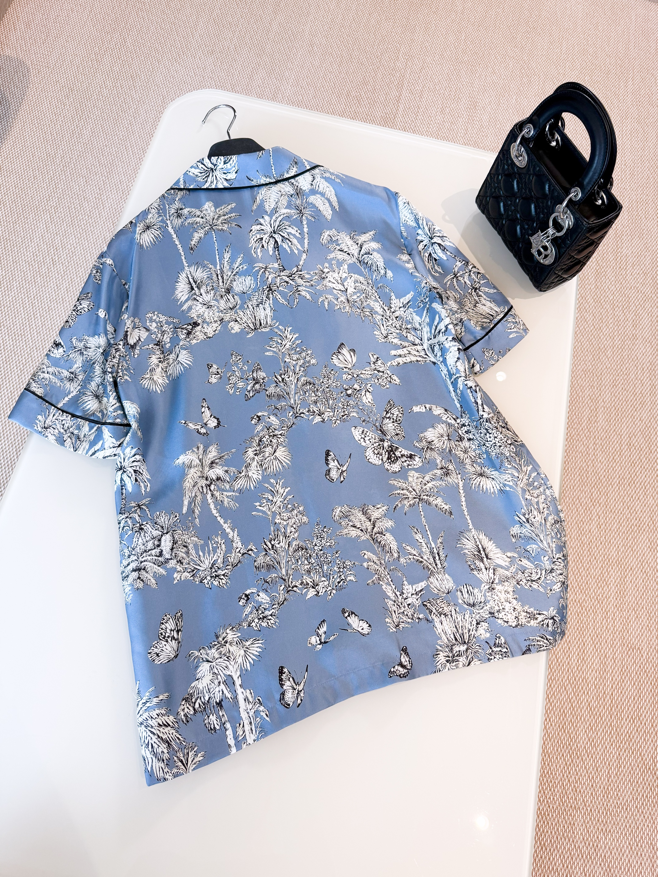 NIGO Dior Women's Summer Silk Twill Floral Print Lapel Solid Color Loose Short Sleeve Shirt Ngvp #nigo1922
