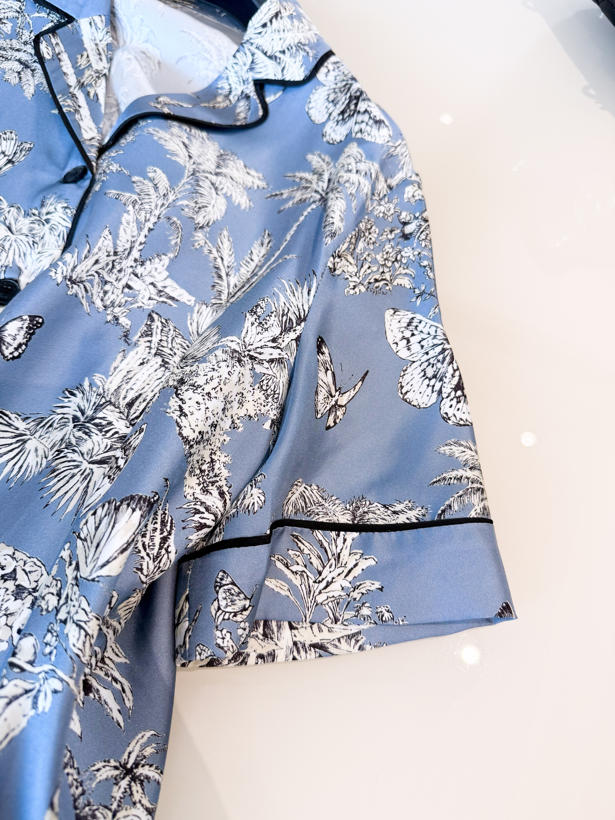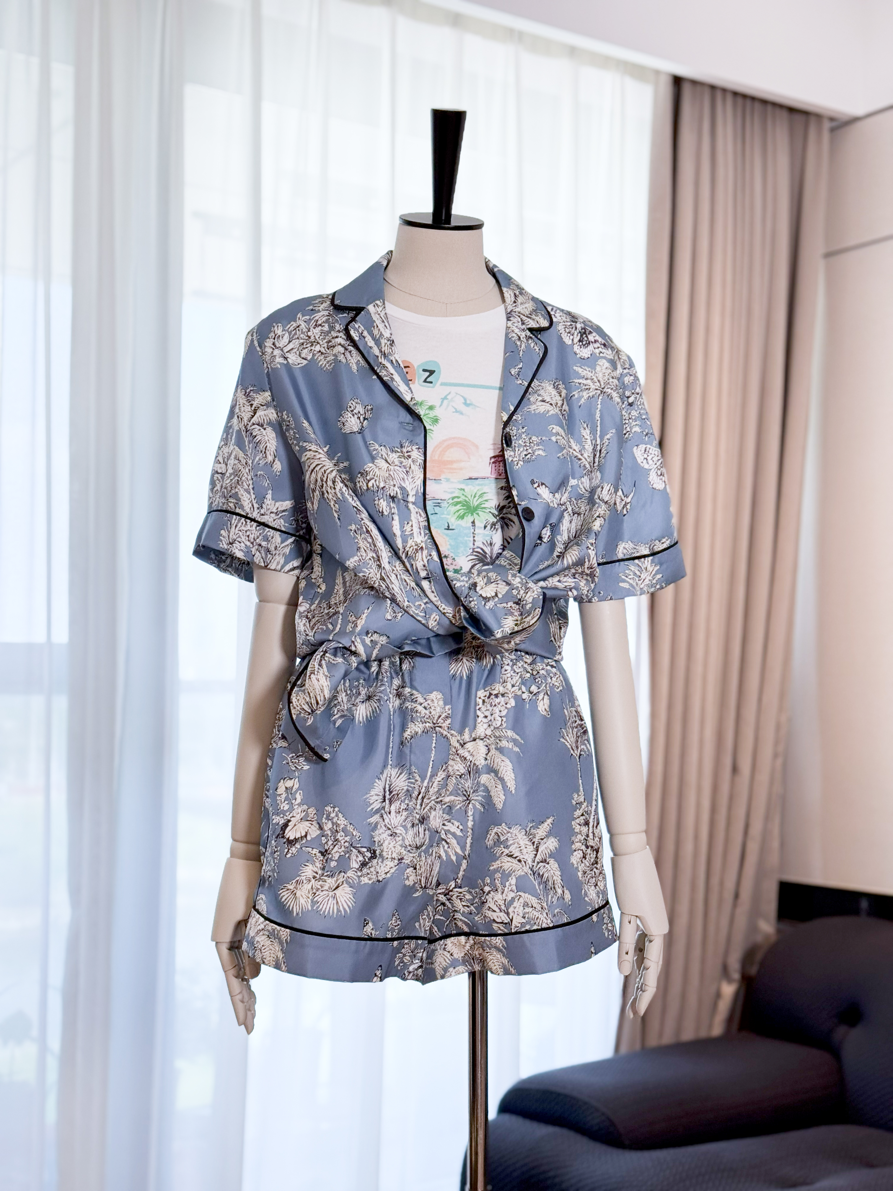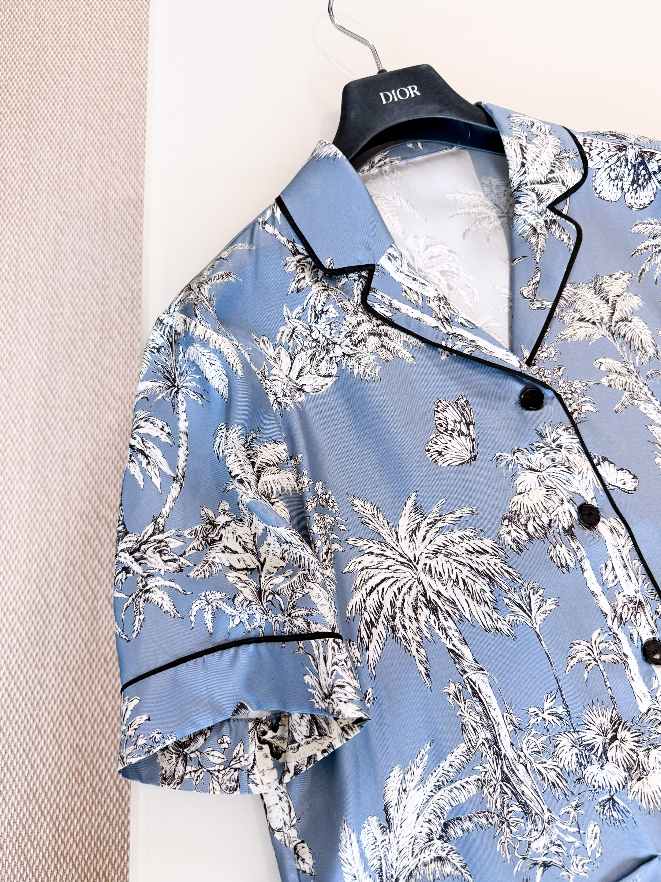 NIGO Dior Women's Summer Silk Twill Floral Print Lapel Solid Color Loose Short Sleeve Shirt Ngvp #nigo1922