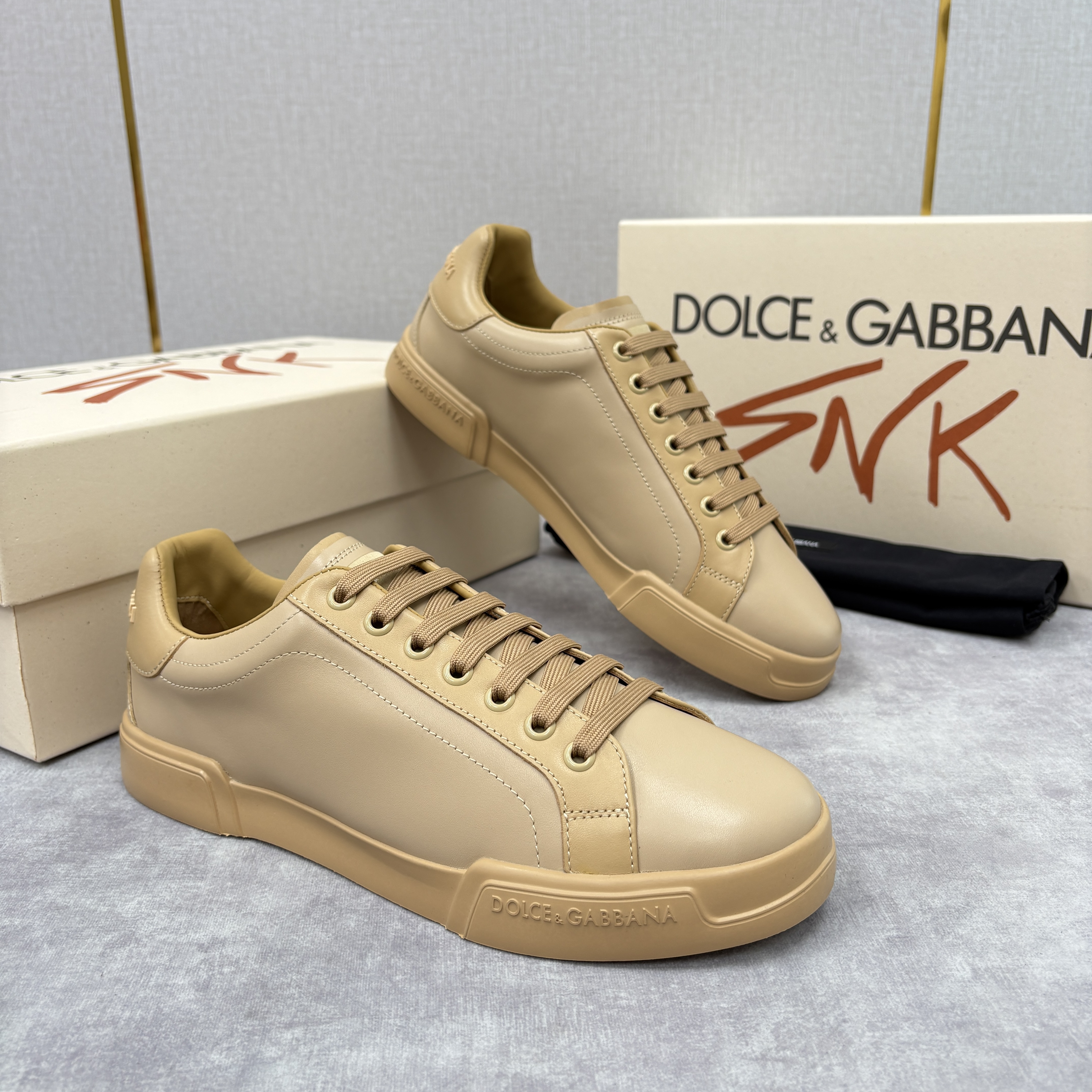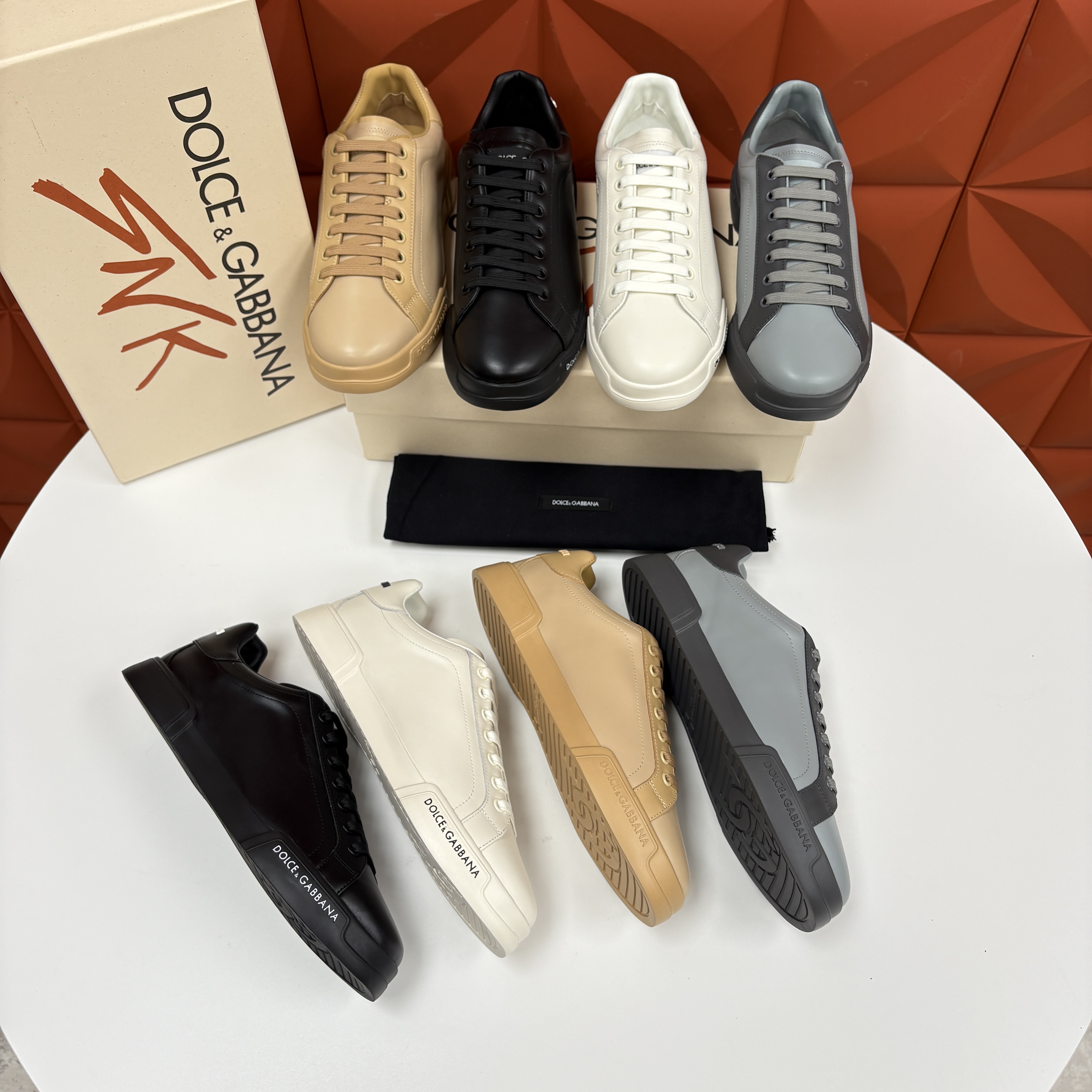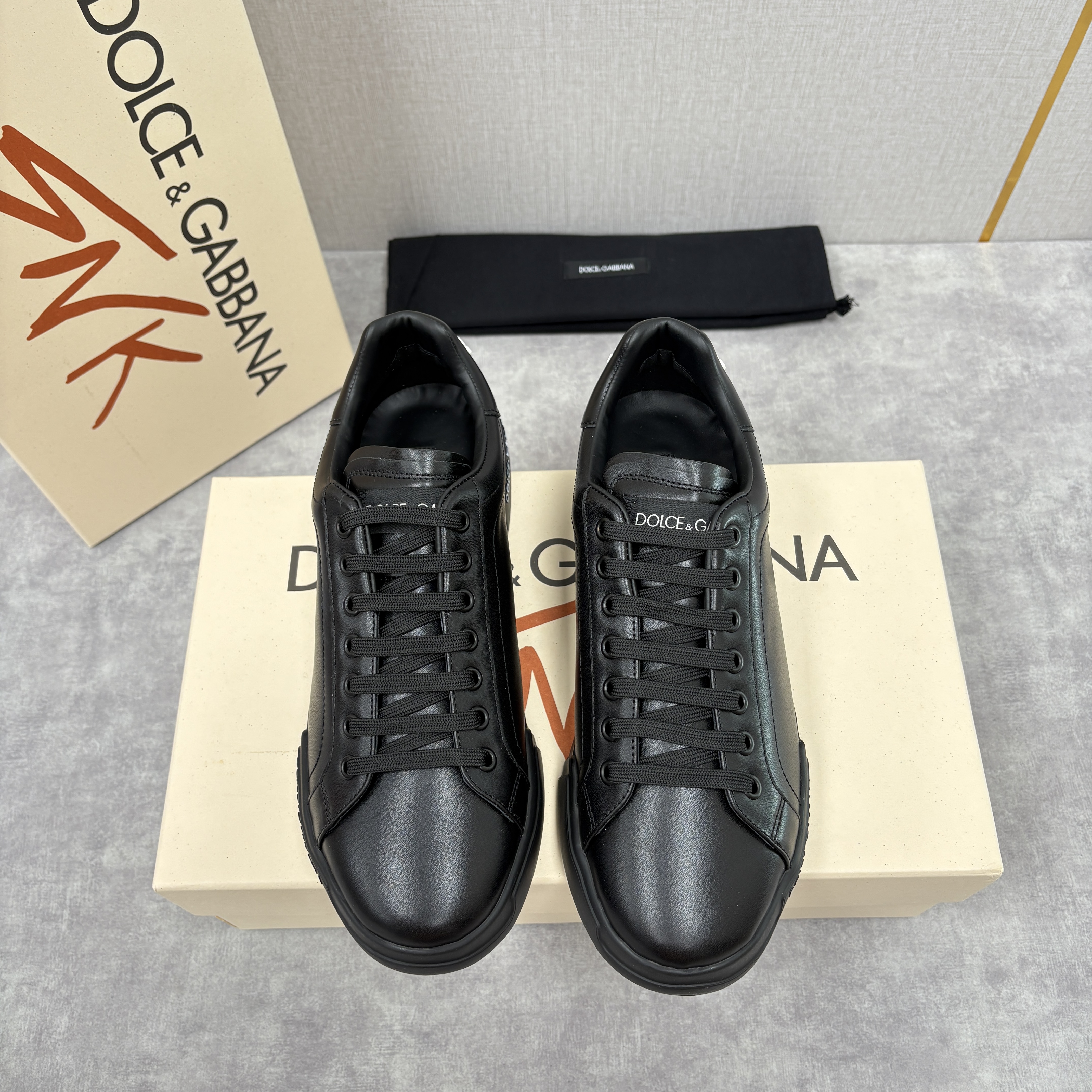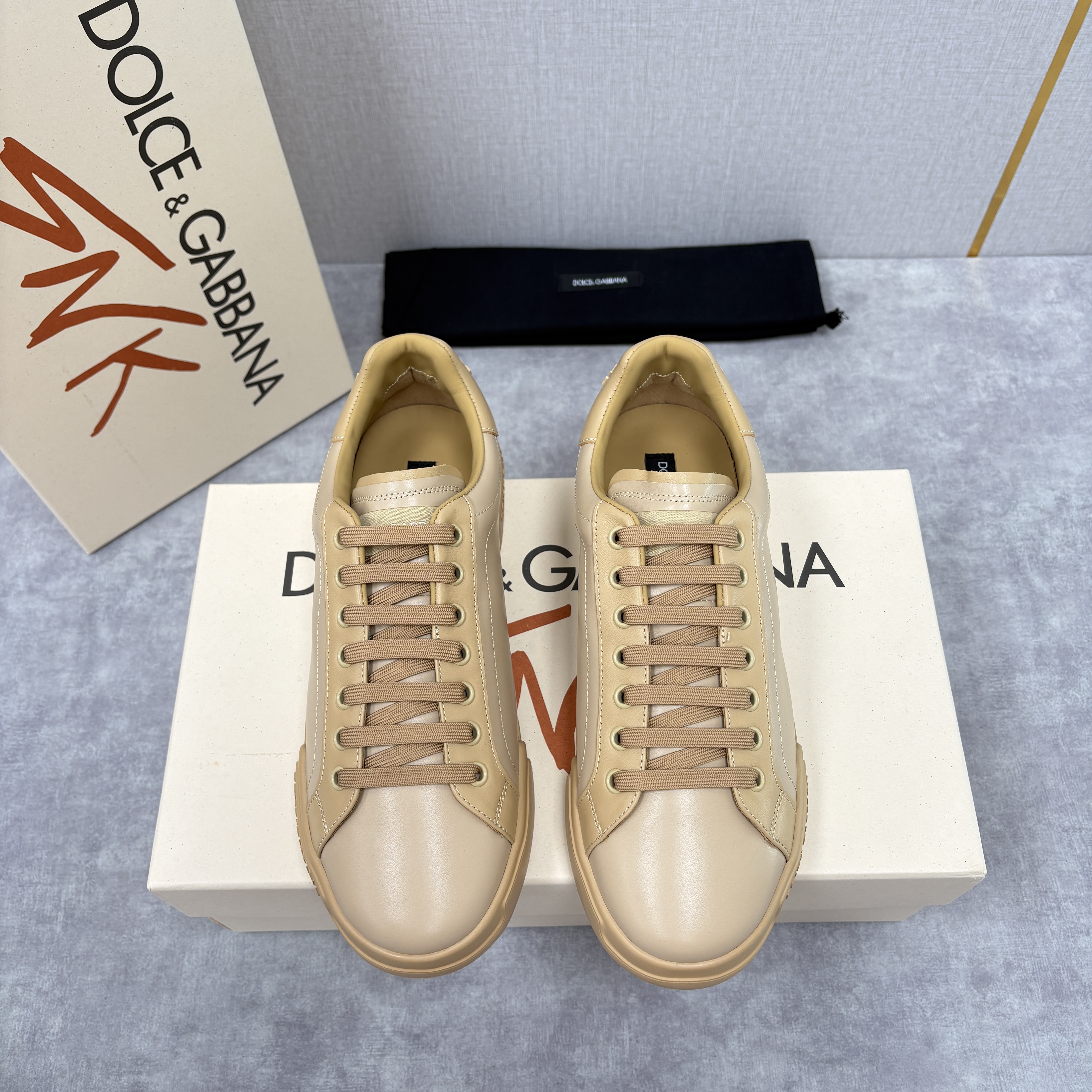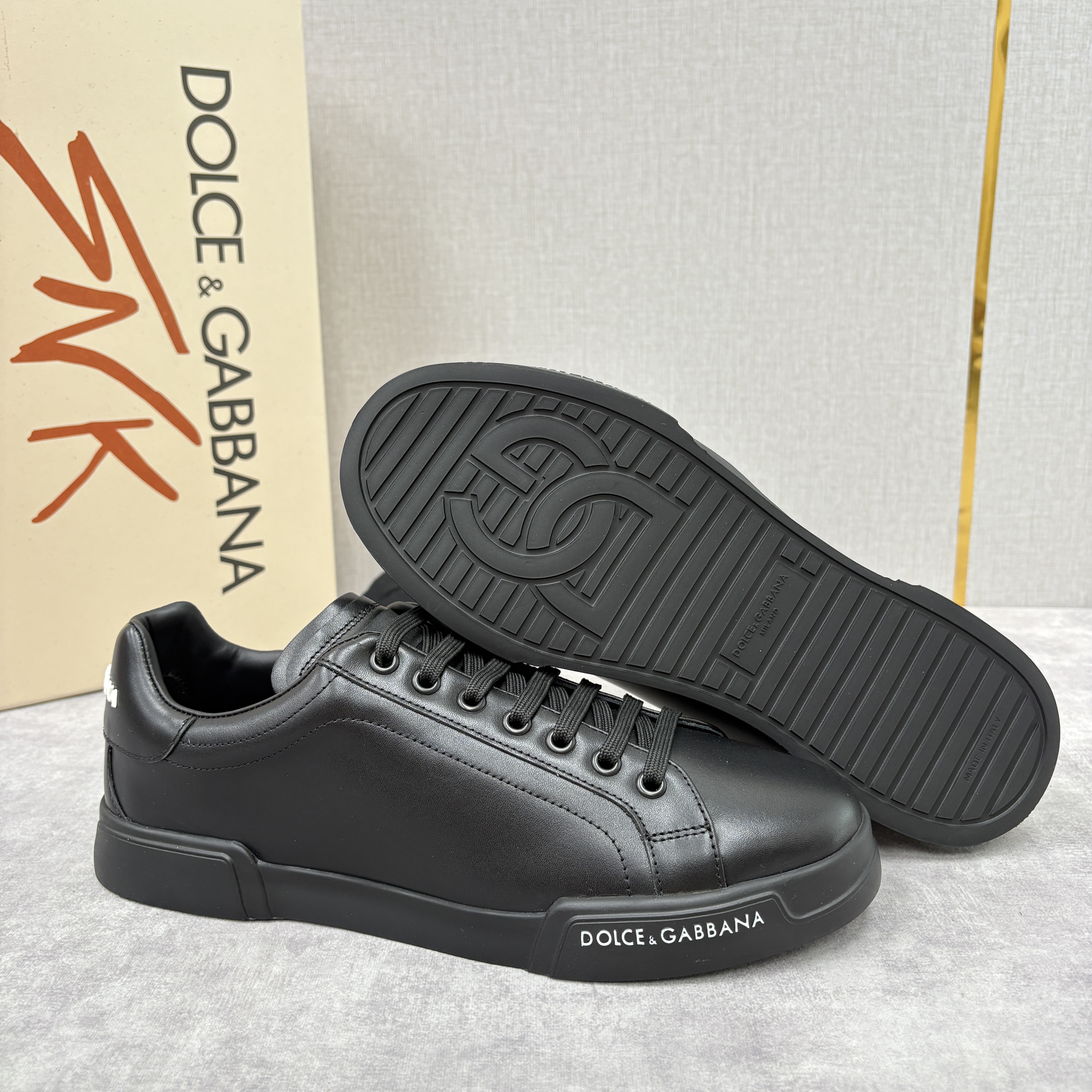 NIGO Dolce&Gabbana Men's And Women's Spring/Fall Fashion Casual Round Toe Lace Up Solid Color Leather Printed Rubber Sole Sneakers Shoes #nigo78728