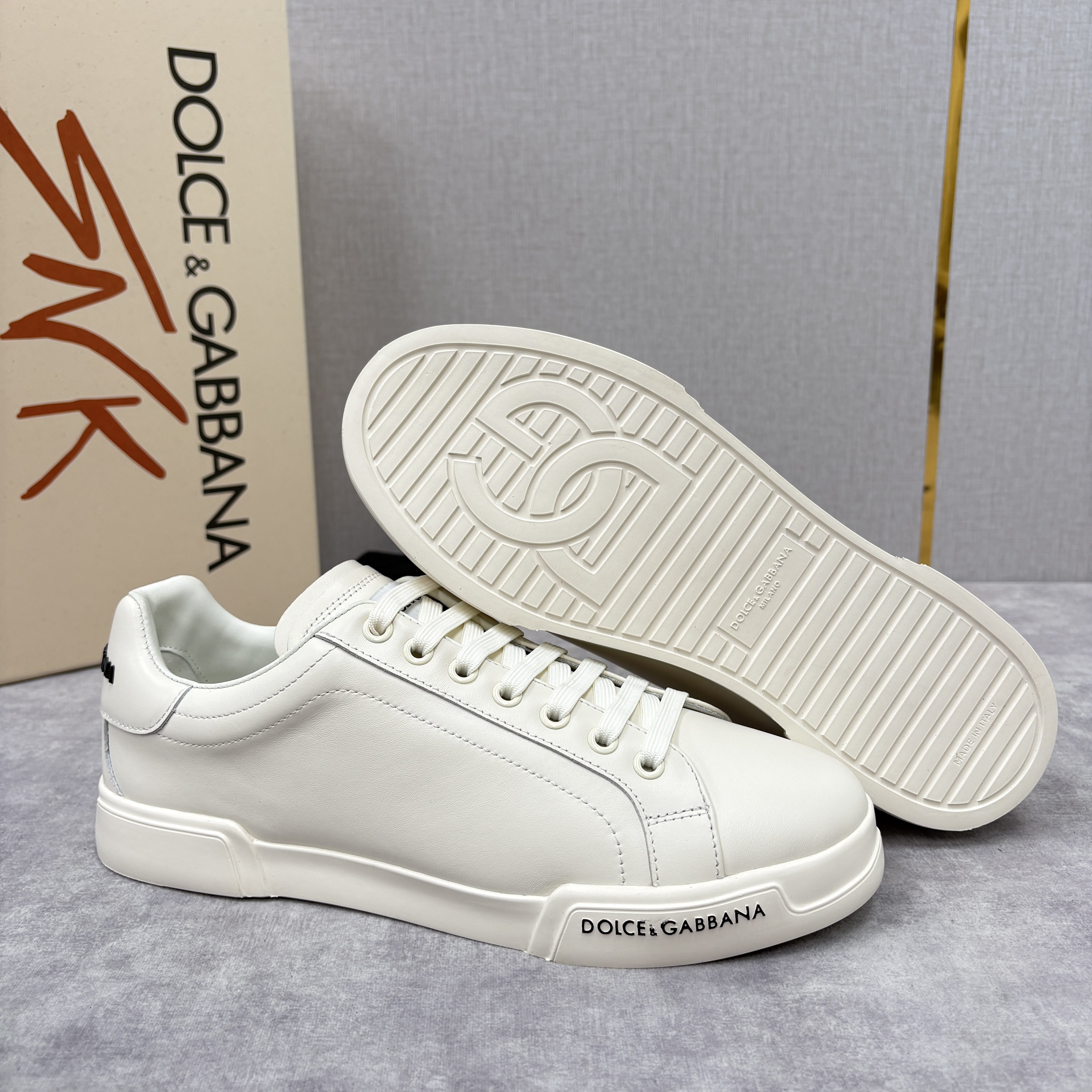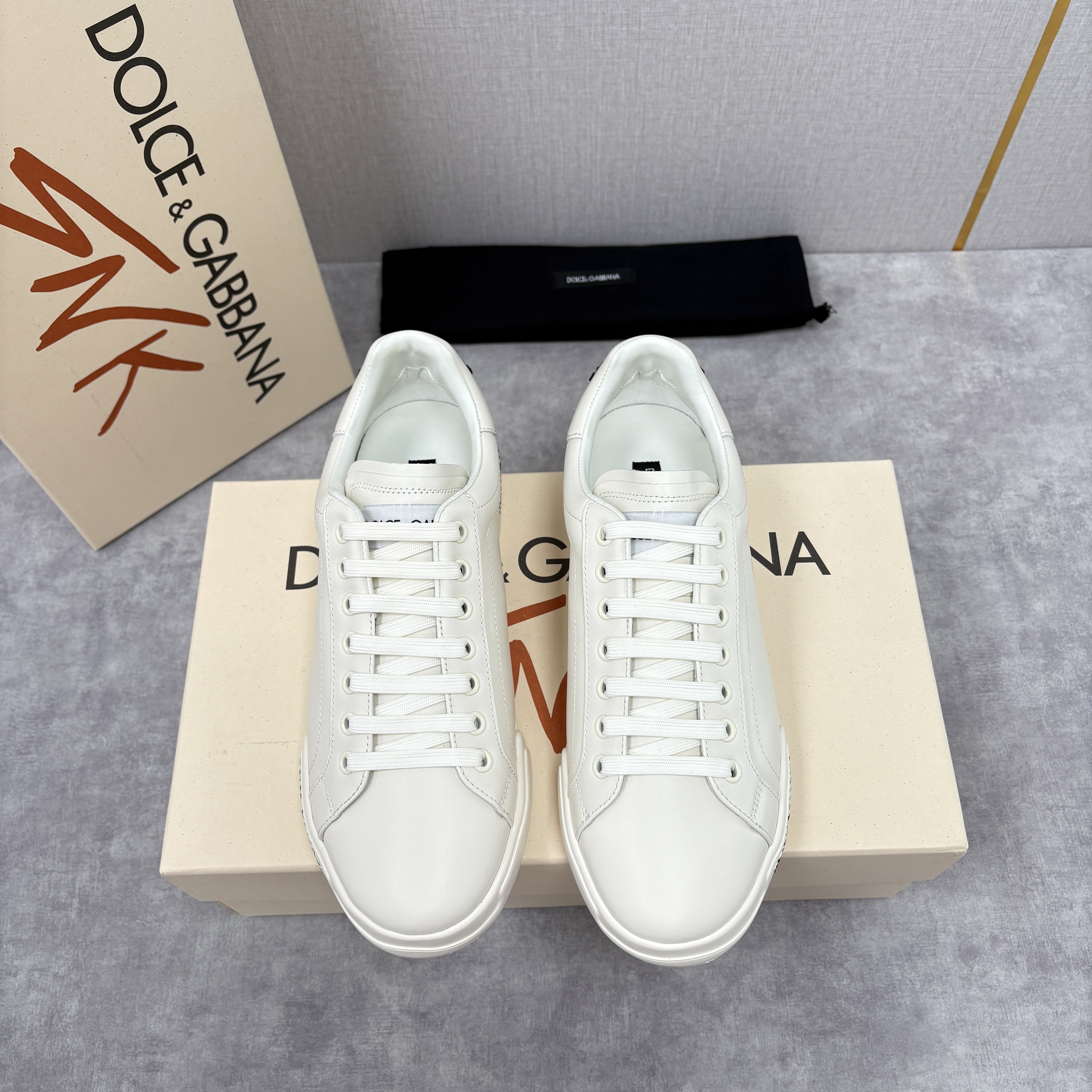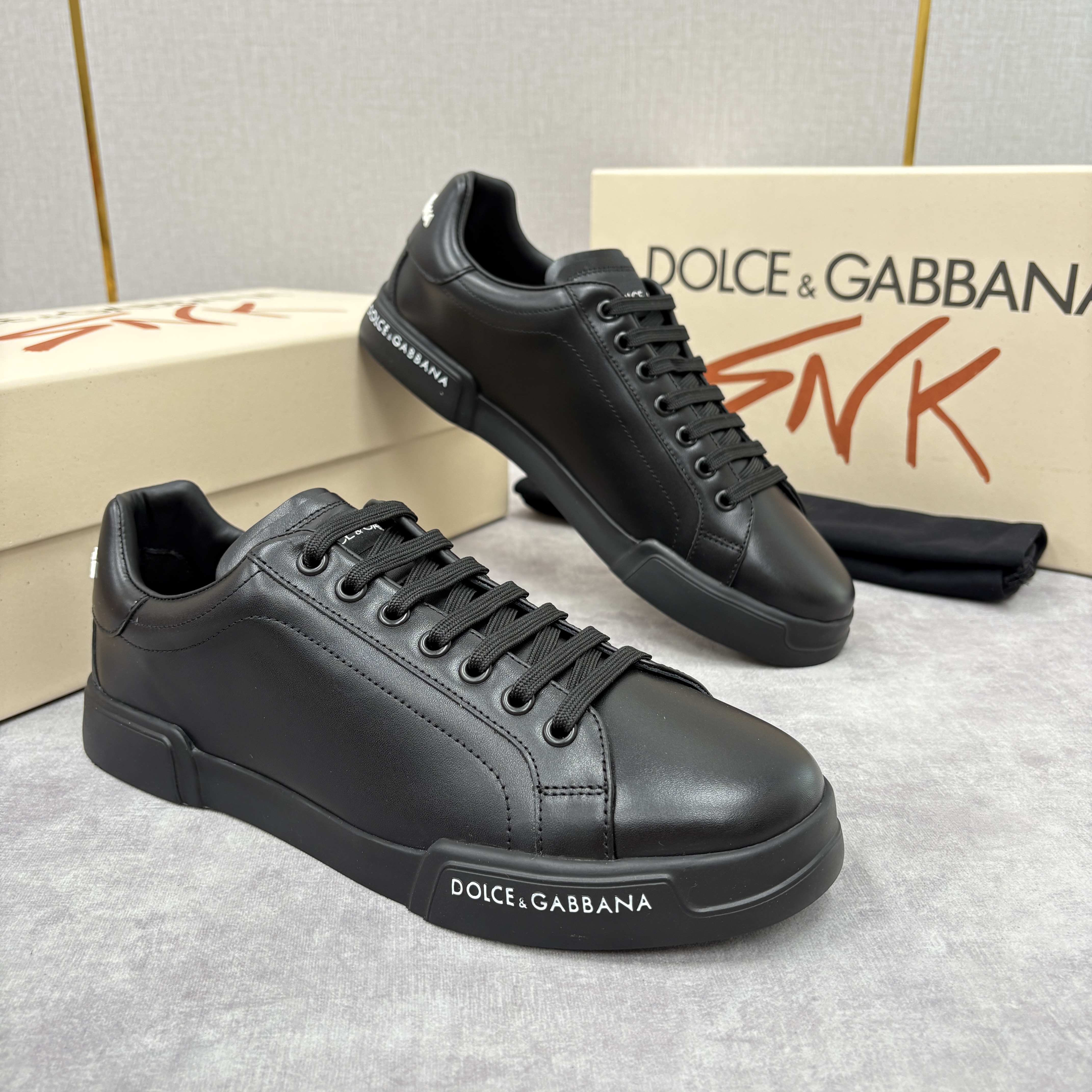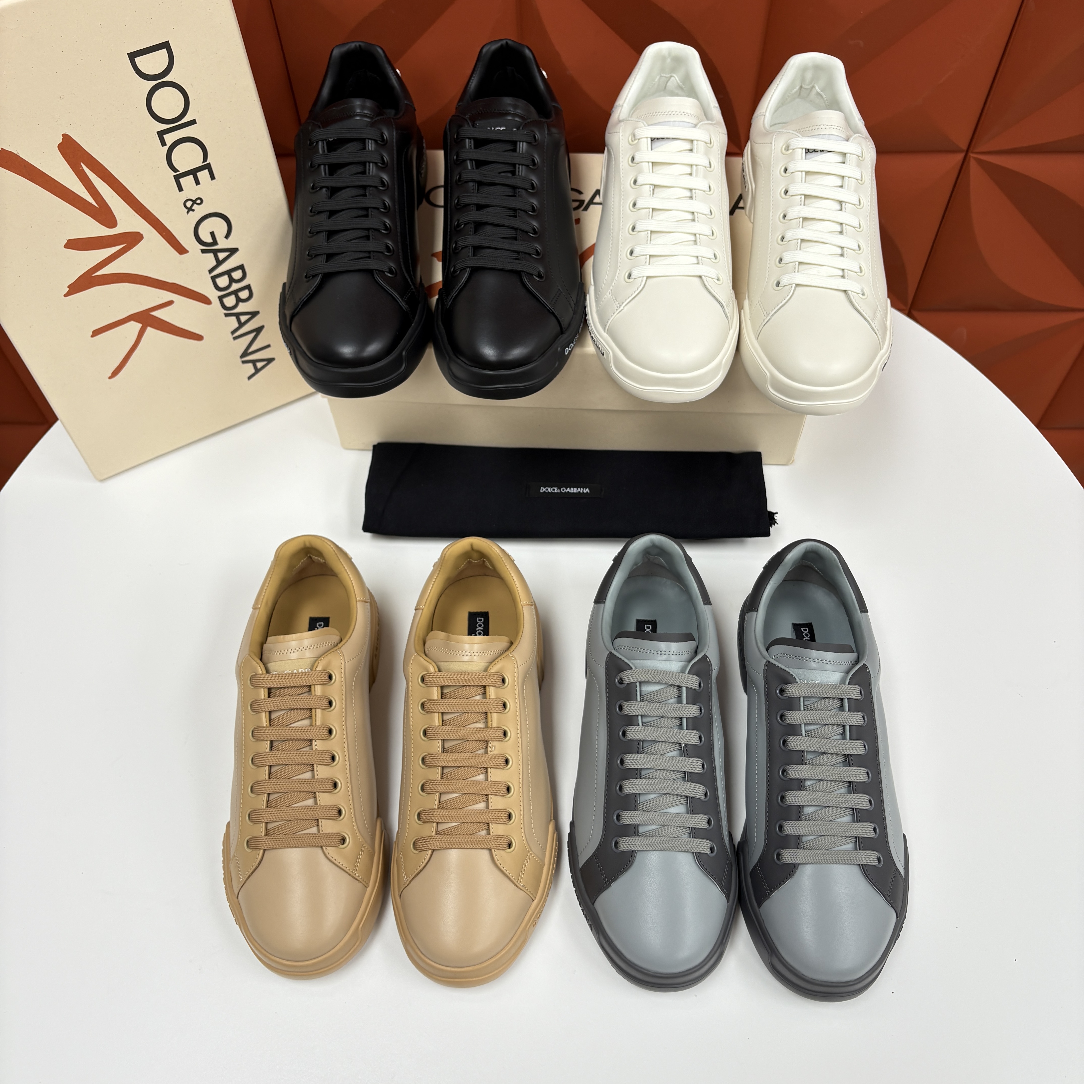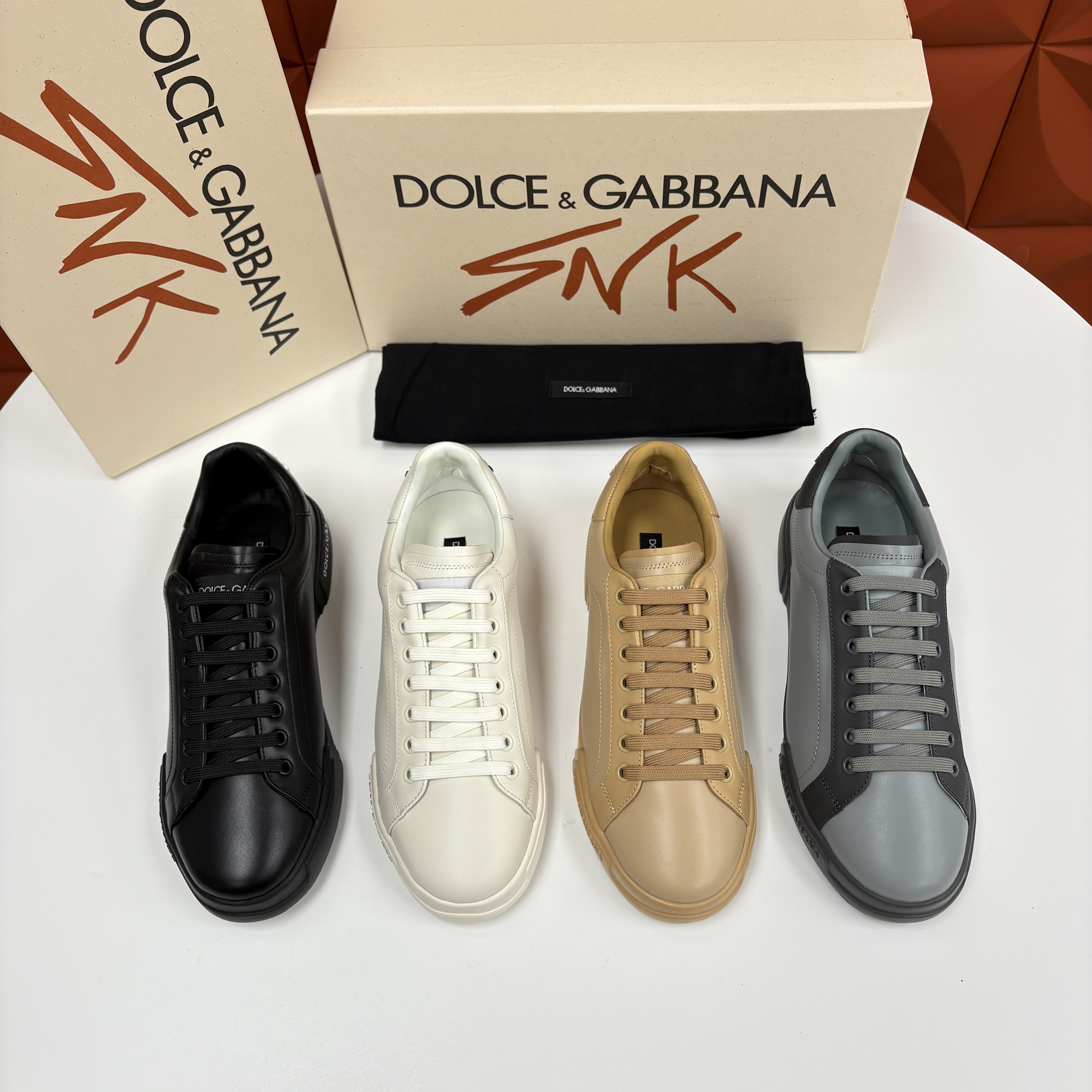 NIGO Dolce&Gabbana Men's And Women's Spring/Fall Fashion Casual Round Toe Lace Up Solid Color Leather Printed Rubber Sole Sneakers Shoes #nigo78728