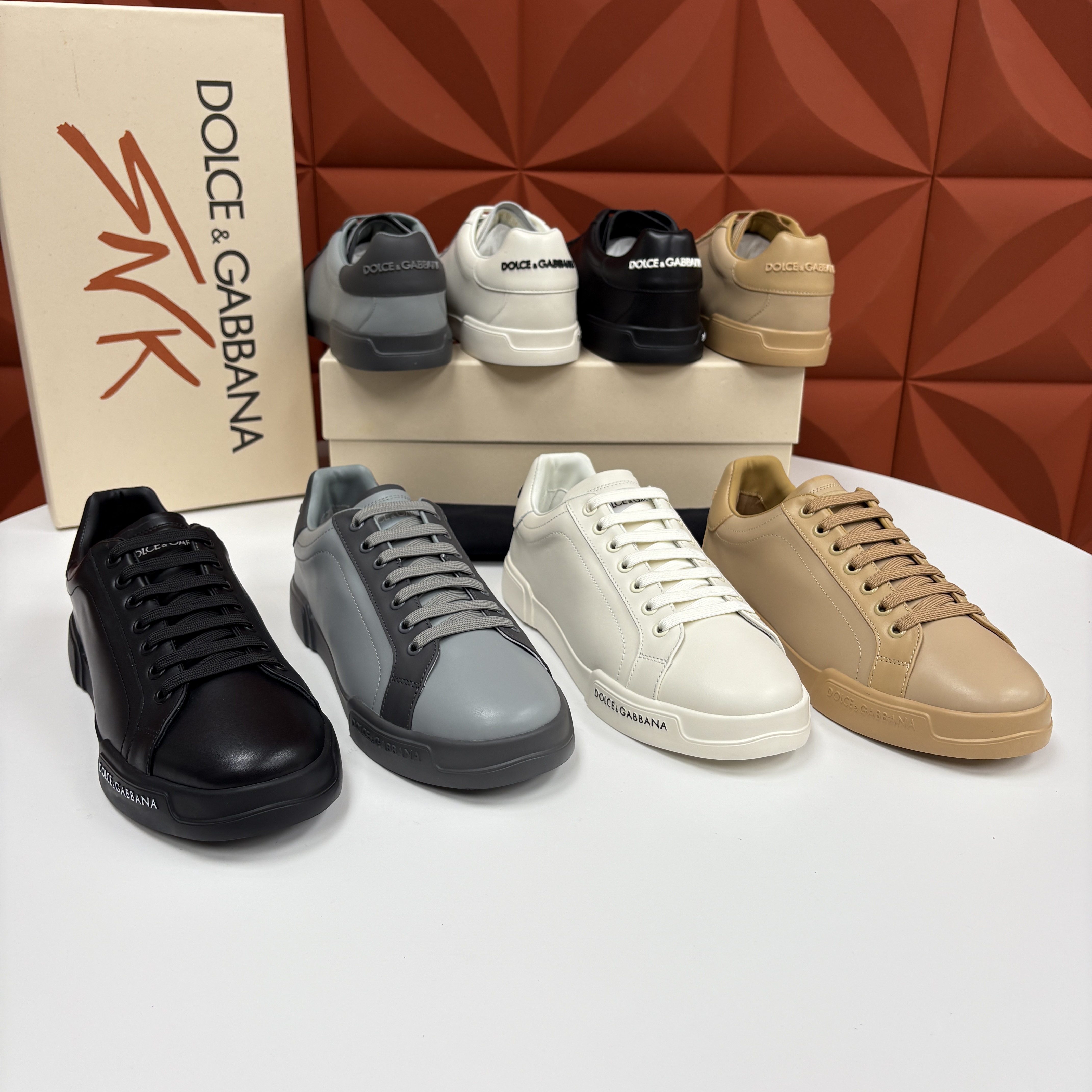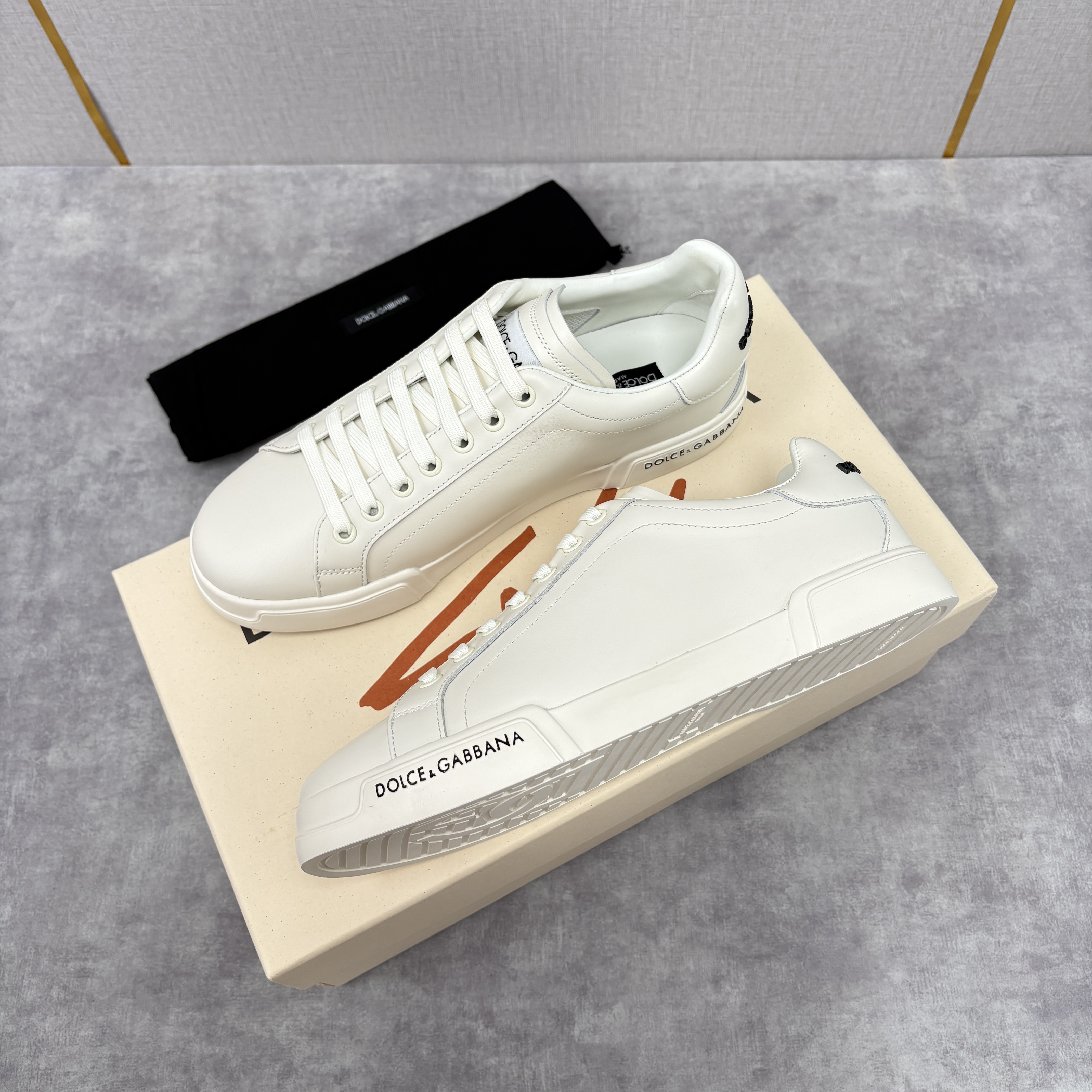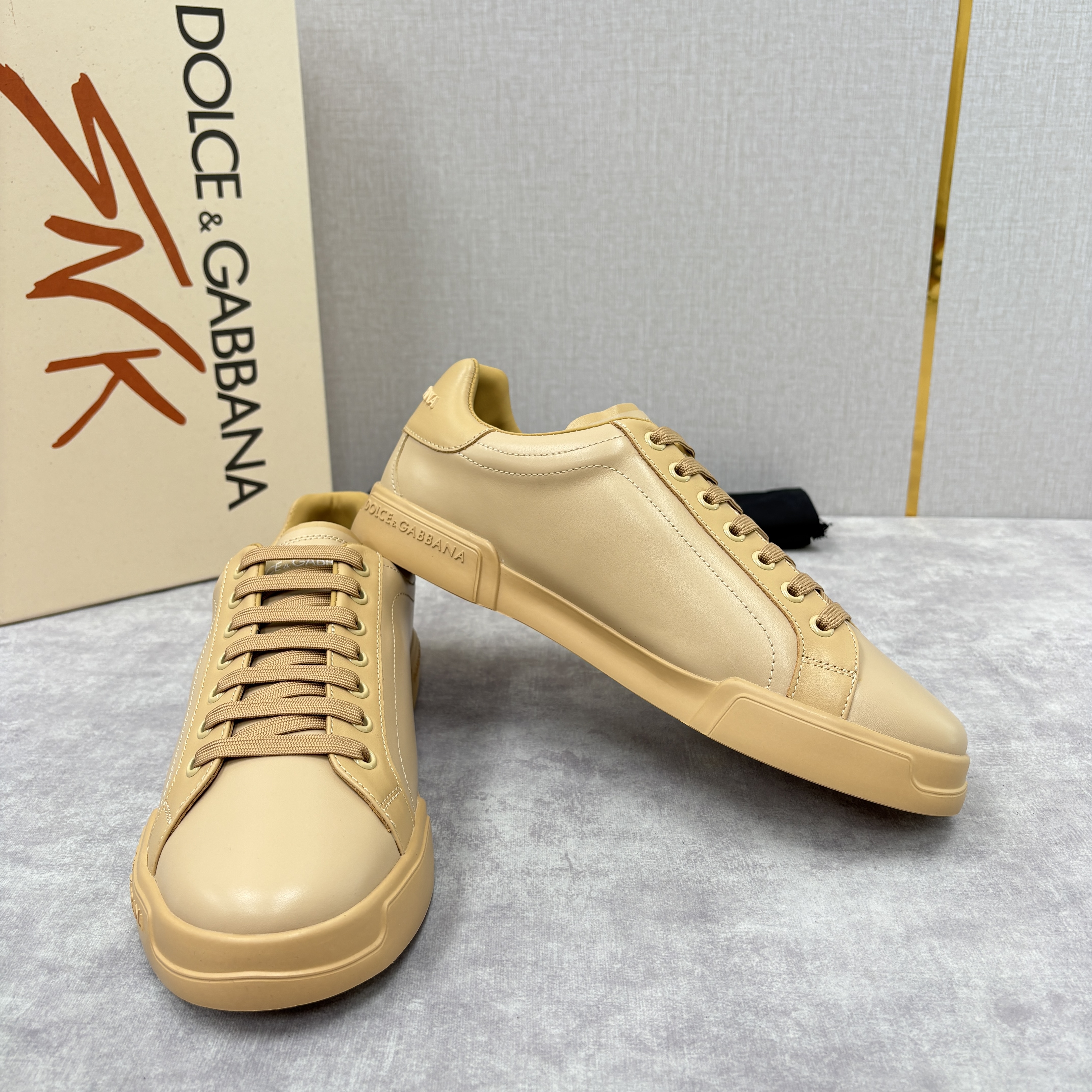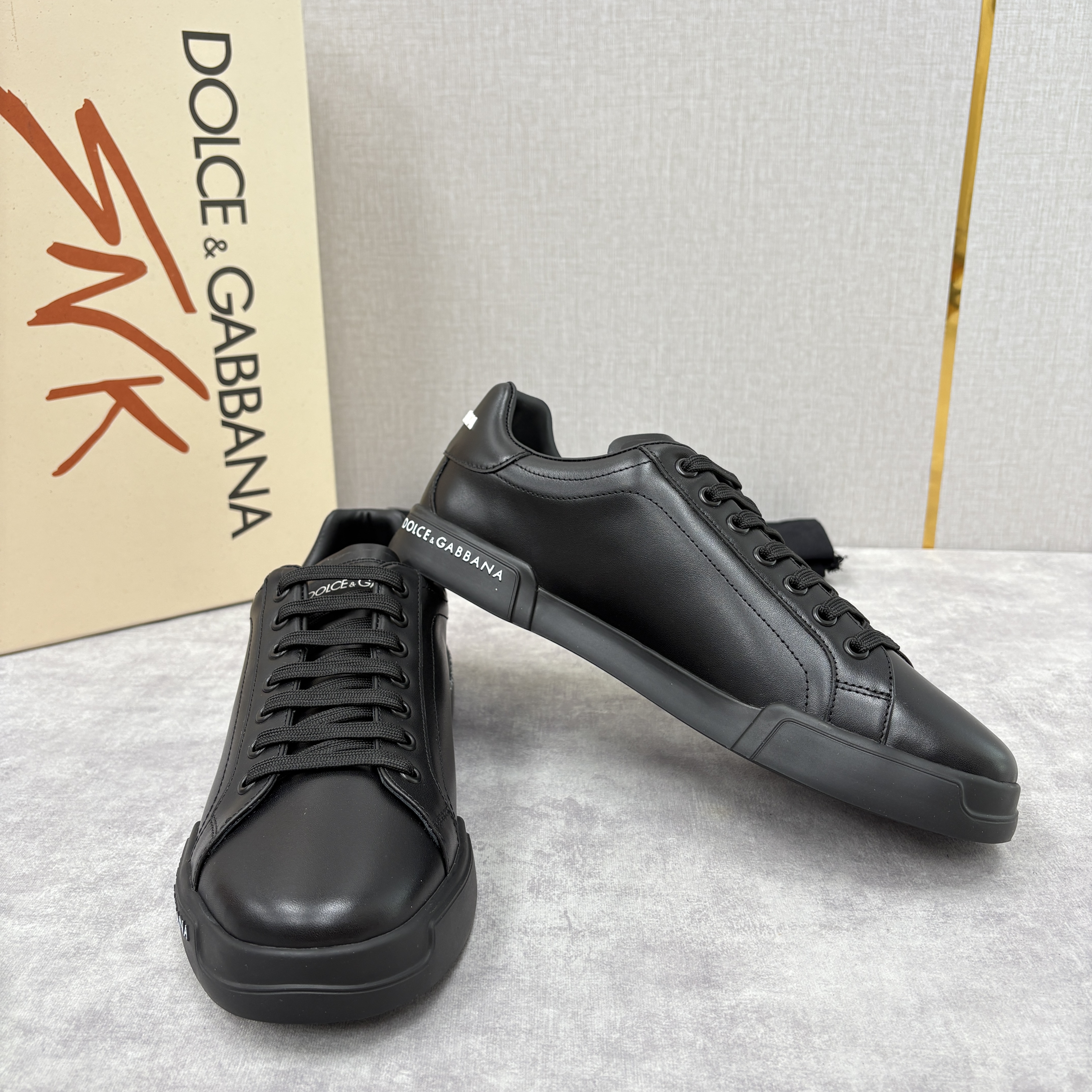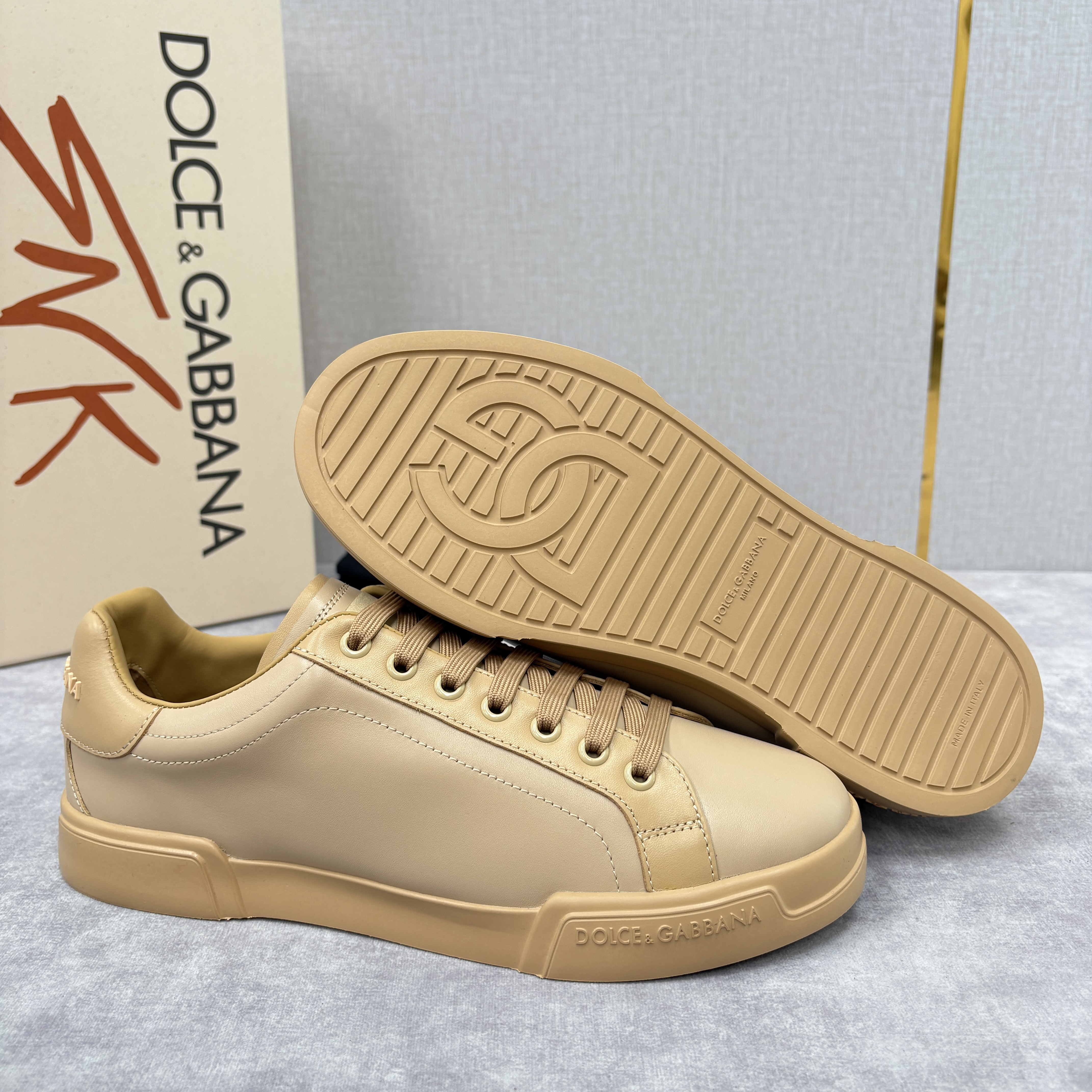 NIGO Dolce&Gabbana Men's And Women's Spring/Fall Fashion Casual Round Toe Lace Up Solid Color Leather Printed Rubber Sole Sneakers Shoes #nigo78728