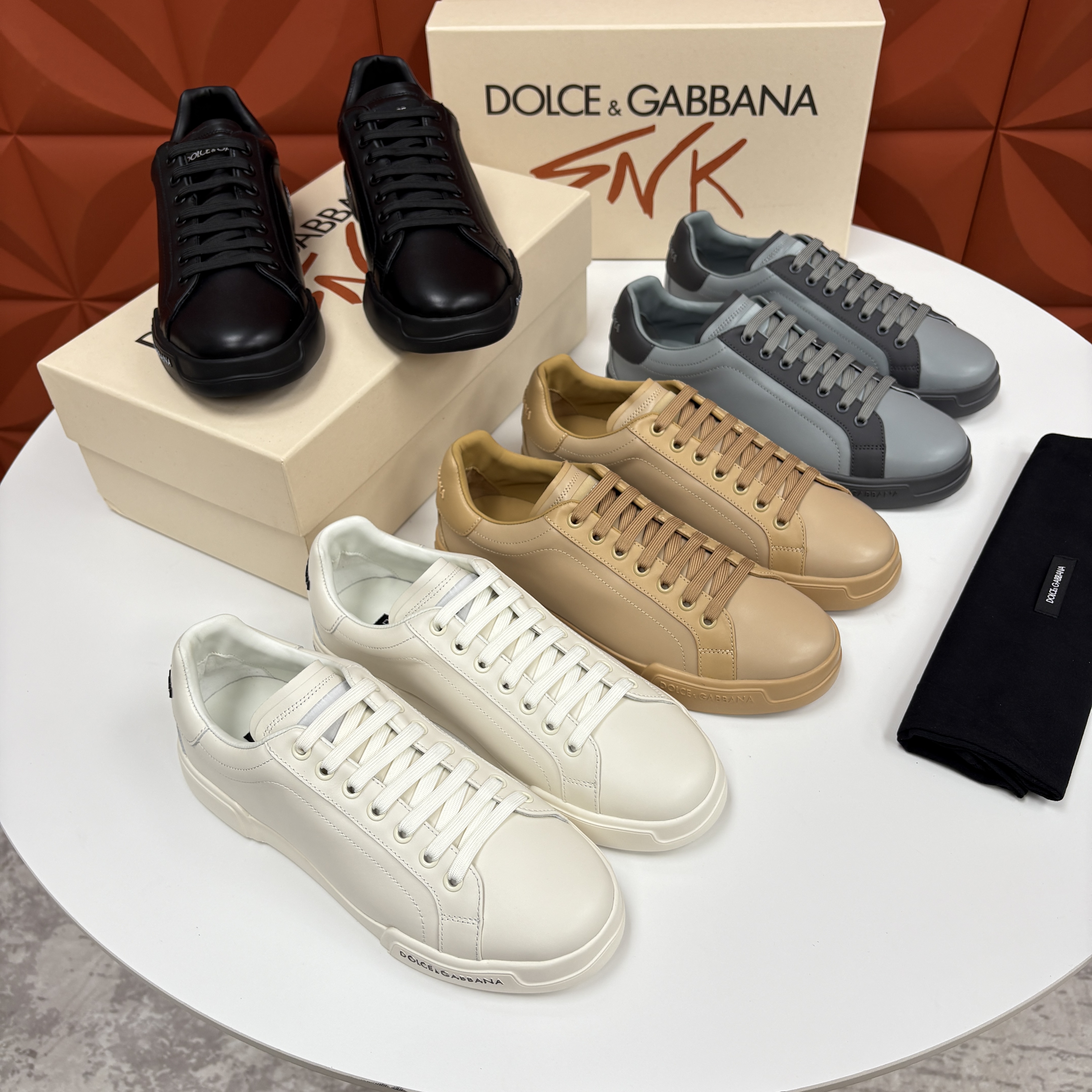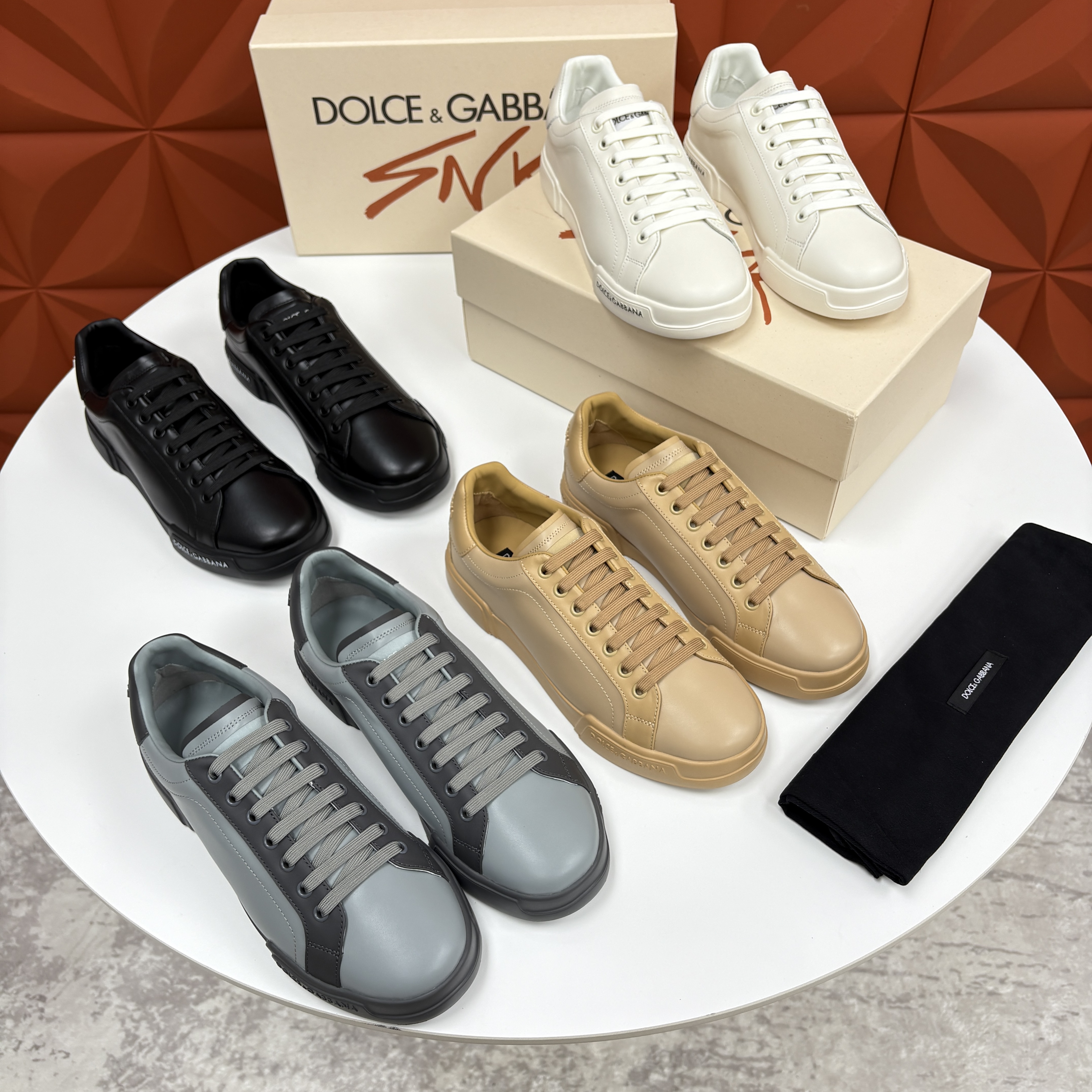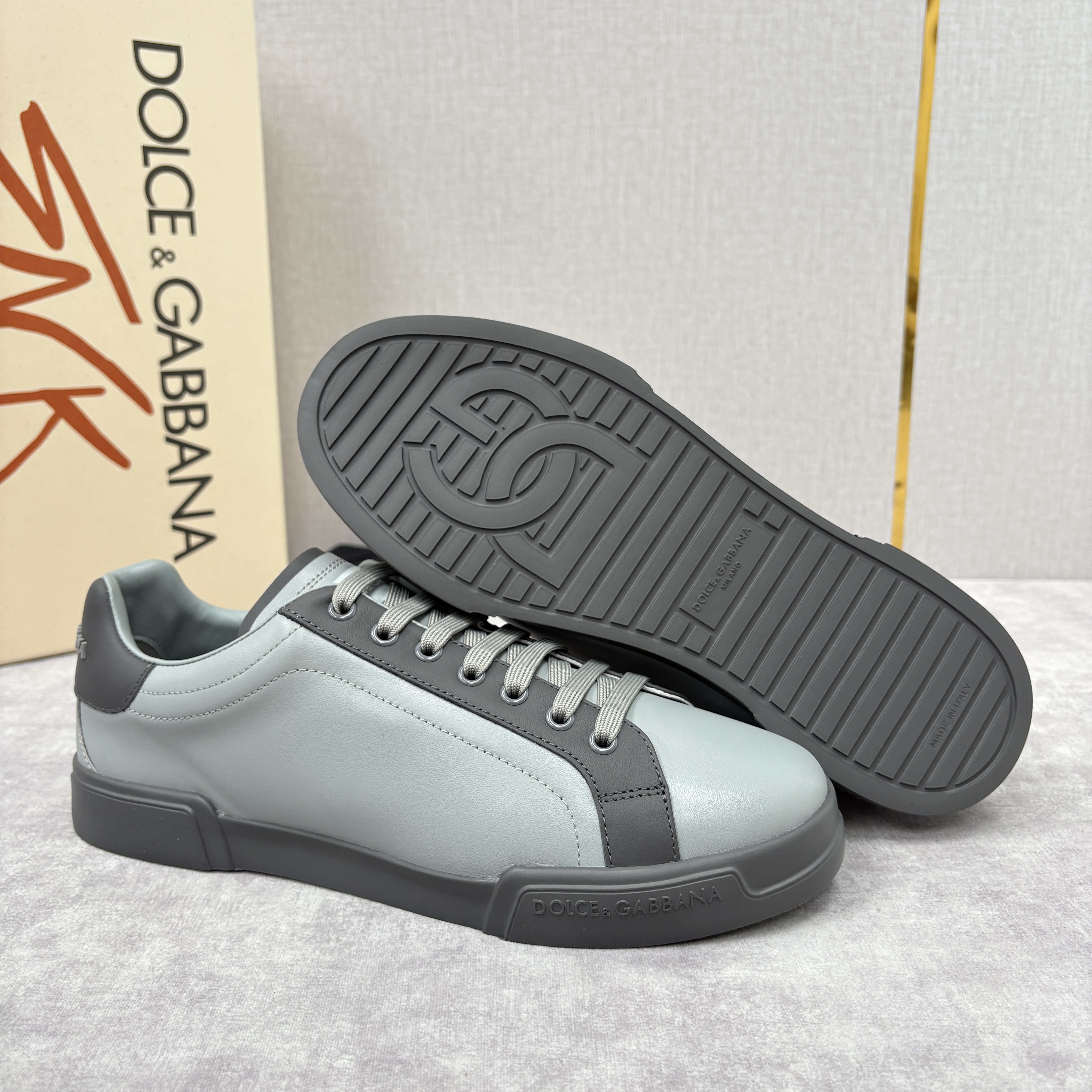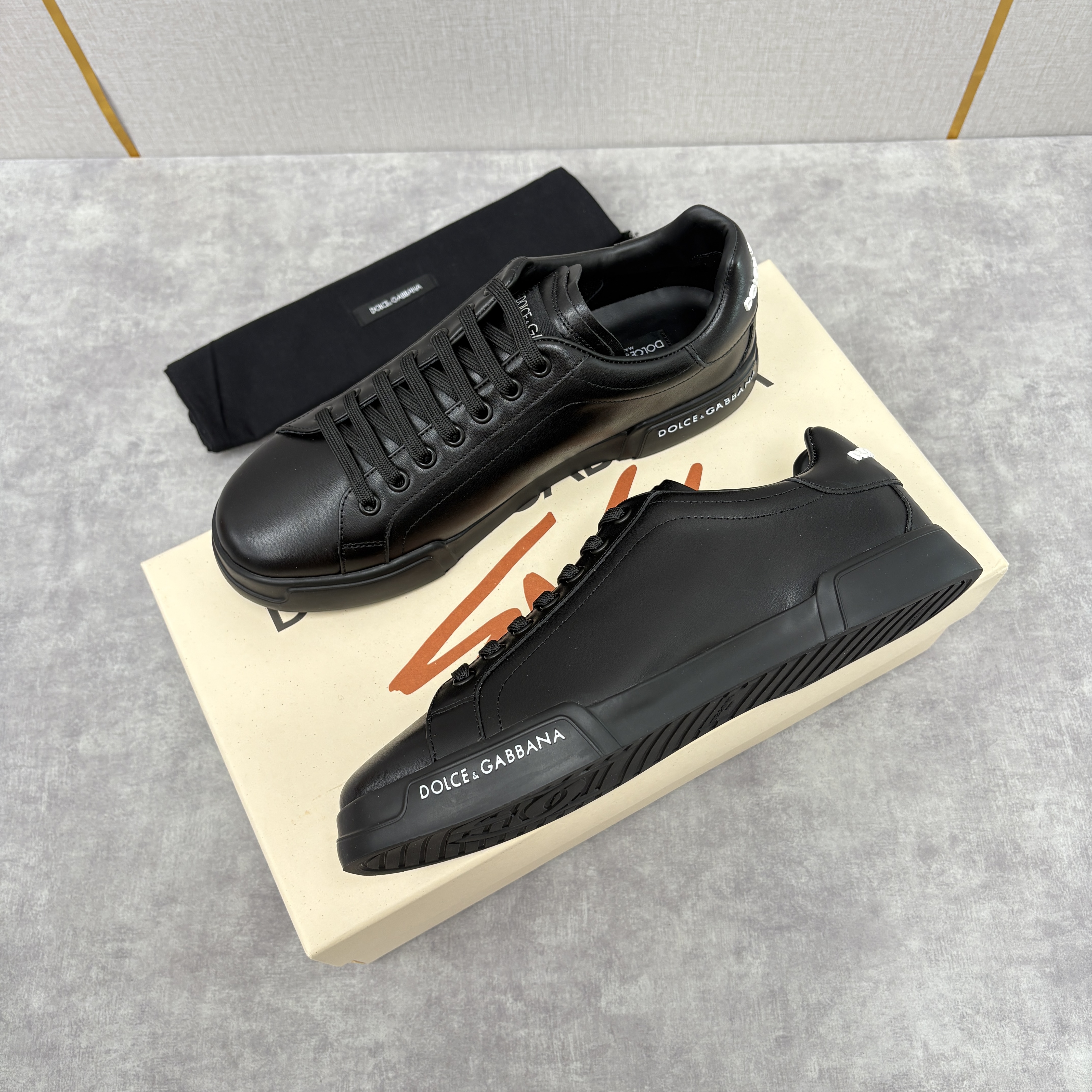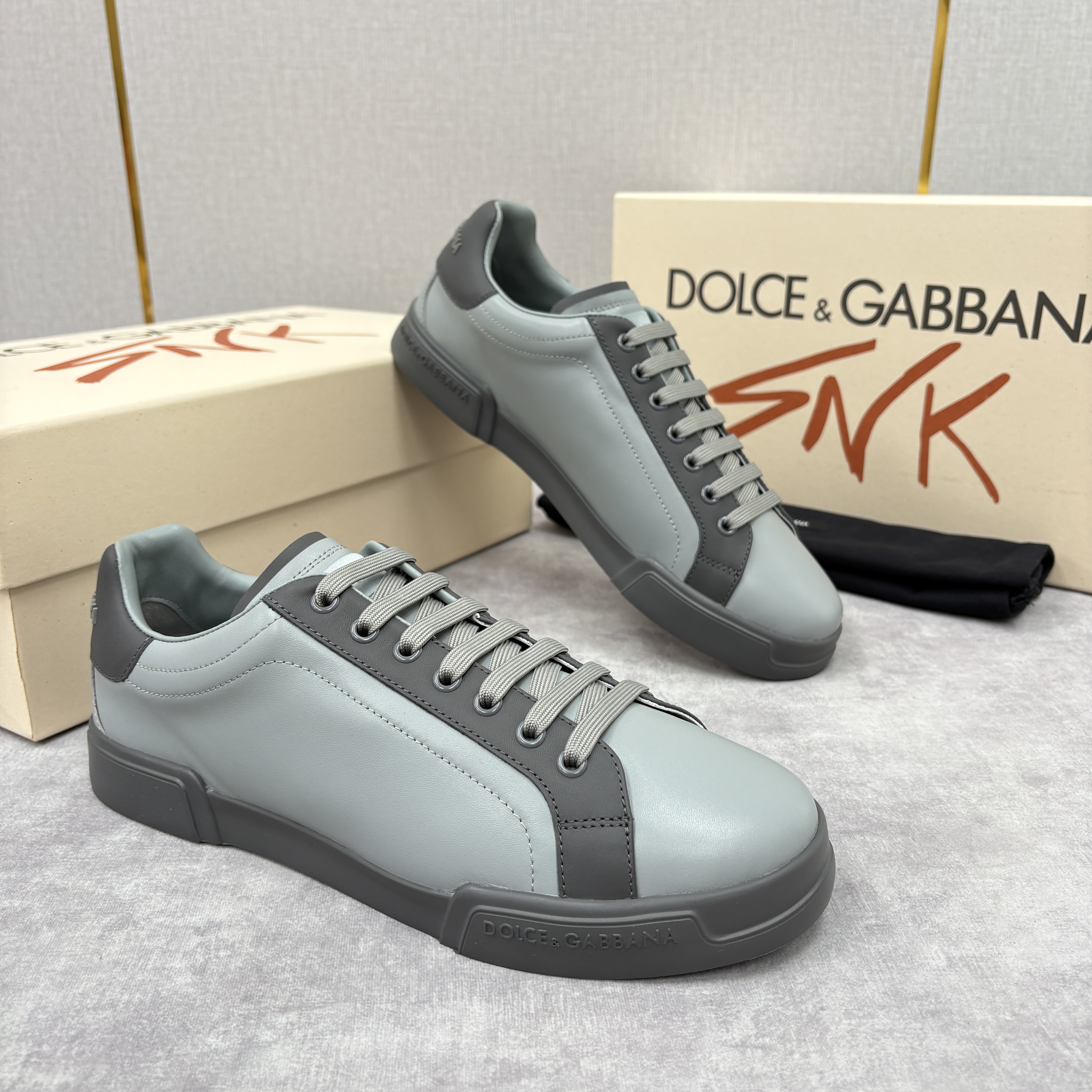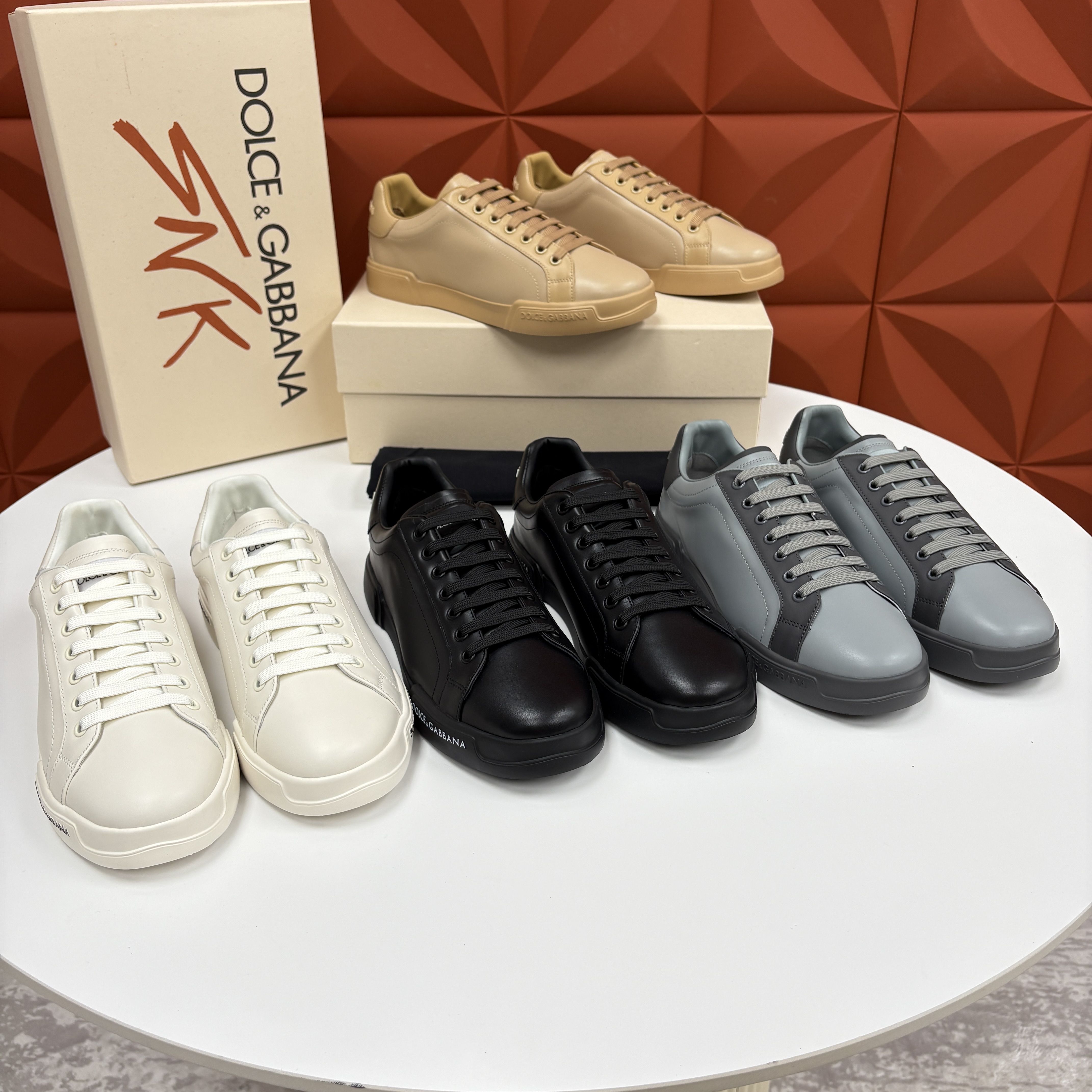 NIGO Dolce&Gabbana Men's And Women's Spring/Fall Fashion Casual Round Toe Lace Up Solid Color Leather Printed Rubber Sole Sneakers Shoes #nigo78728
