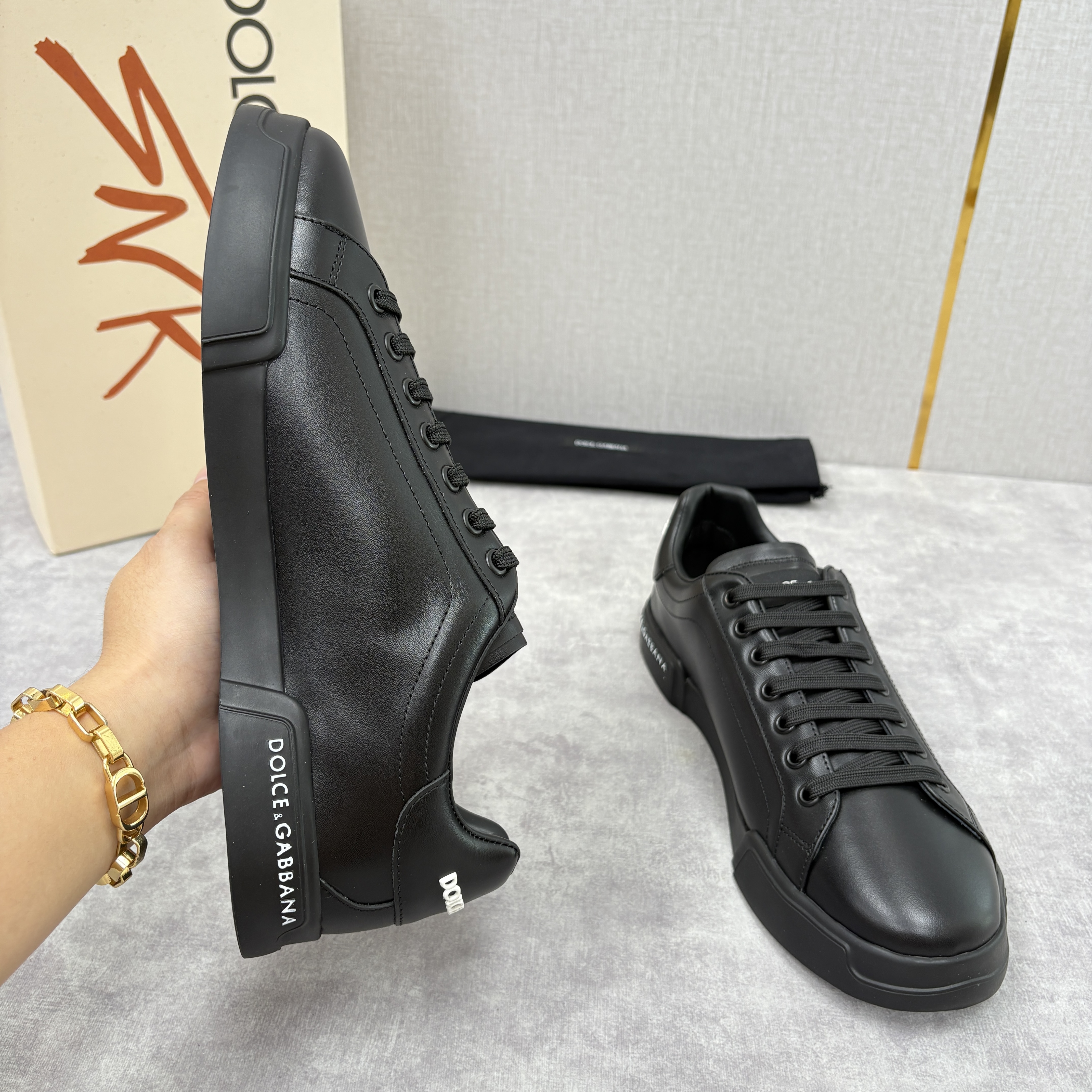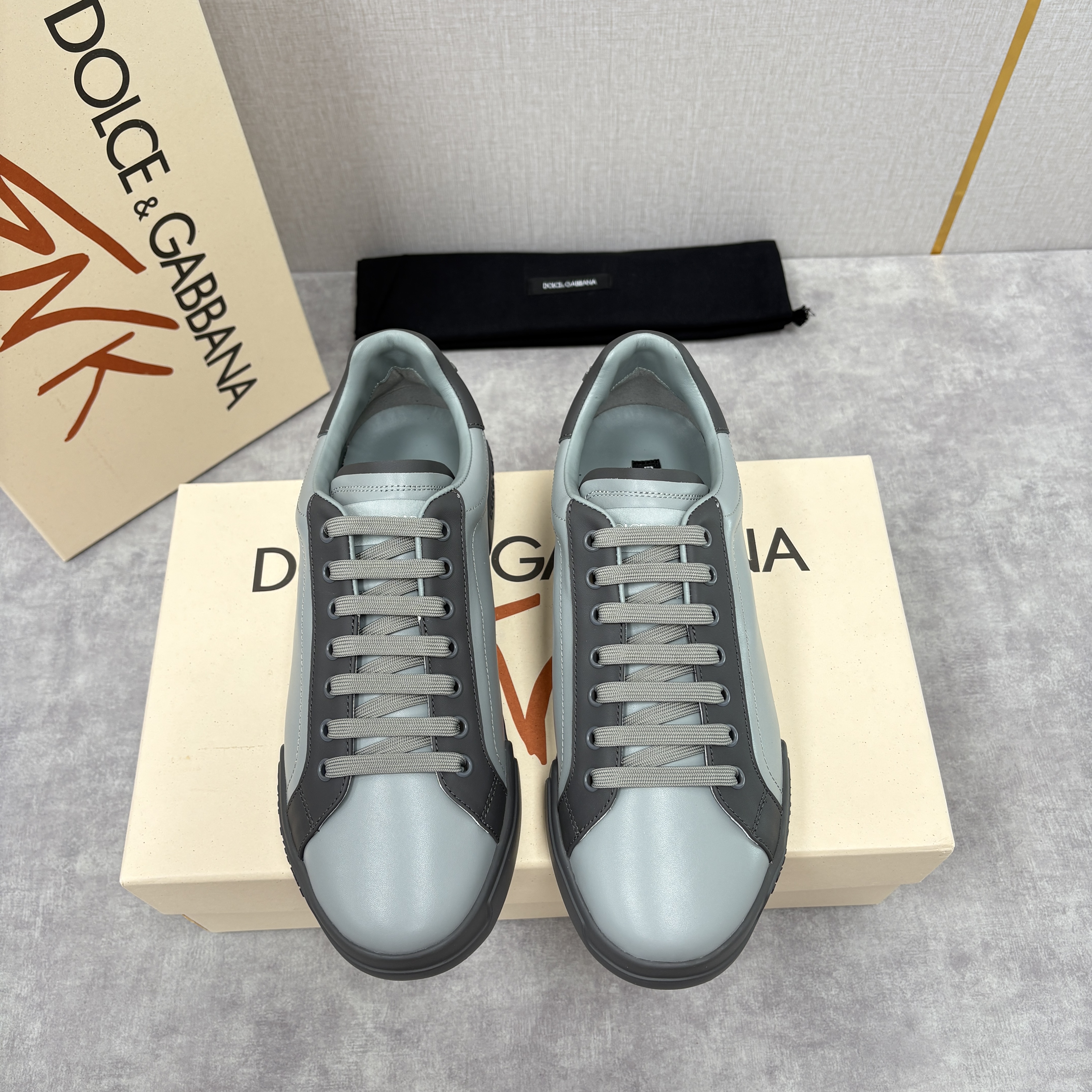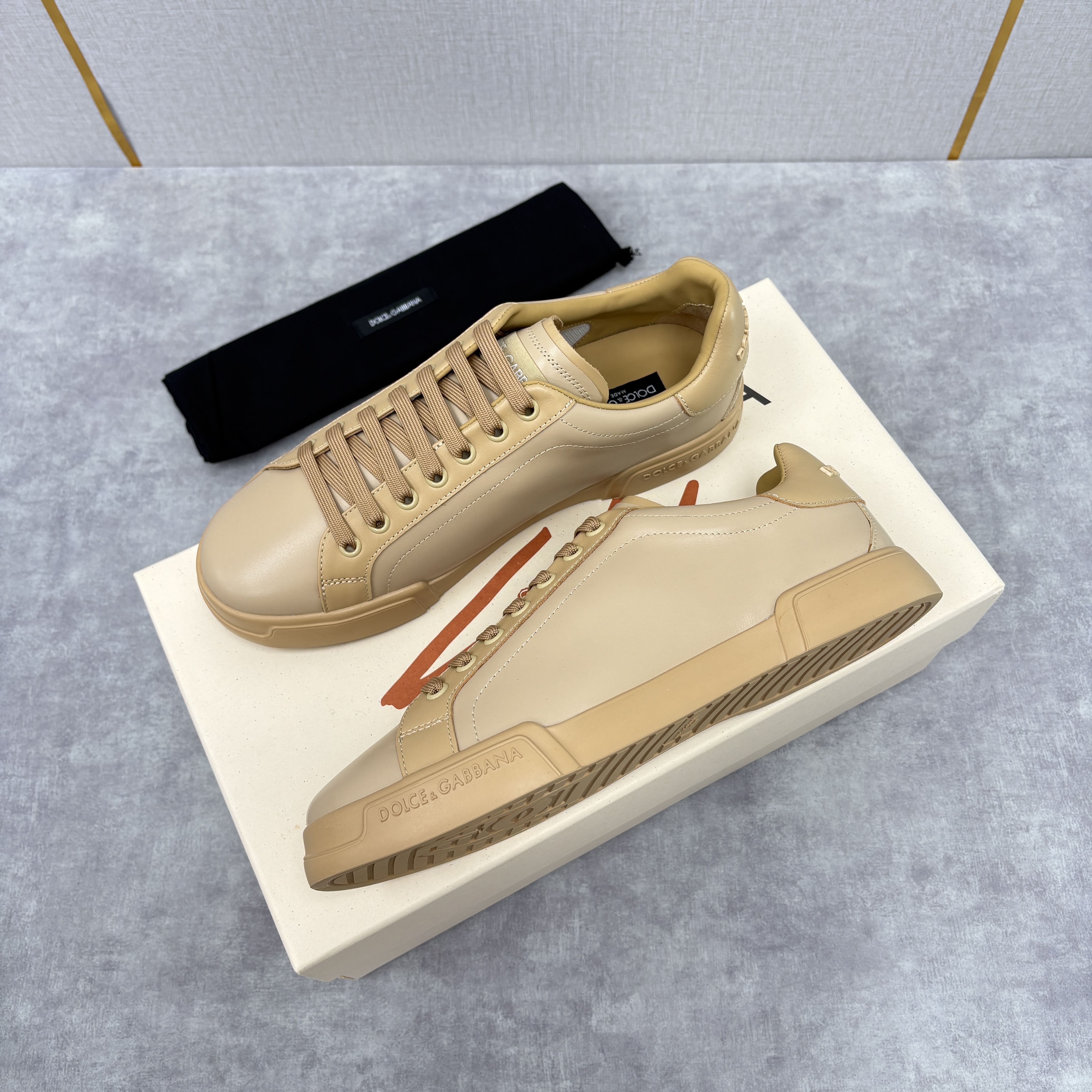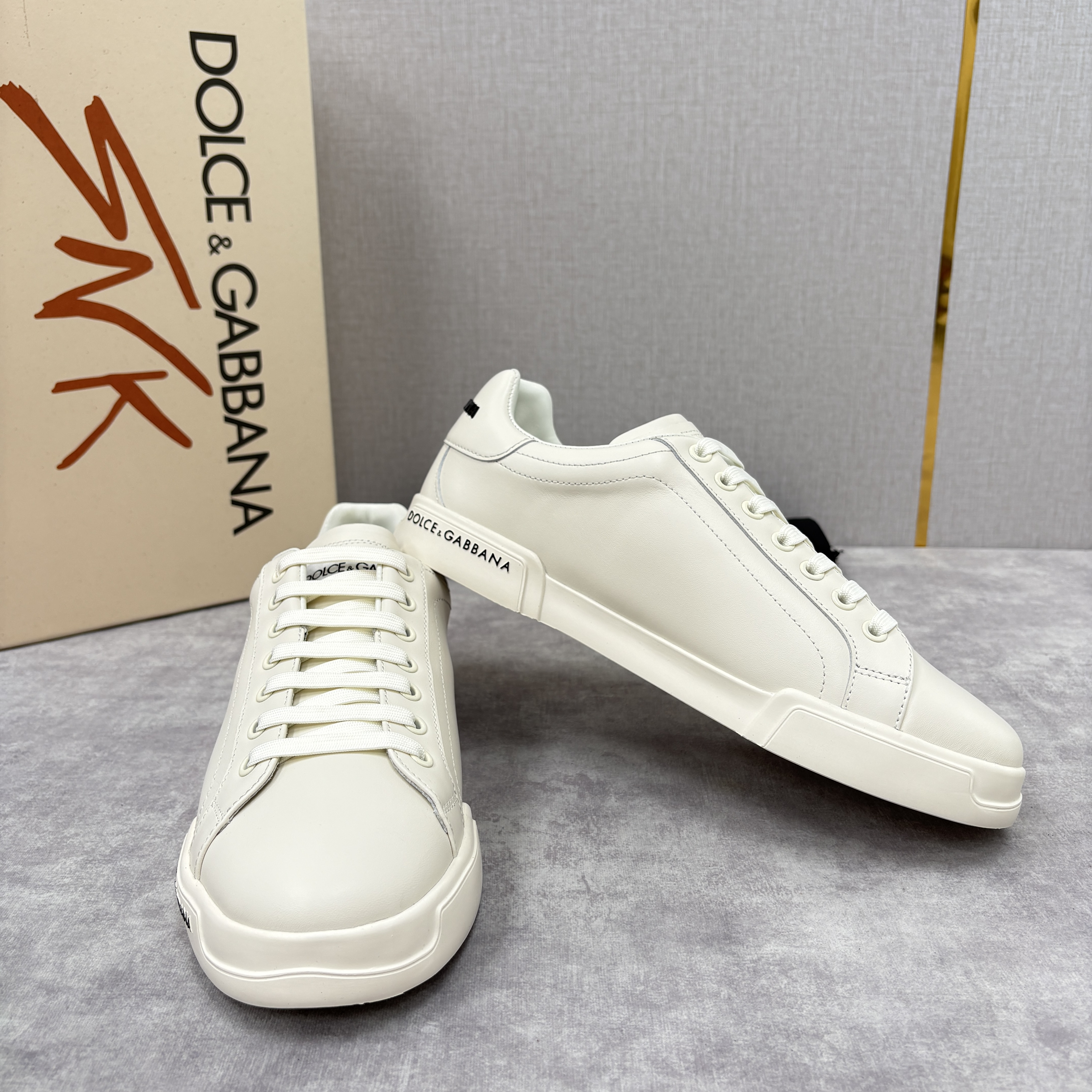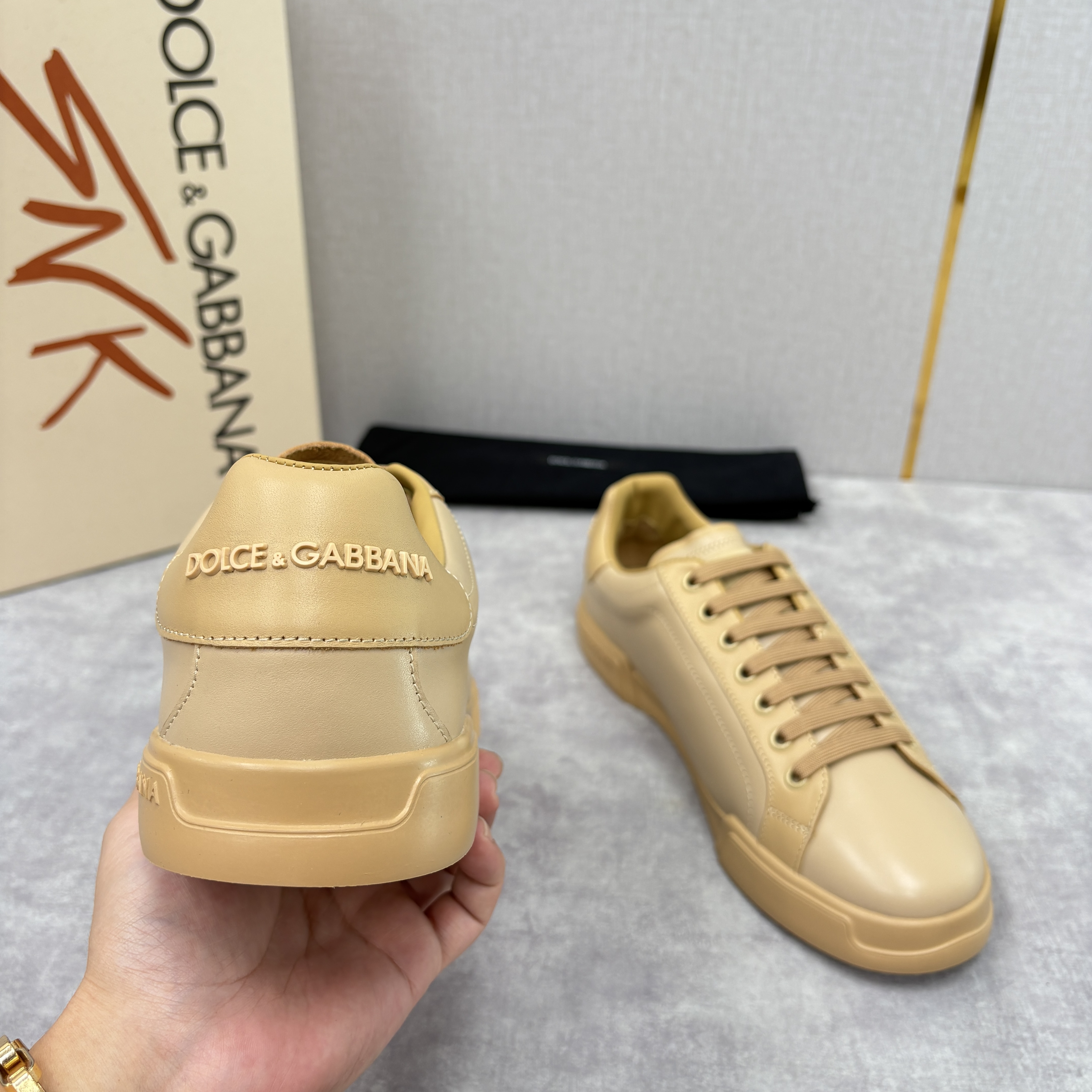 NIGO Dolce&Gabbana Men's And Women's Spring/Fall Fashion Casual Round Toe Lace Up Solid Color Leather Printed Rubber Sole Sneakers Shoes #nigo78728