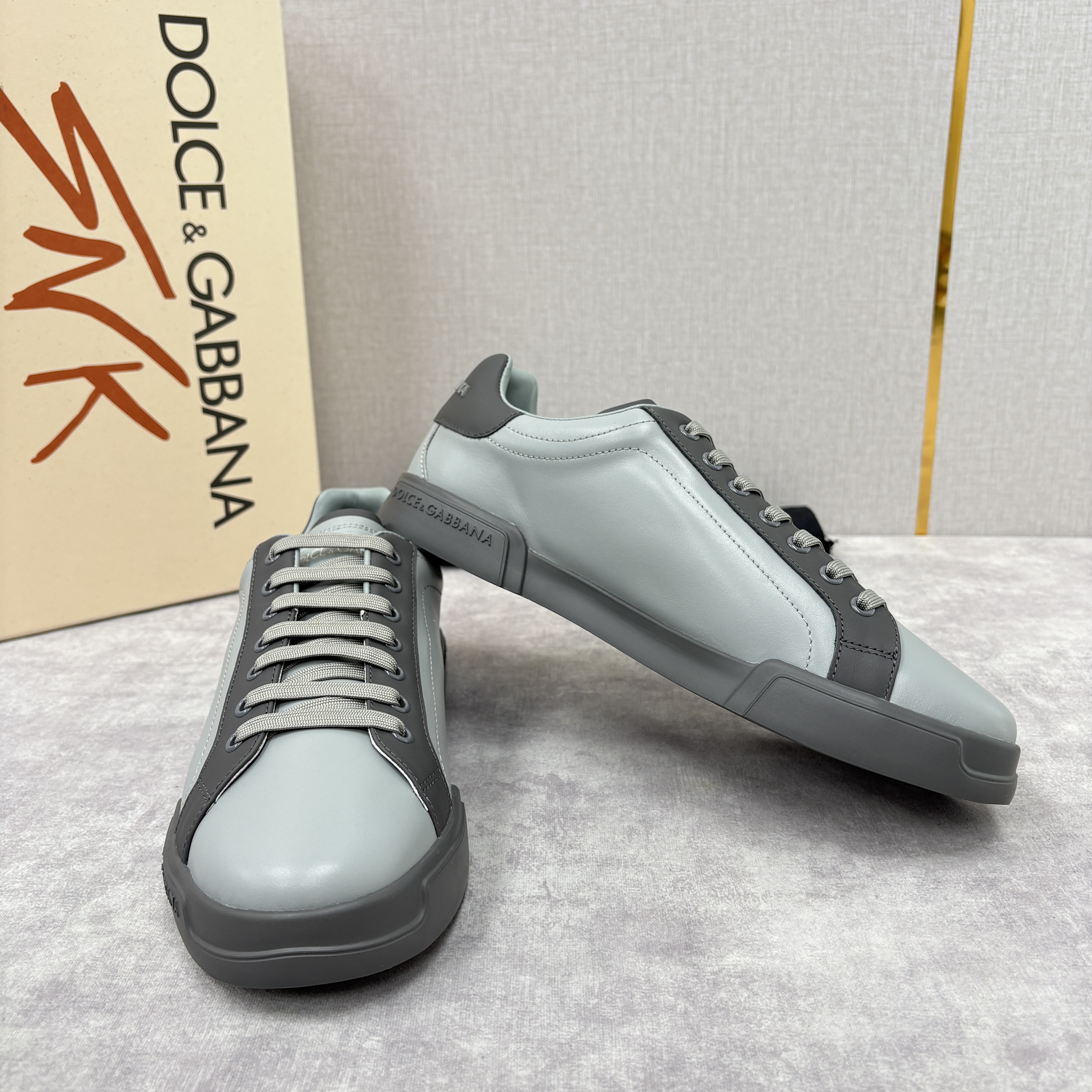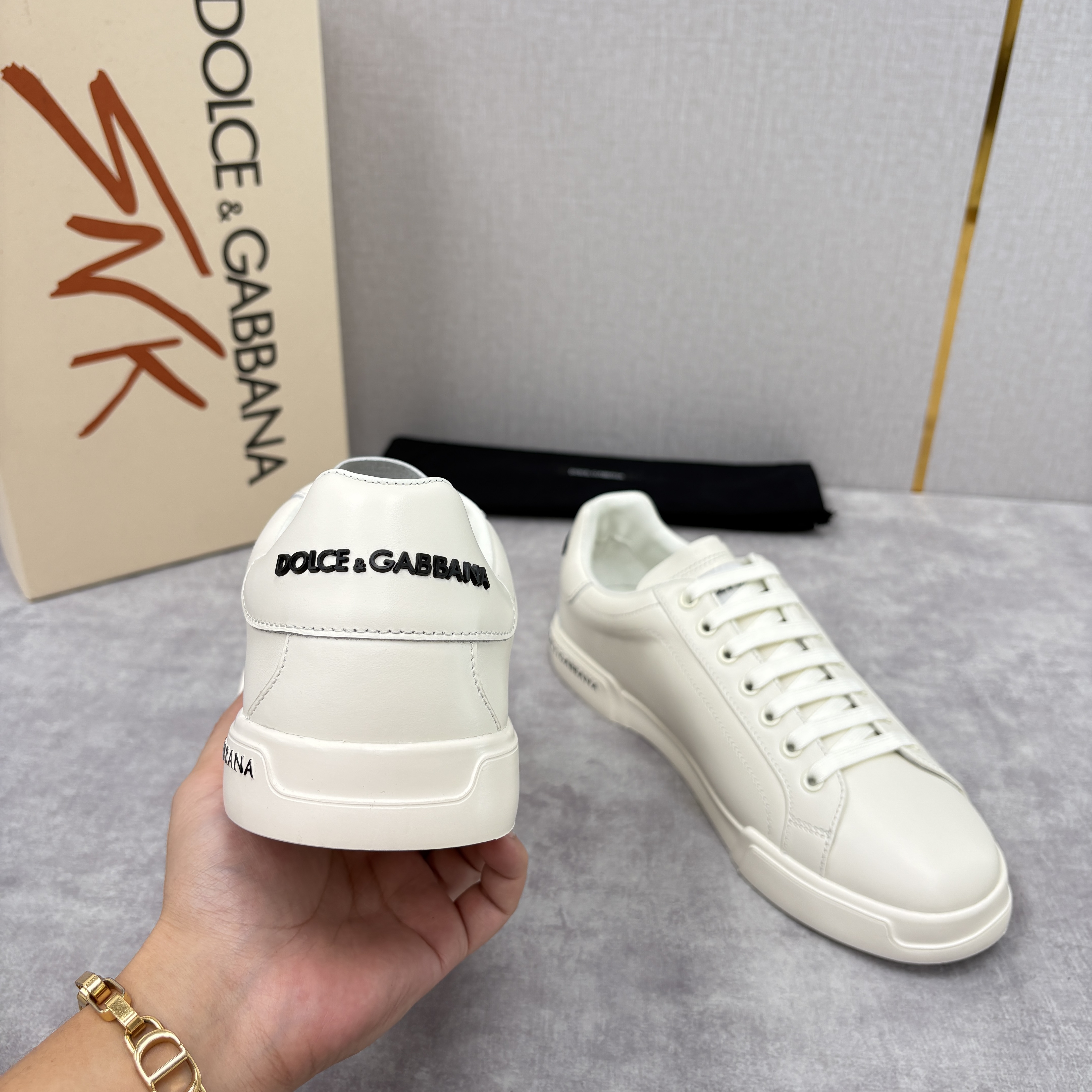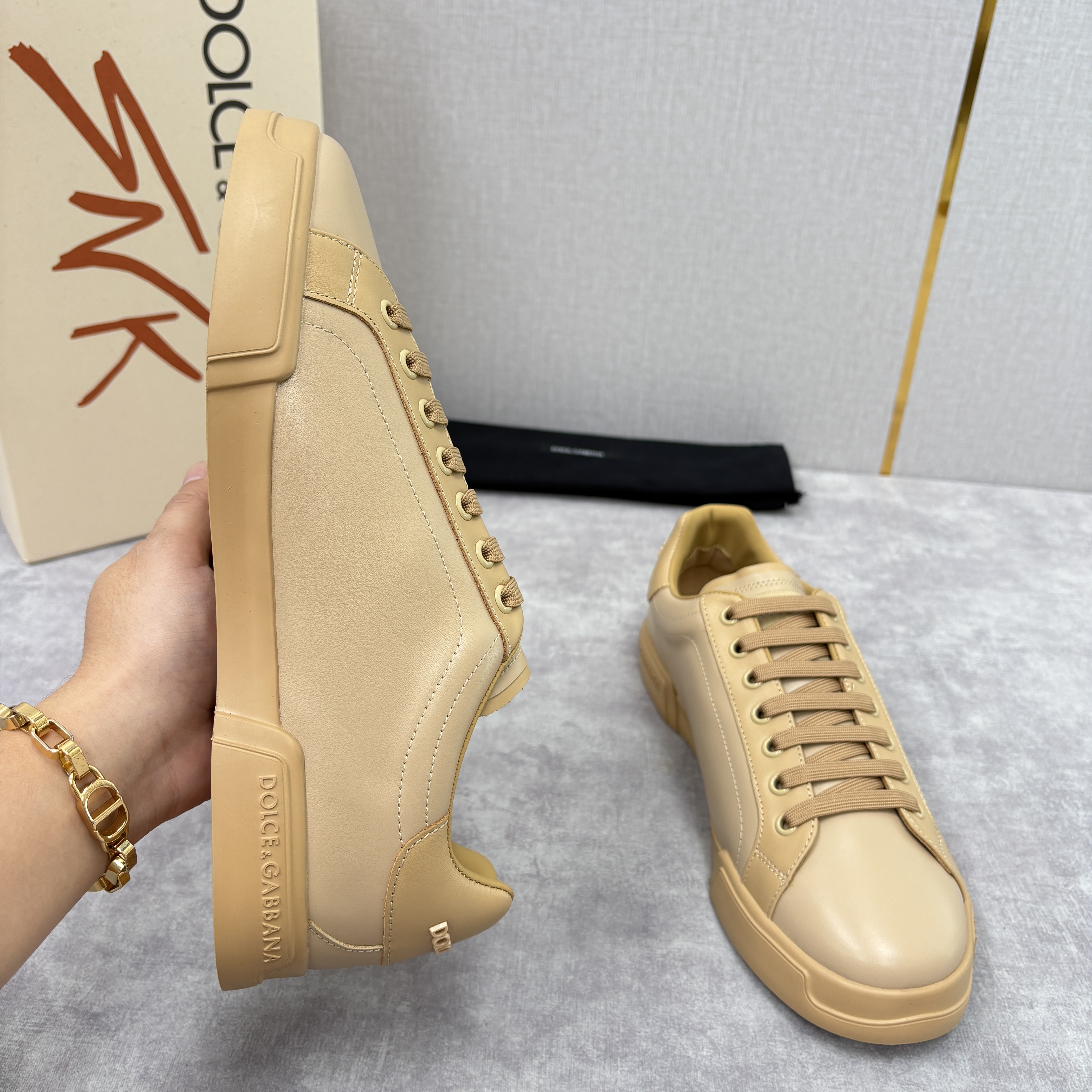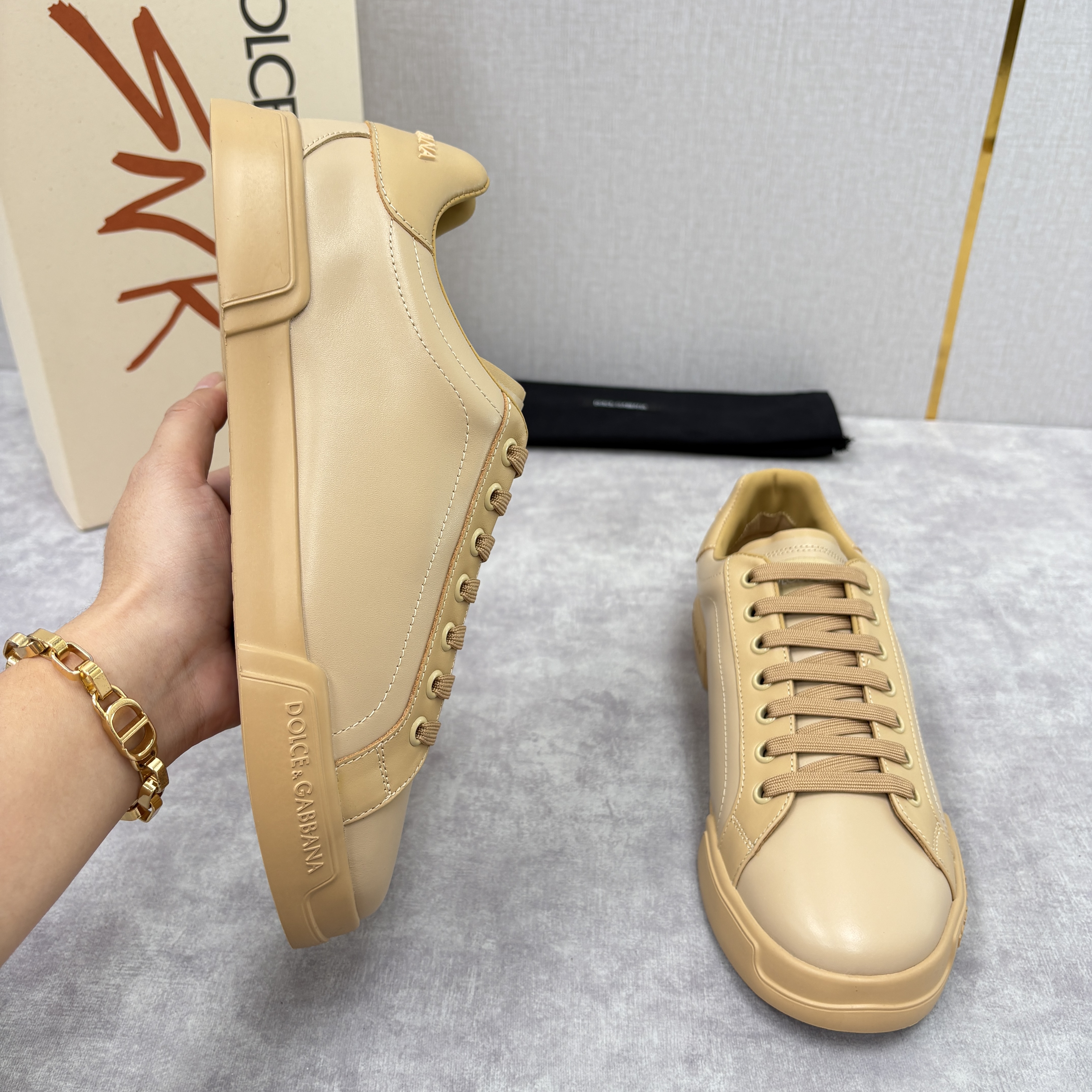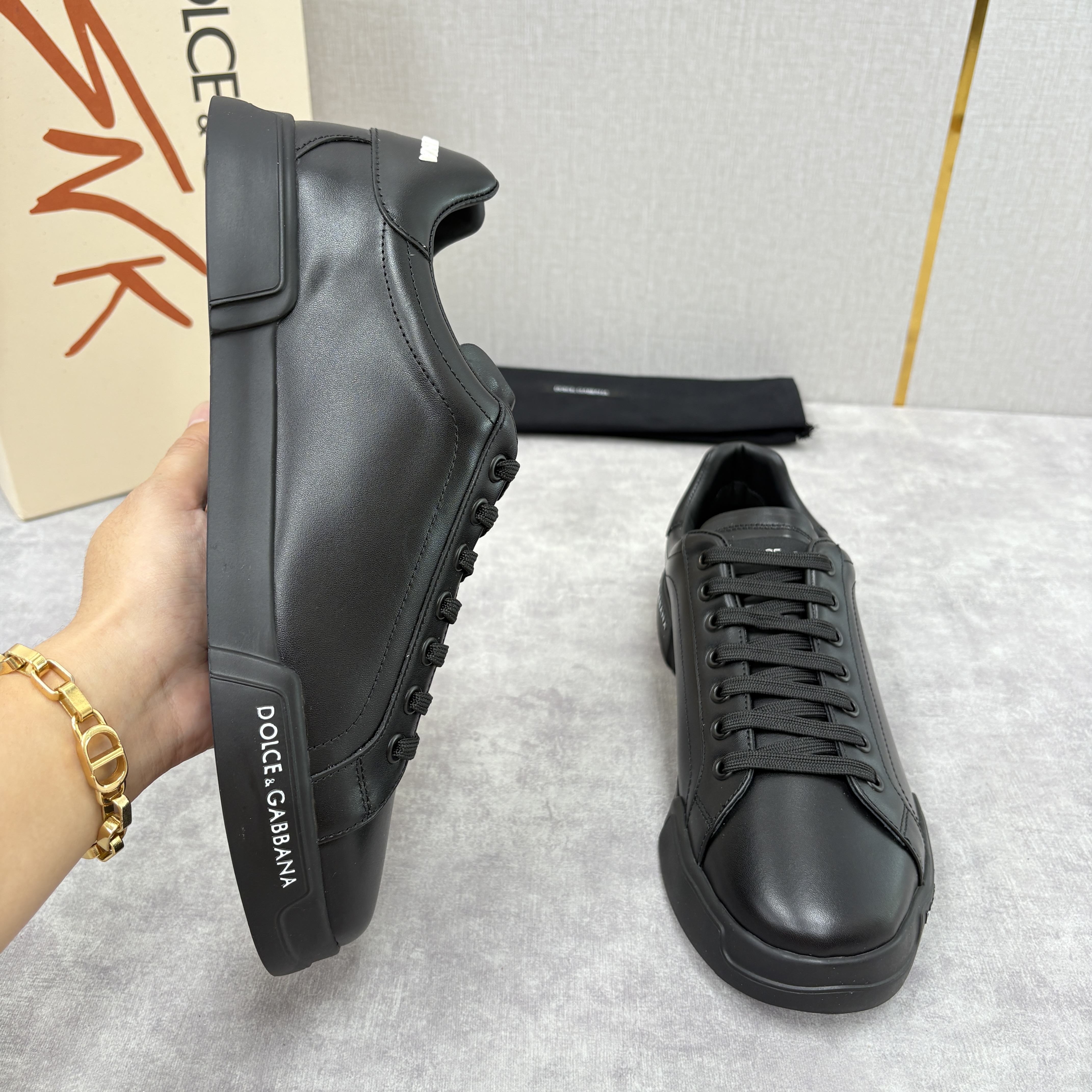 NIGO Dolce&Gabbana Men's And Women's Spring/Fall Fashion Casual Round Toe Lace Up Solid Color Leather Printed Rubber Sole Sneakers Shoes #nigo78728