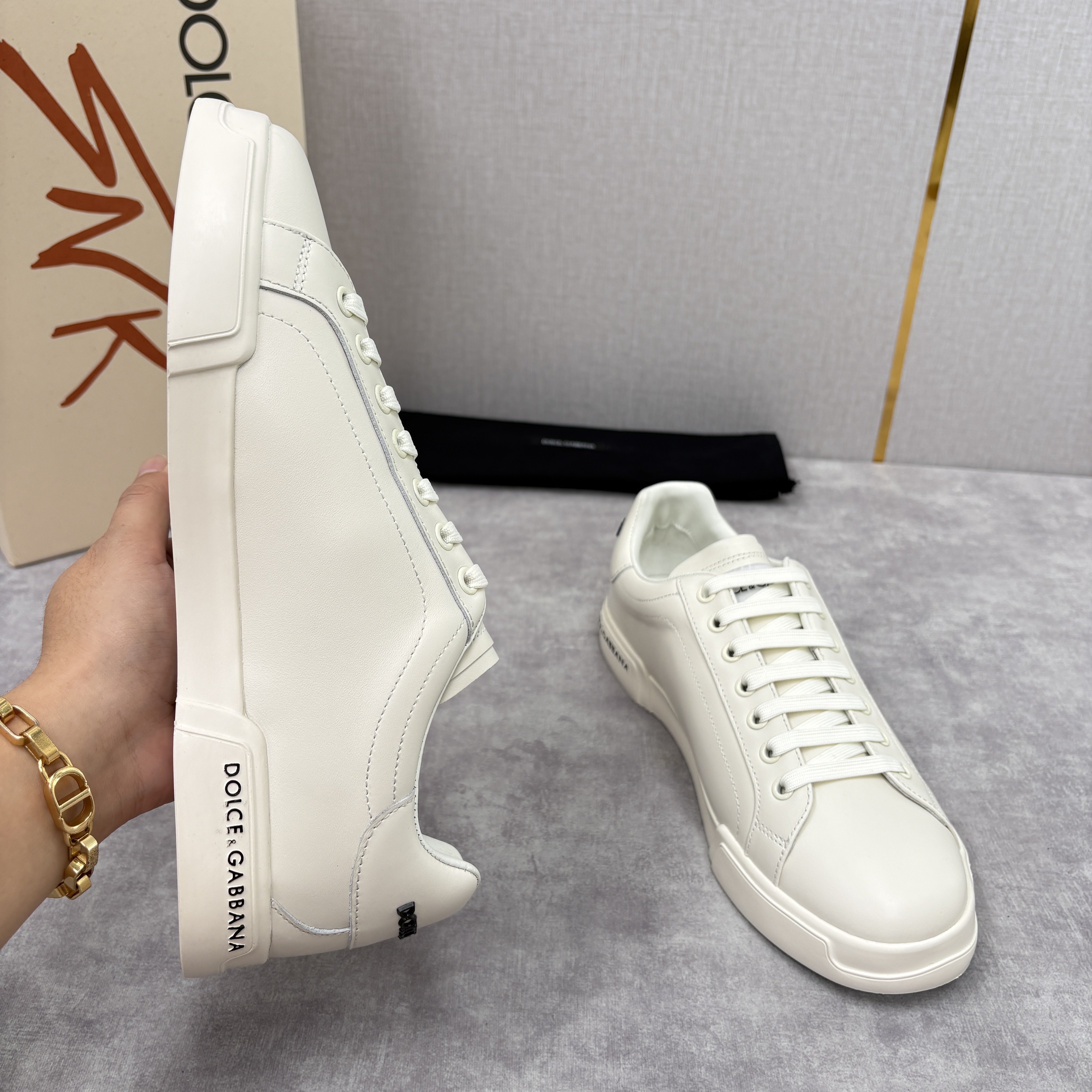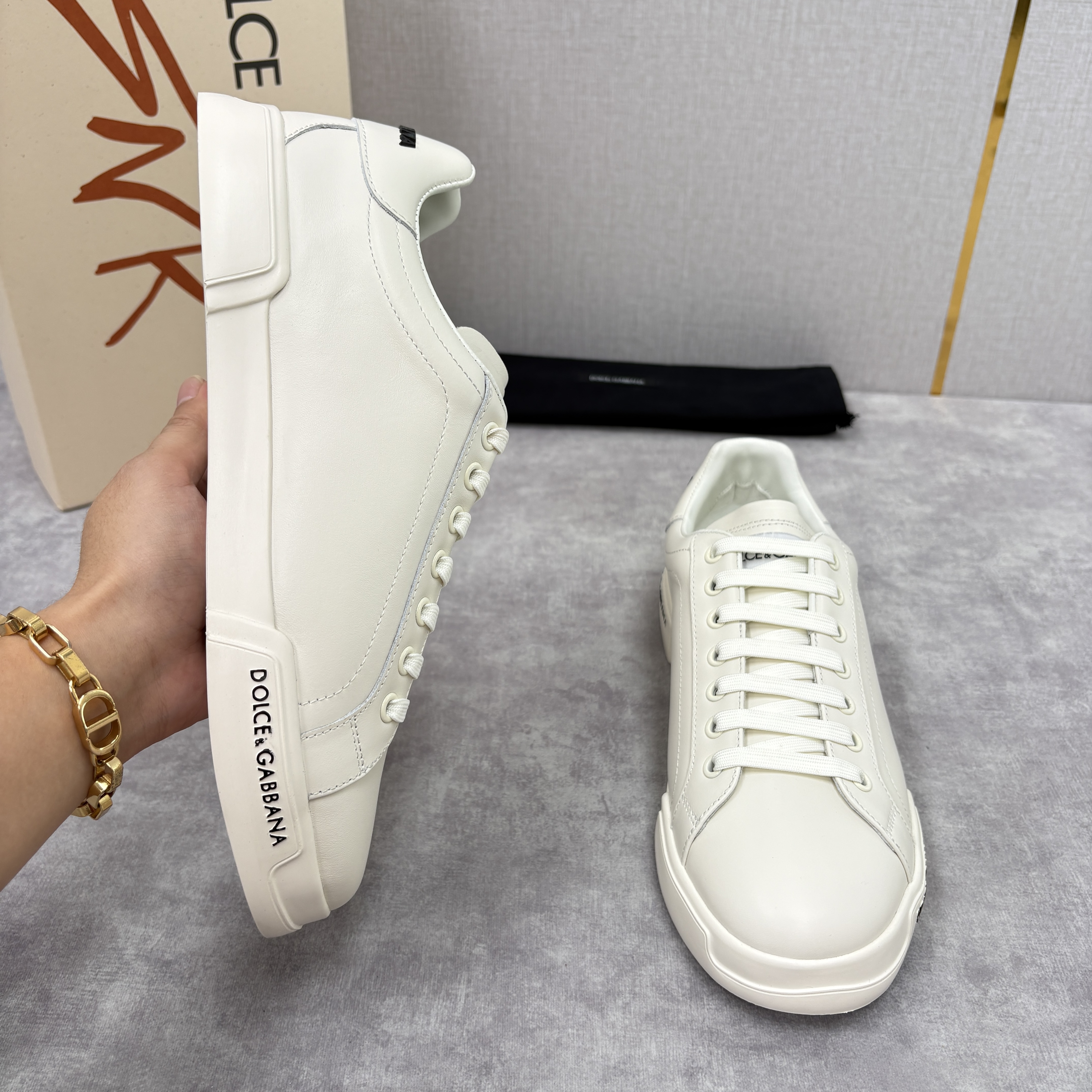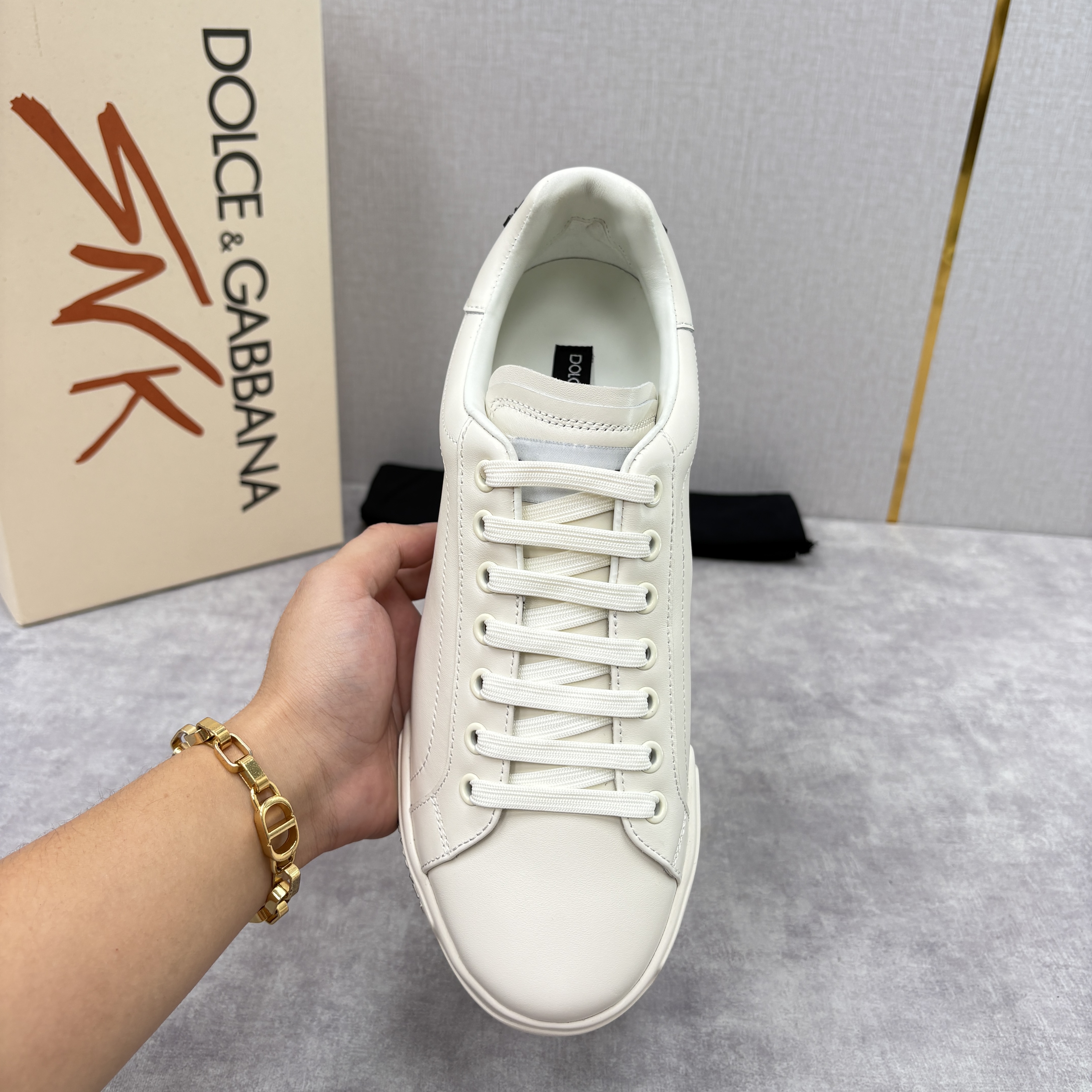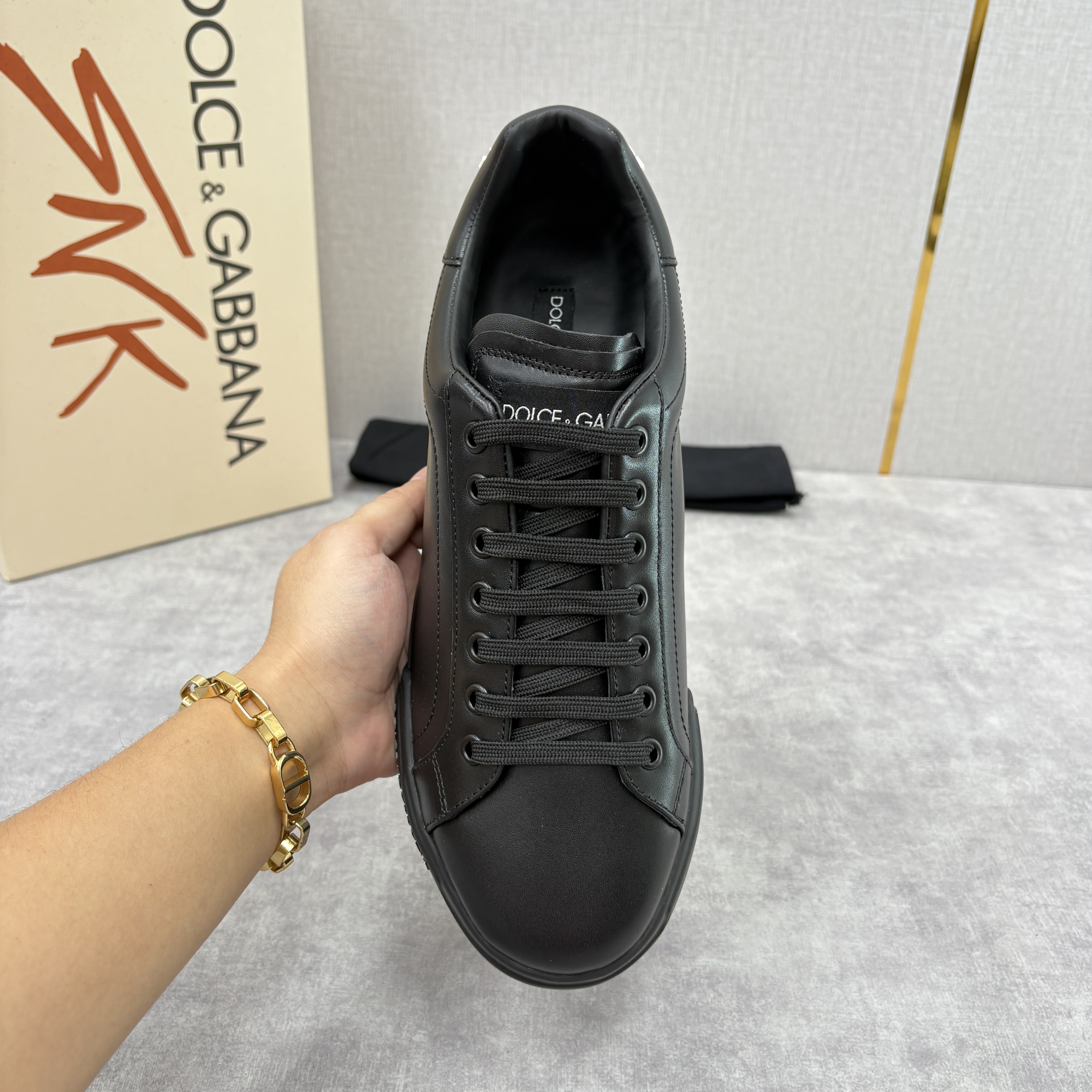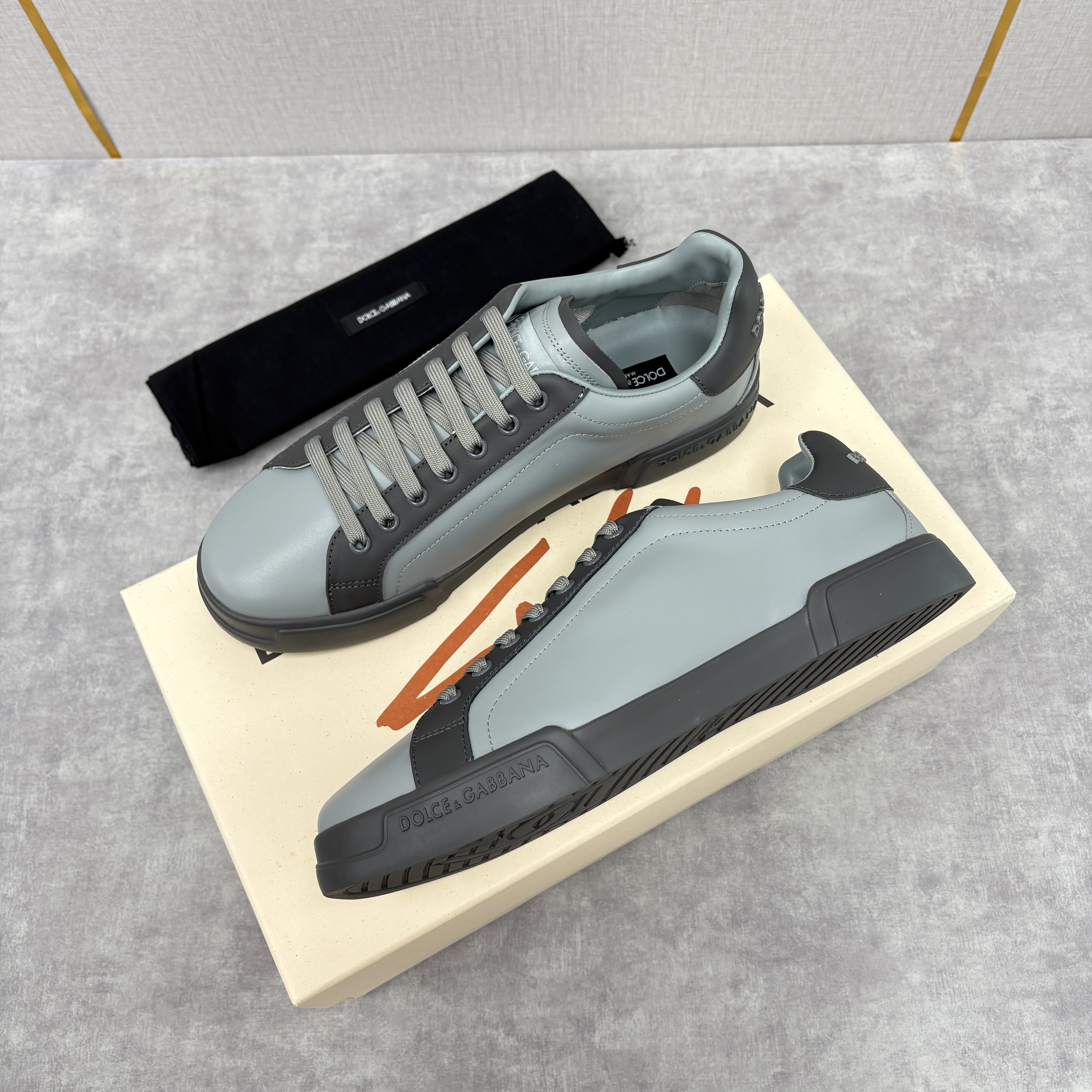 NIGO Dolce&Gabbana Men's And Women's Spring/Fall Fashion Casual Round Toe Lace Up Solid Color Leather Printed Rubber Sole Sneakers Shoes #nigo78728